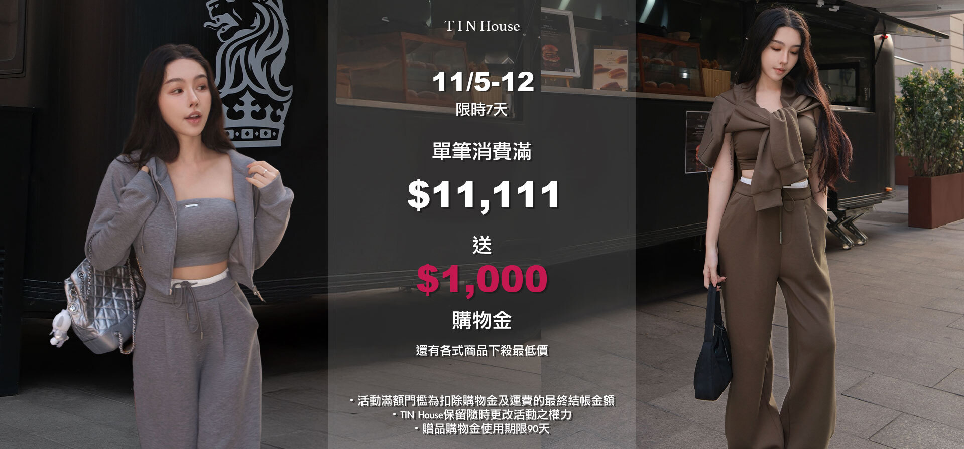 ♡ 11/5 - 11/12 單筆消費滿$11,111 贈$1,000購物金 ♡