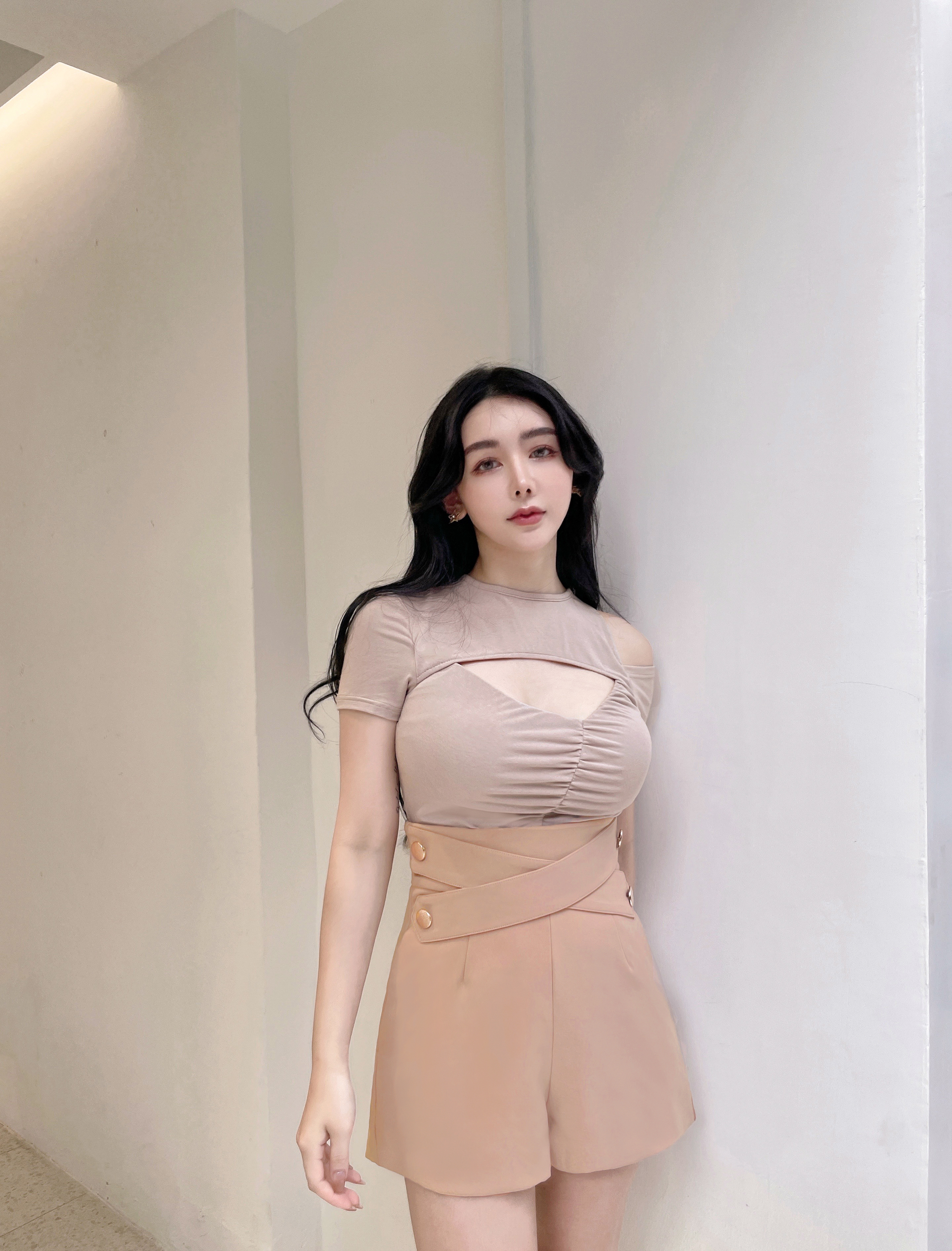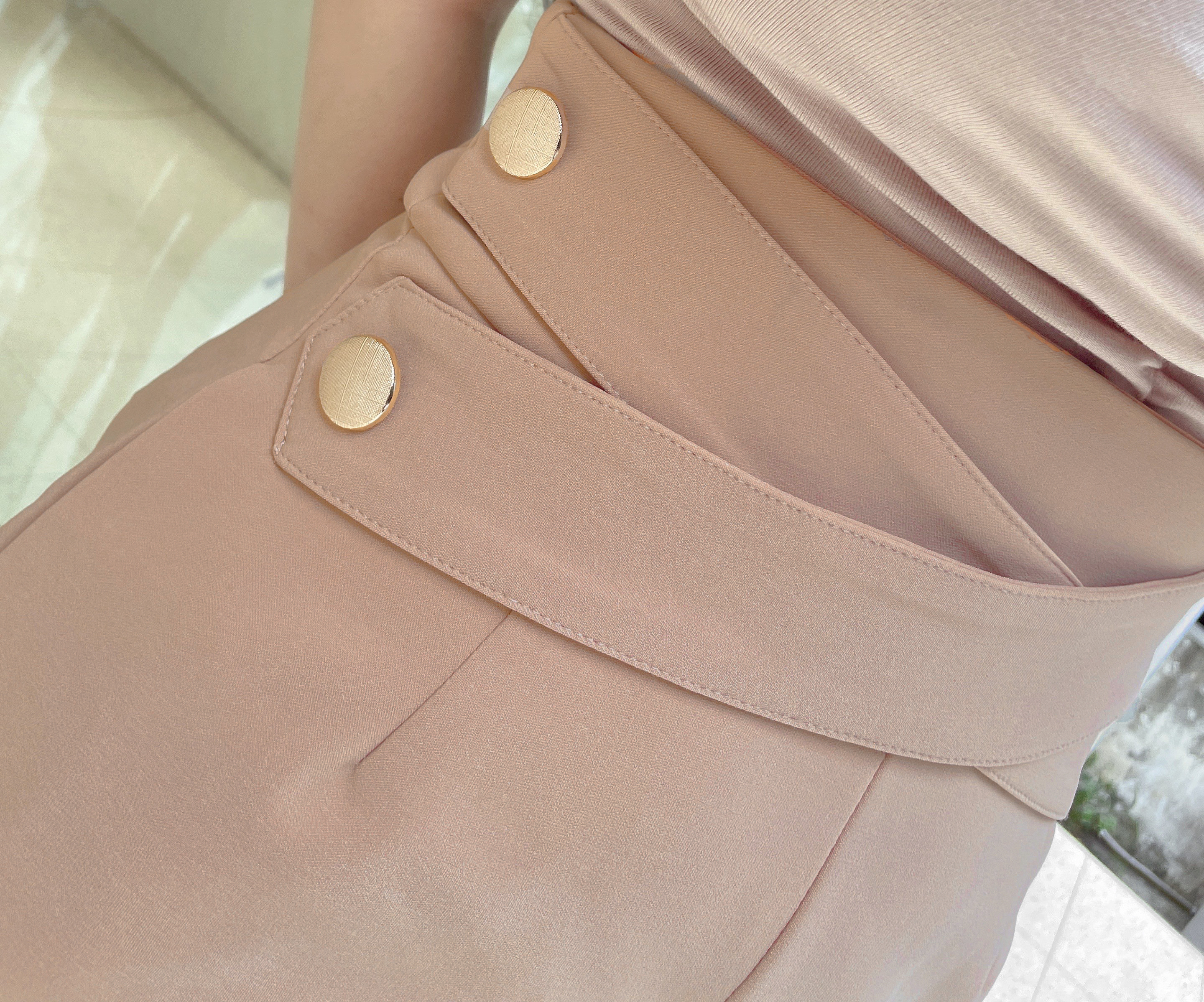 訂製-質感交叉金釦高腰短褲(加長版)