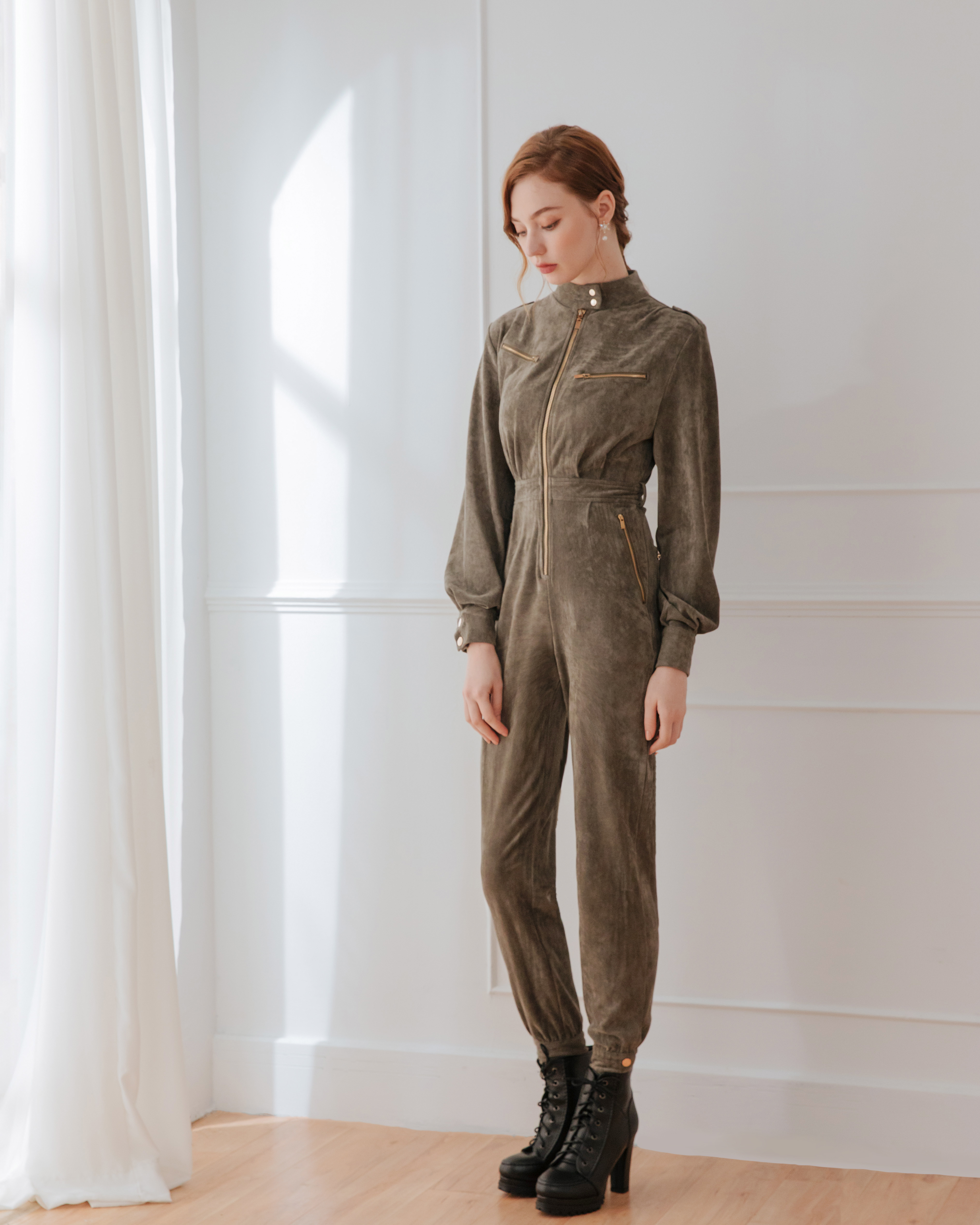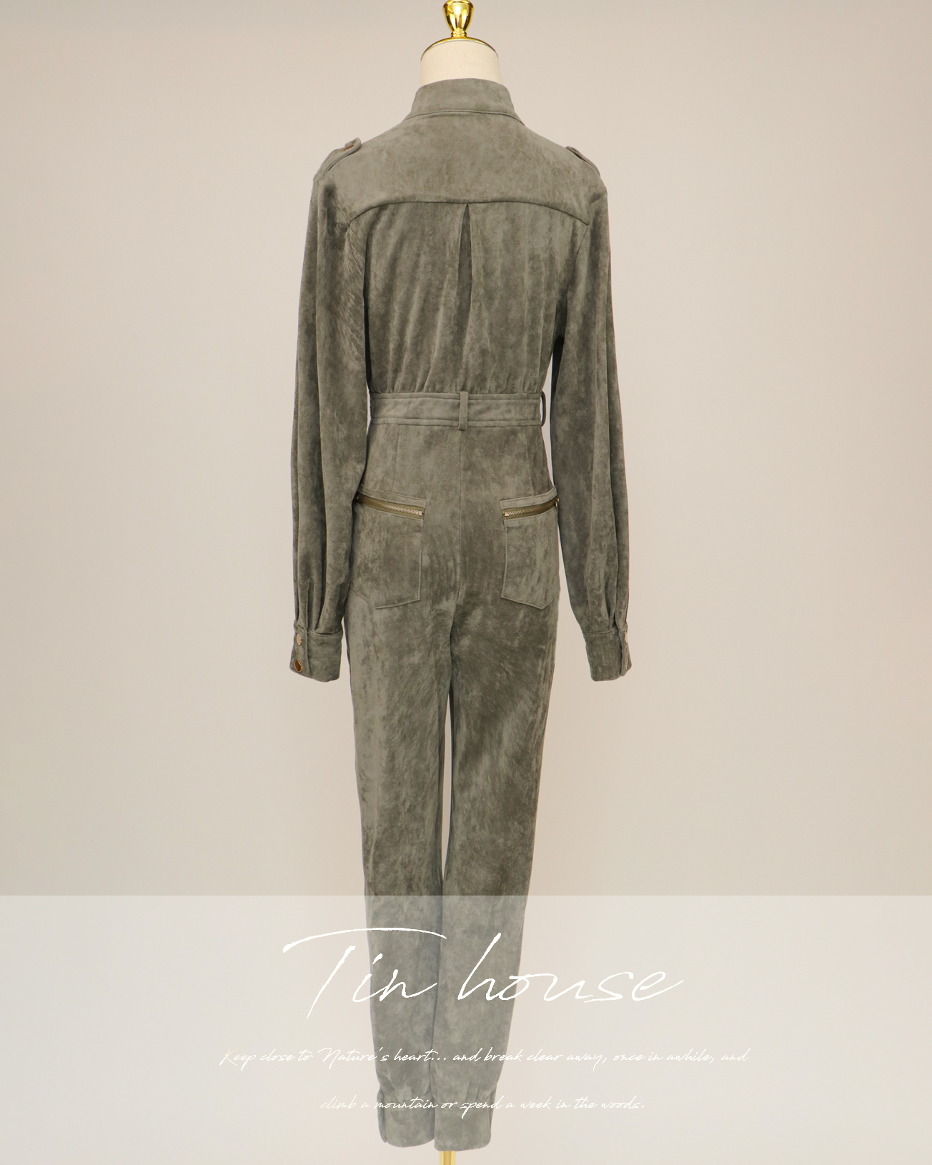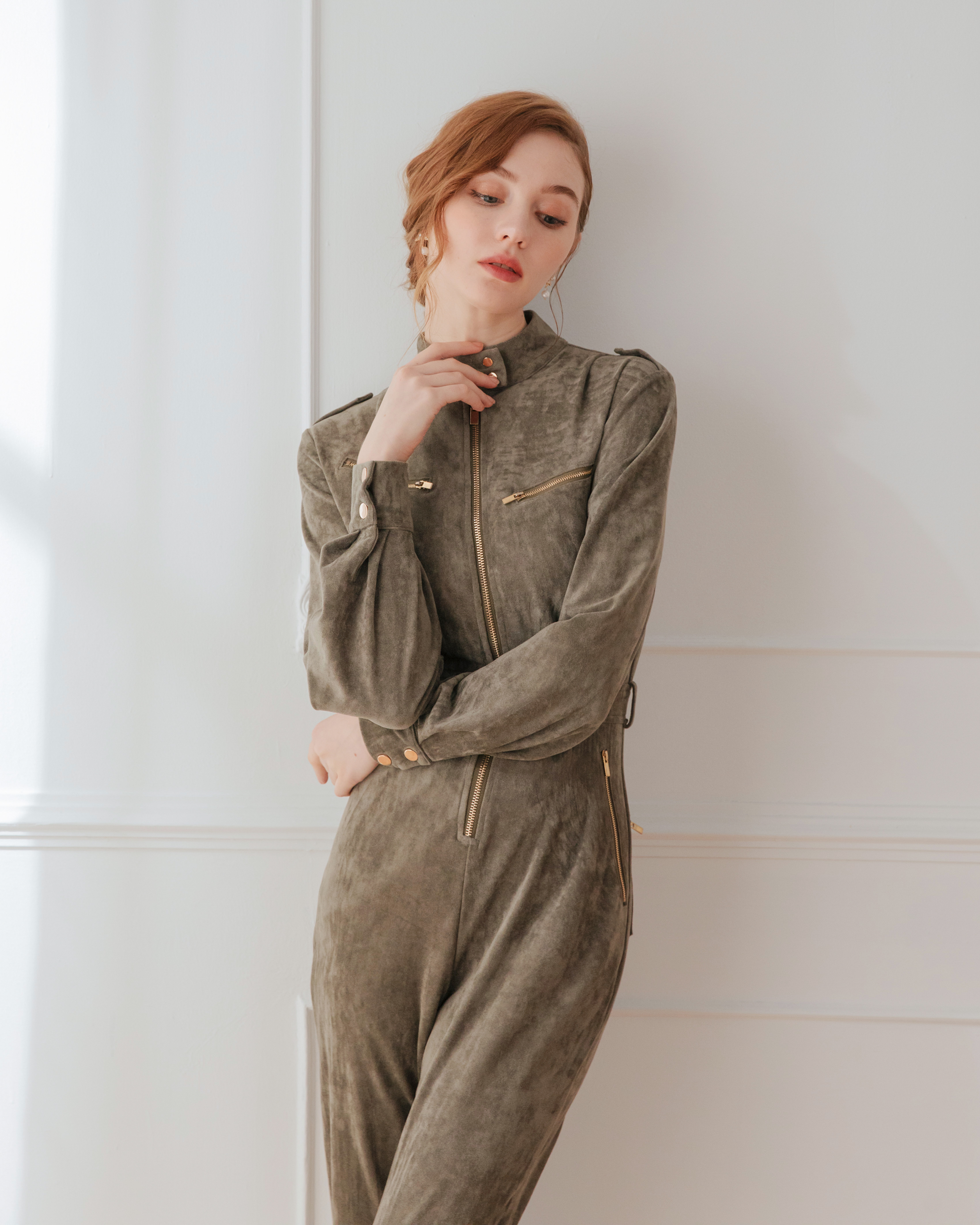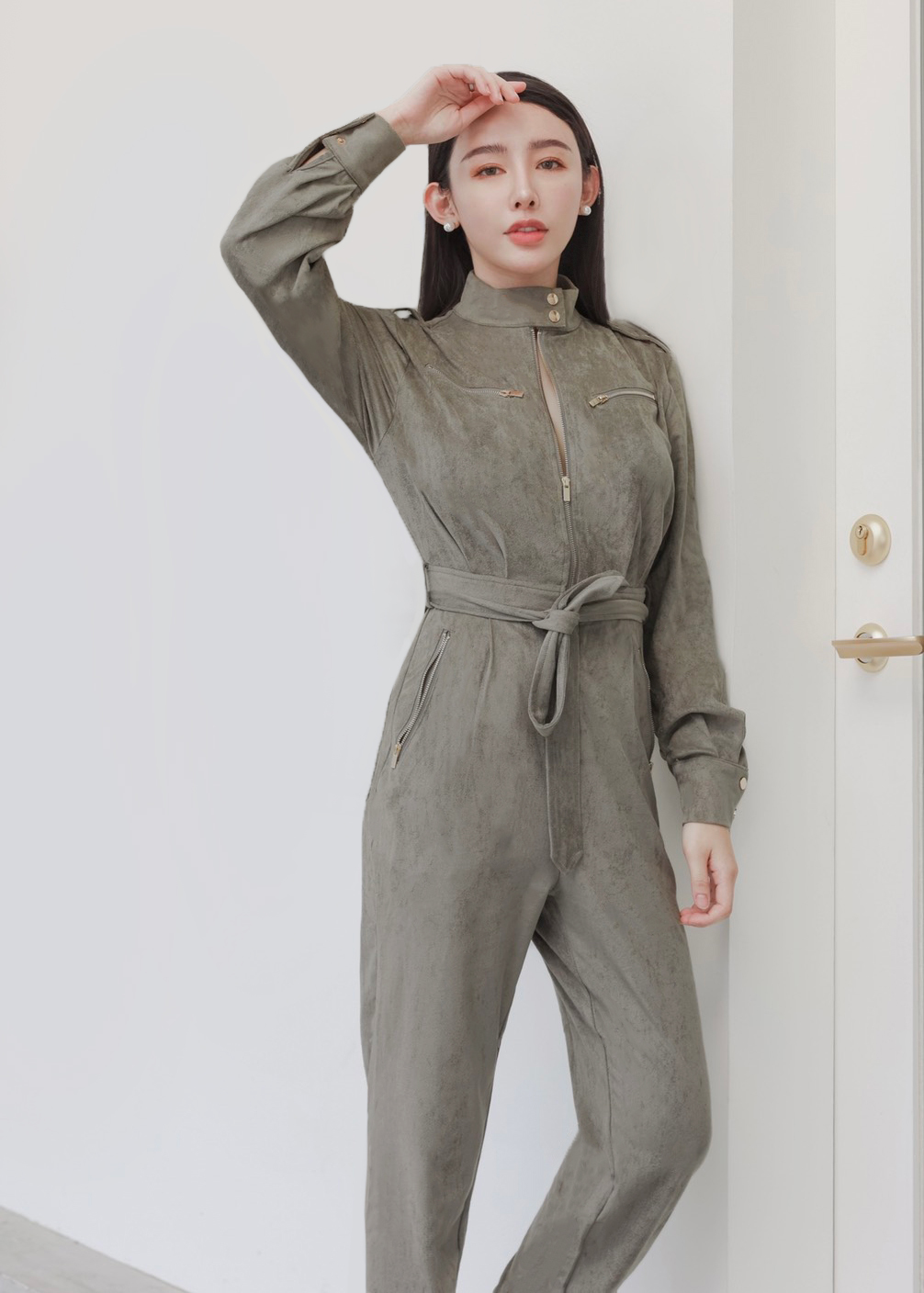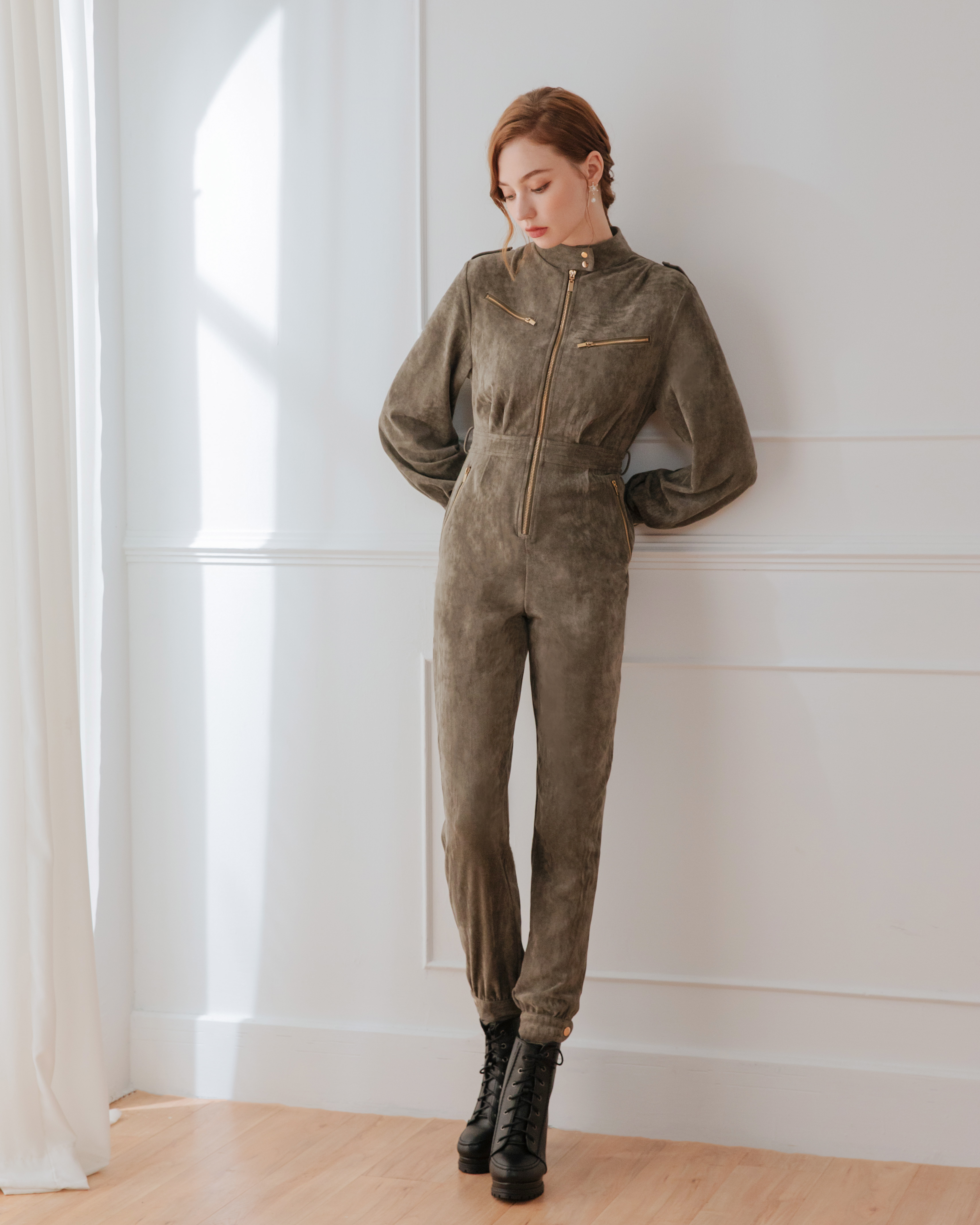 ⭒訂製-個性立領麂皮工作連身褲
