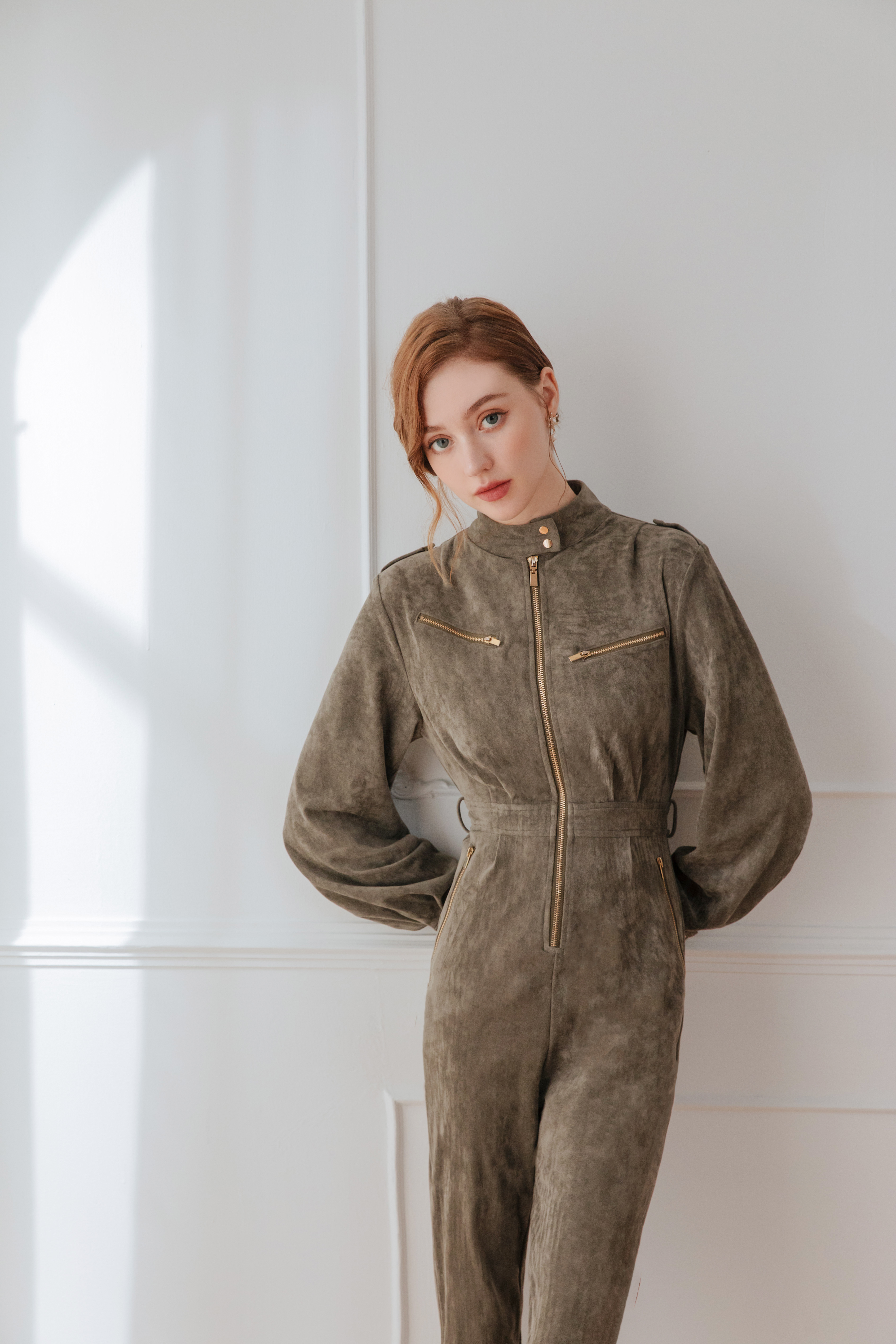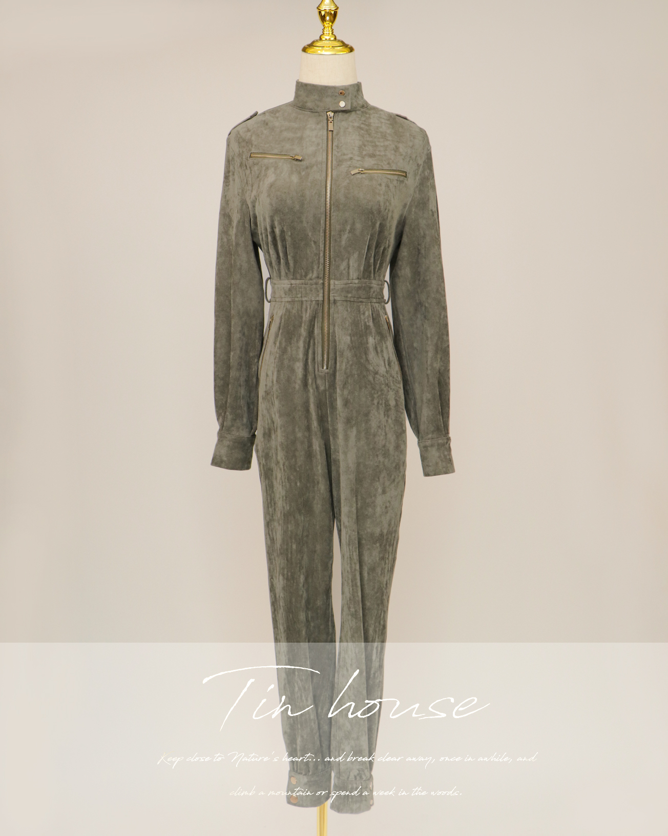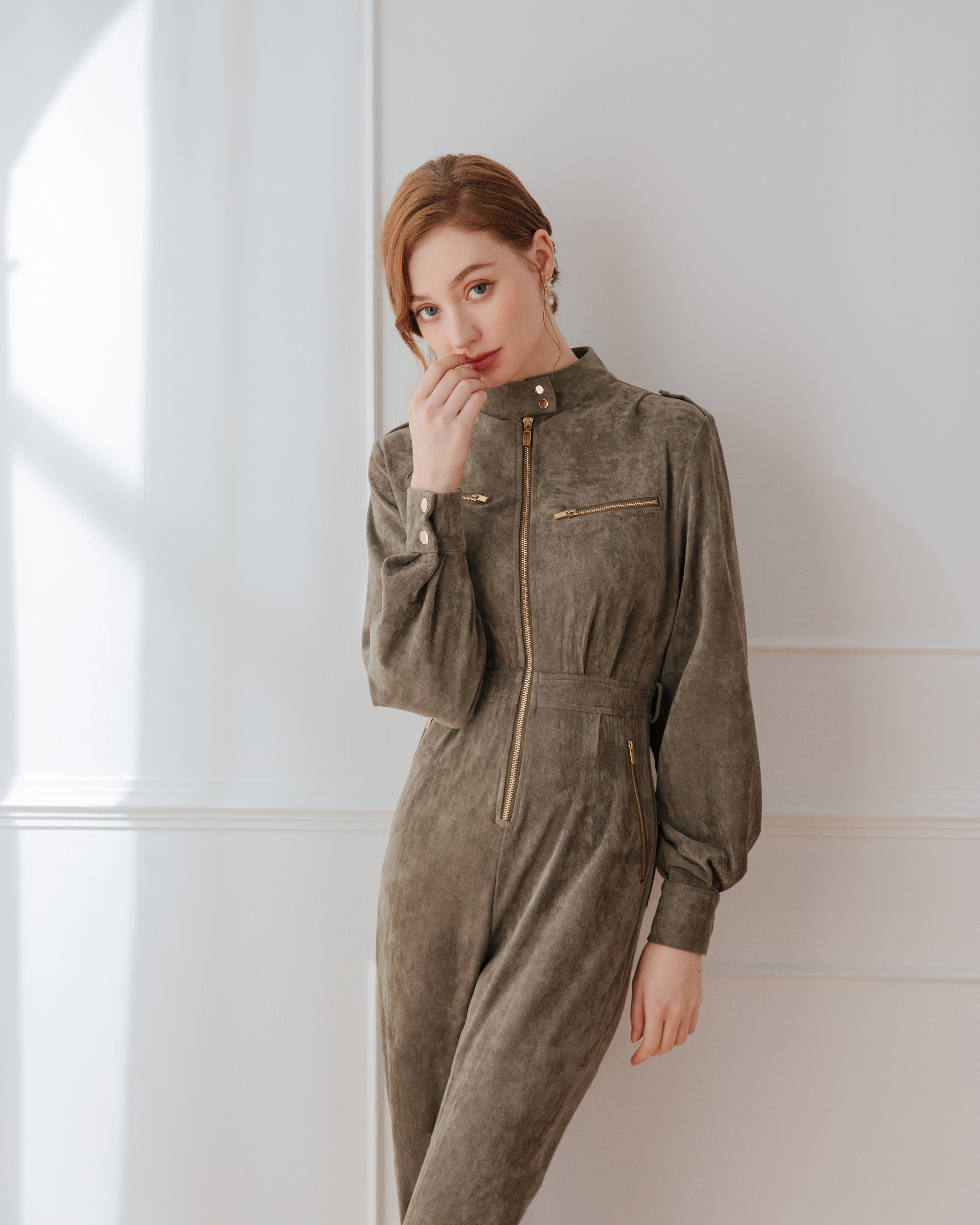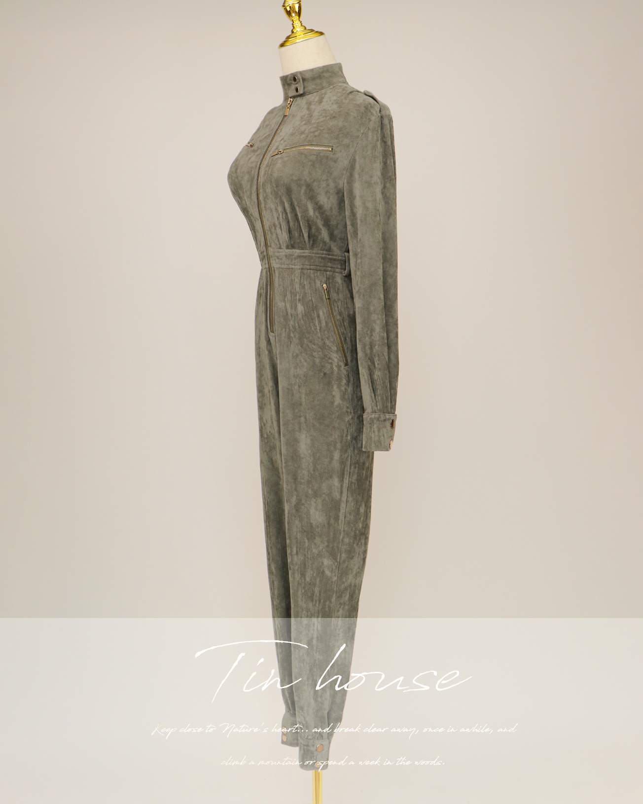 ⭒訂製-個性立領麂皮工作連身褲