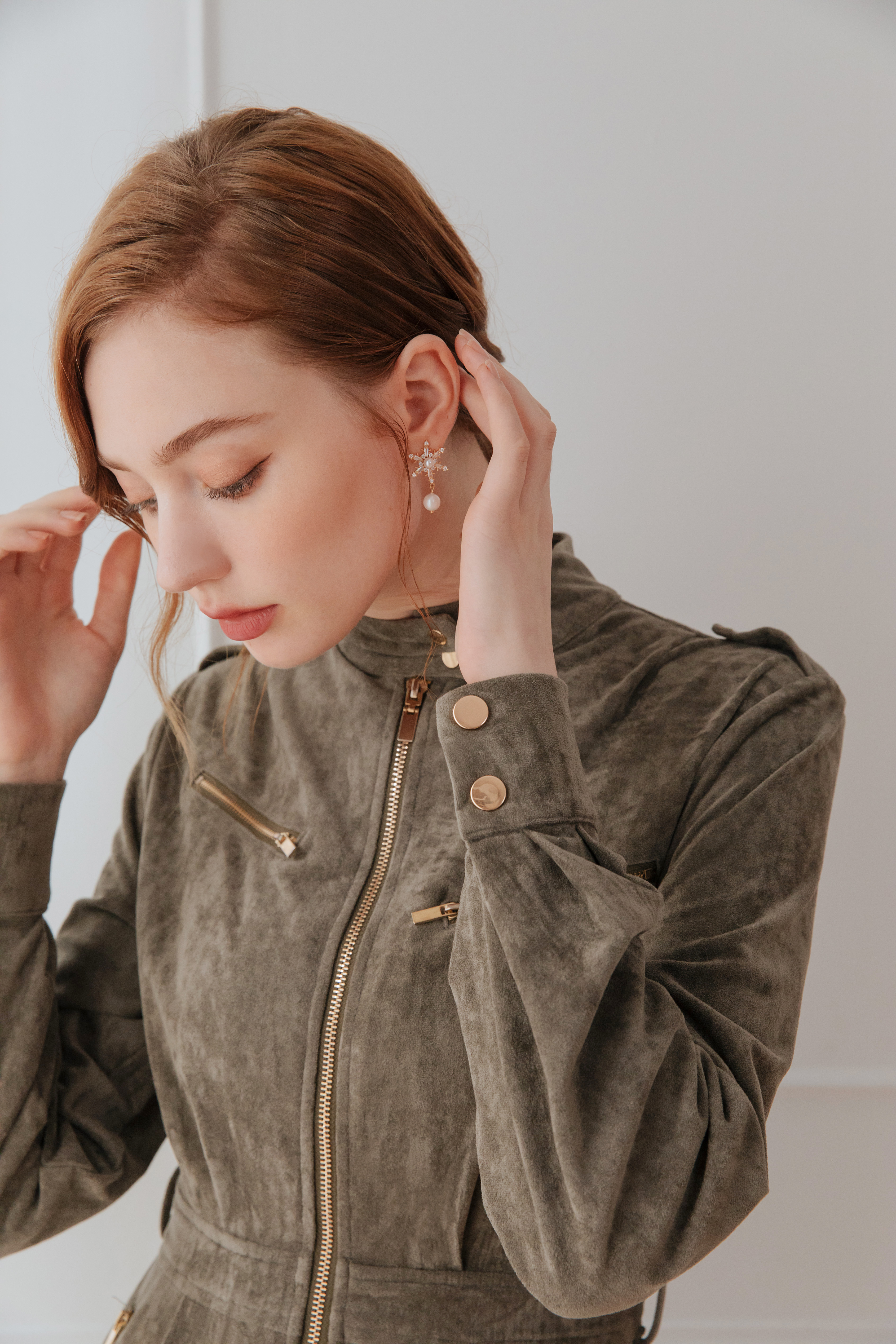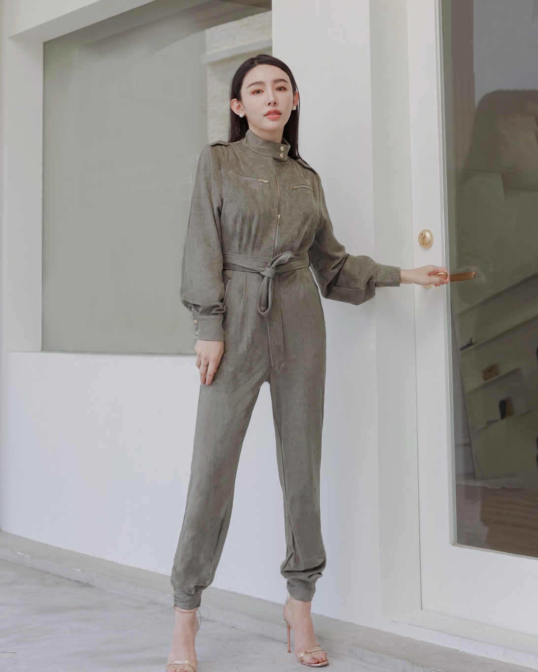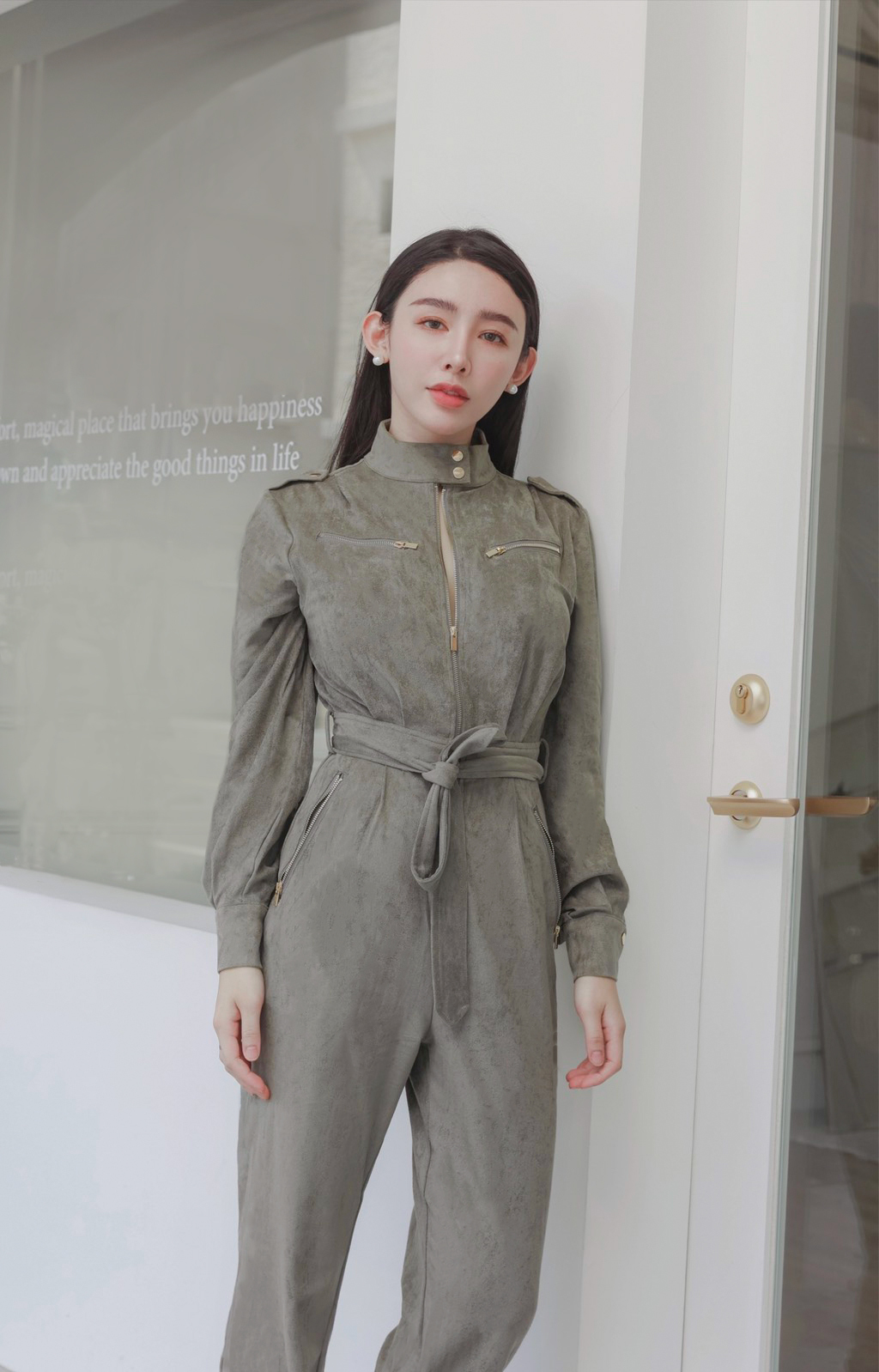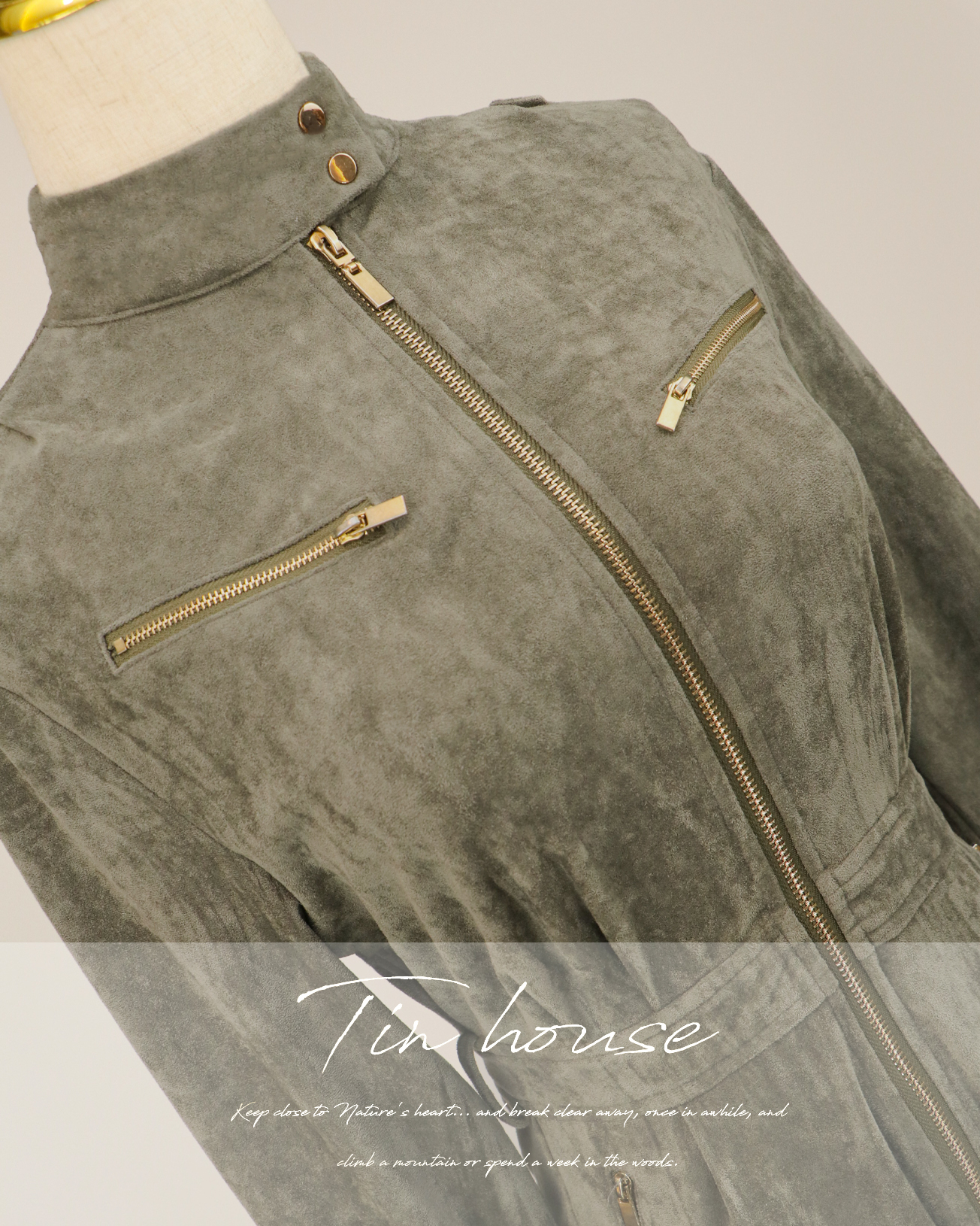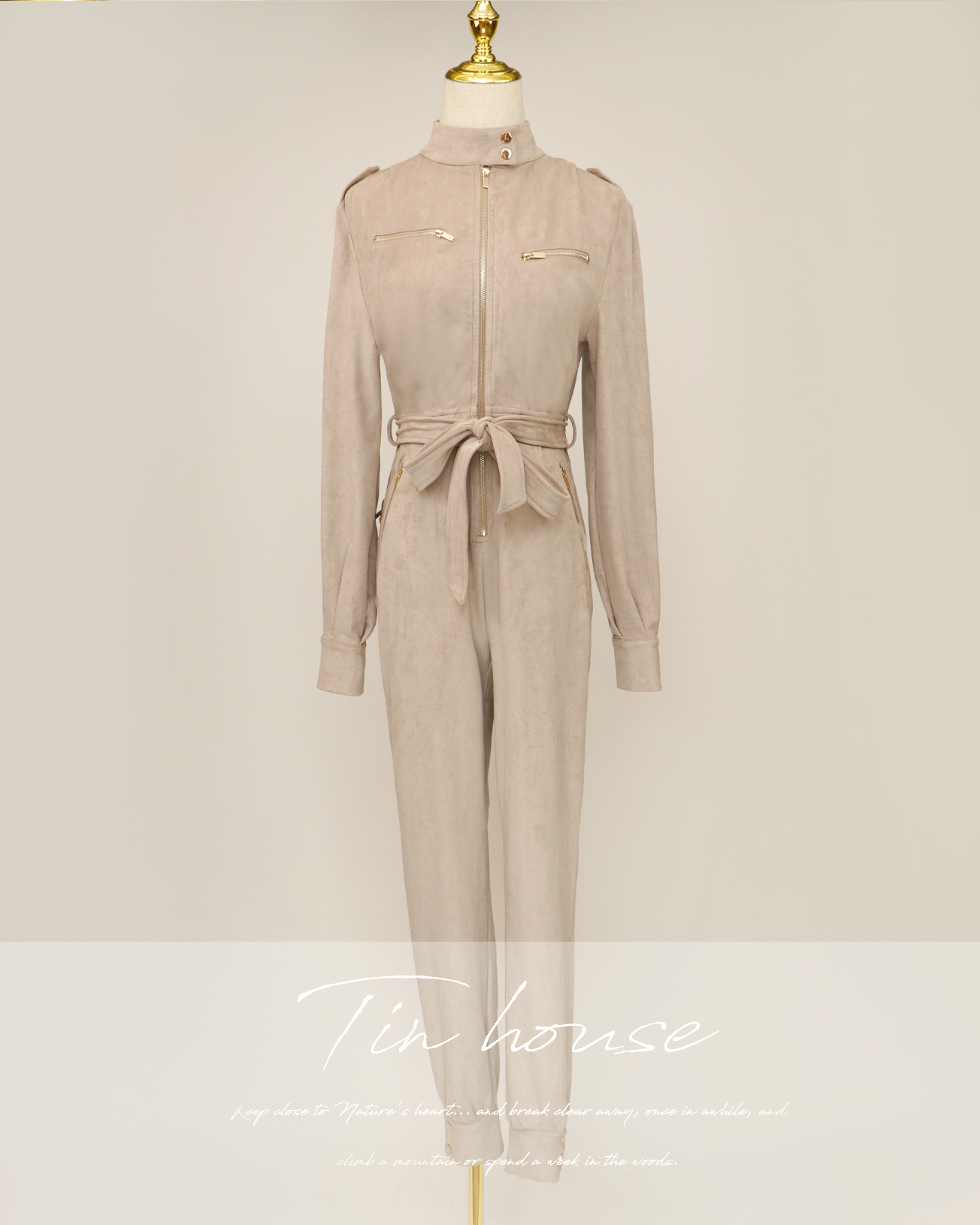 ⭒訂製-個性立領麂皮工作連身褲