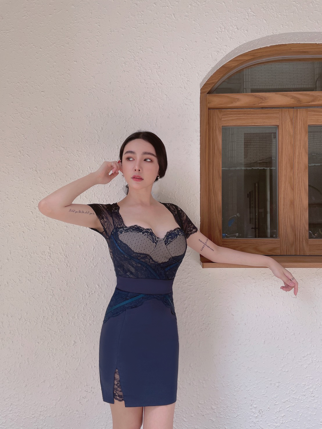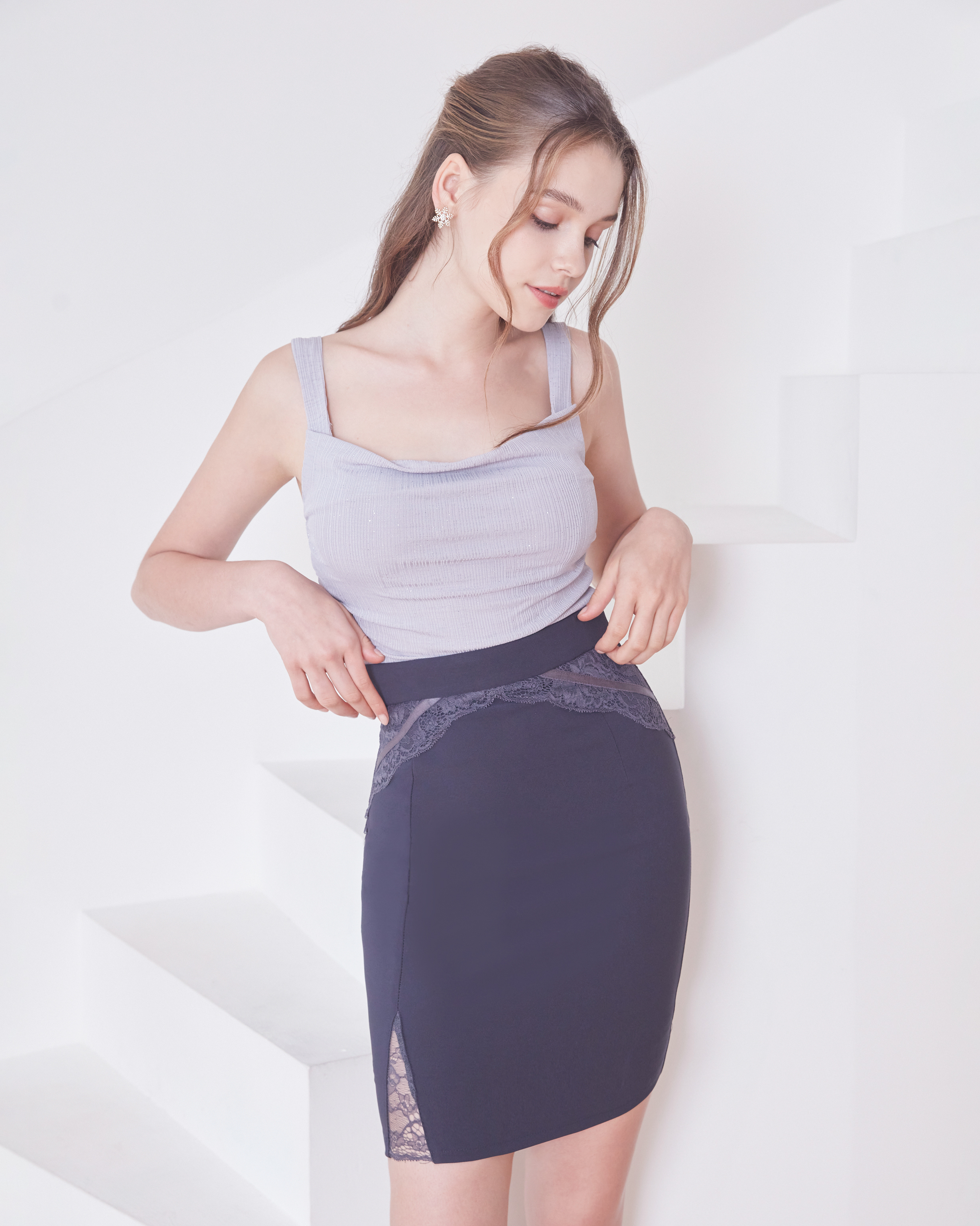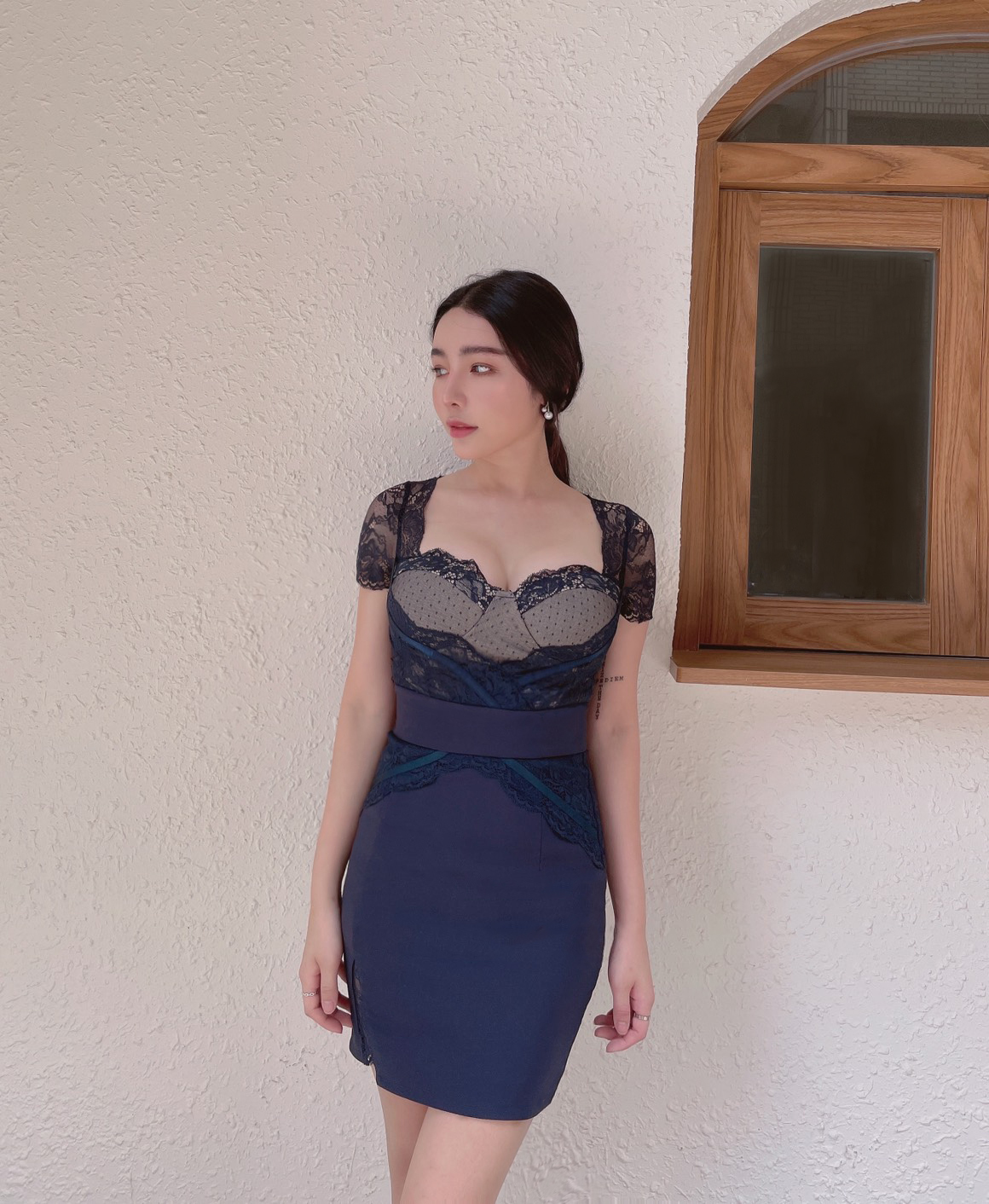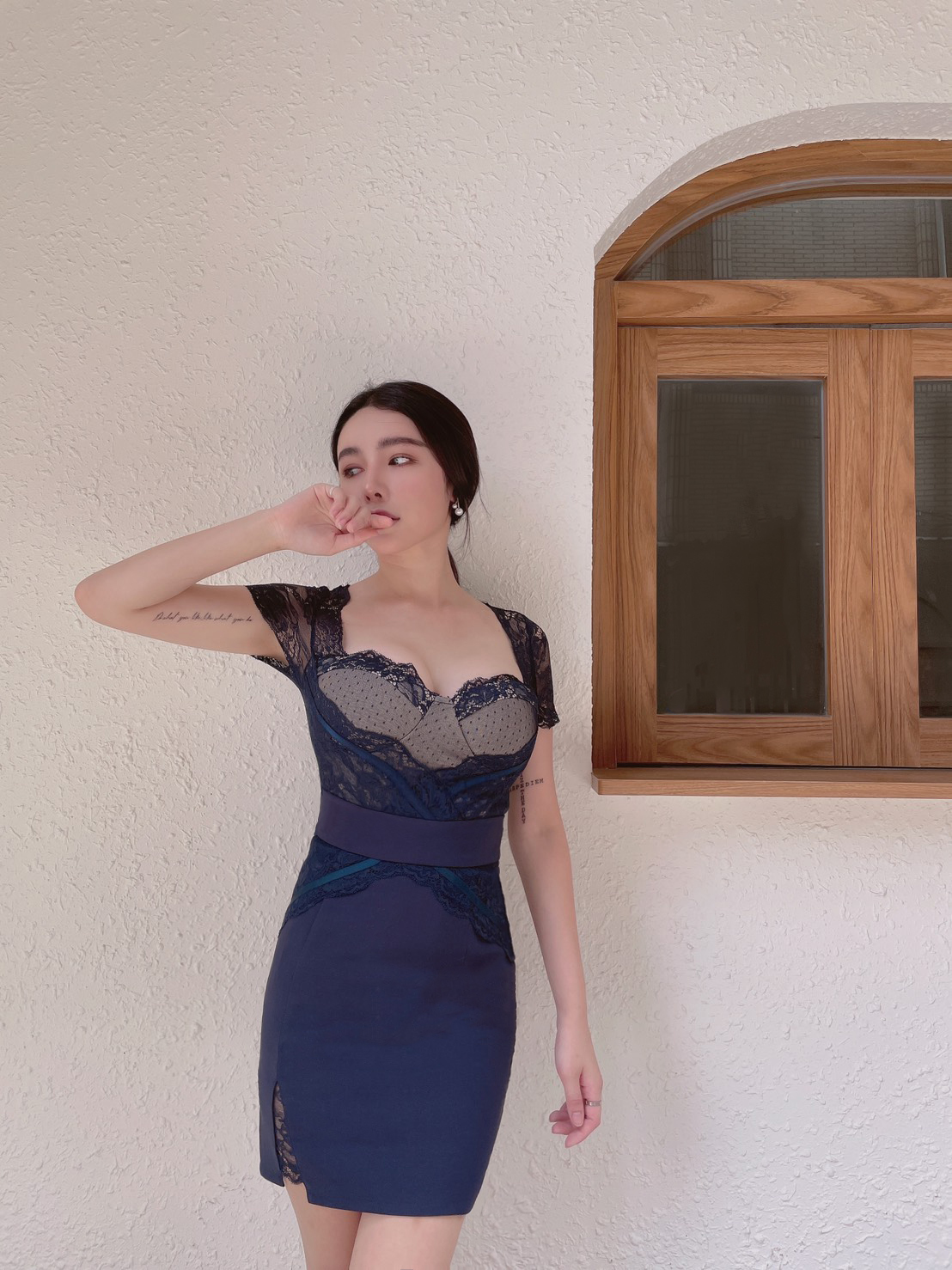 訂製-唯美蕾絲緞帶中長裙(3色)