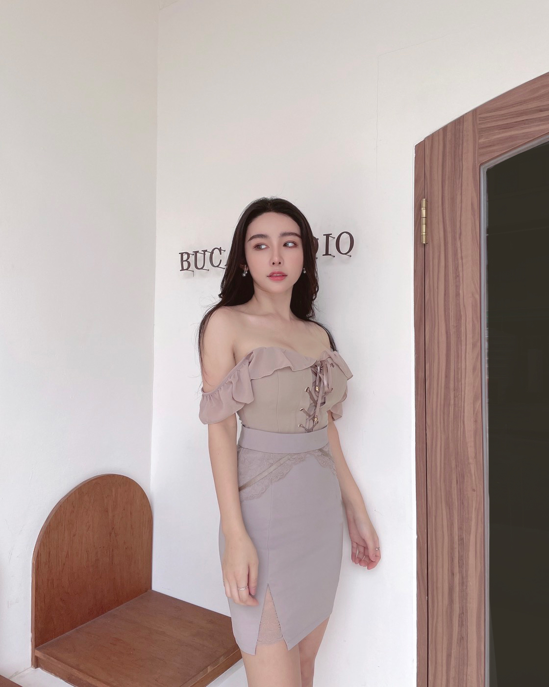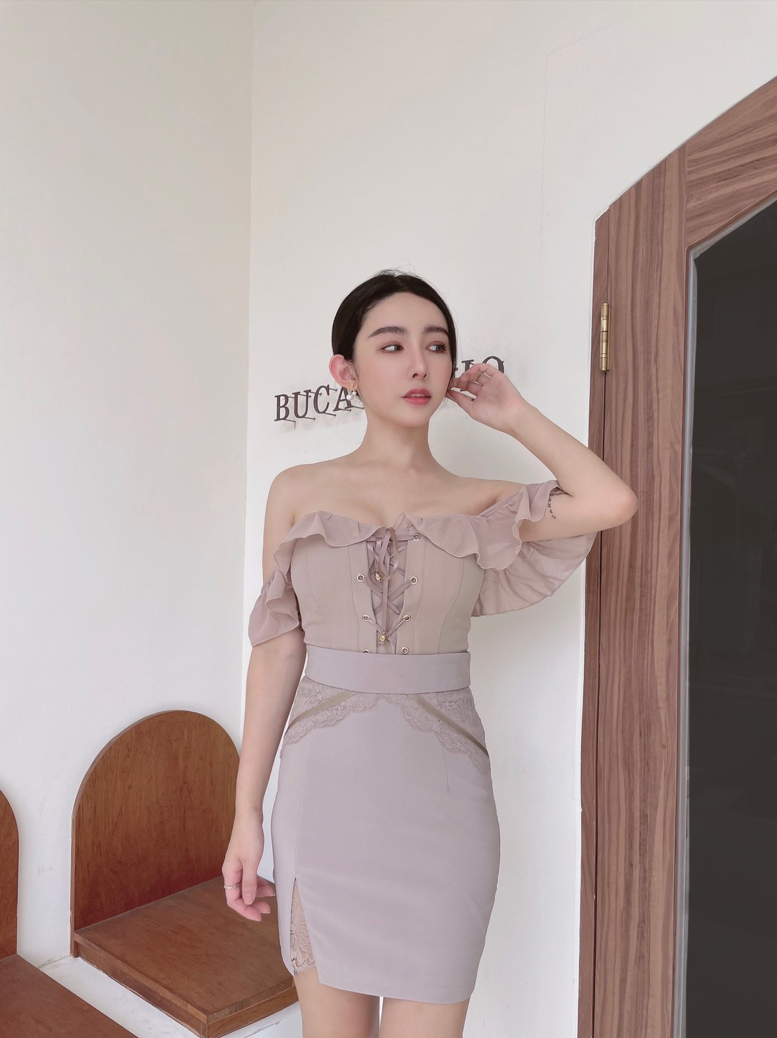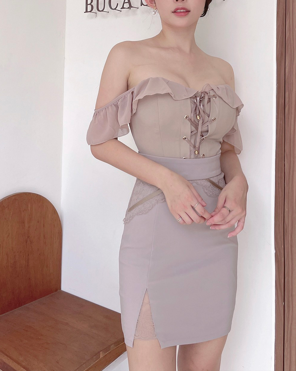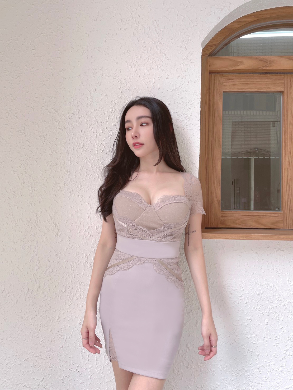 訂製-唯美蕾絲緞帶中長裙(3色)