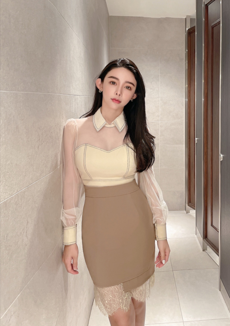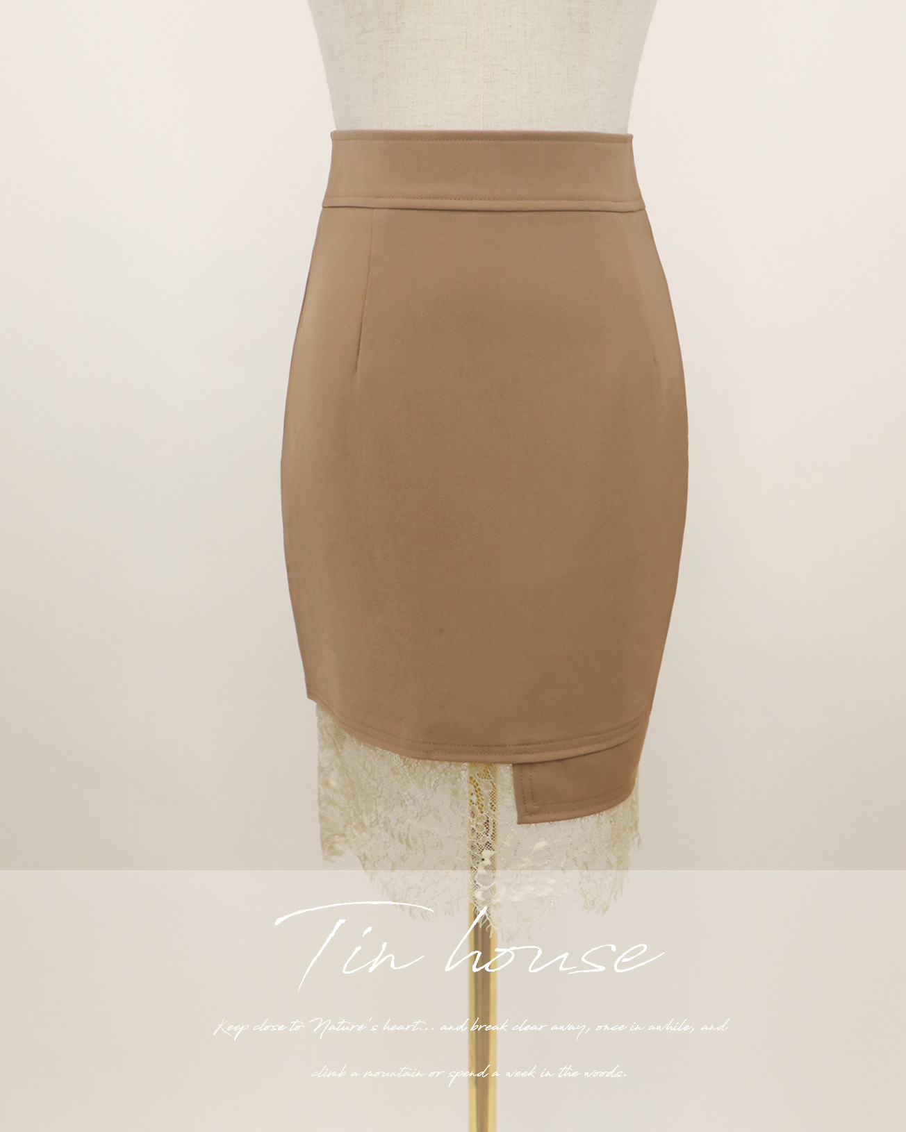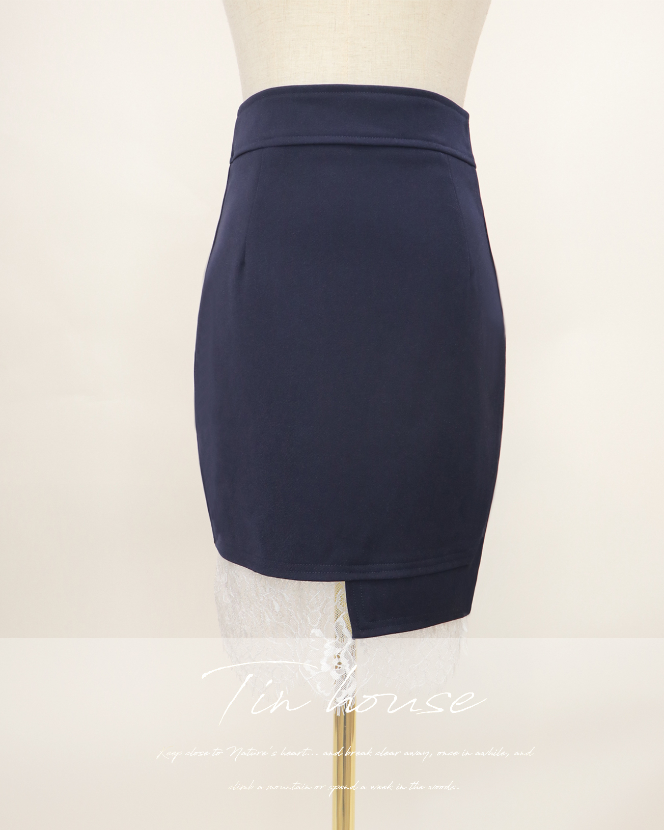 ⭒訂製-不規則蕾絲拼接中長裙