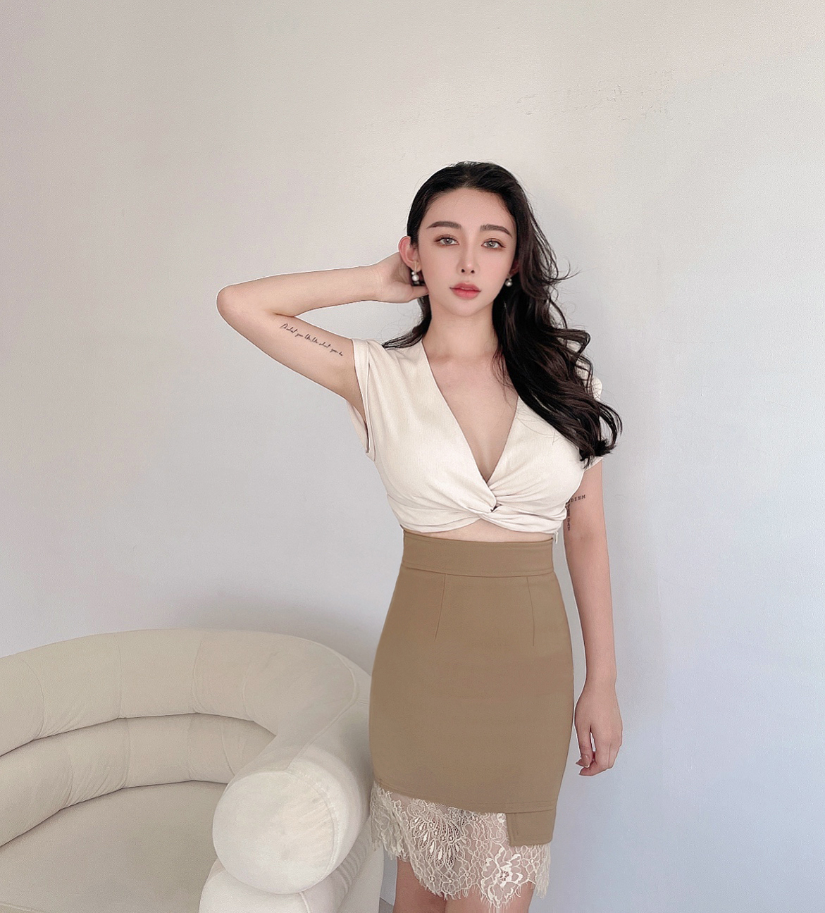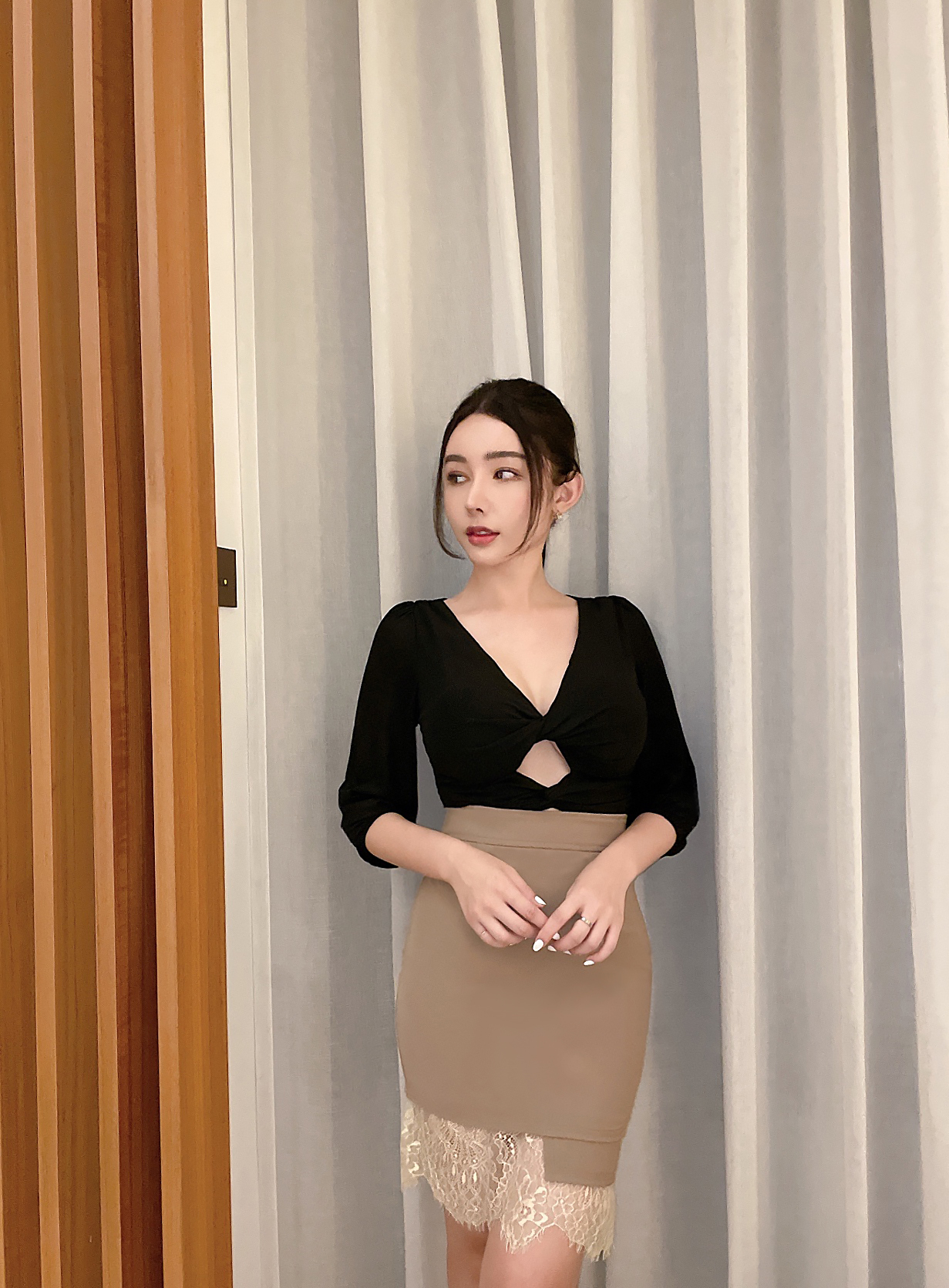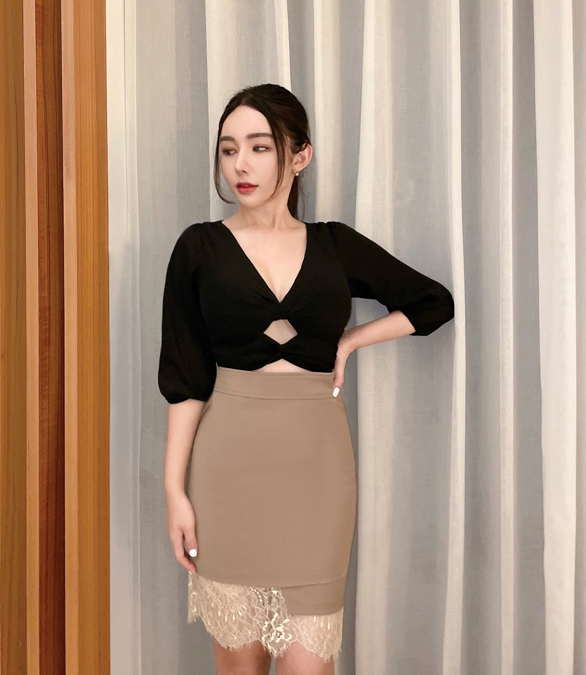 ⭒訂製-不規則蕾絲拼接中長裙