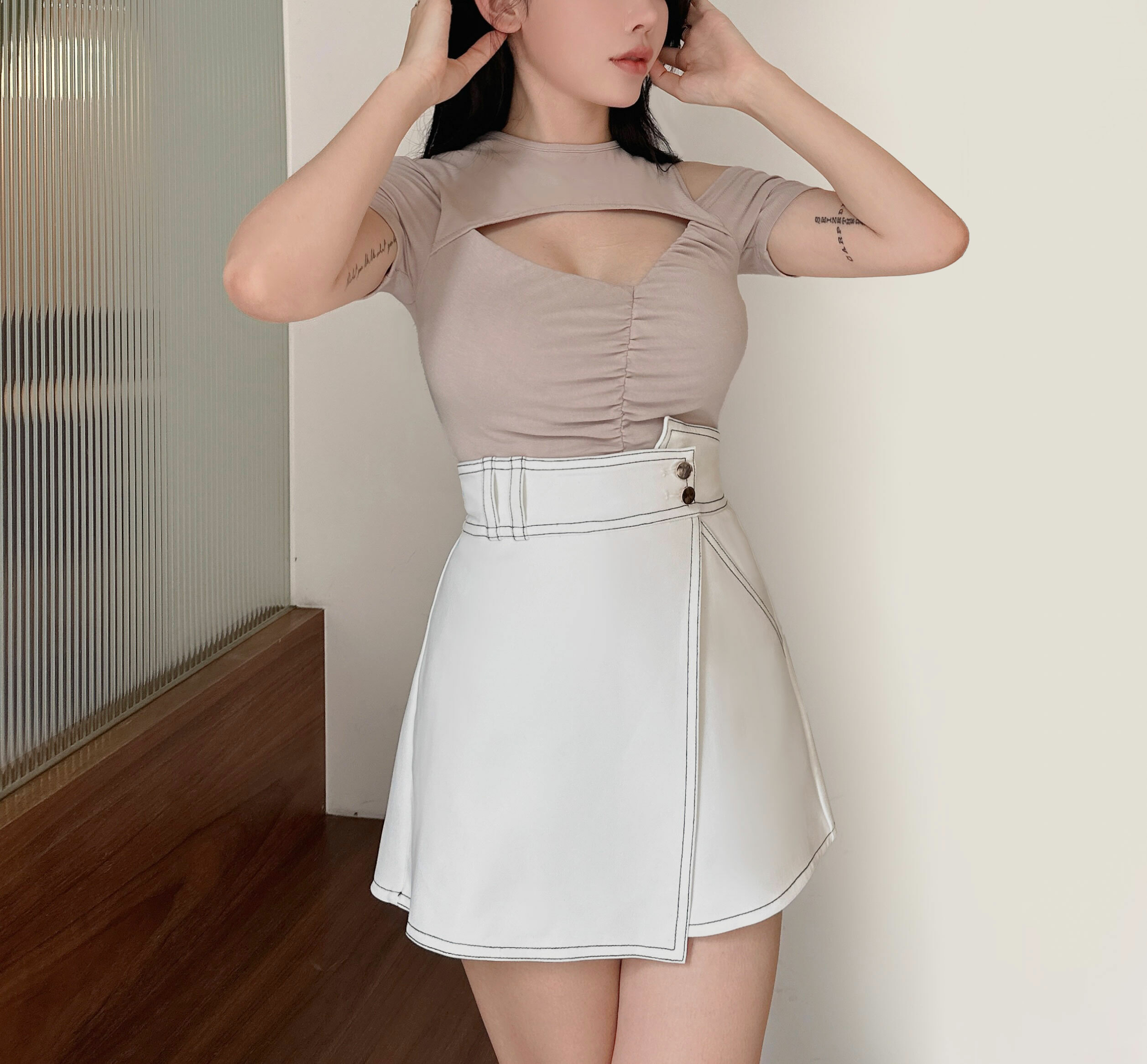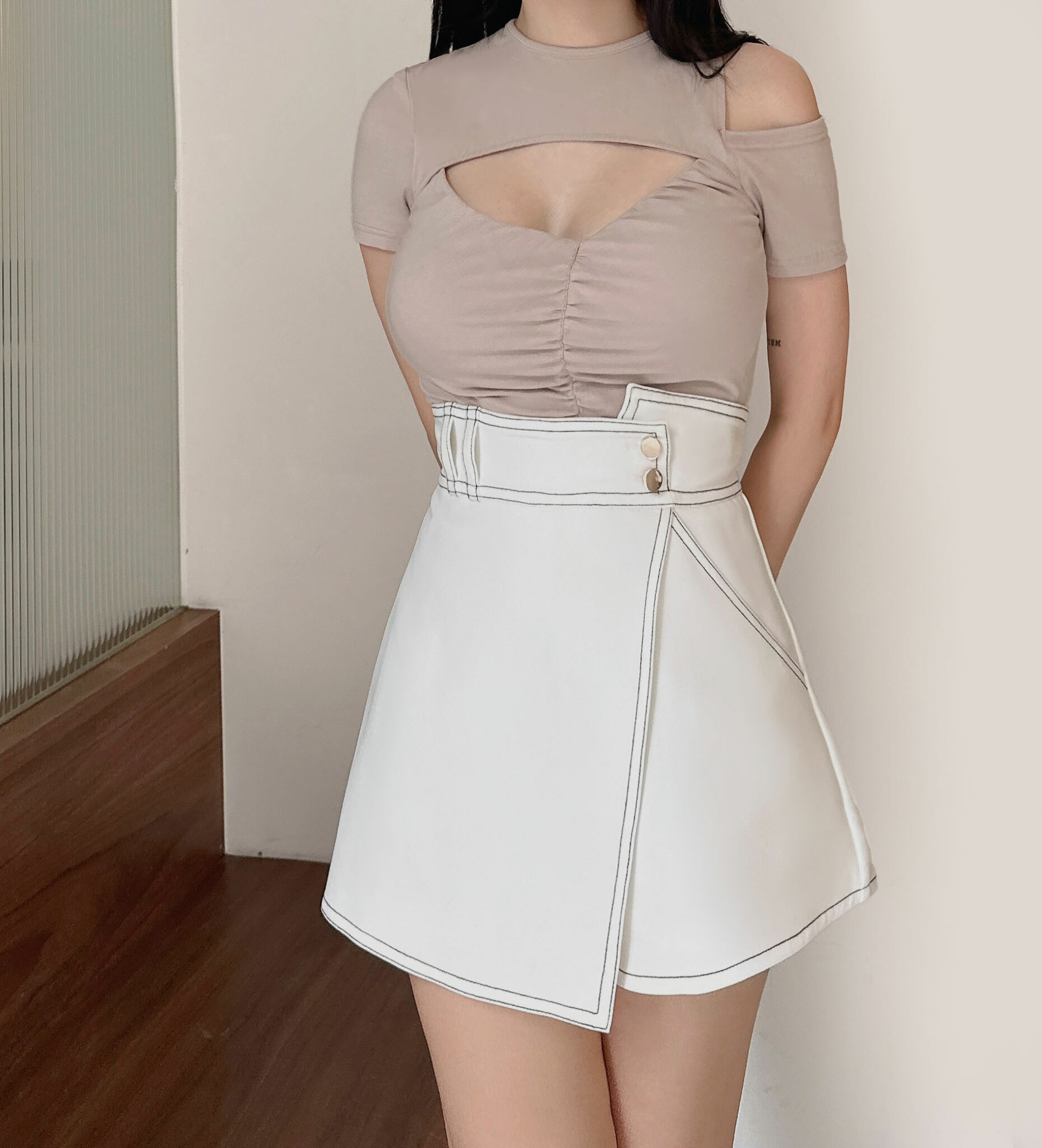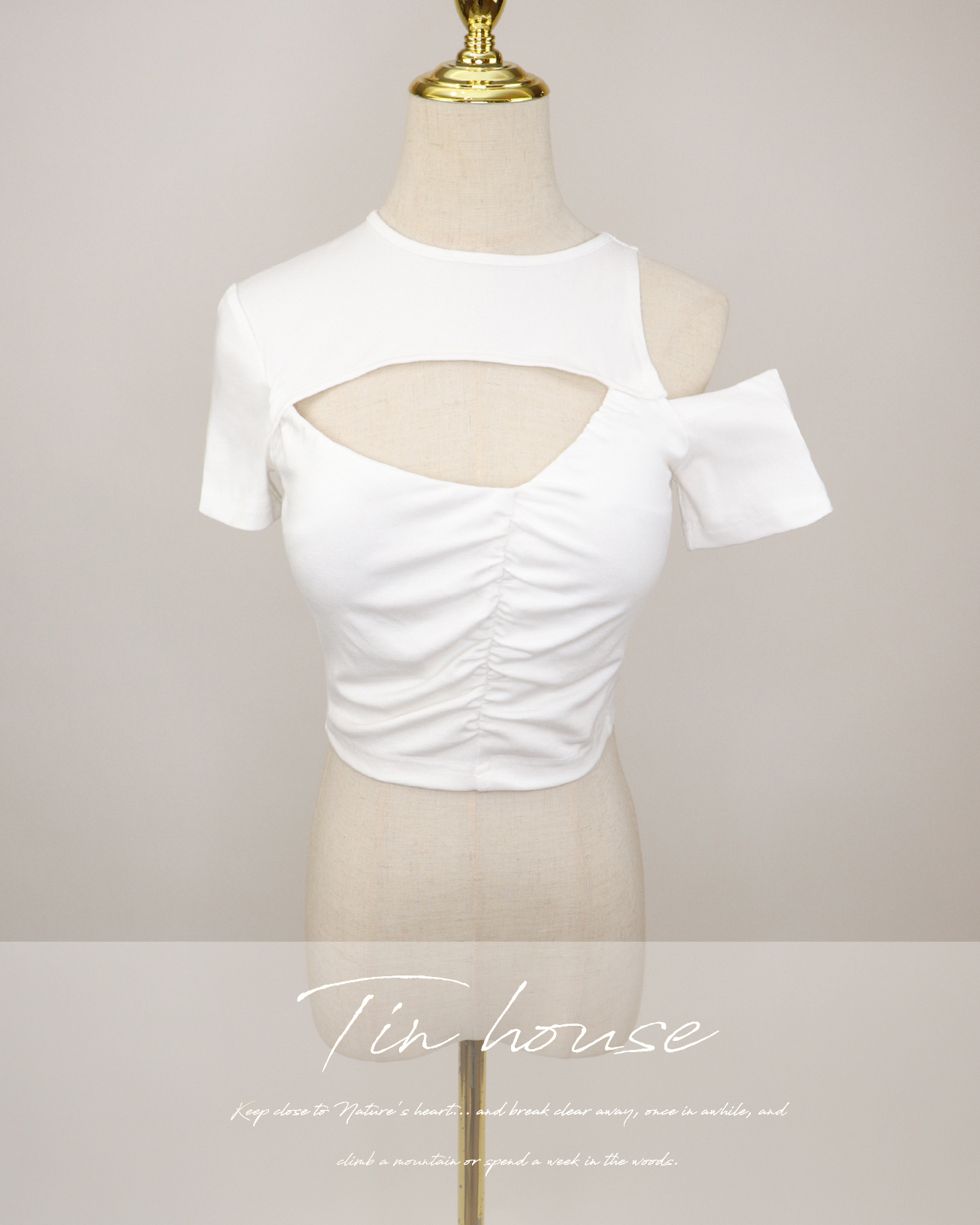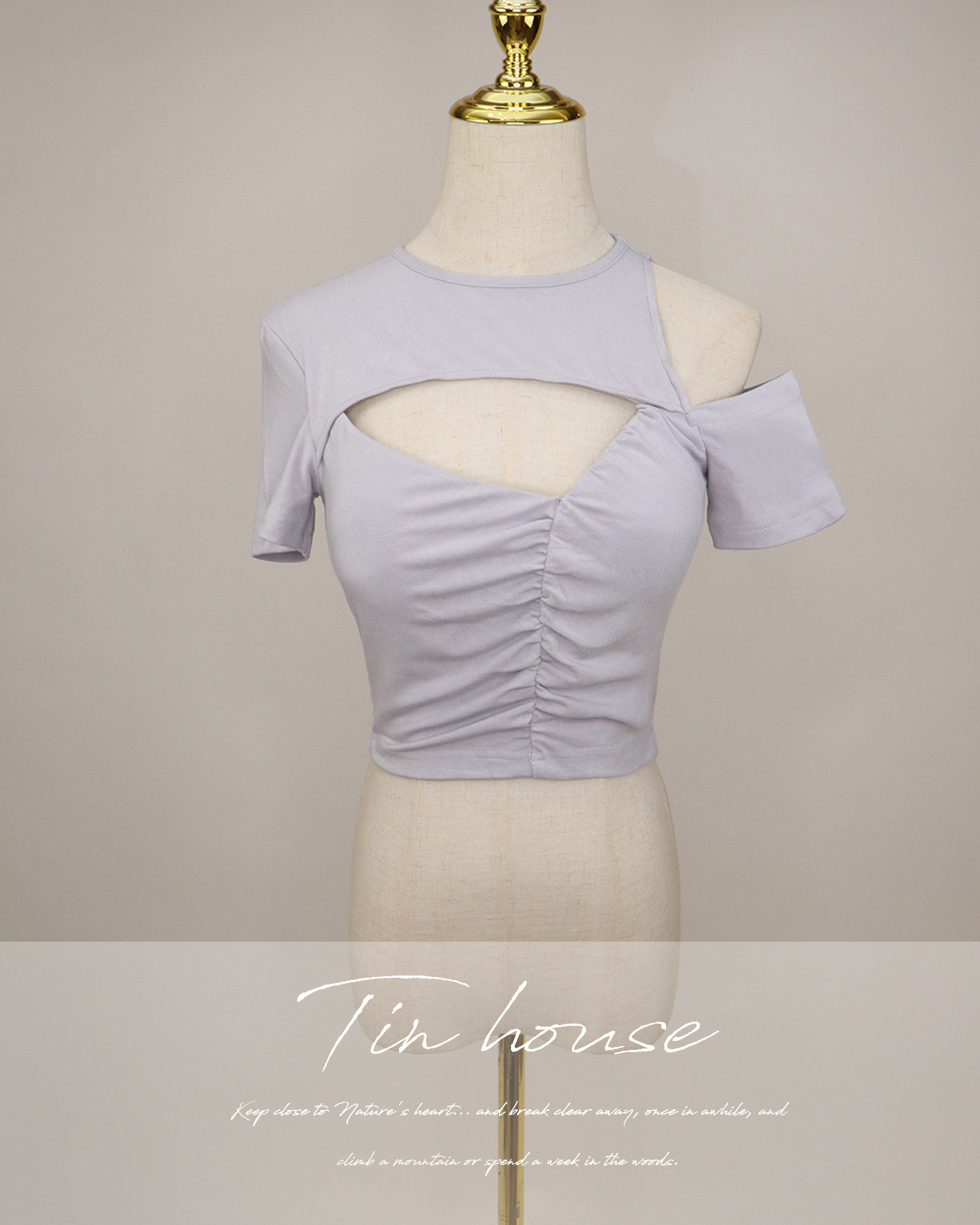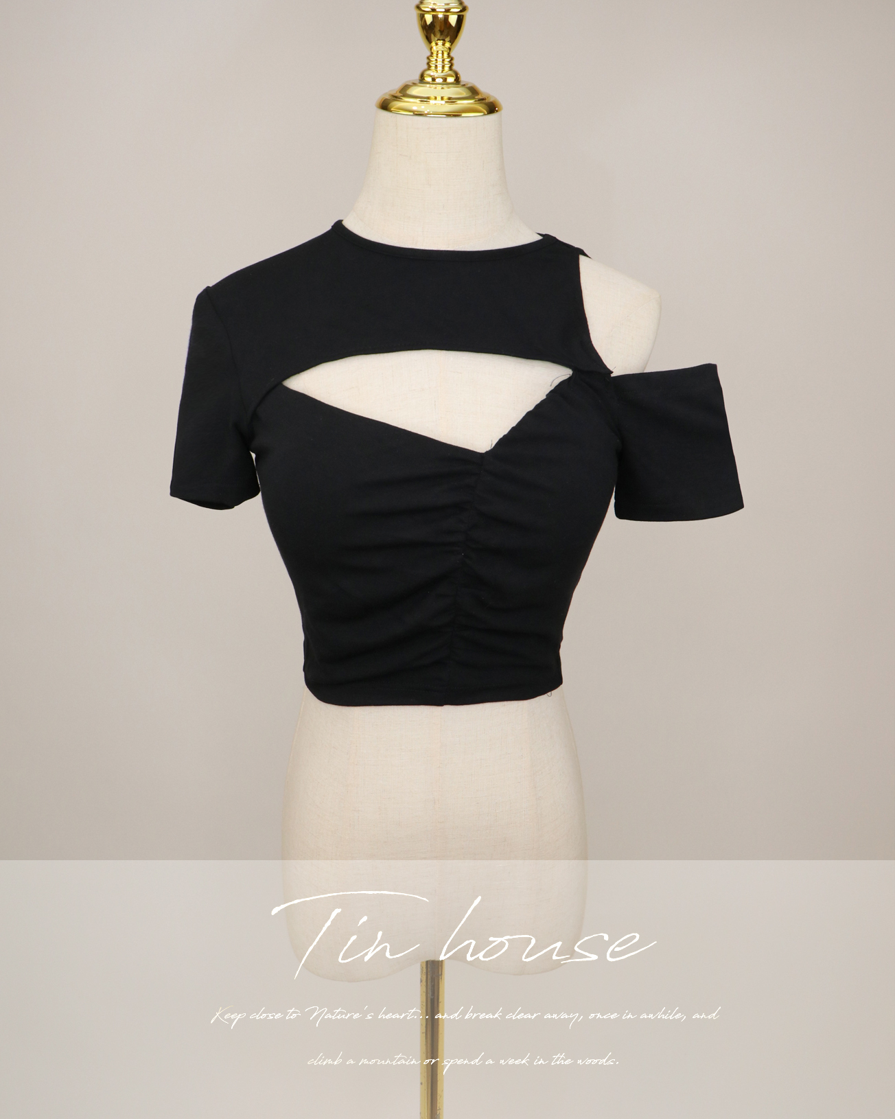 訂製-設計感不對稱鏤空上衣