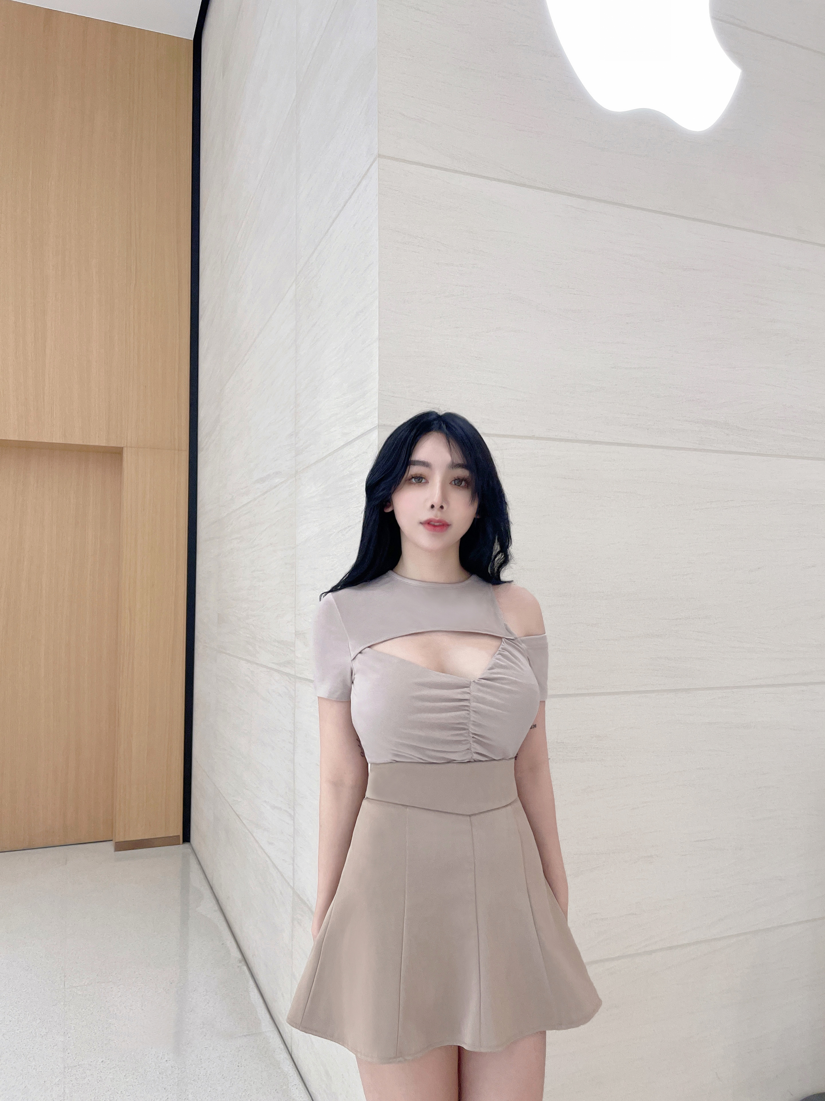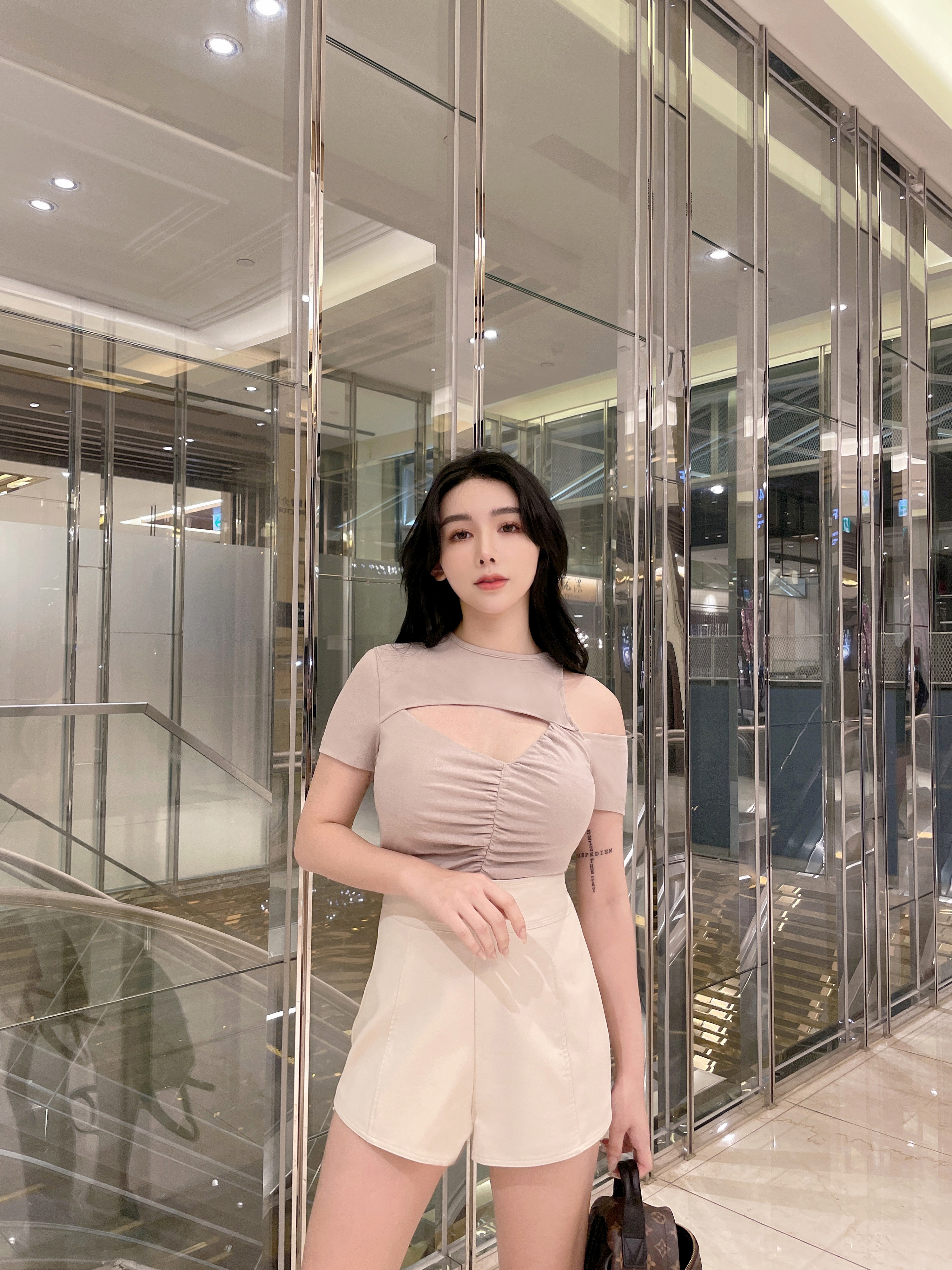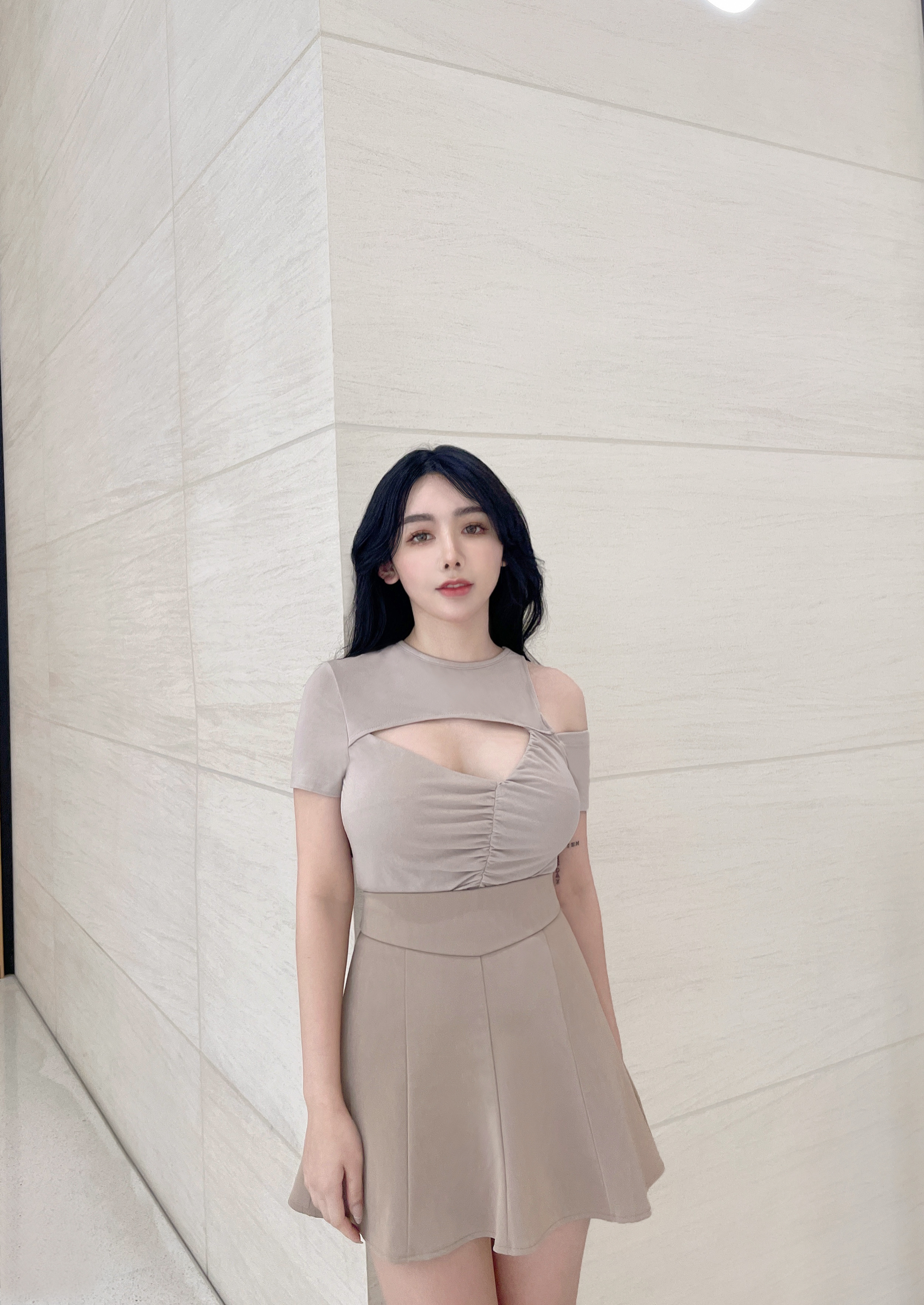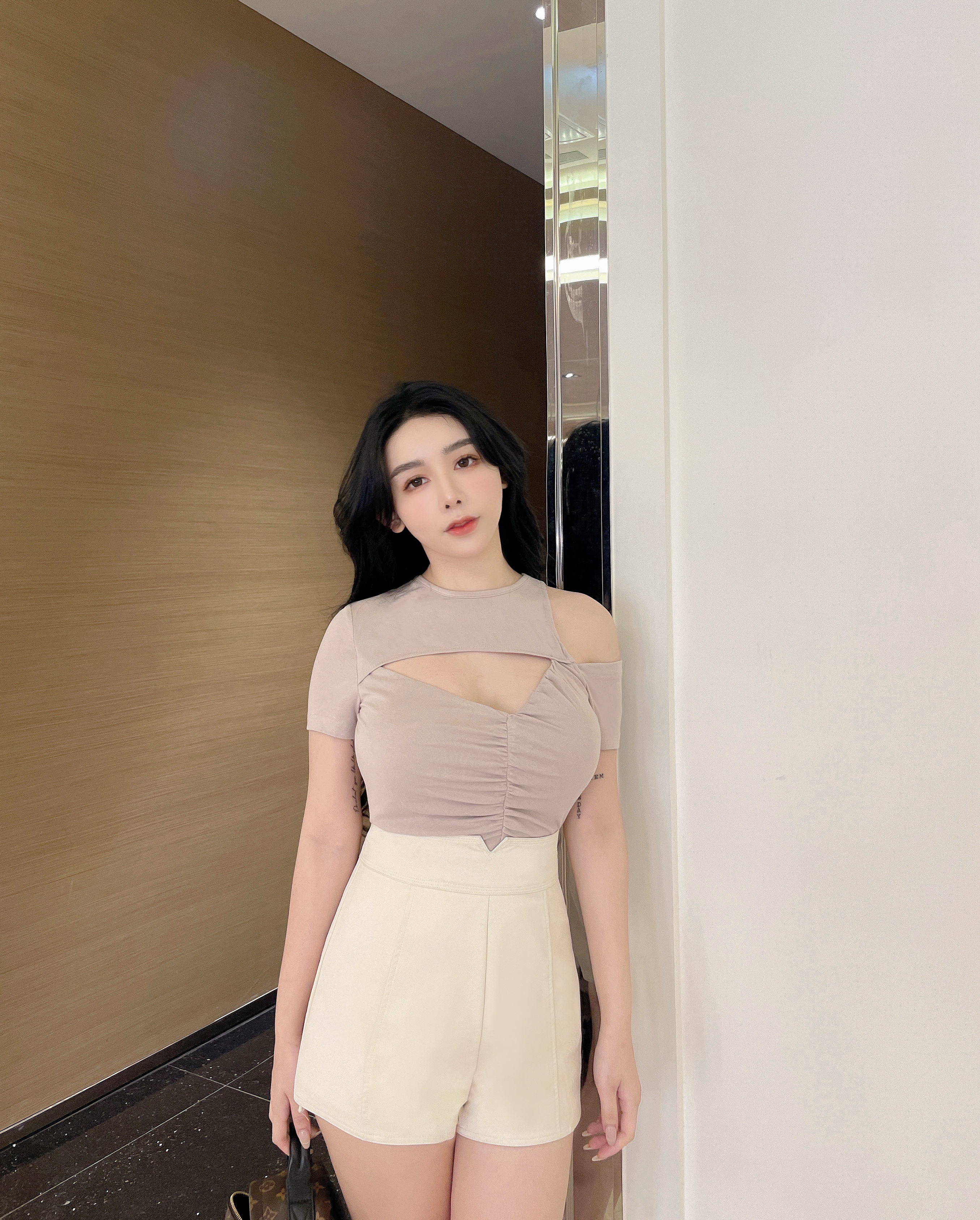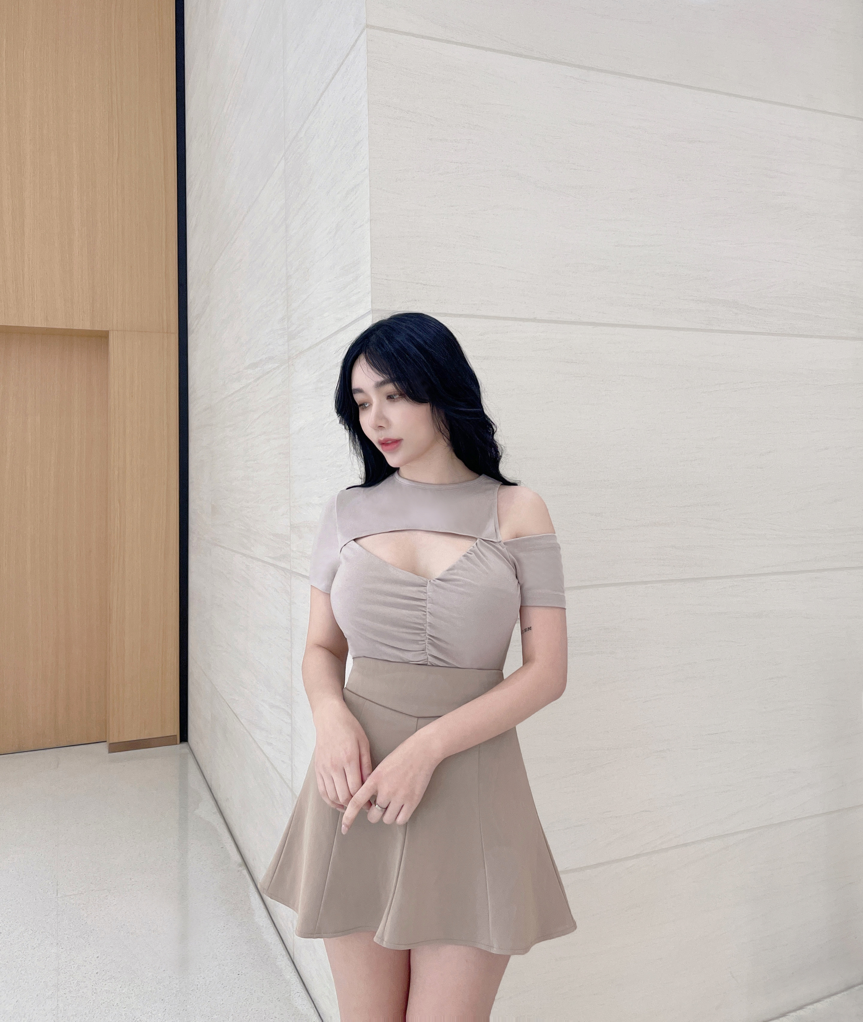 訂製-設計感不對稱鏤空上衣