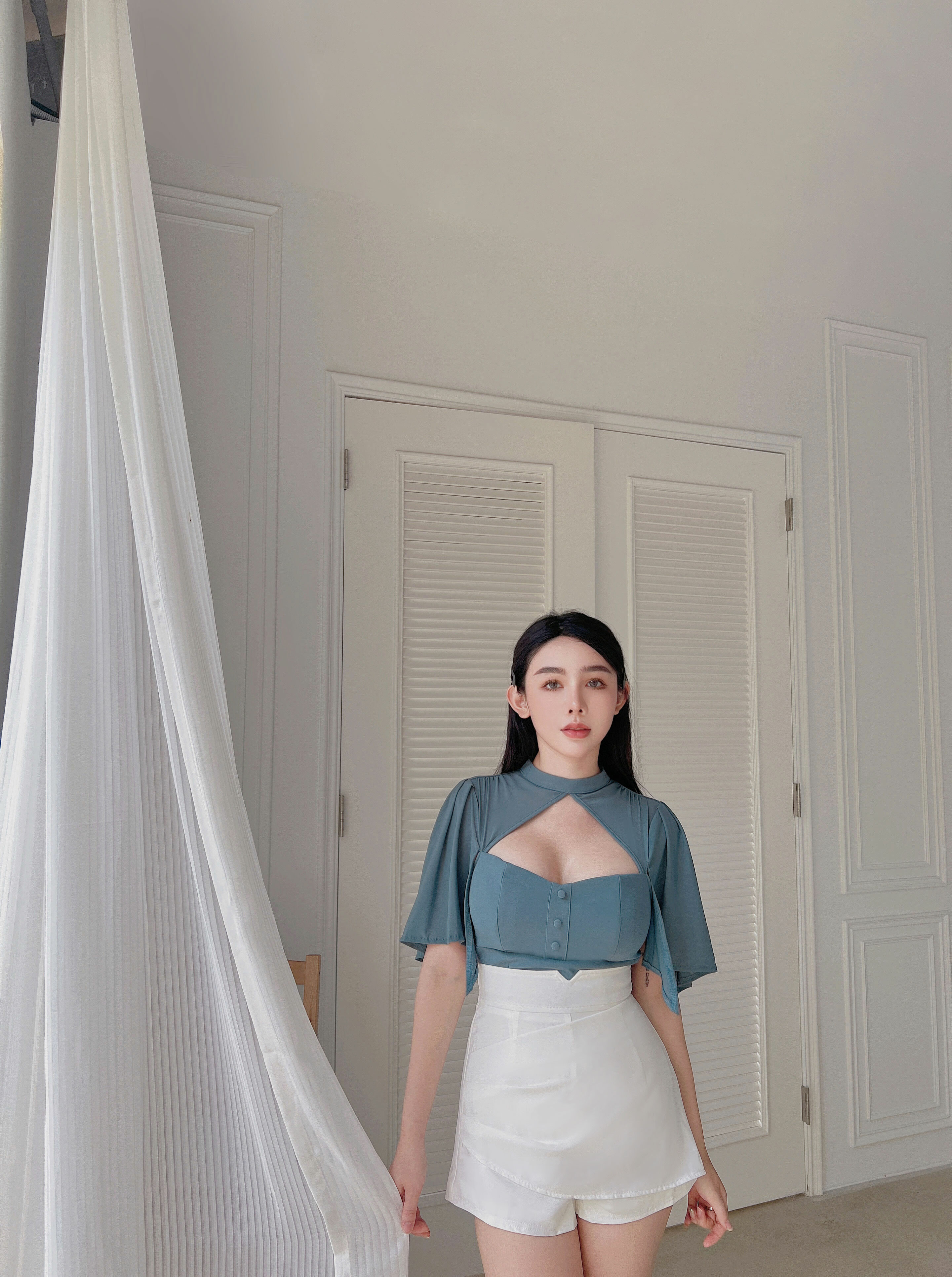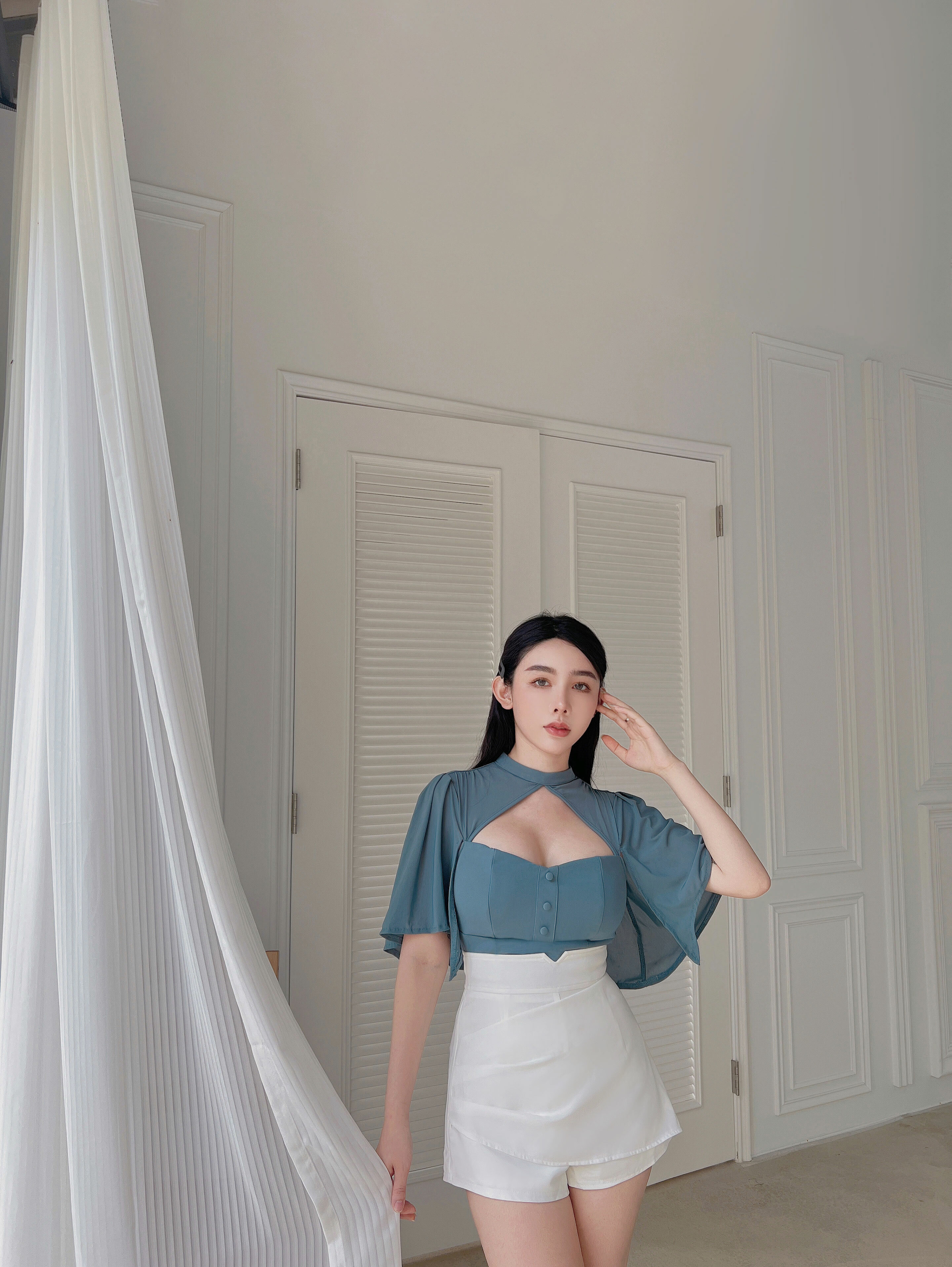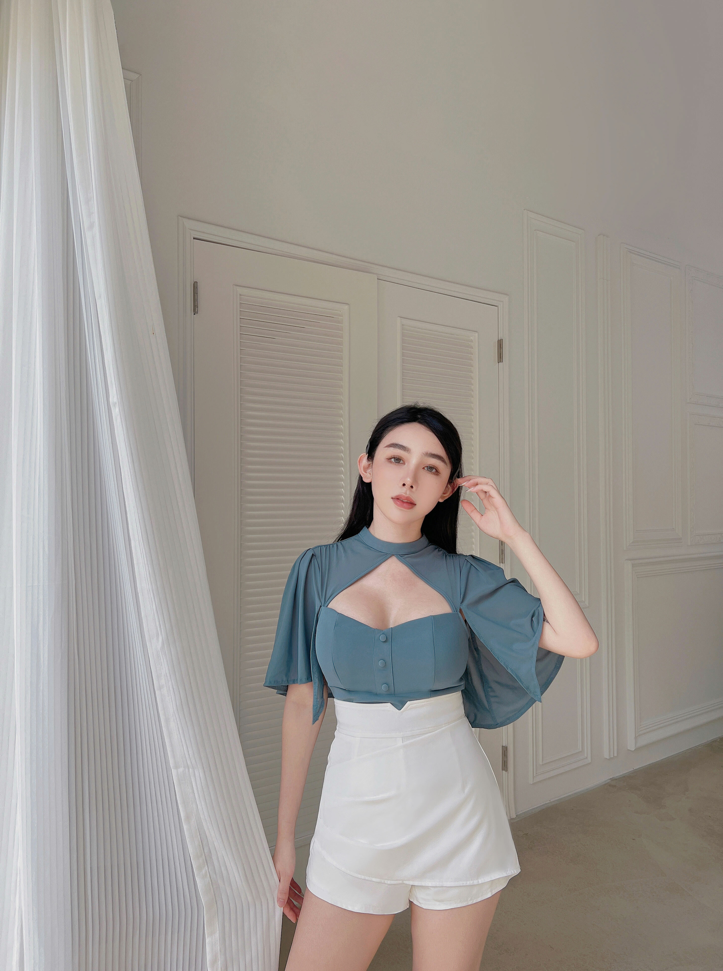 訂製-氣質桃心網紗斗篷上衣