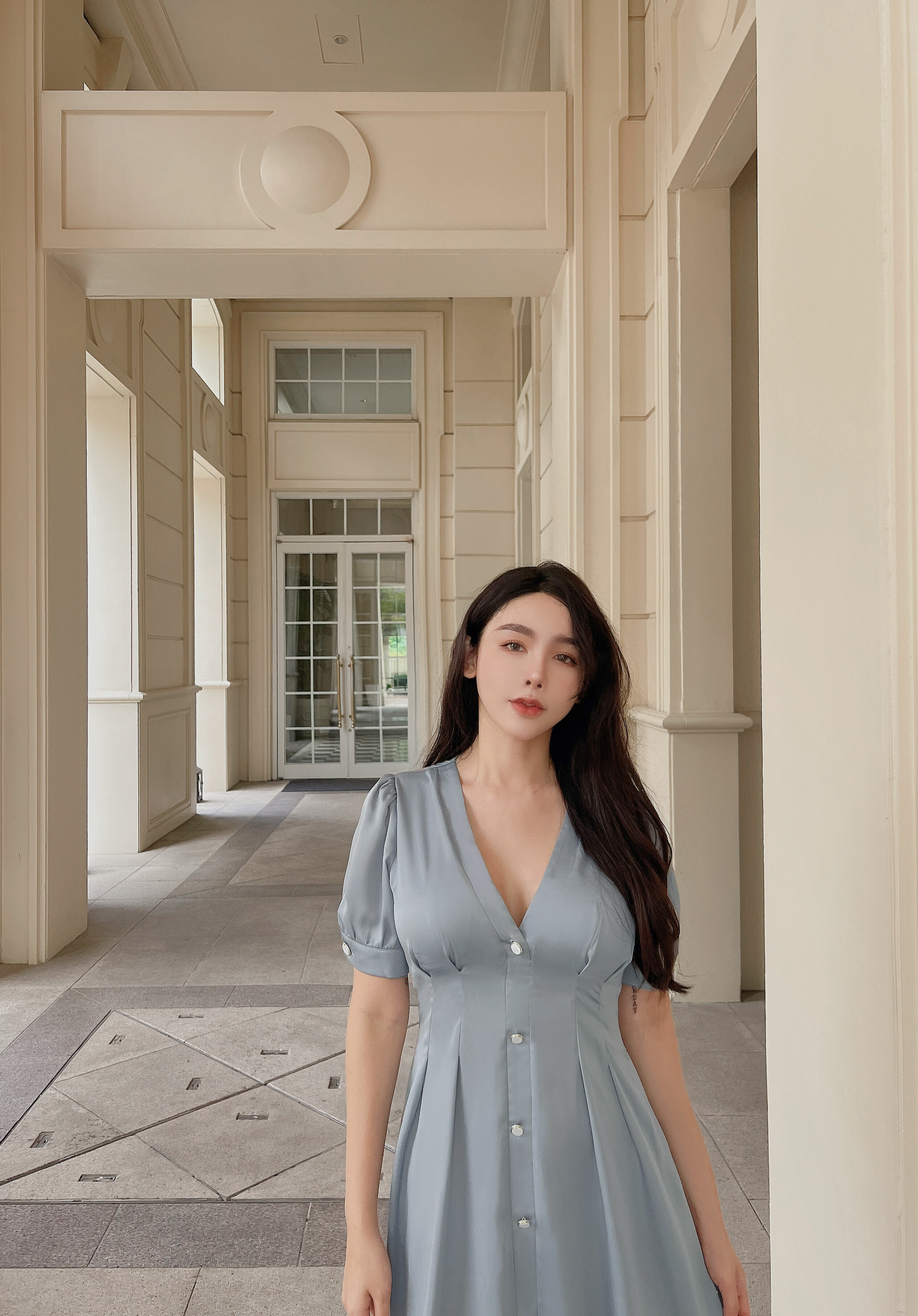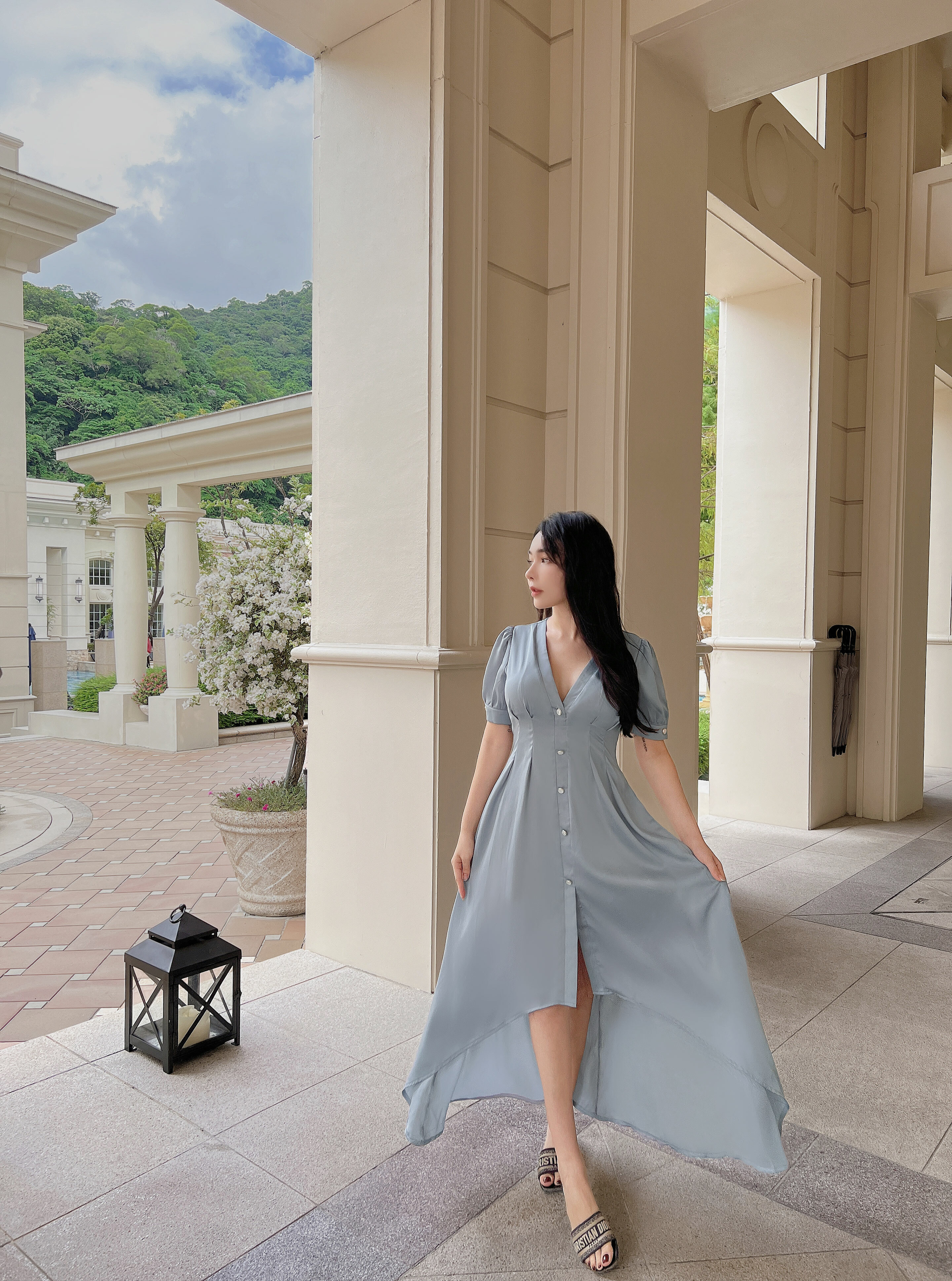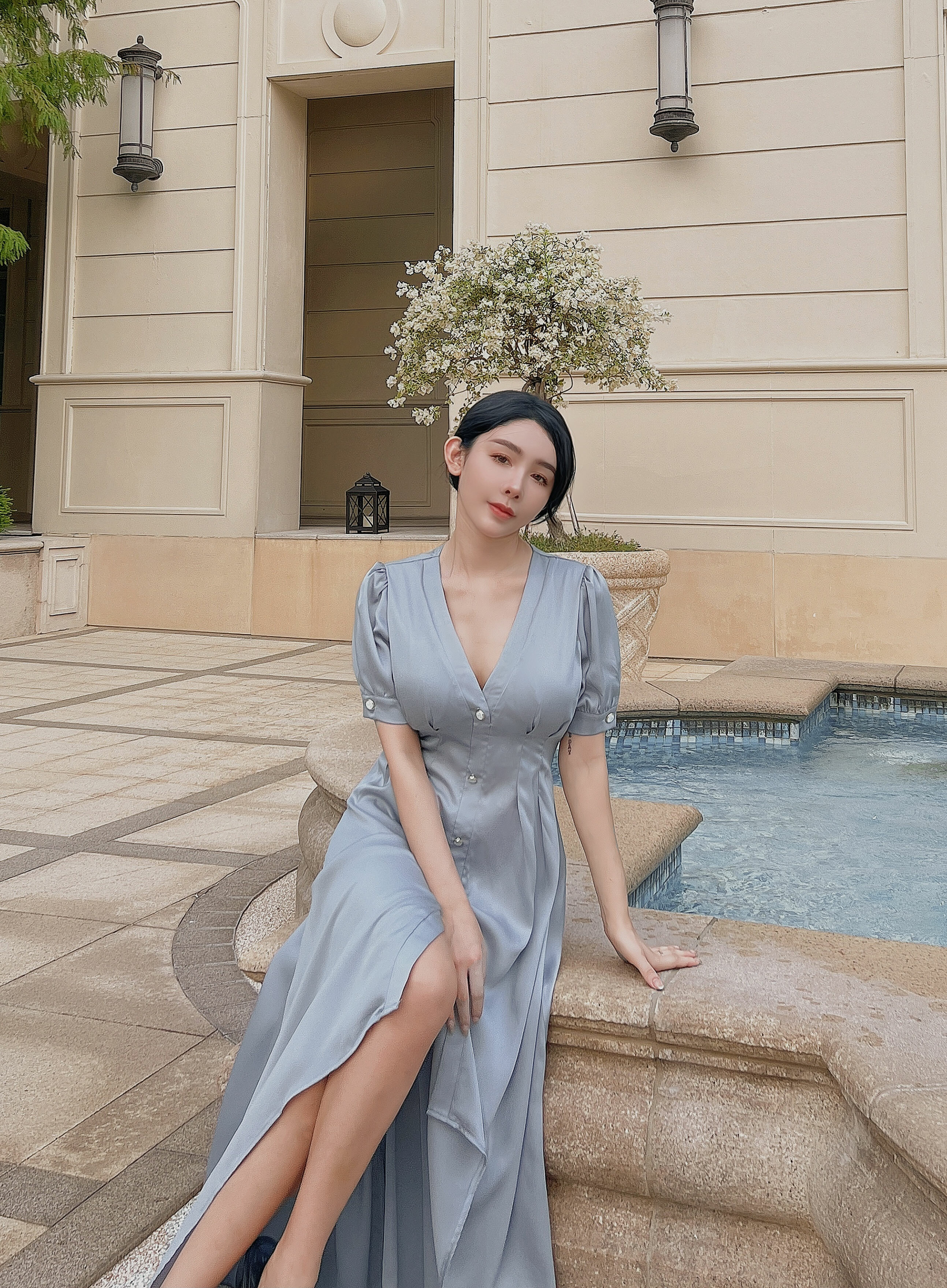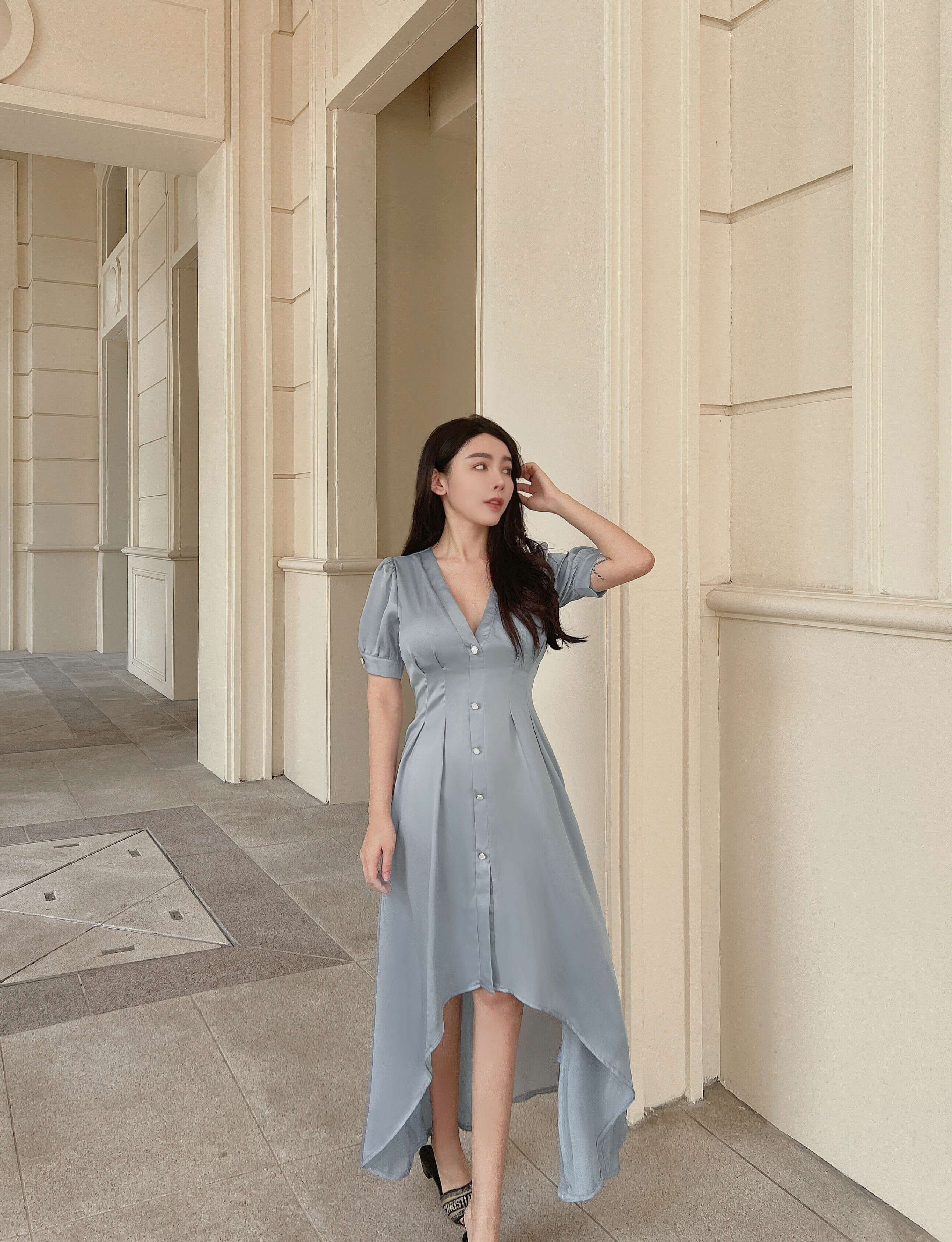緞面材質不同光線下顏色差距較大,平拍照為室內光線,實穿照為室外光線。