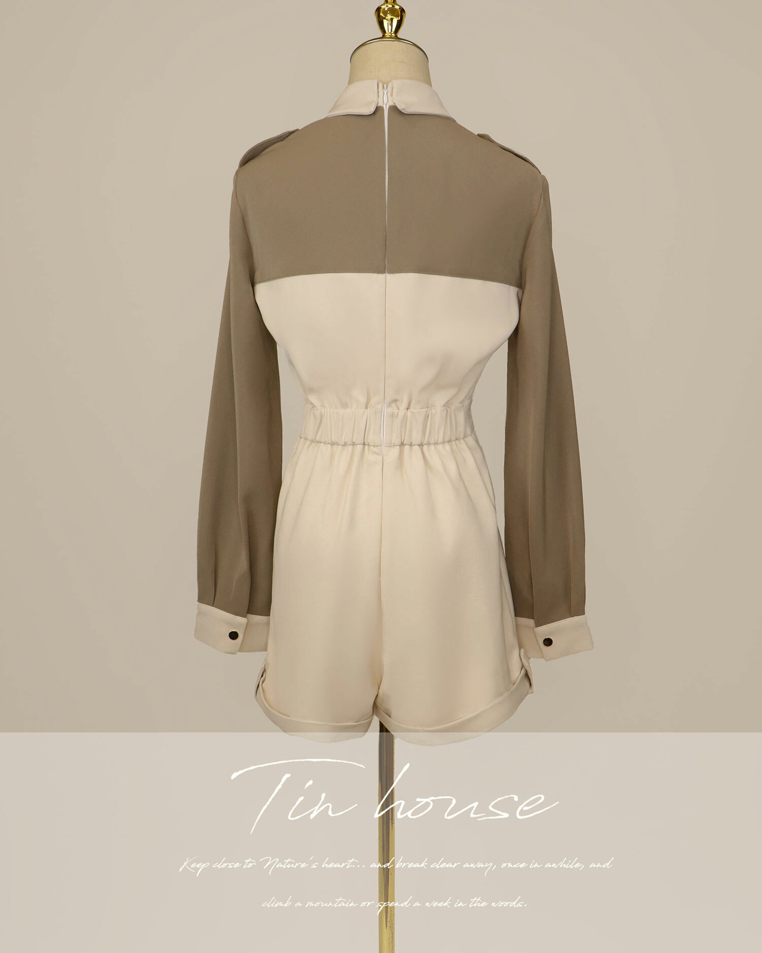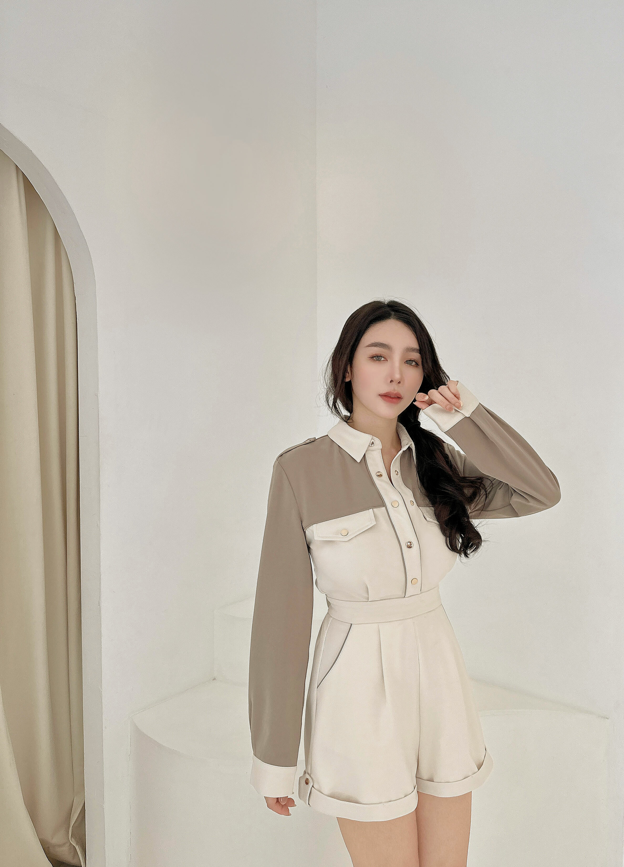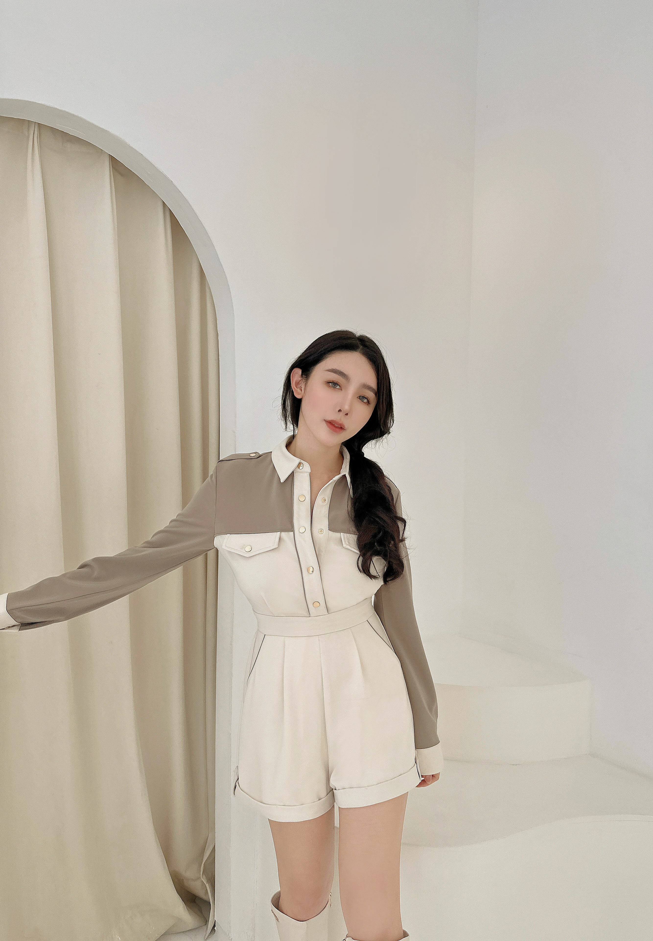 ⭒訂製-休閒撞色有領連身短褲