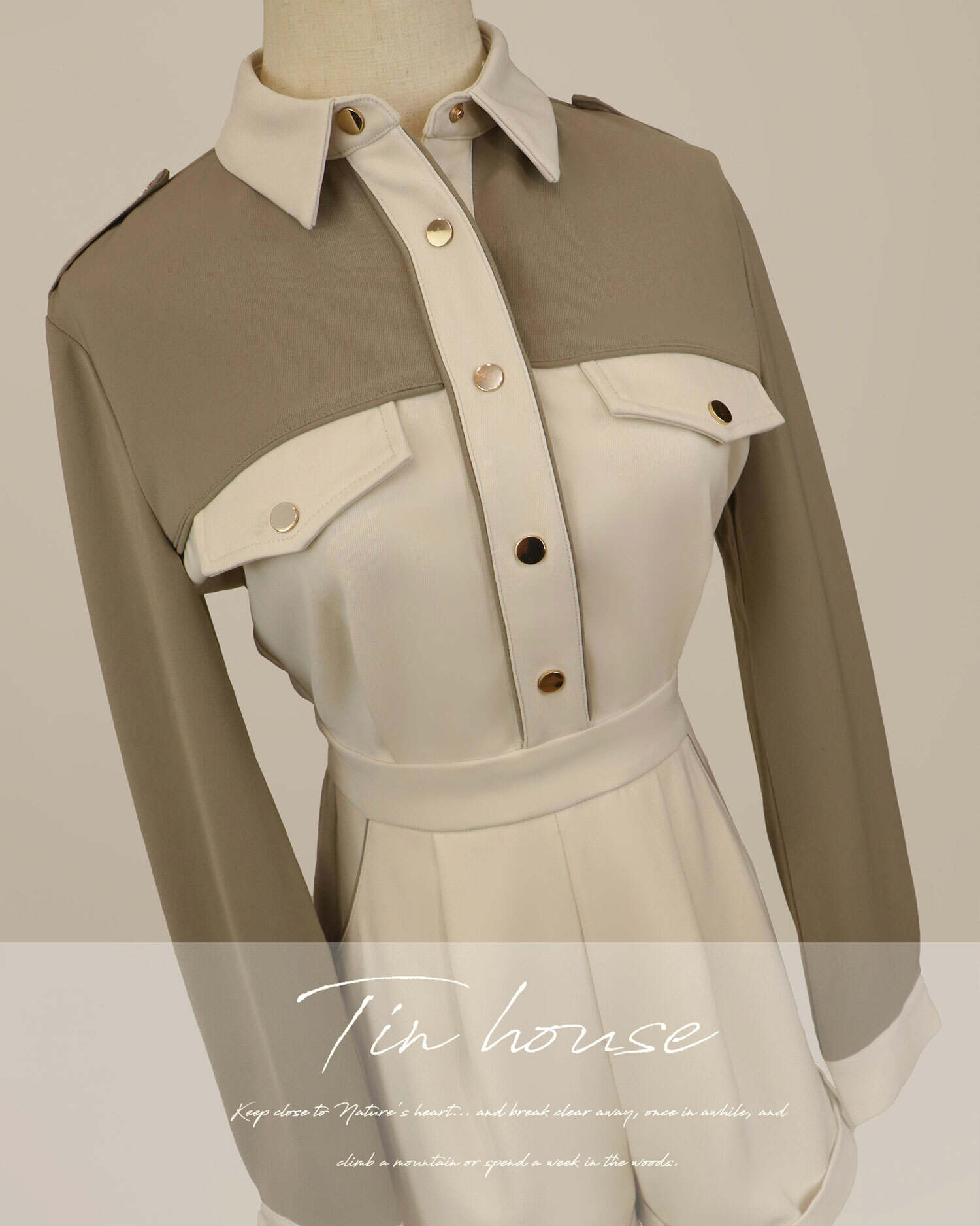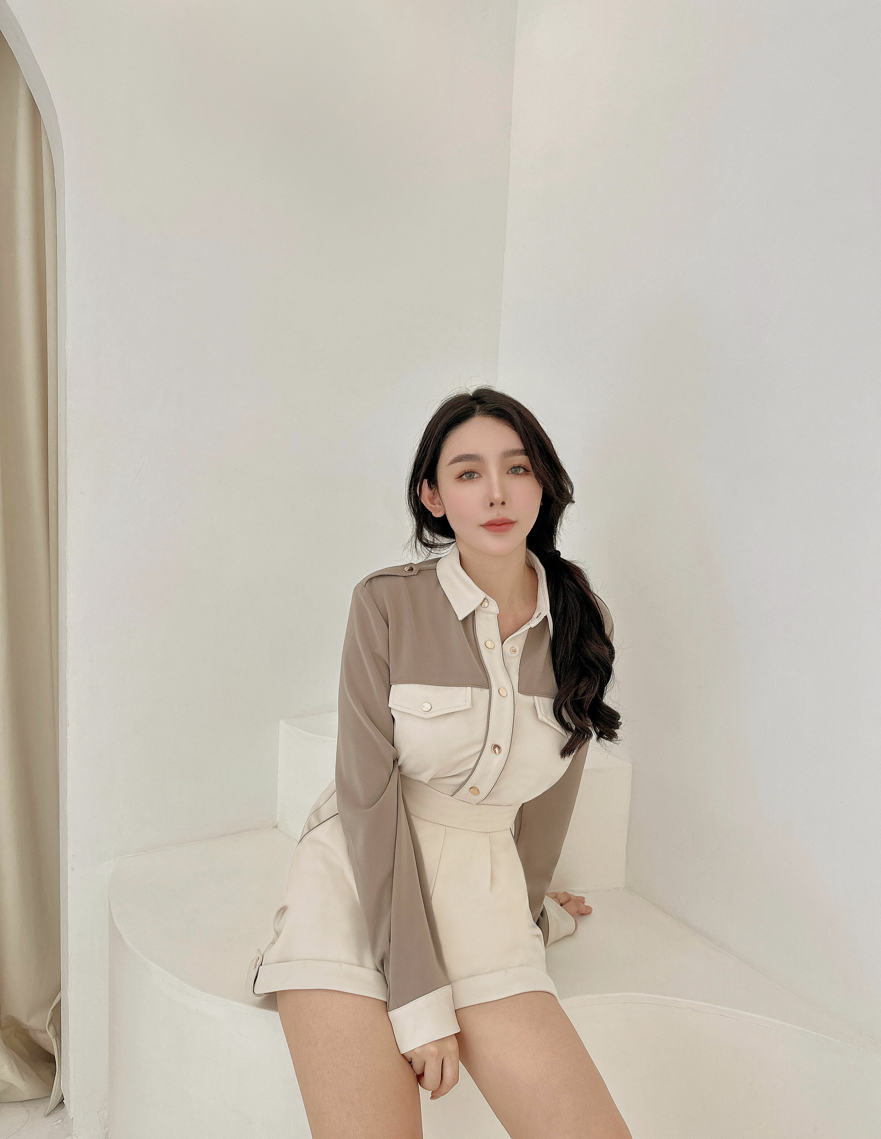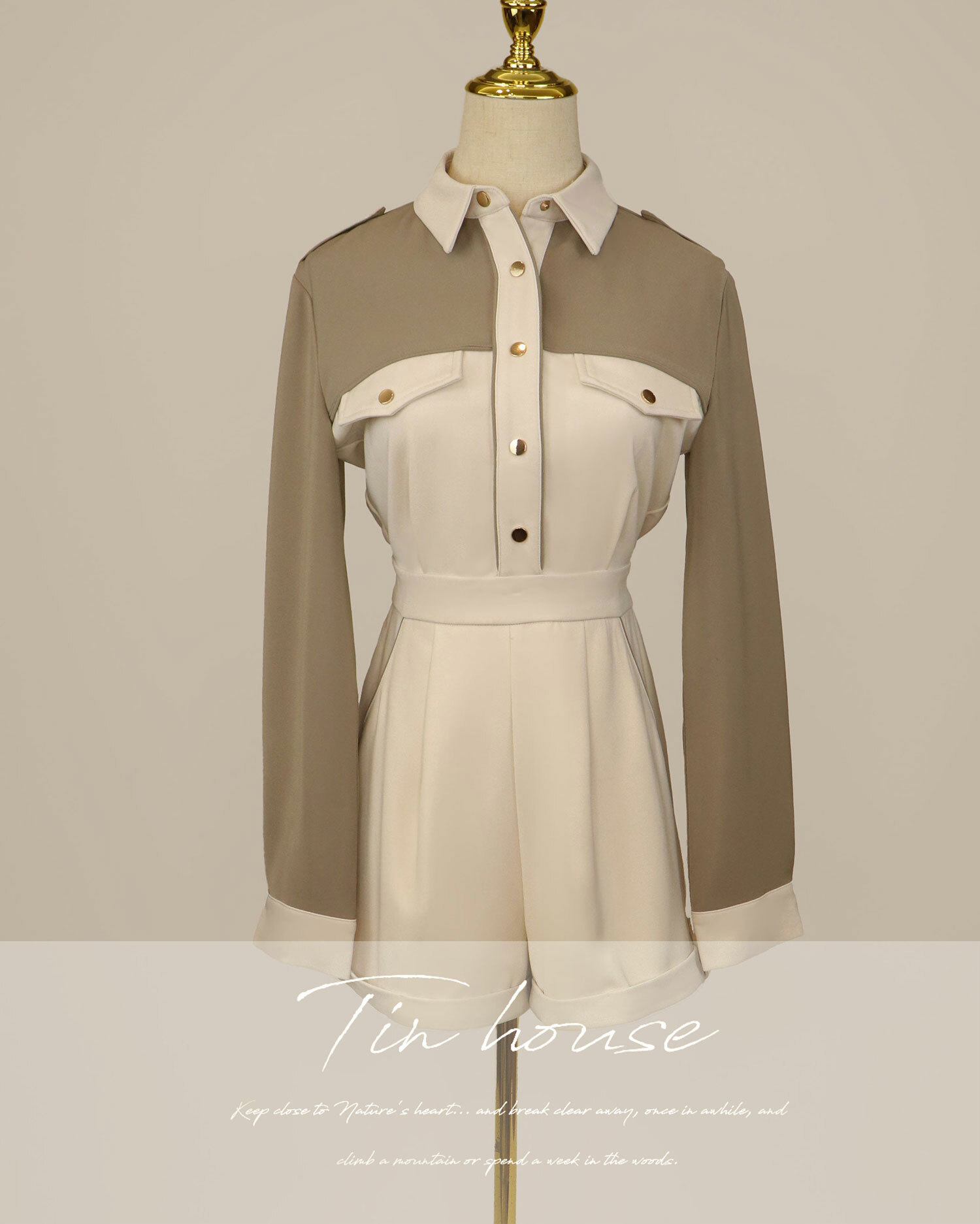 ⭒訂製-休閒撞色有領連身短褲