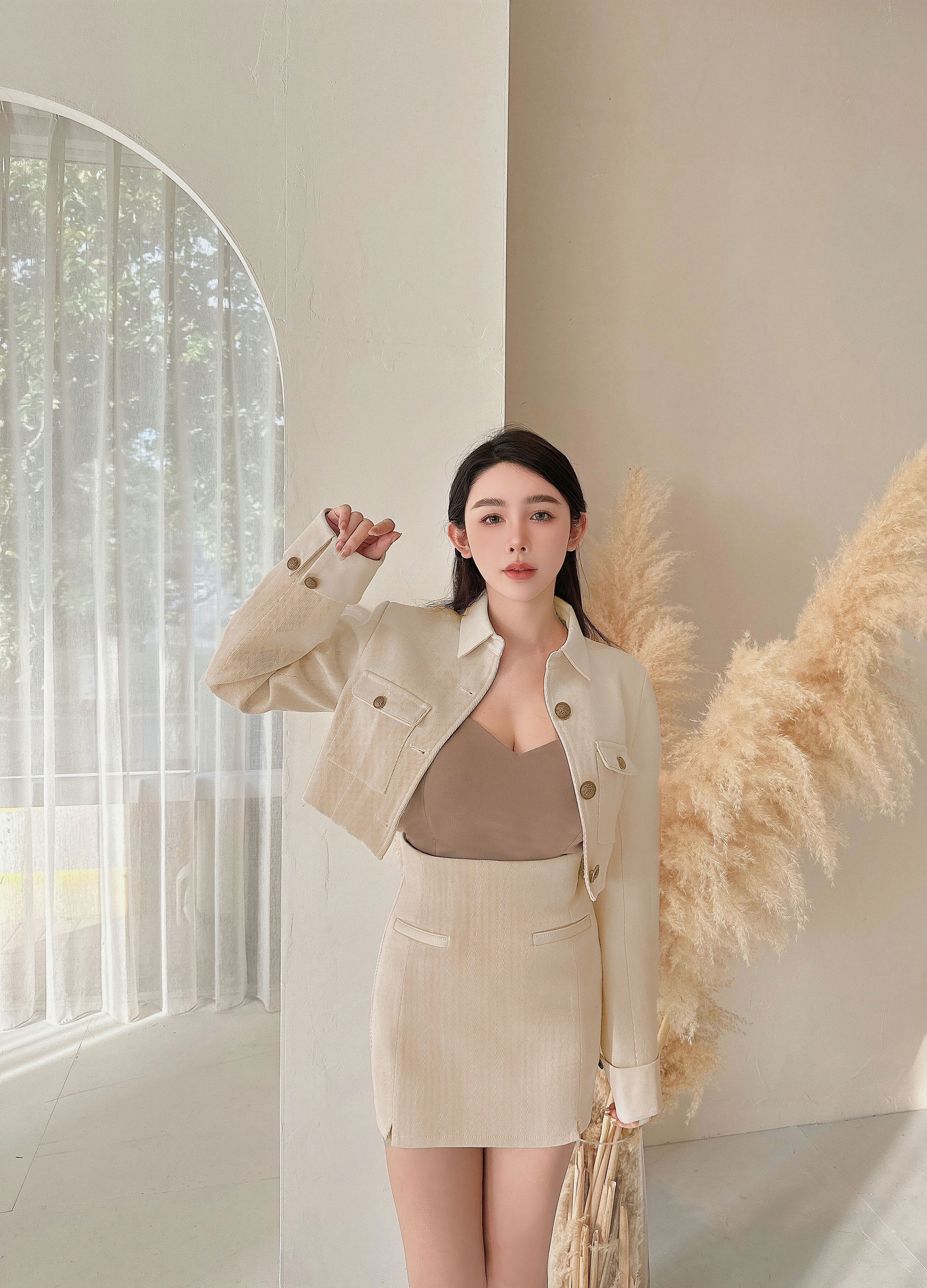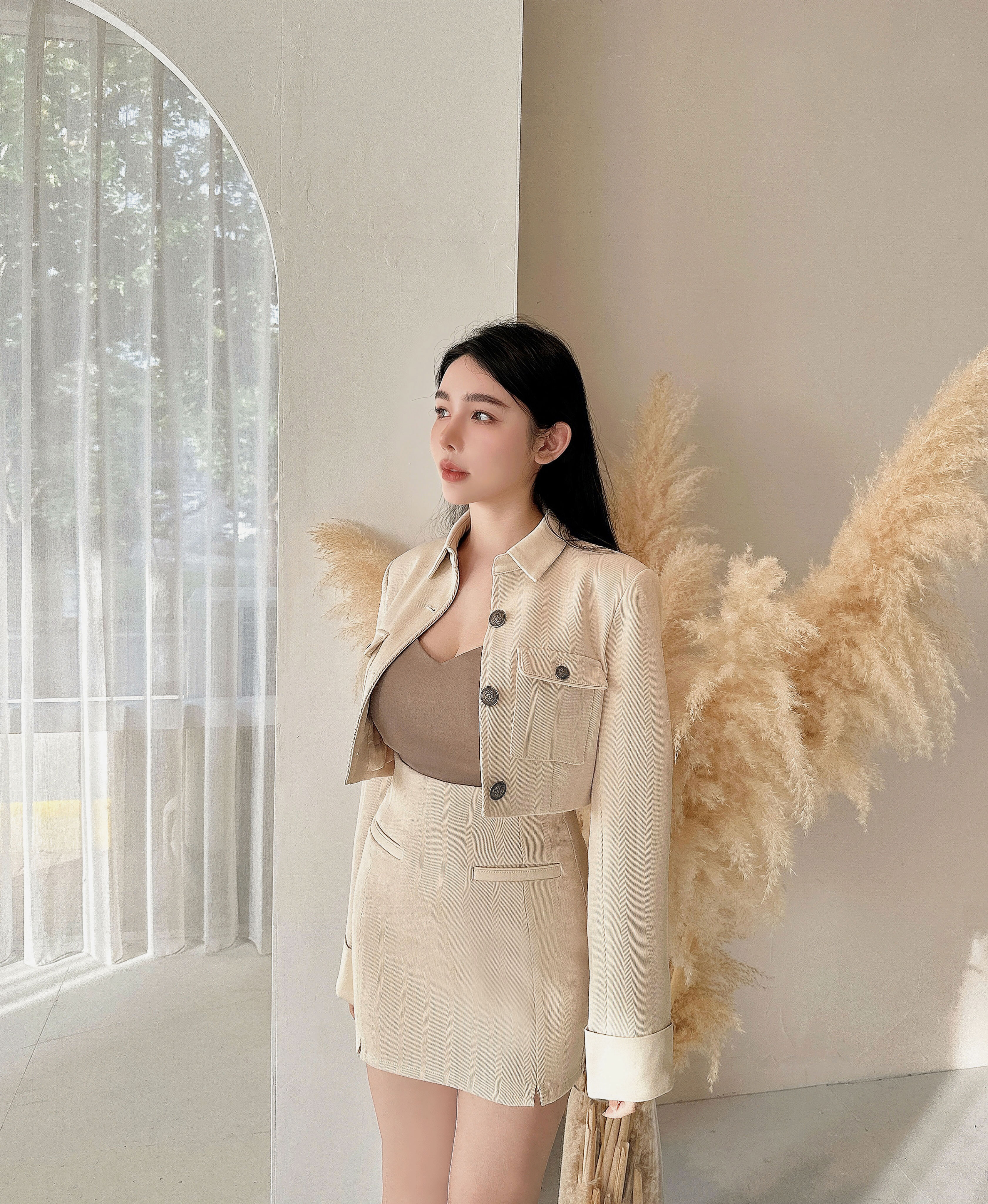 ⭒訂製-俐落拼接皮革撞色套裝 (下身偏大)