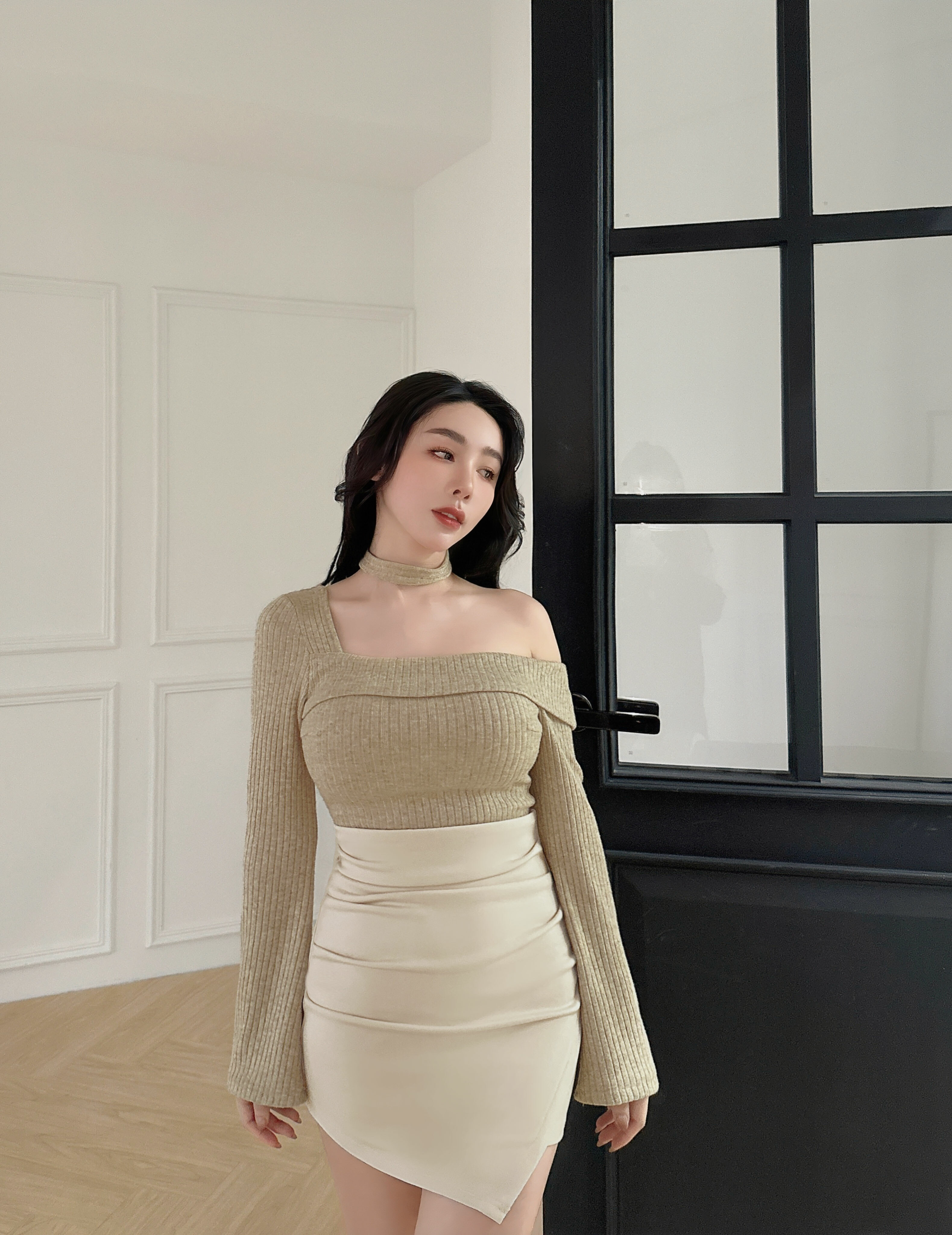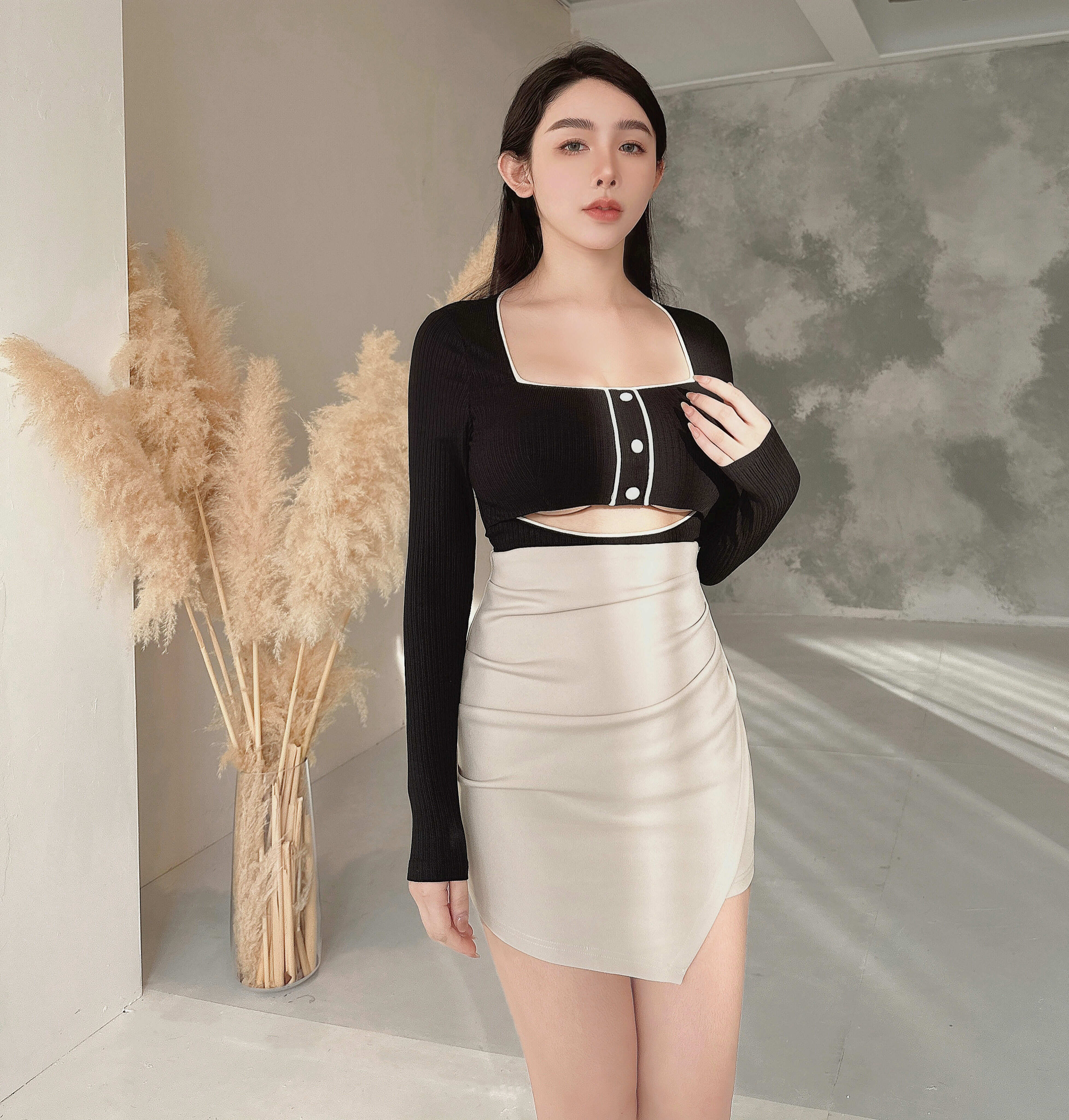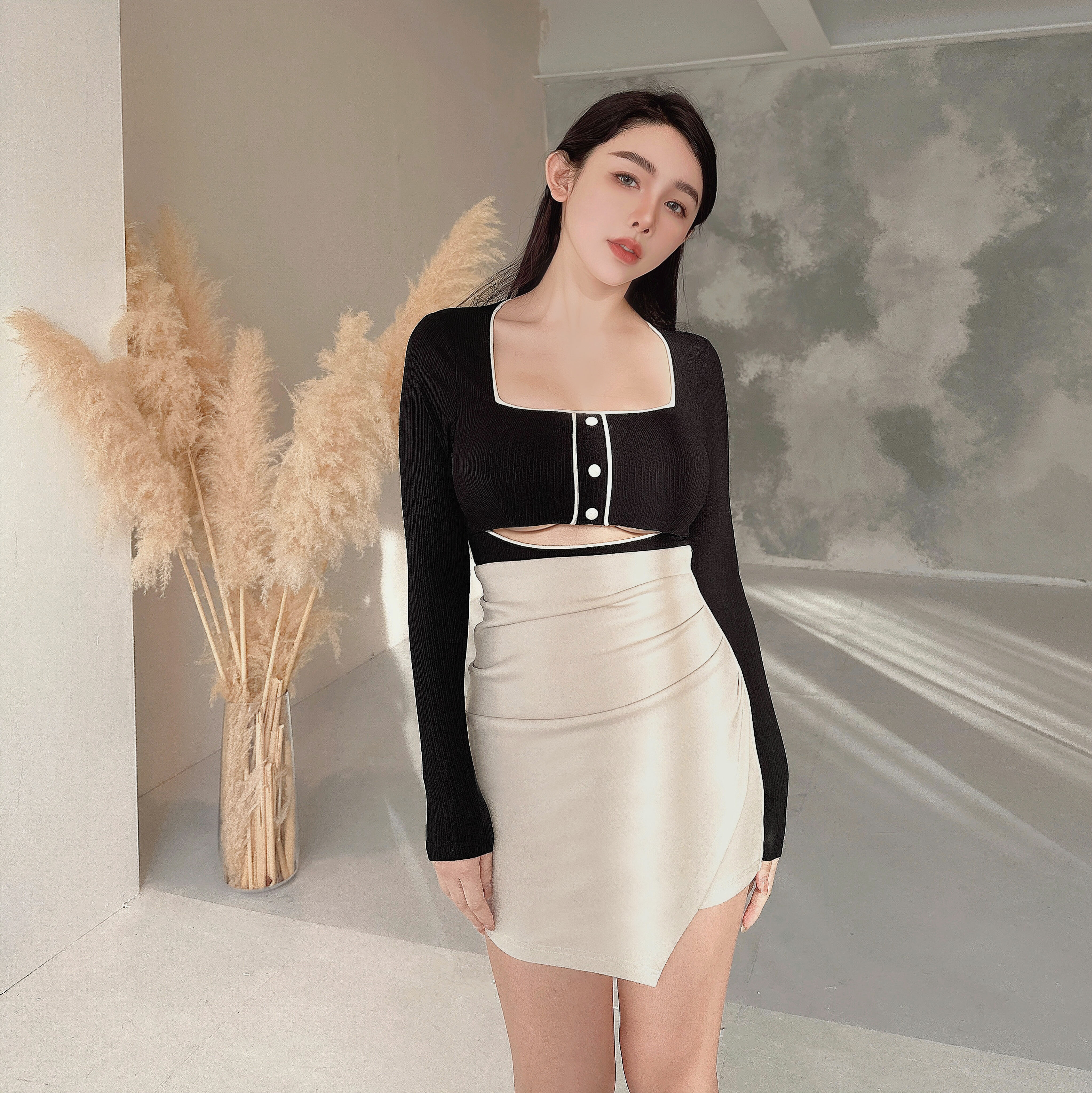 ⭒訂製-素面彈力高腰抓皺包裙