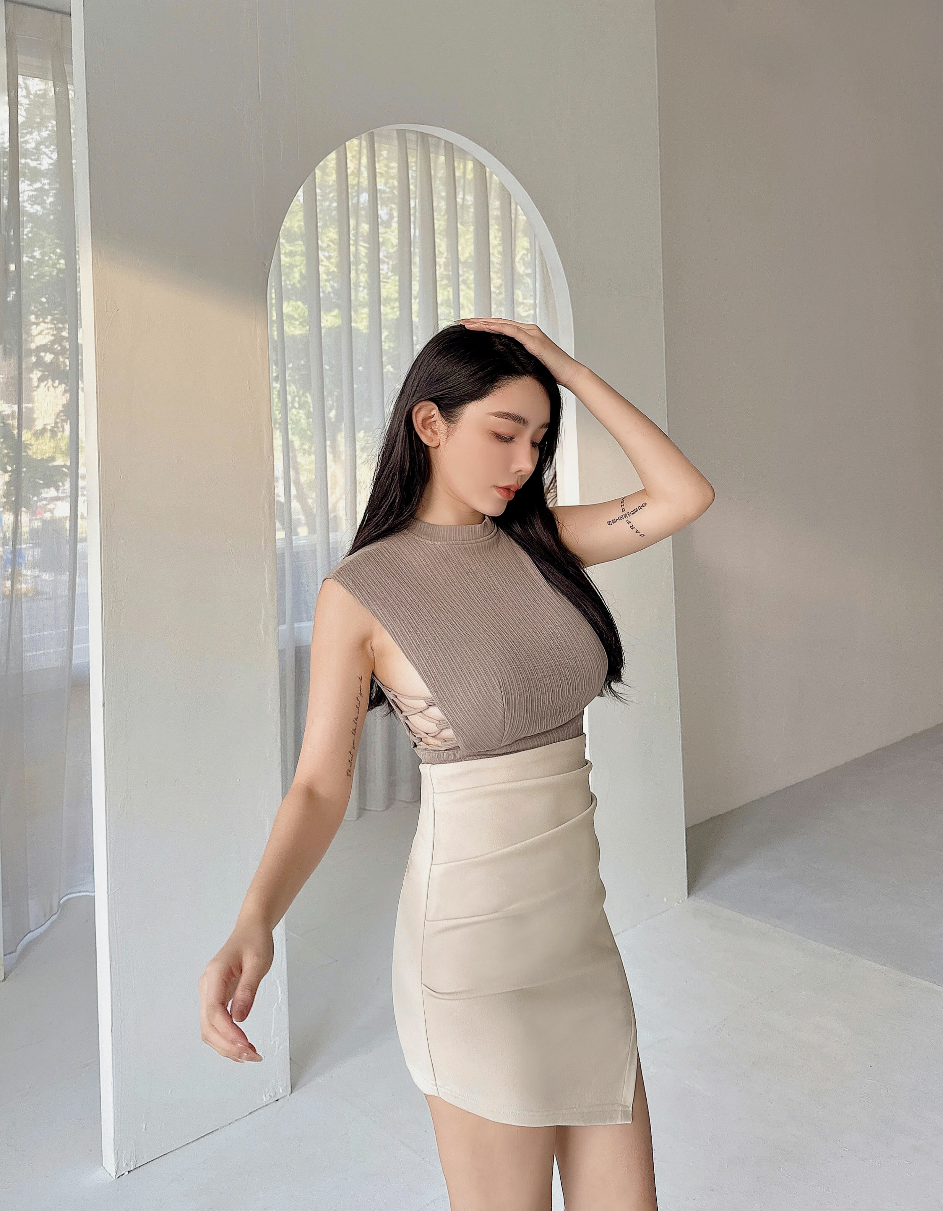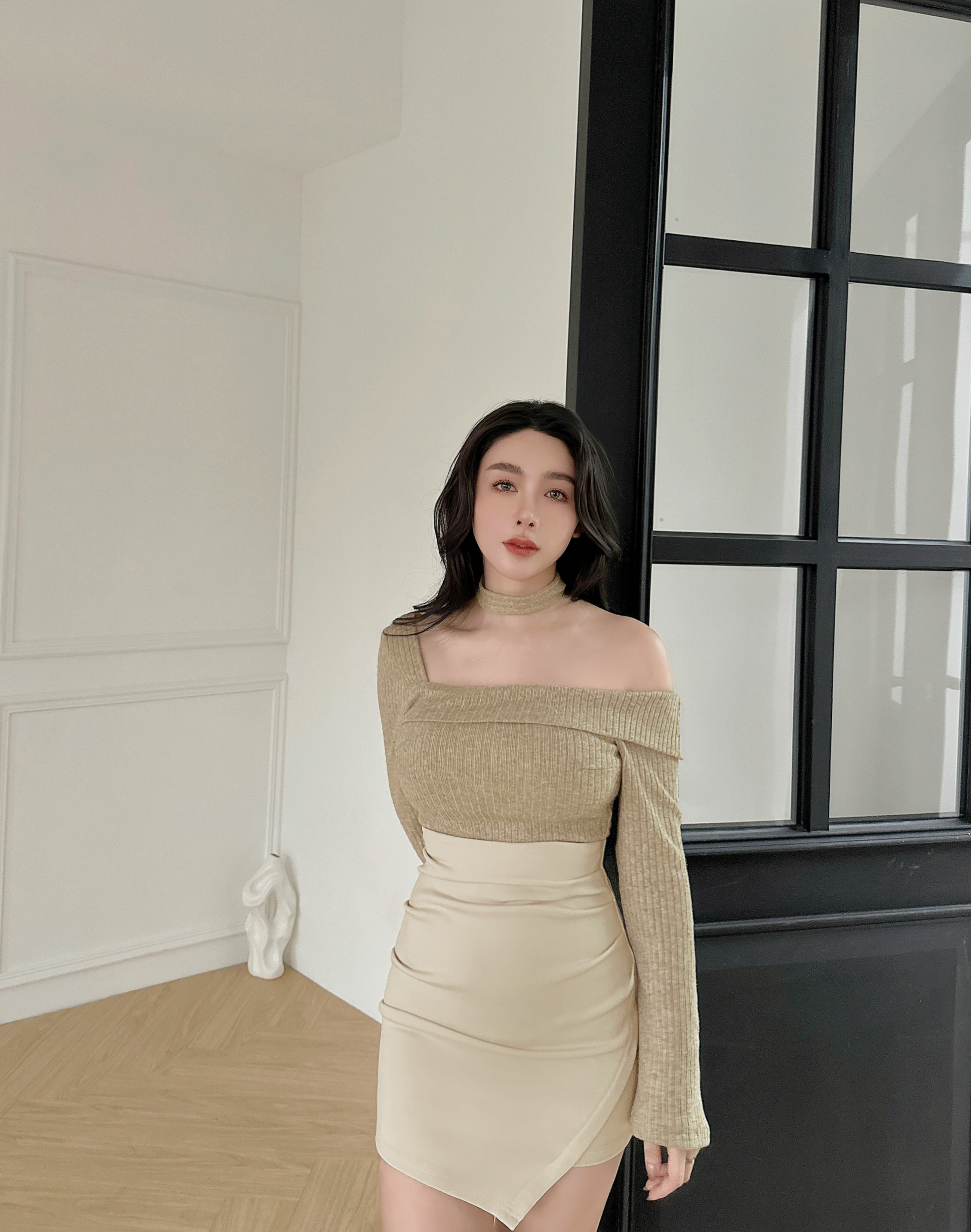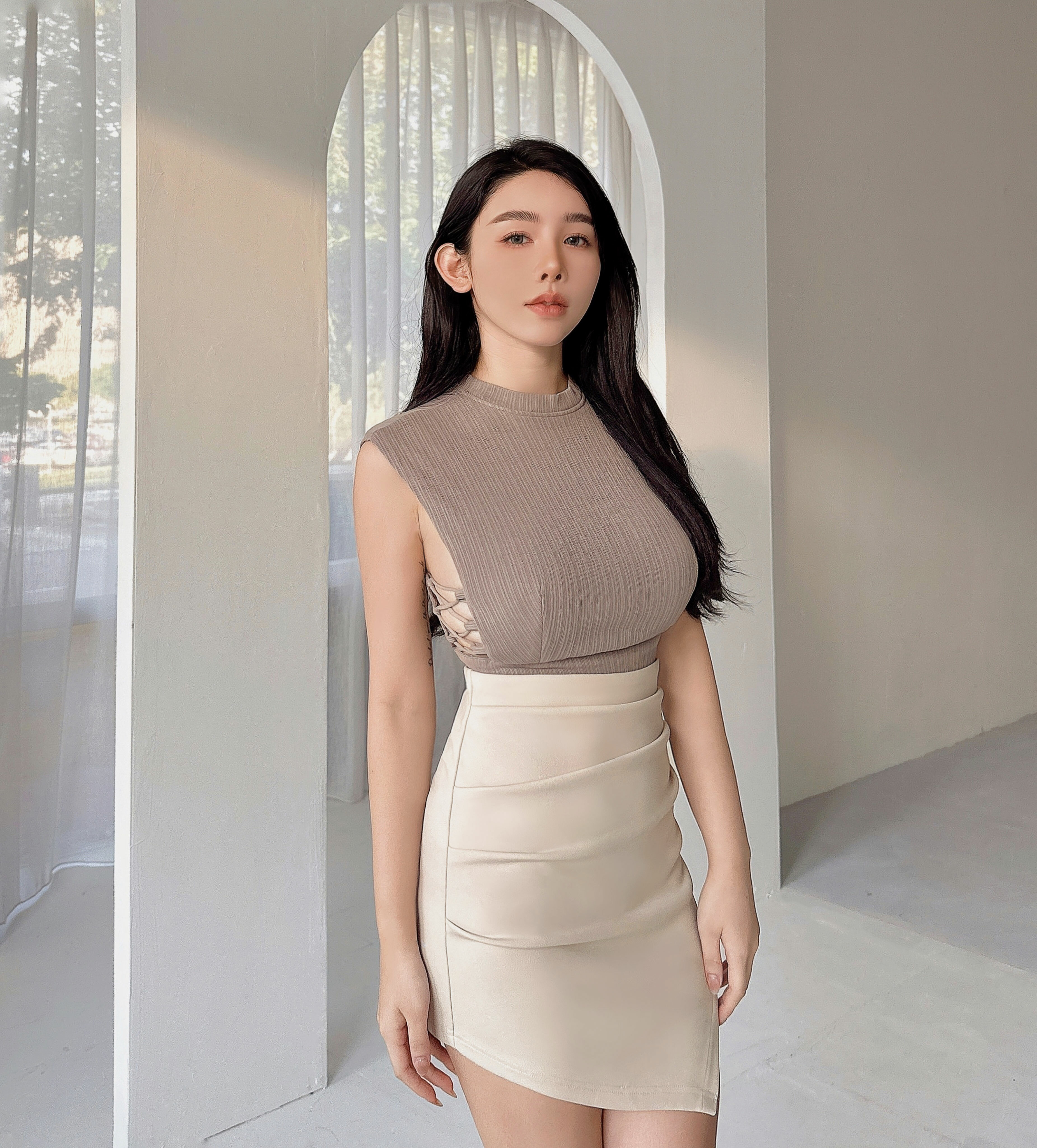⭒訂製-素面彈力高腰抓皺包裙