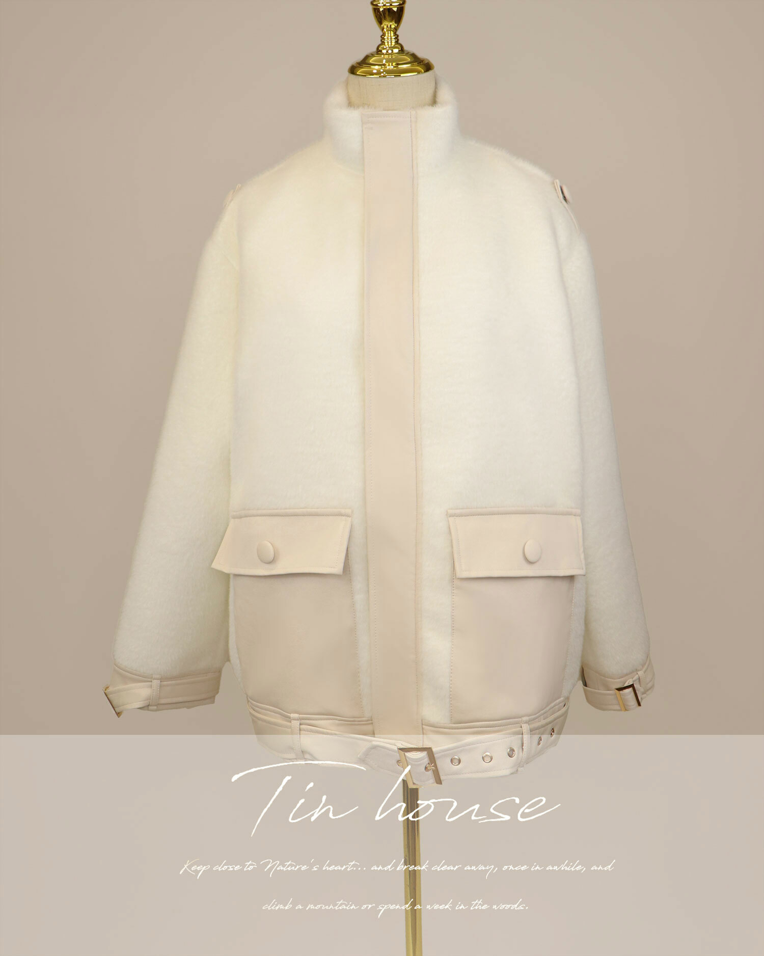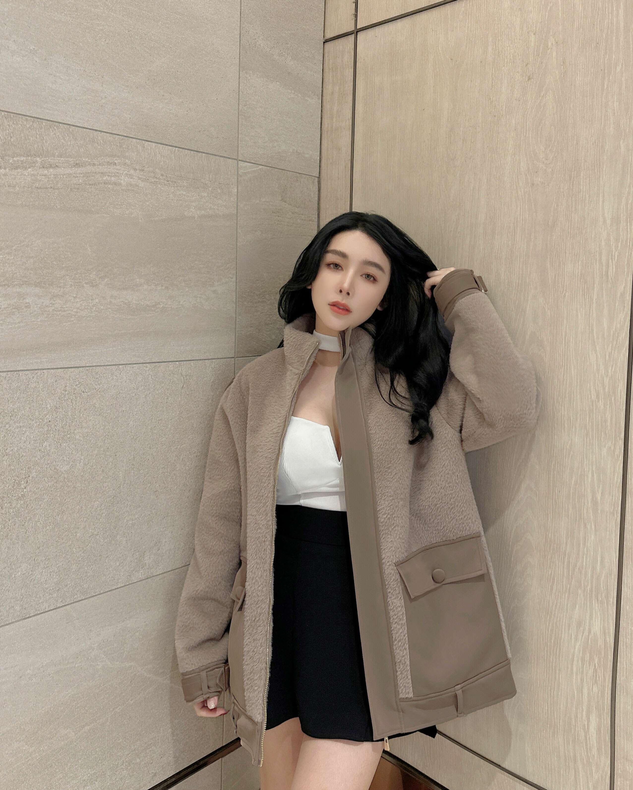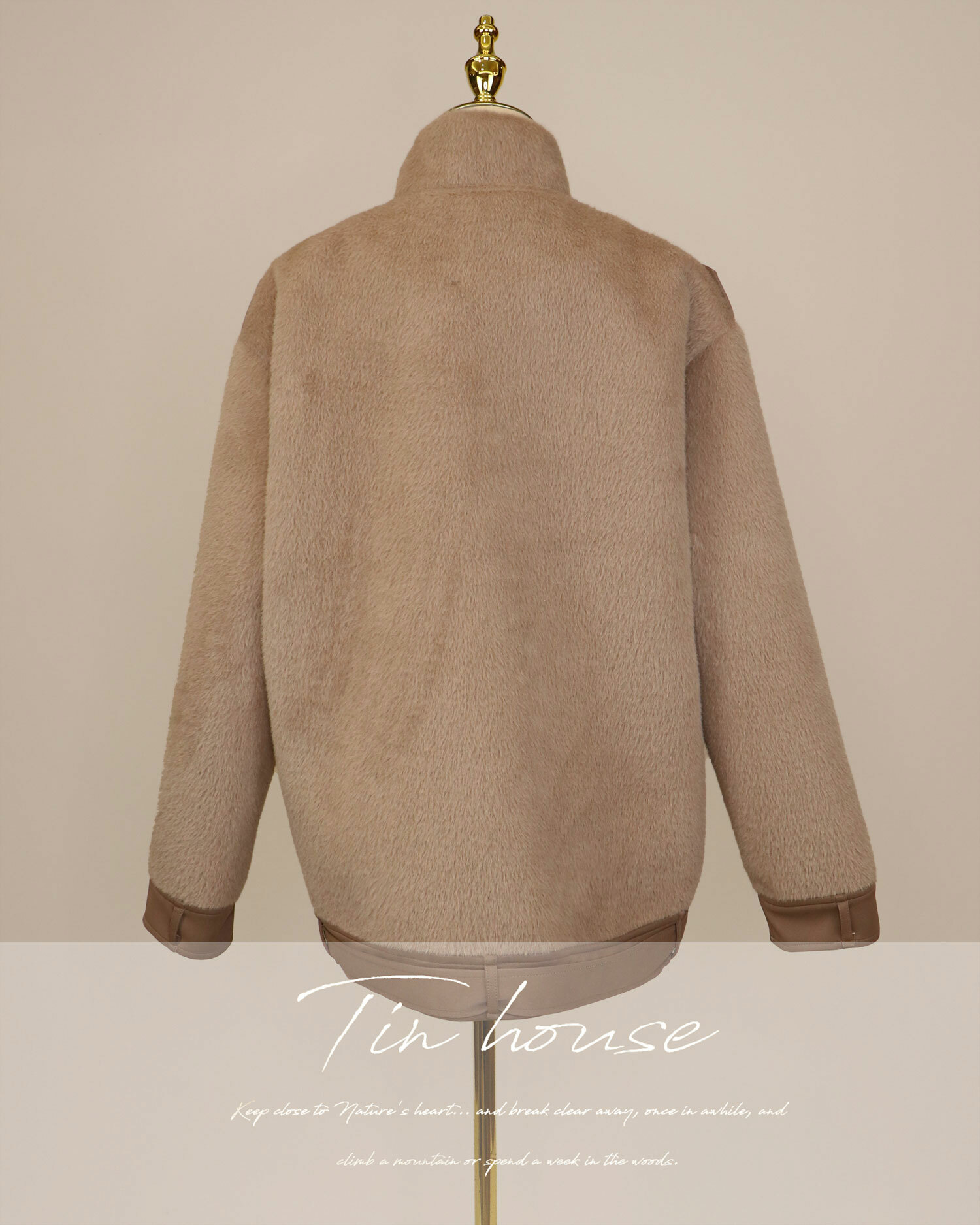 ⭒訂製-立領皮革拼接拉鍊毛毛外套