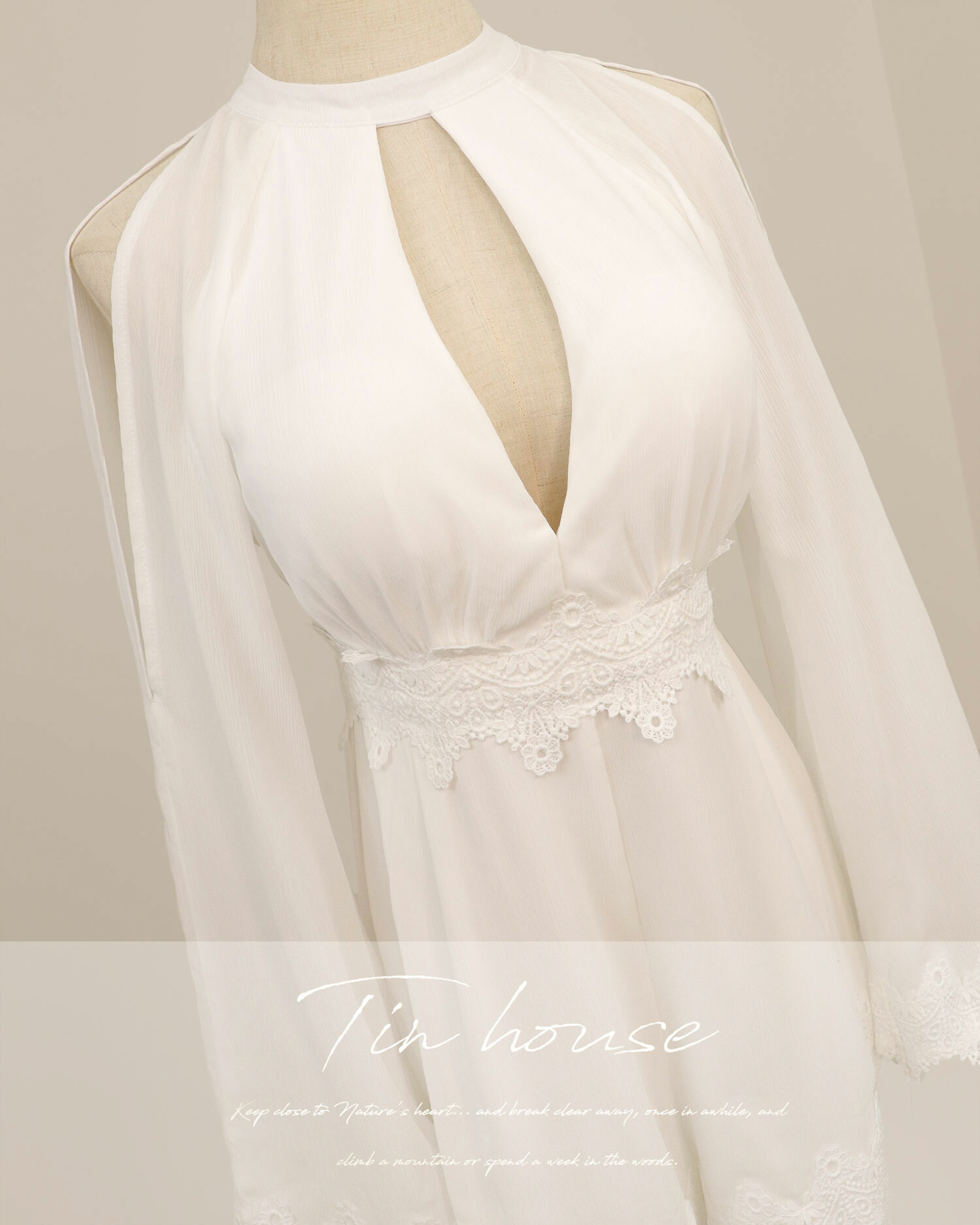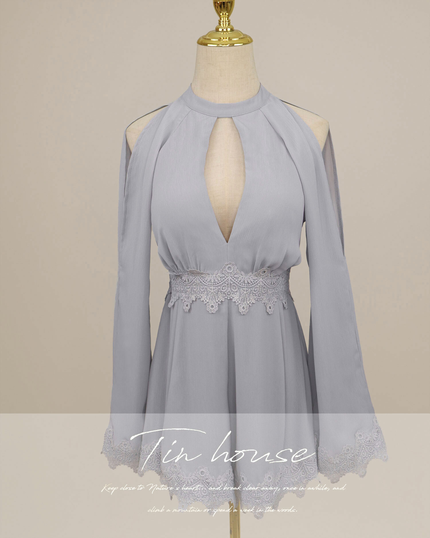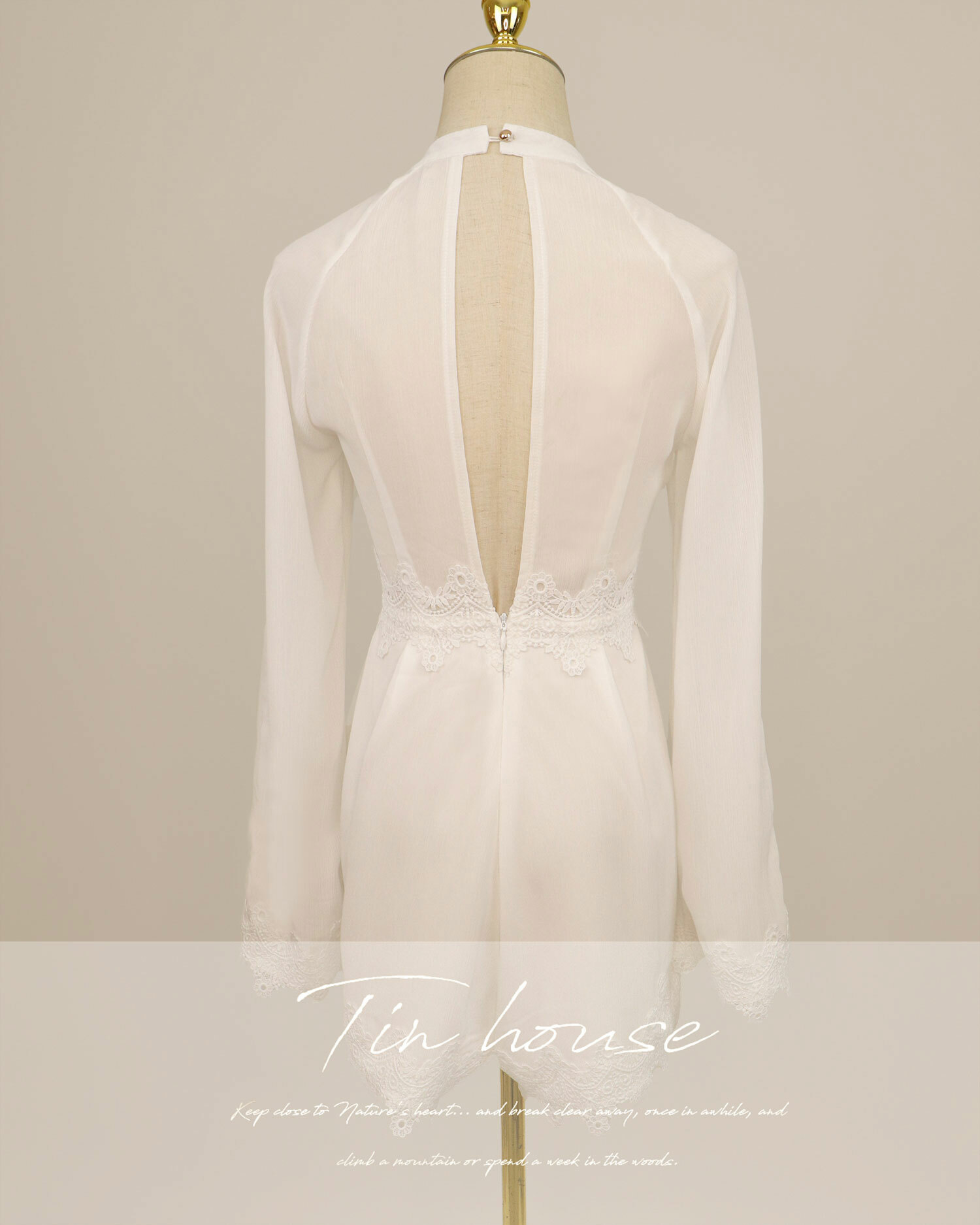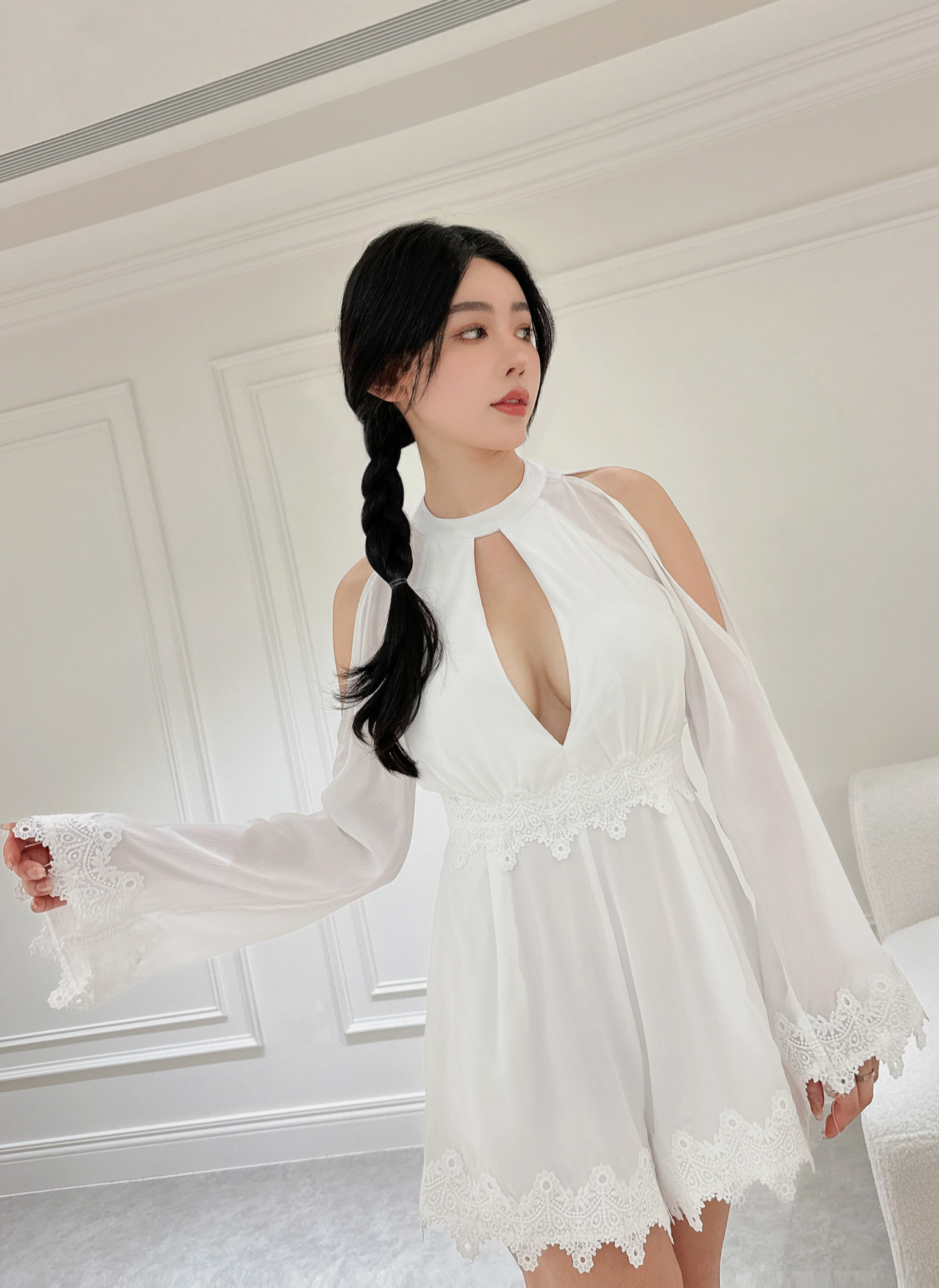 ⭒訂製-重工雕花露肩喇叭袖連身短褲