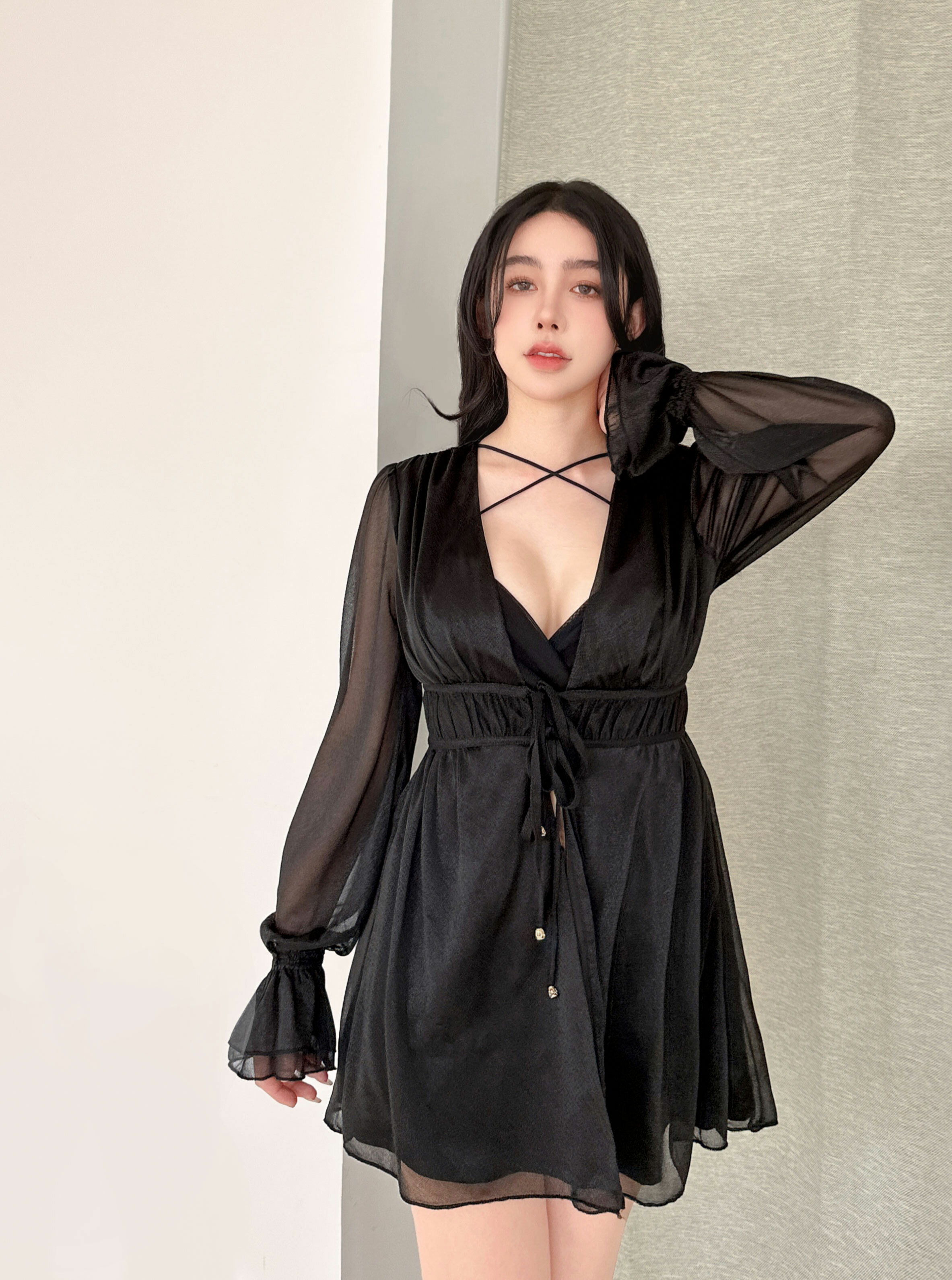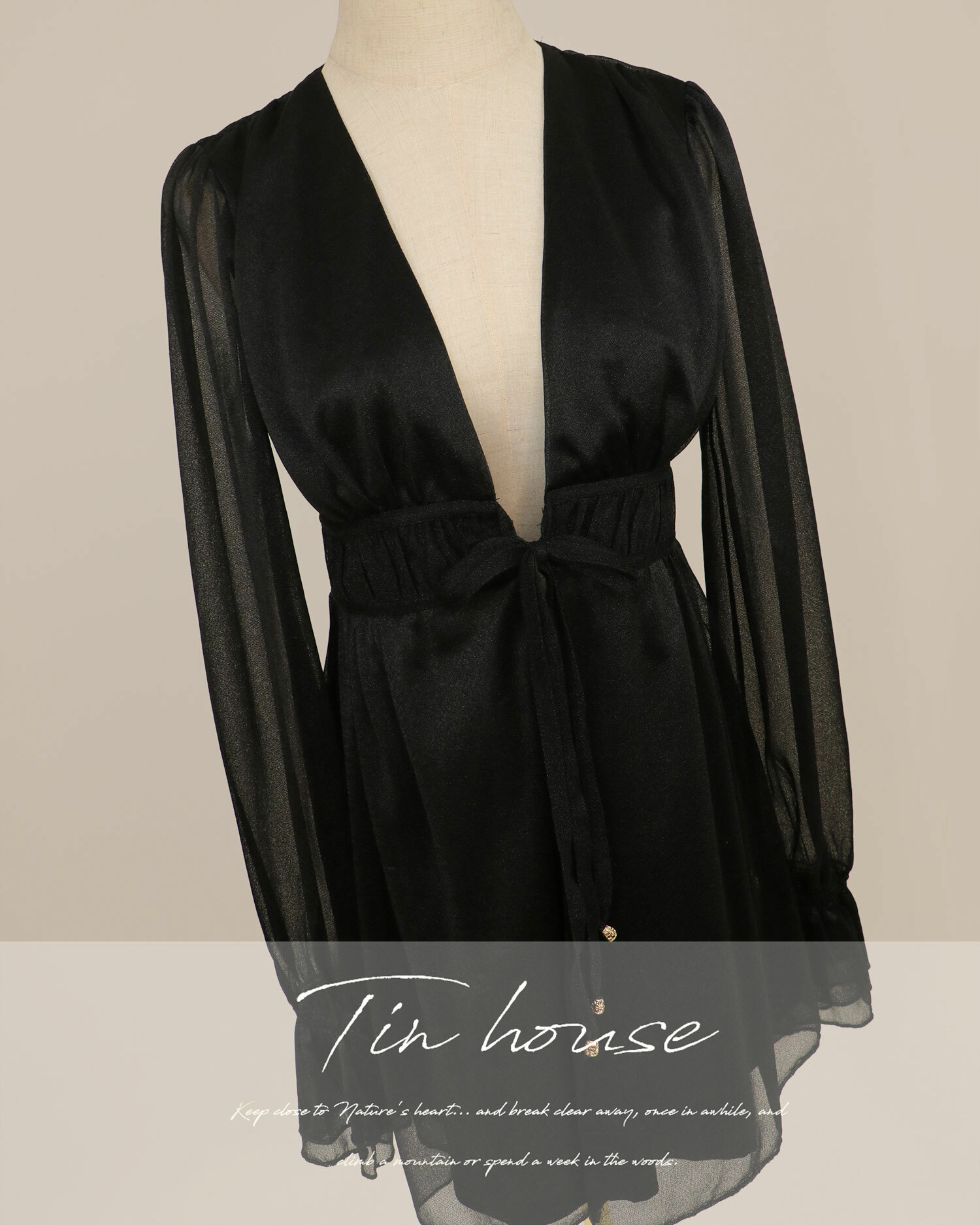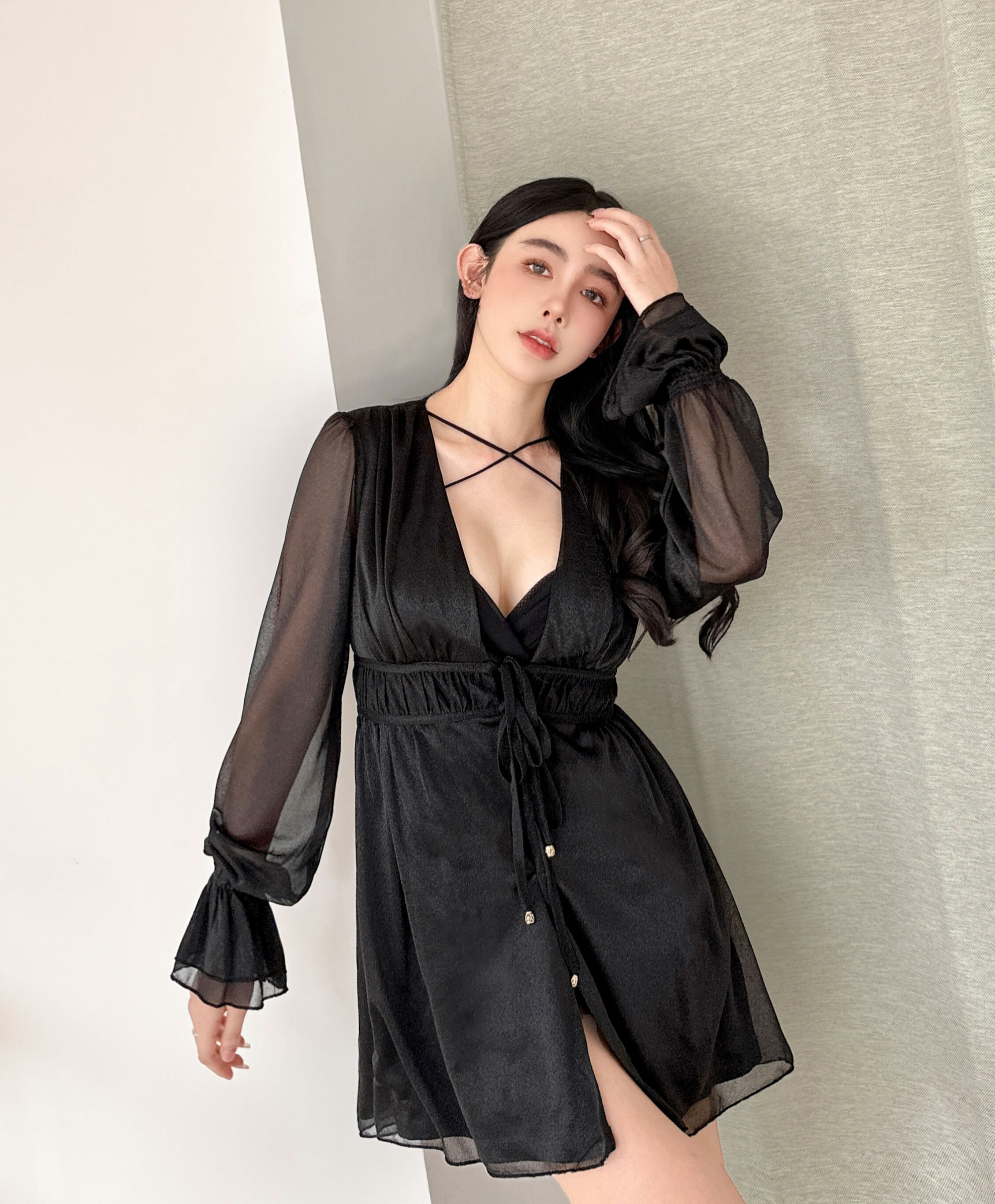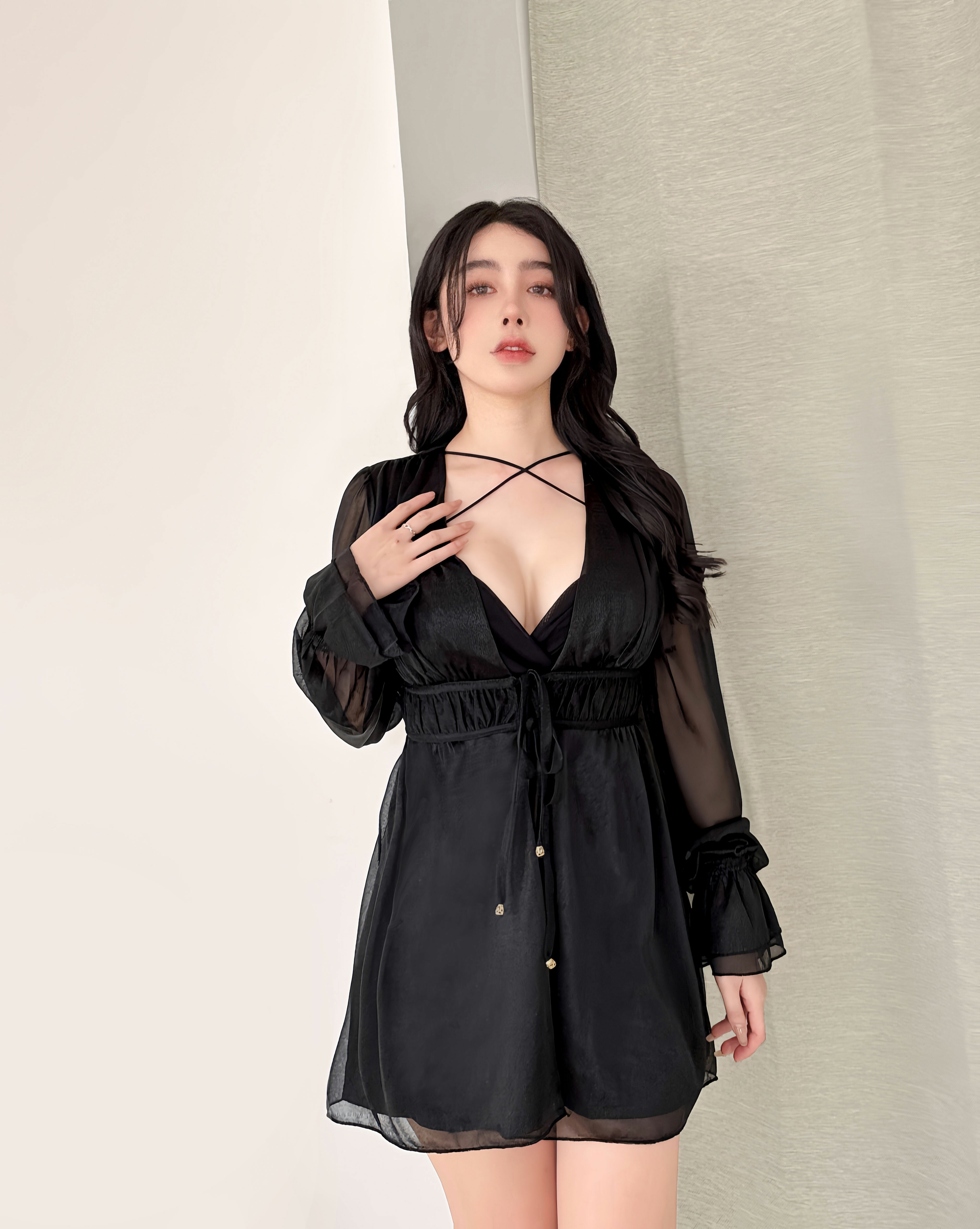 ⭒訂製-唯美紡紗縮腰荷葉袖罩衫