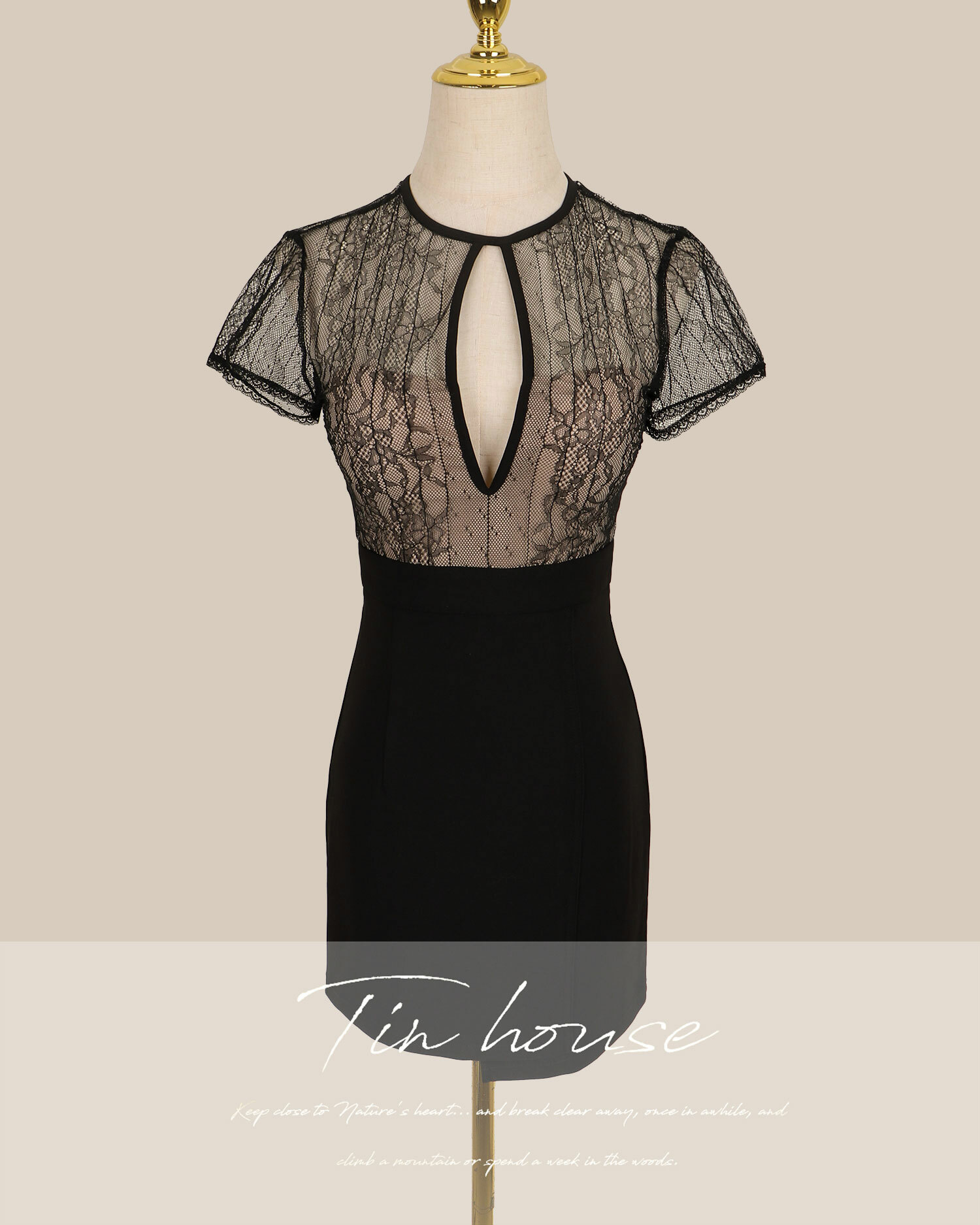 ⭒限量-性感挖胸鏤空美背合身洋(附別針)