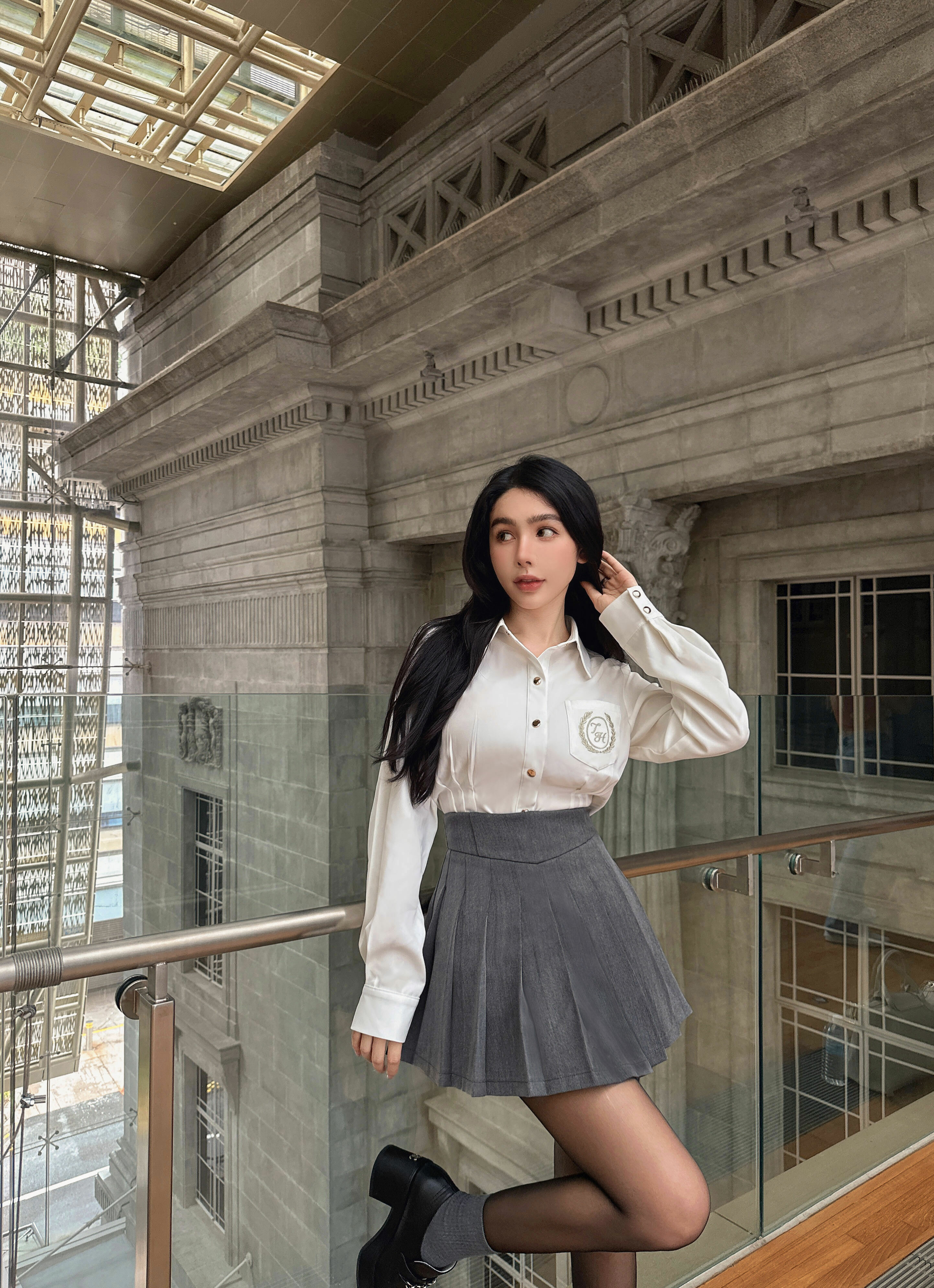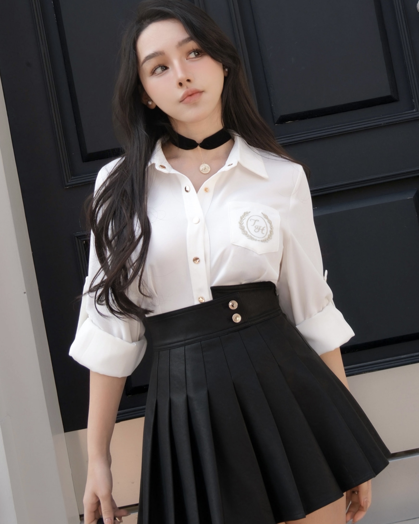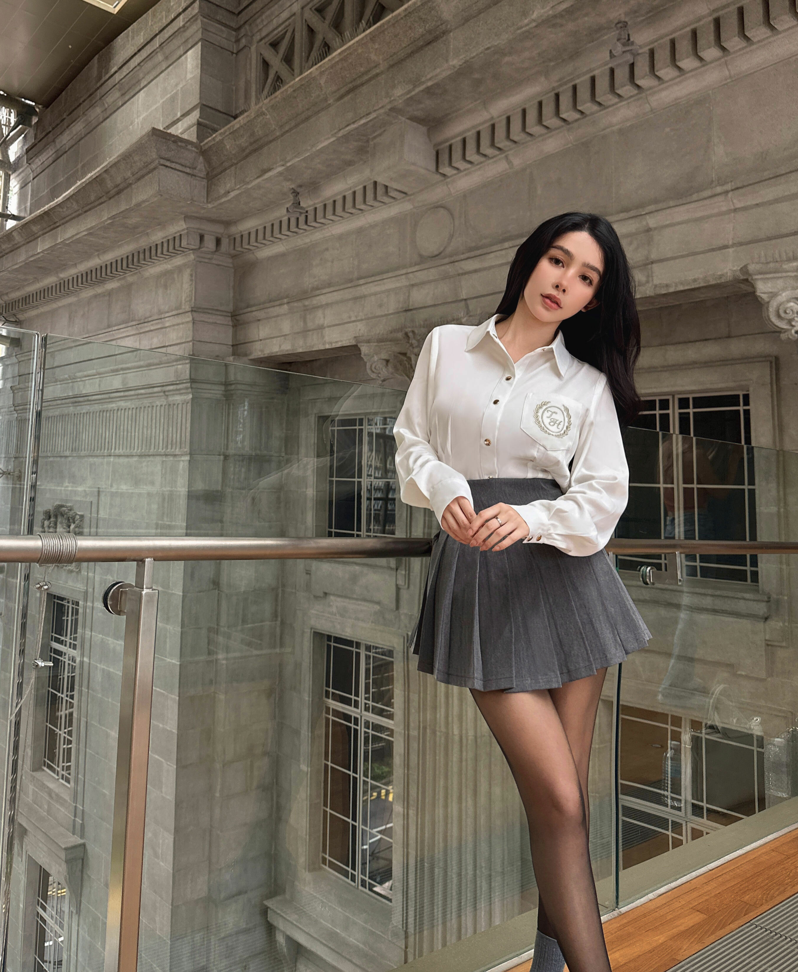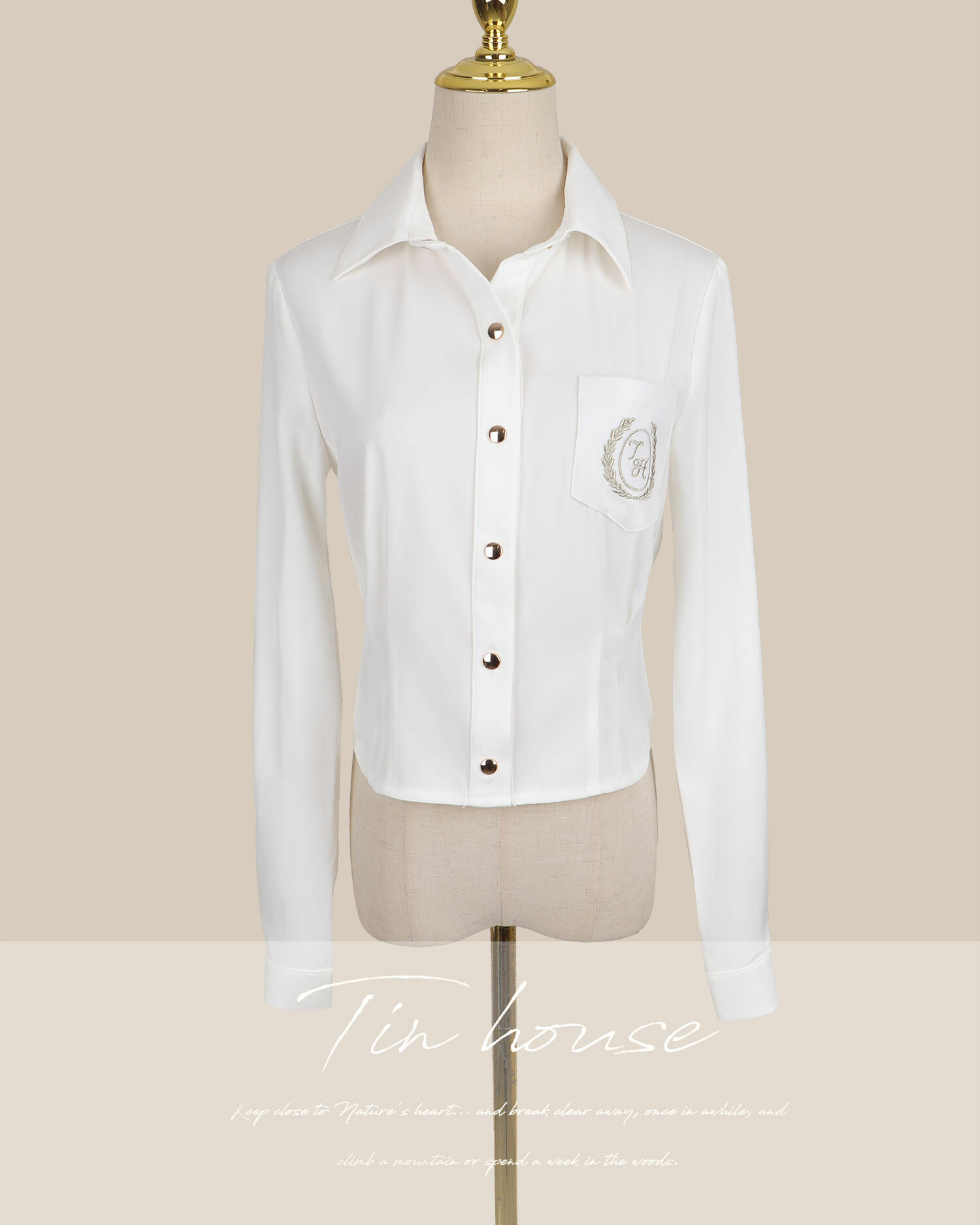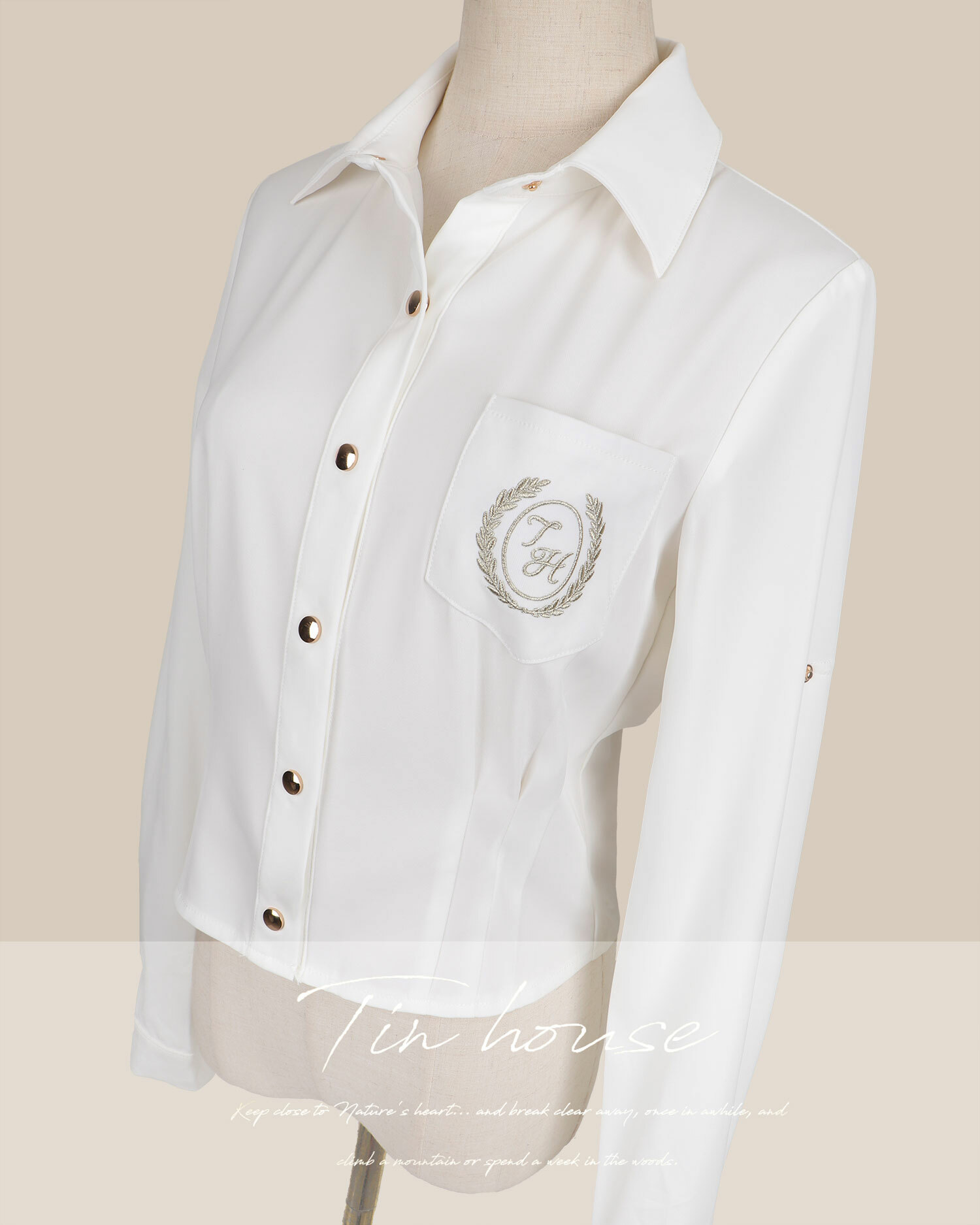 訂製-學院金絲刺繡長袖襯衫