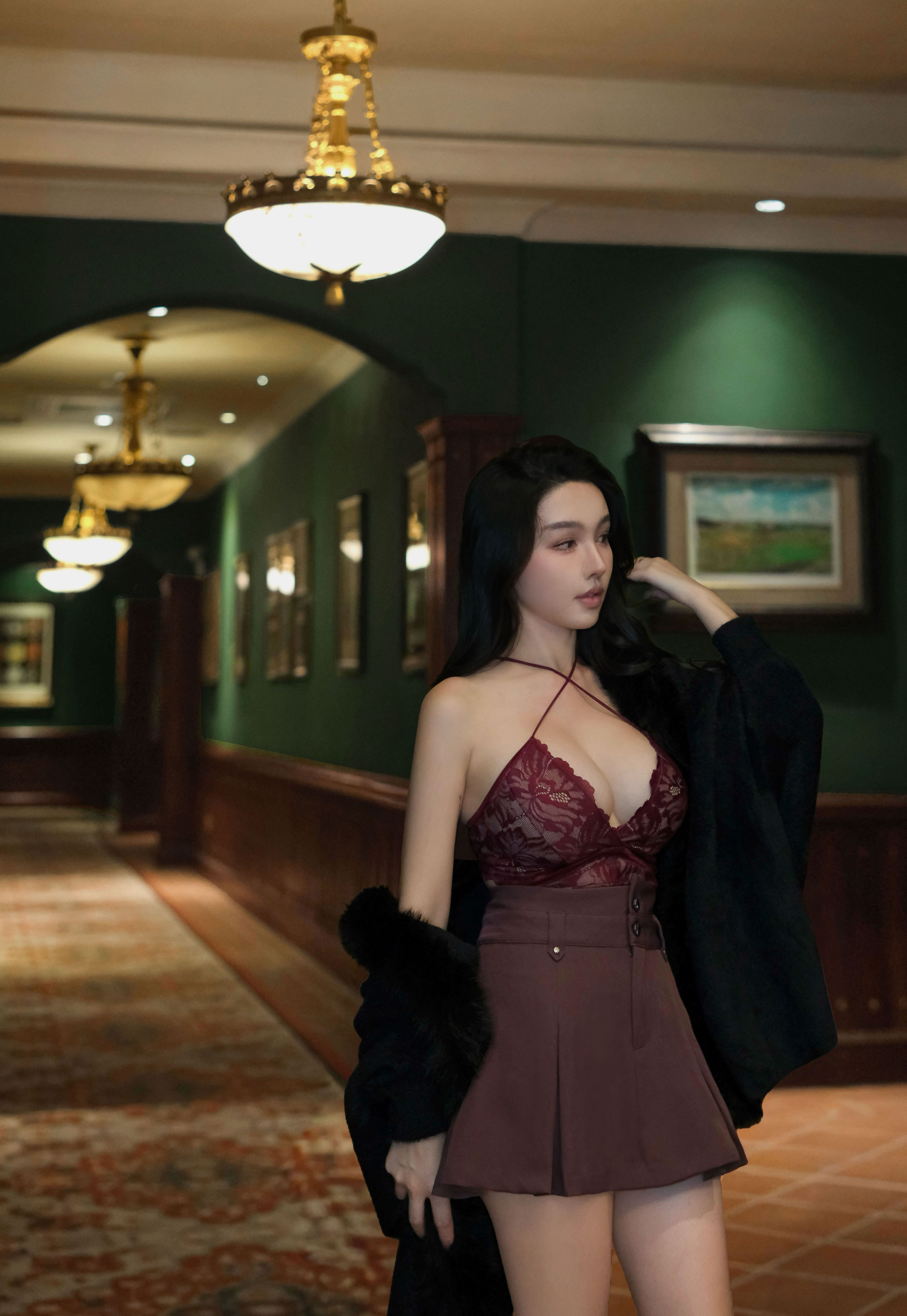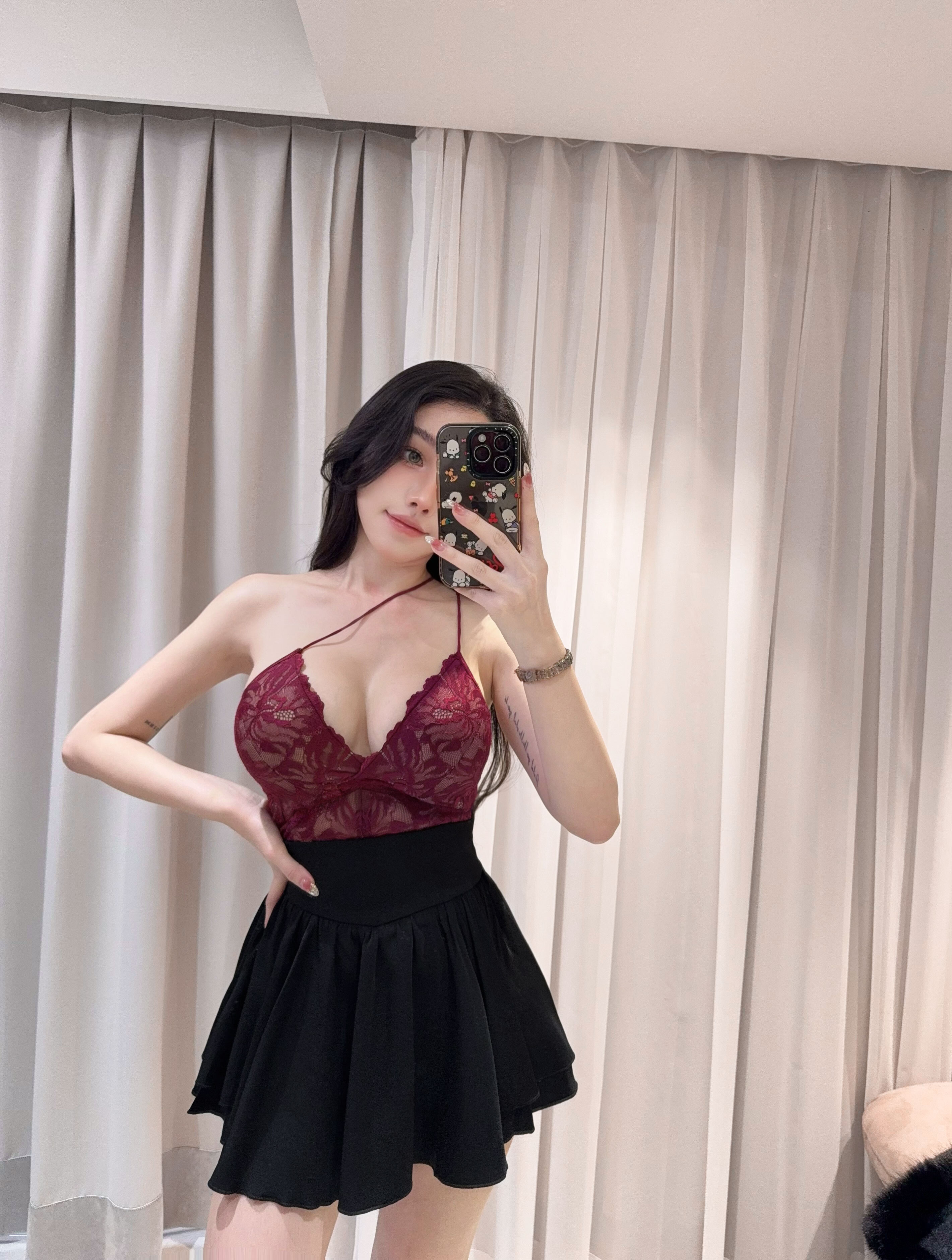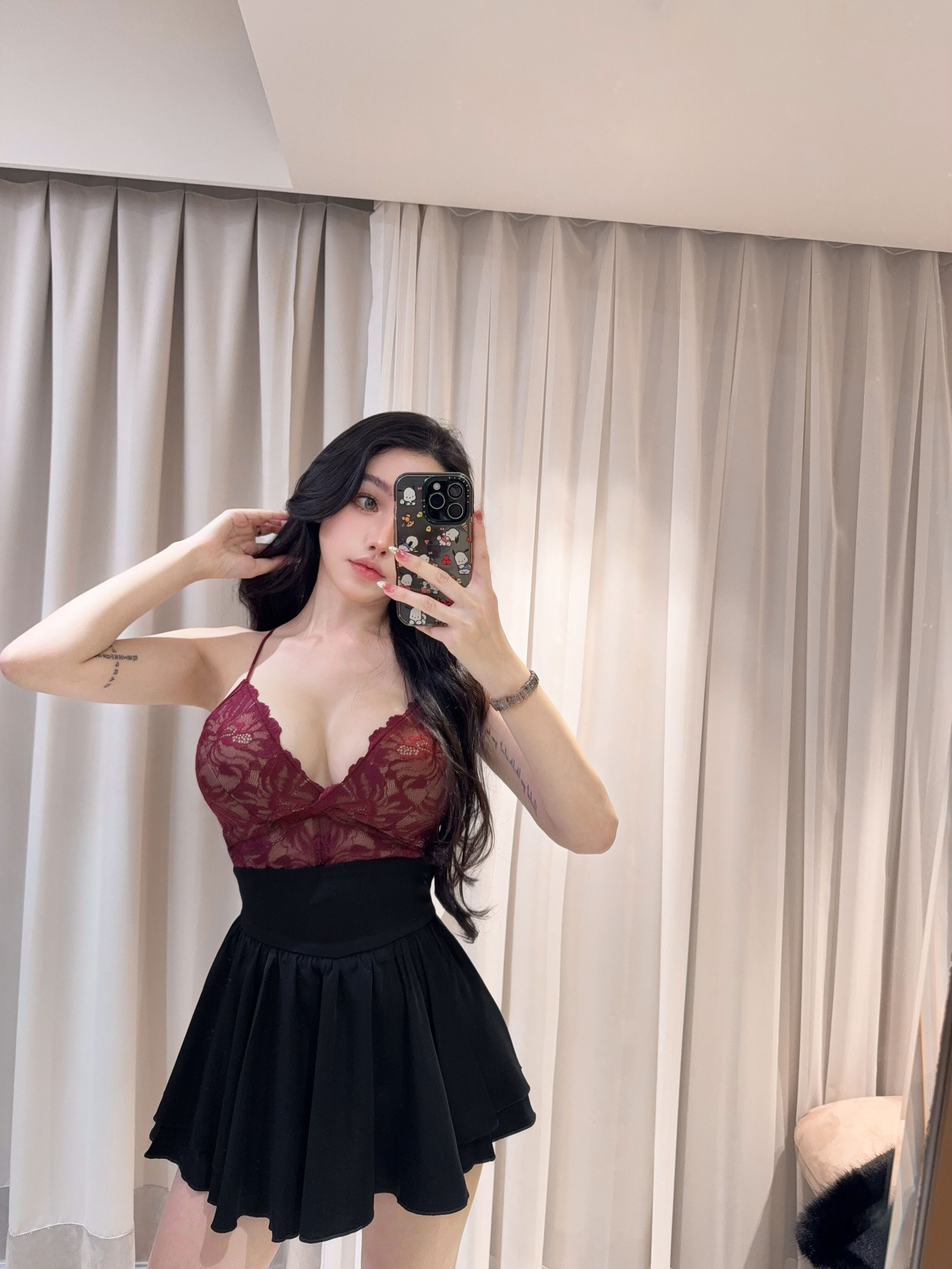 紅色限定-性感花瓣蕾絲多穿低胸背心