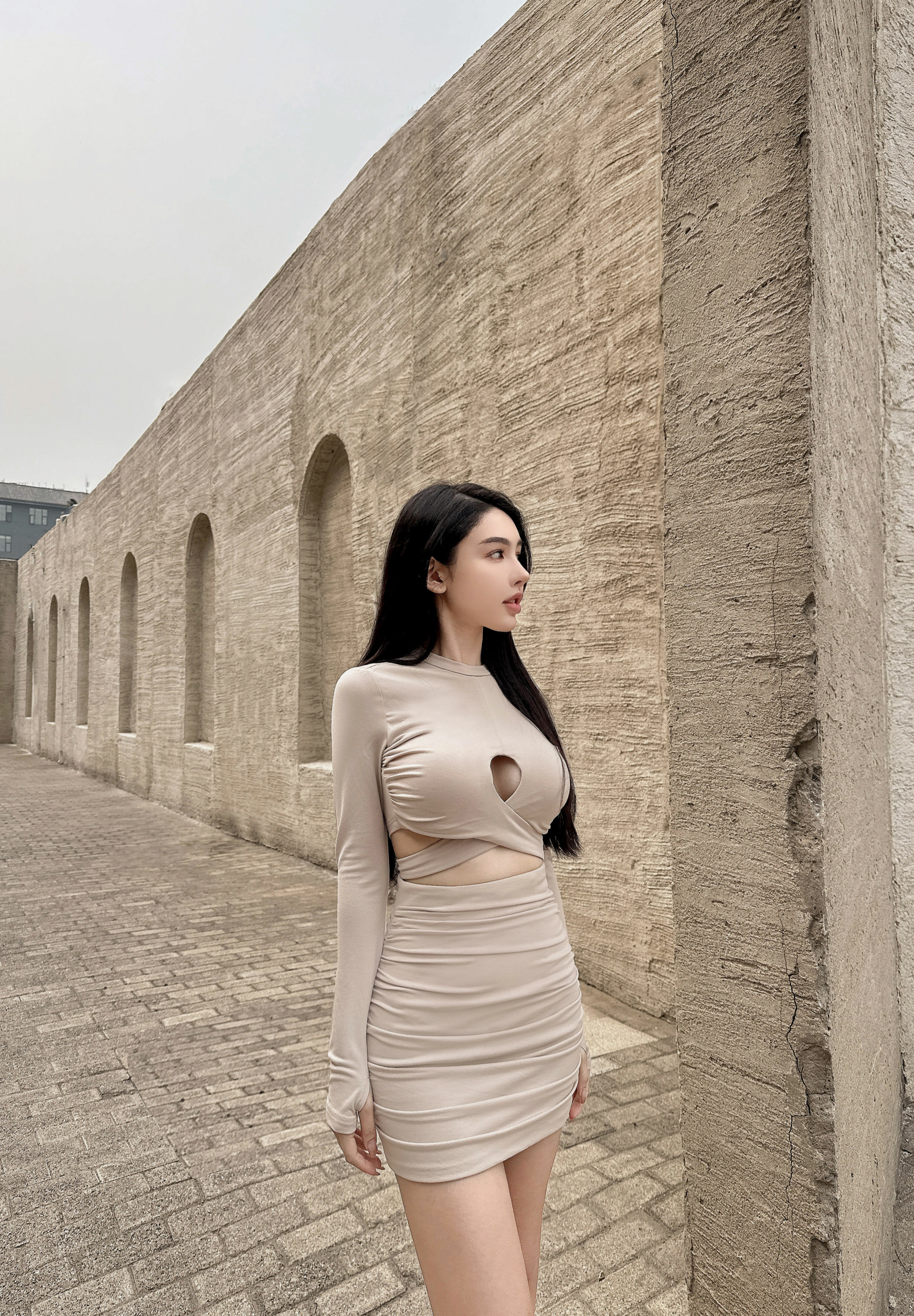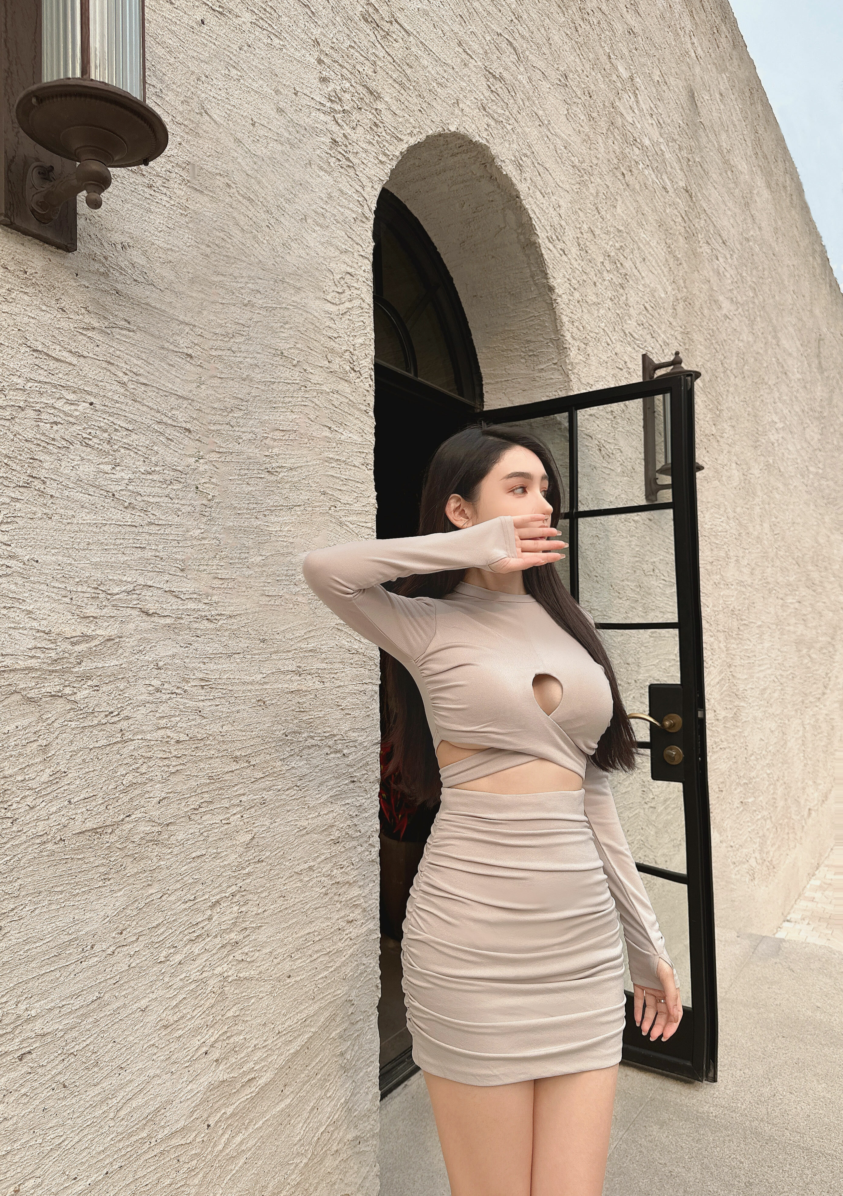 ⭒訂製-立領挖胸交叉兩件式套裝