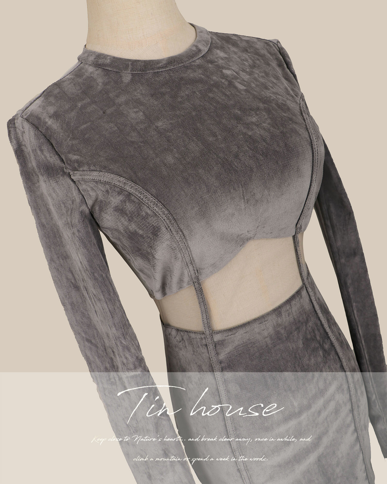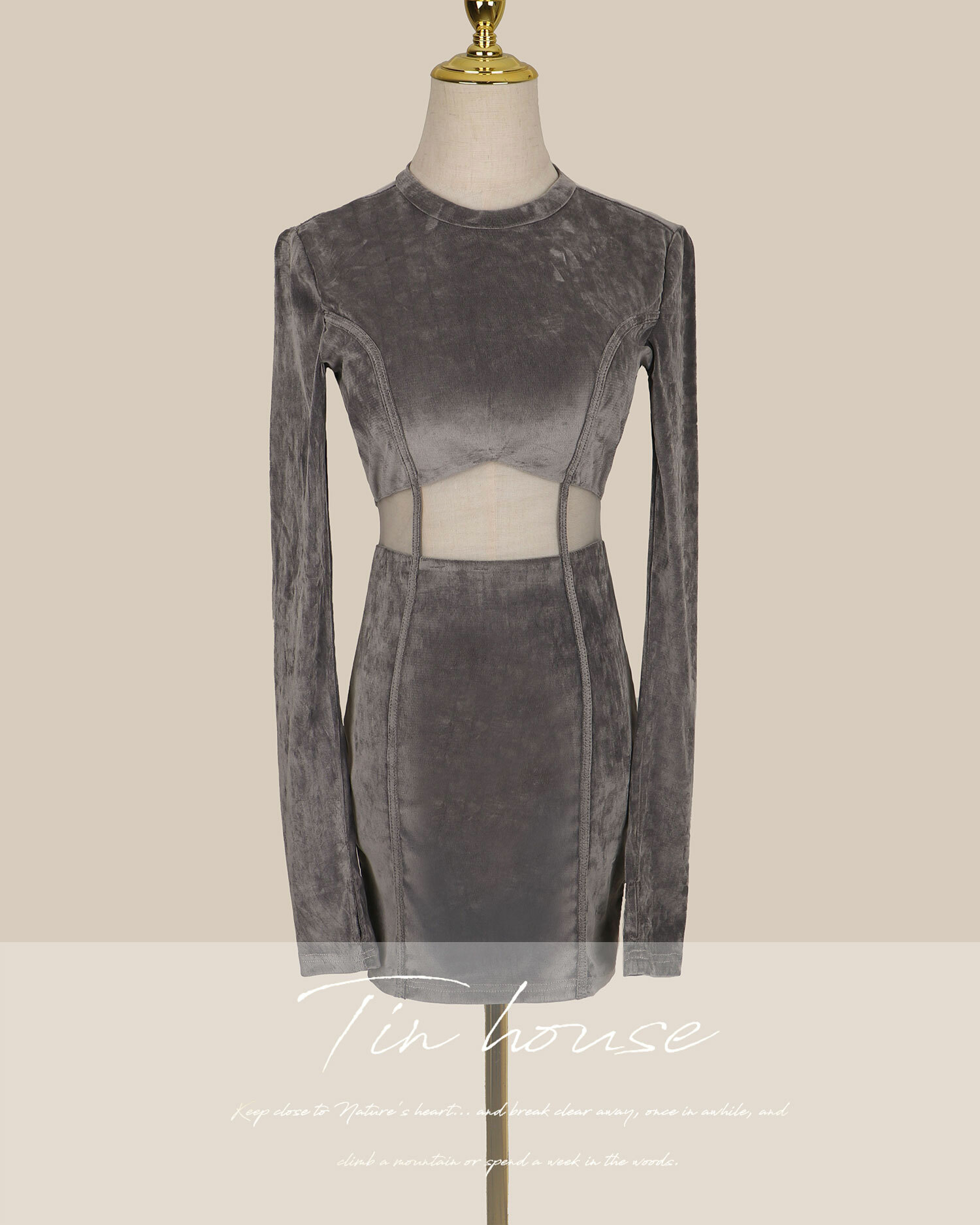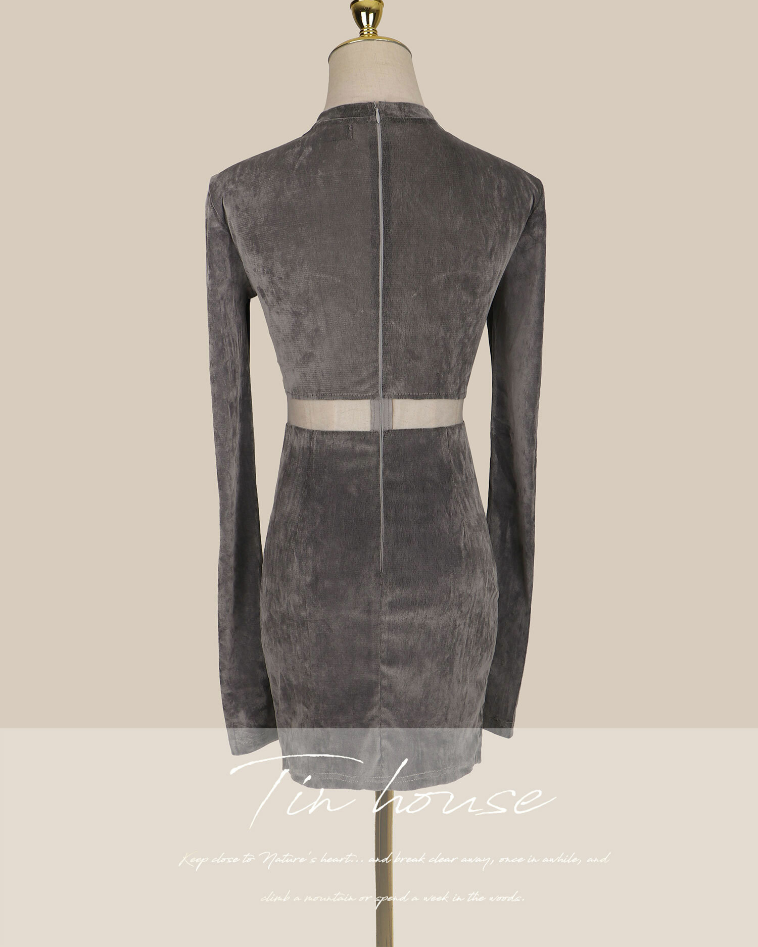 ⭒訂製-立領天鵝絨線條鏤空合身洋