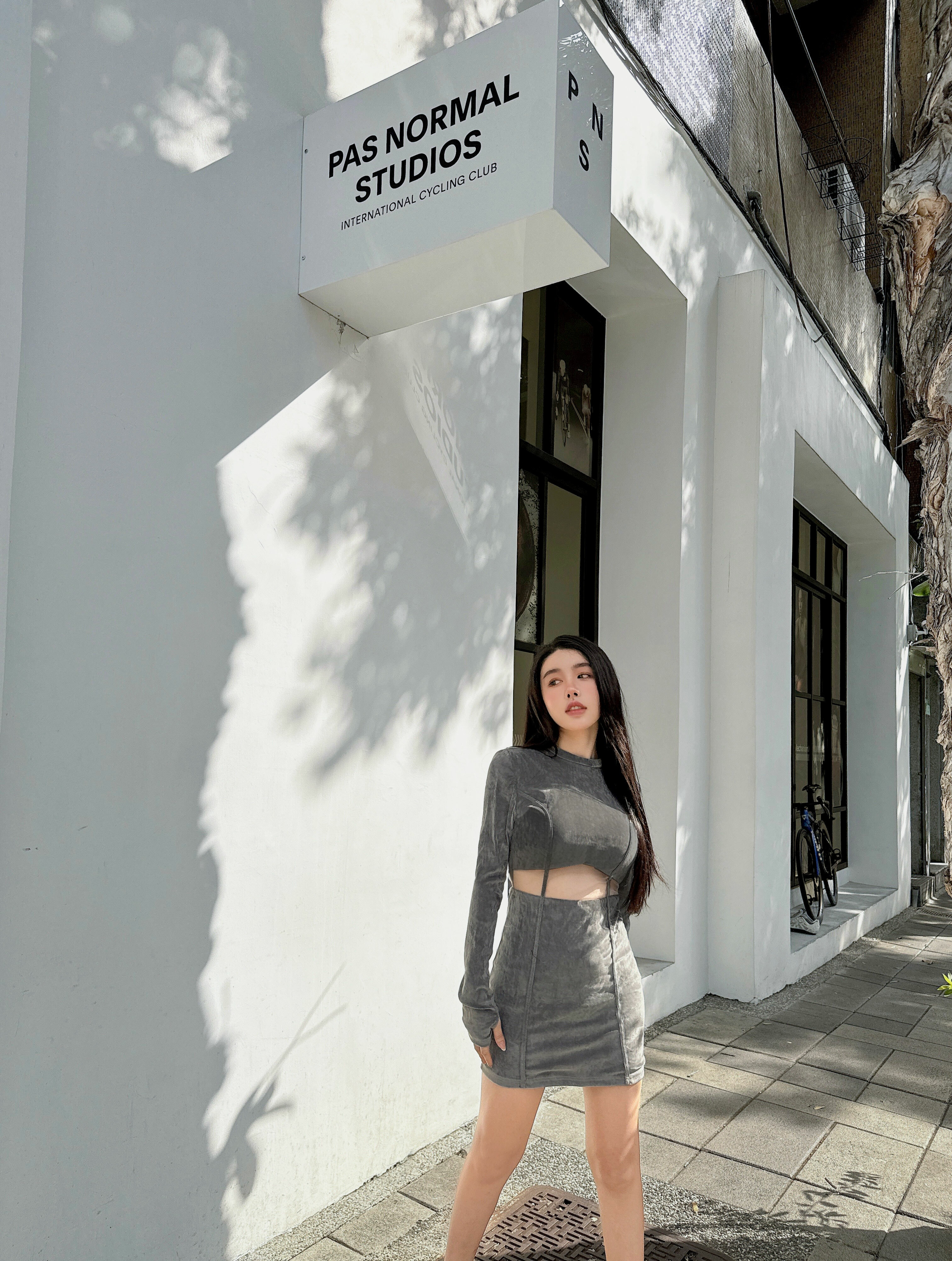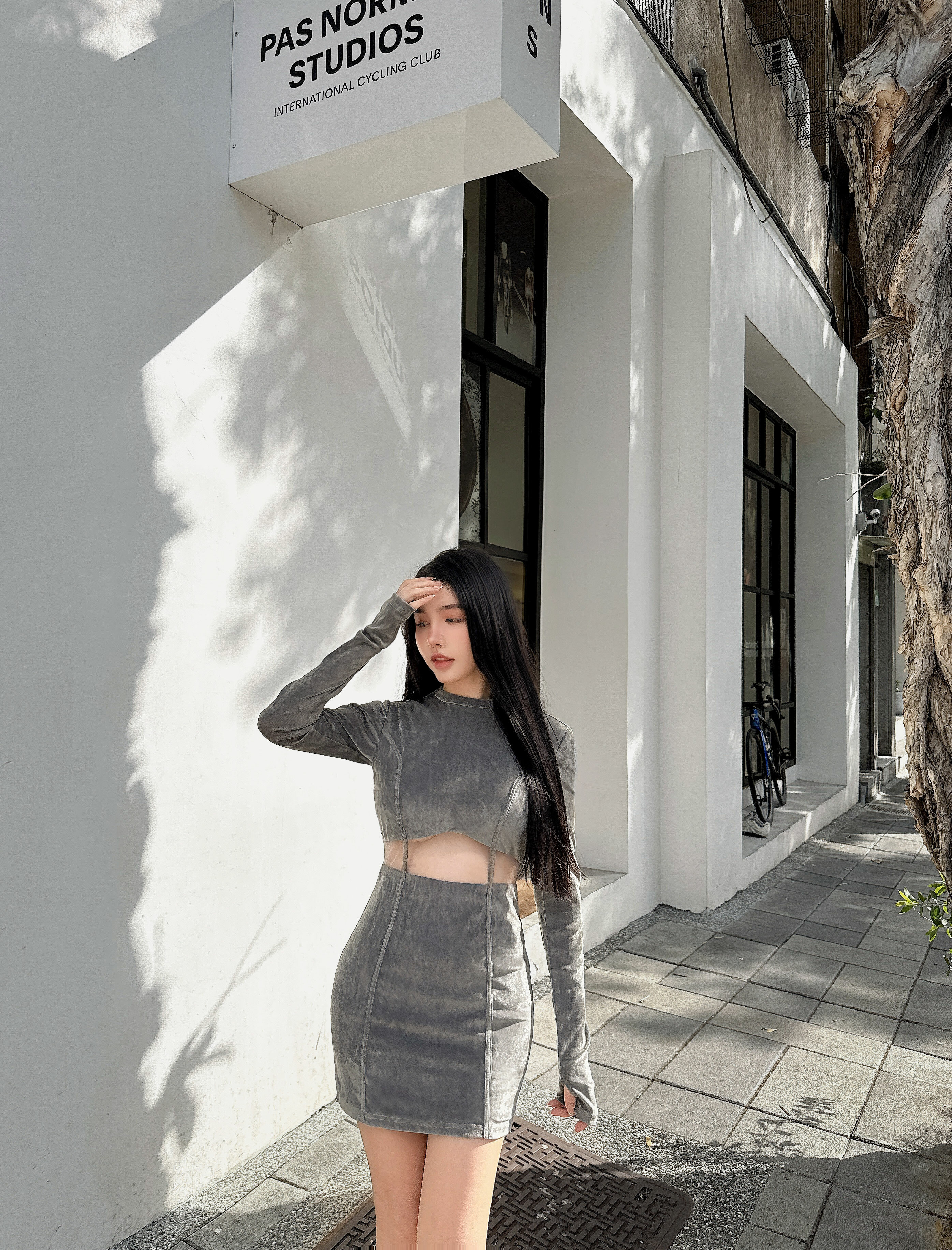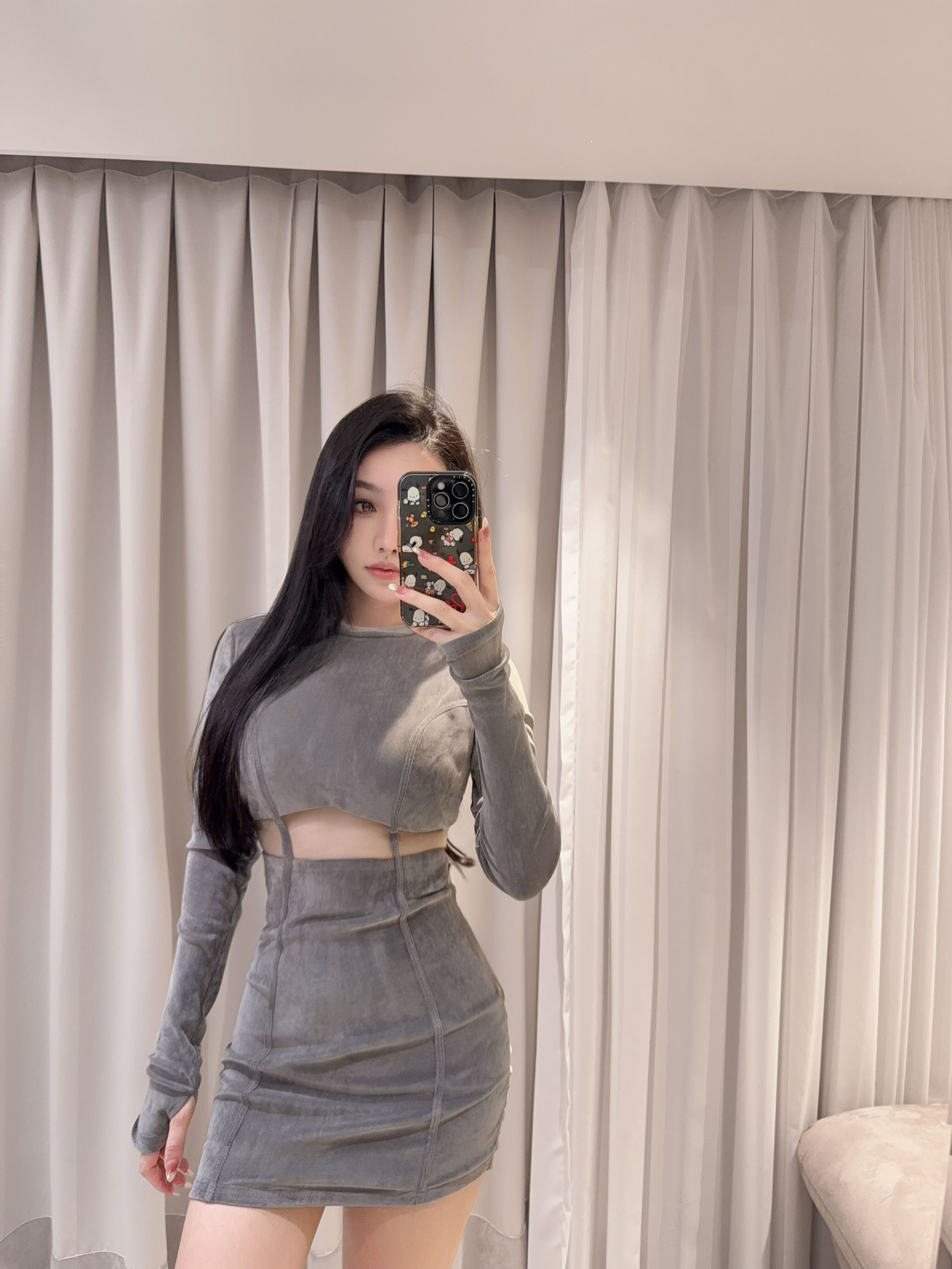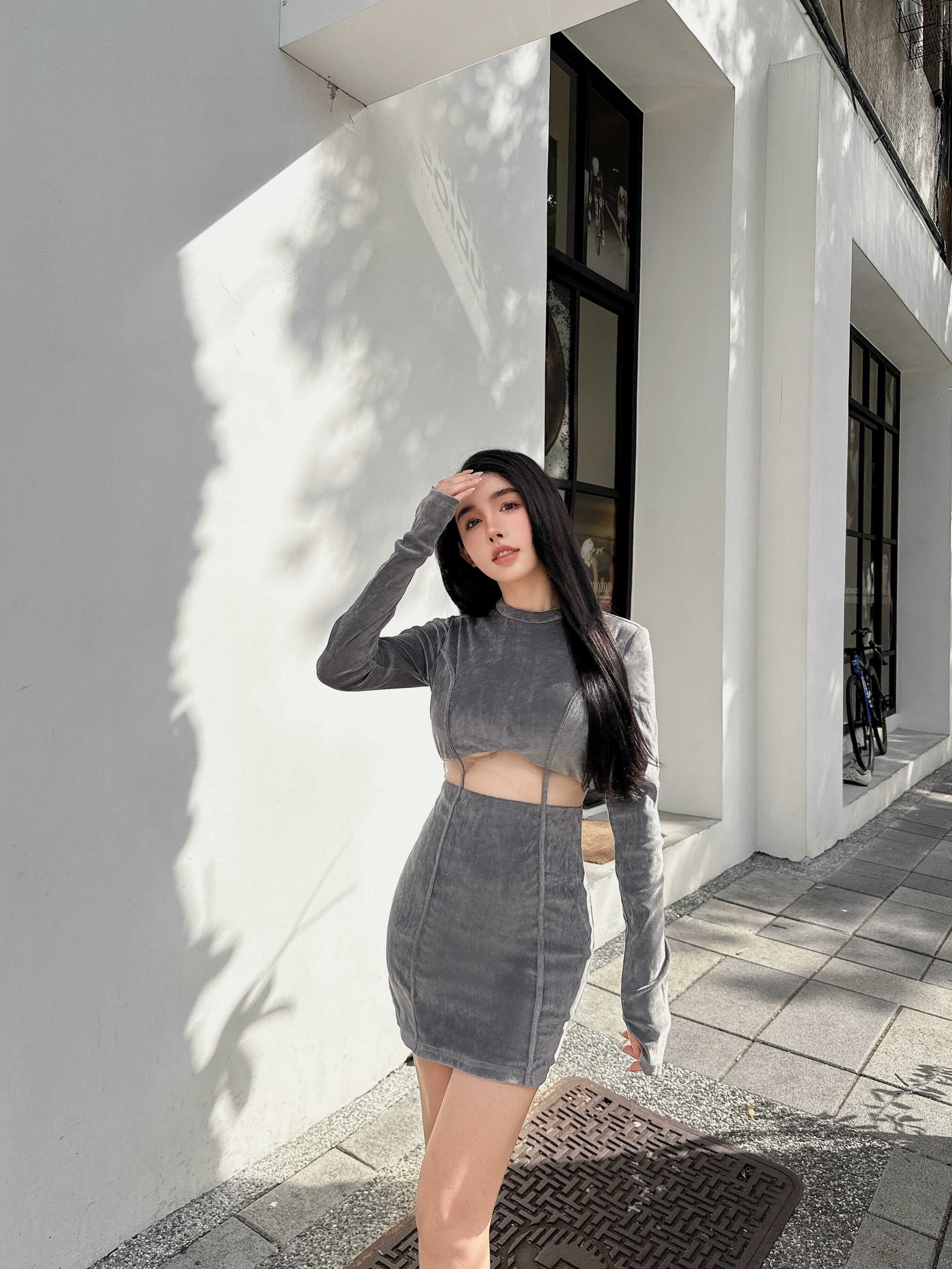 ⭒訂製-立領天鵝絨線條鏤空合身洋
