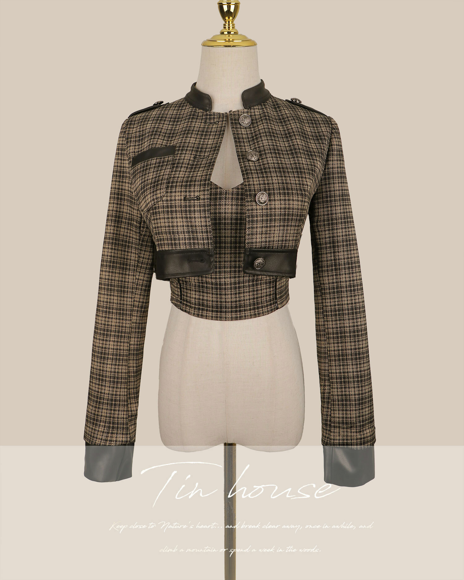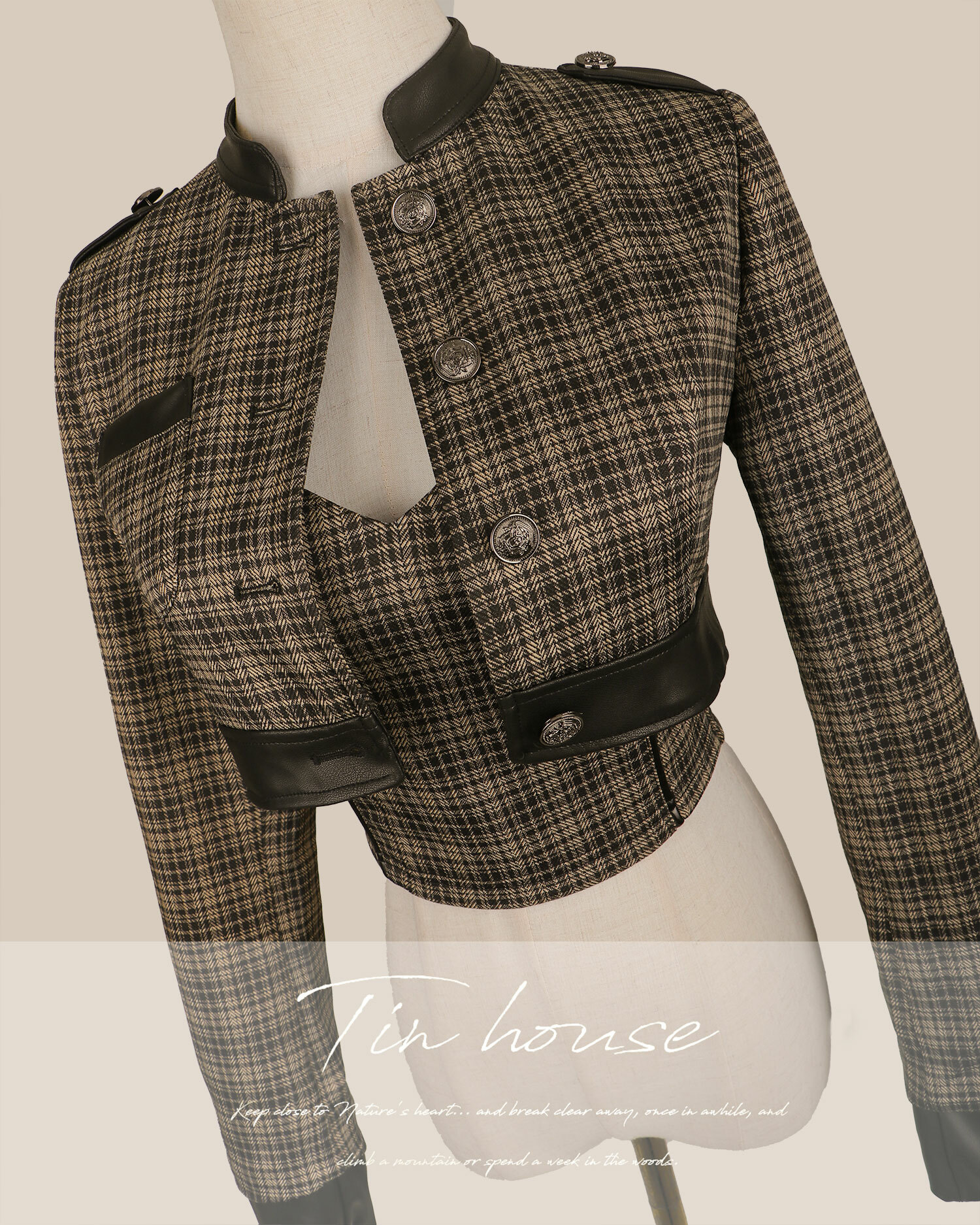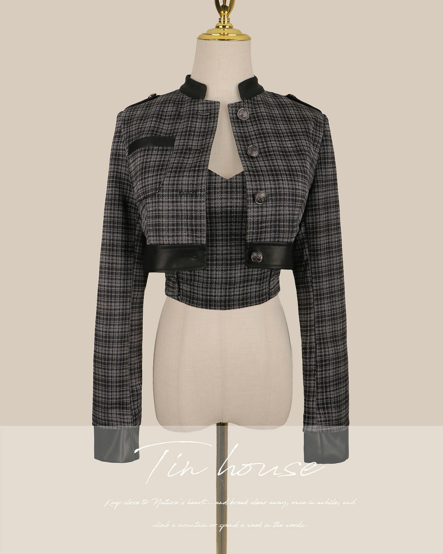 訂製-騎士格紋接皮立領馬甲套裝