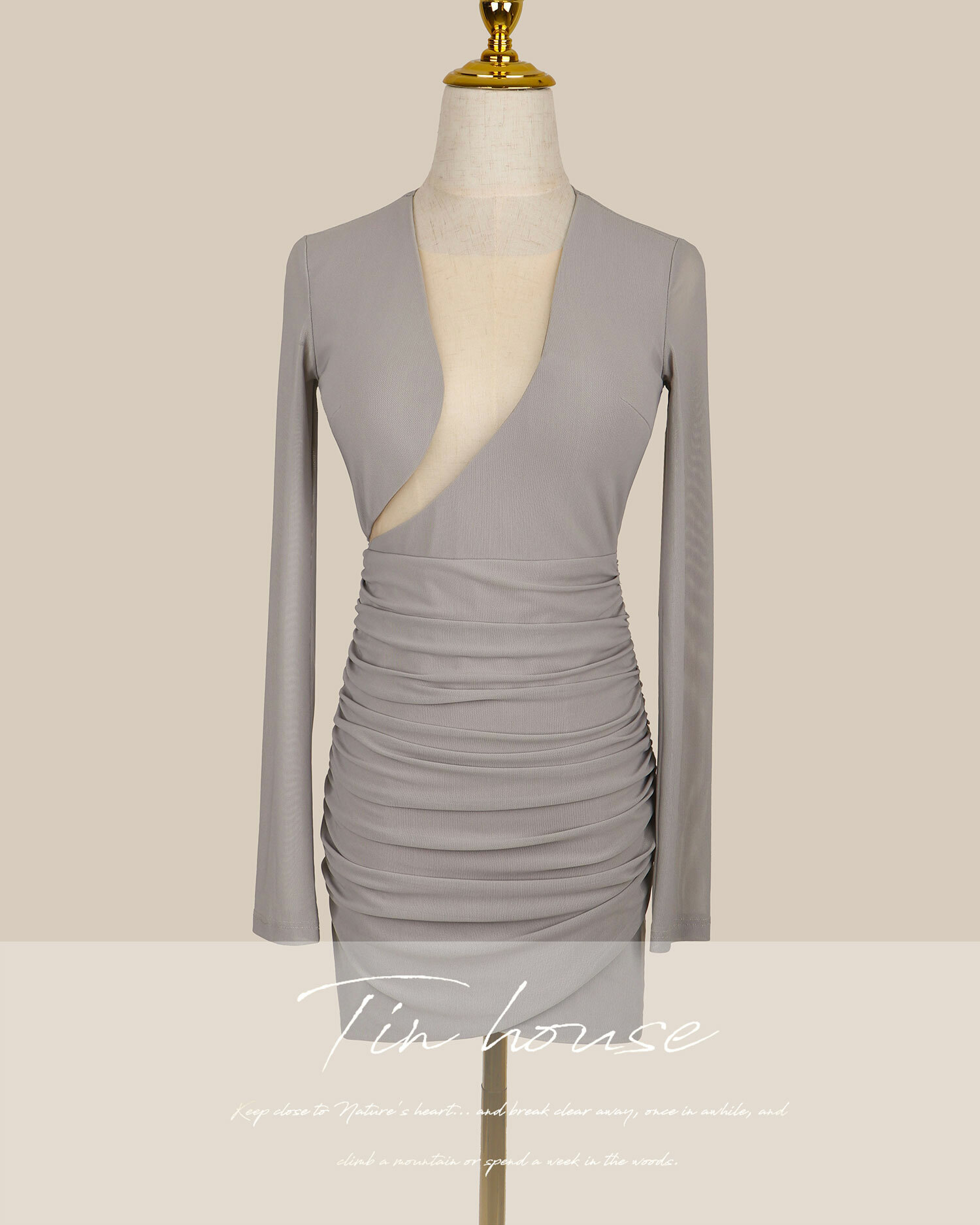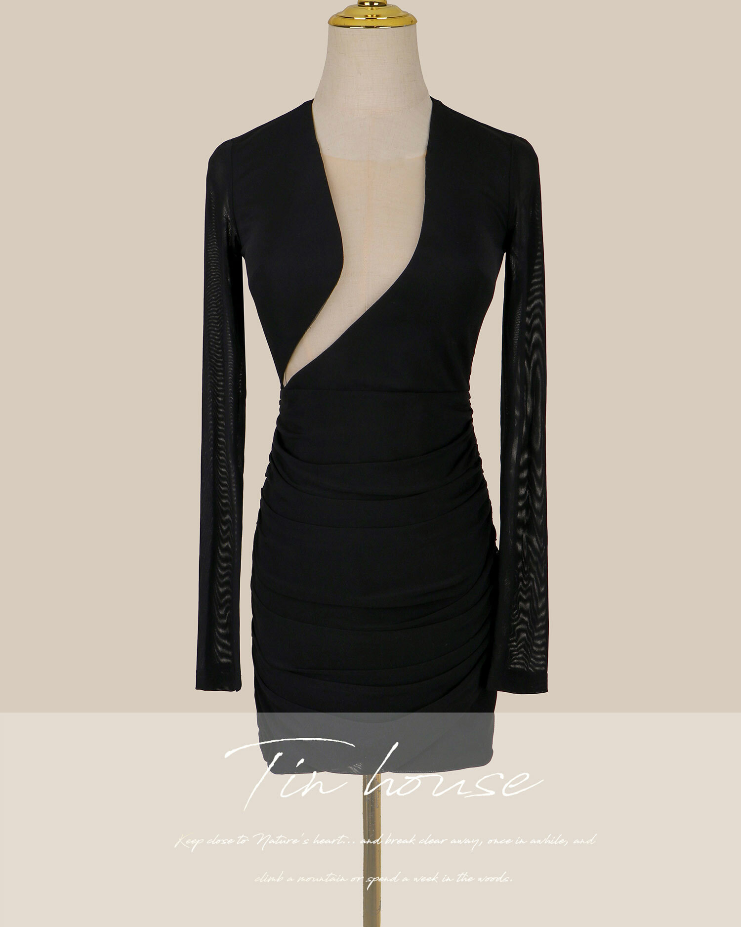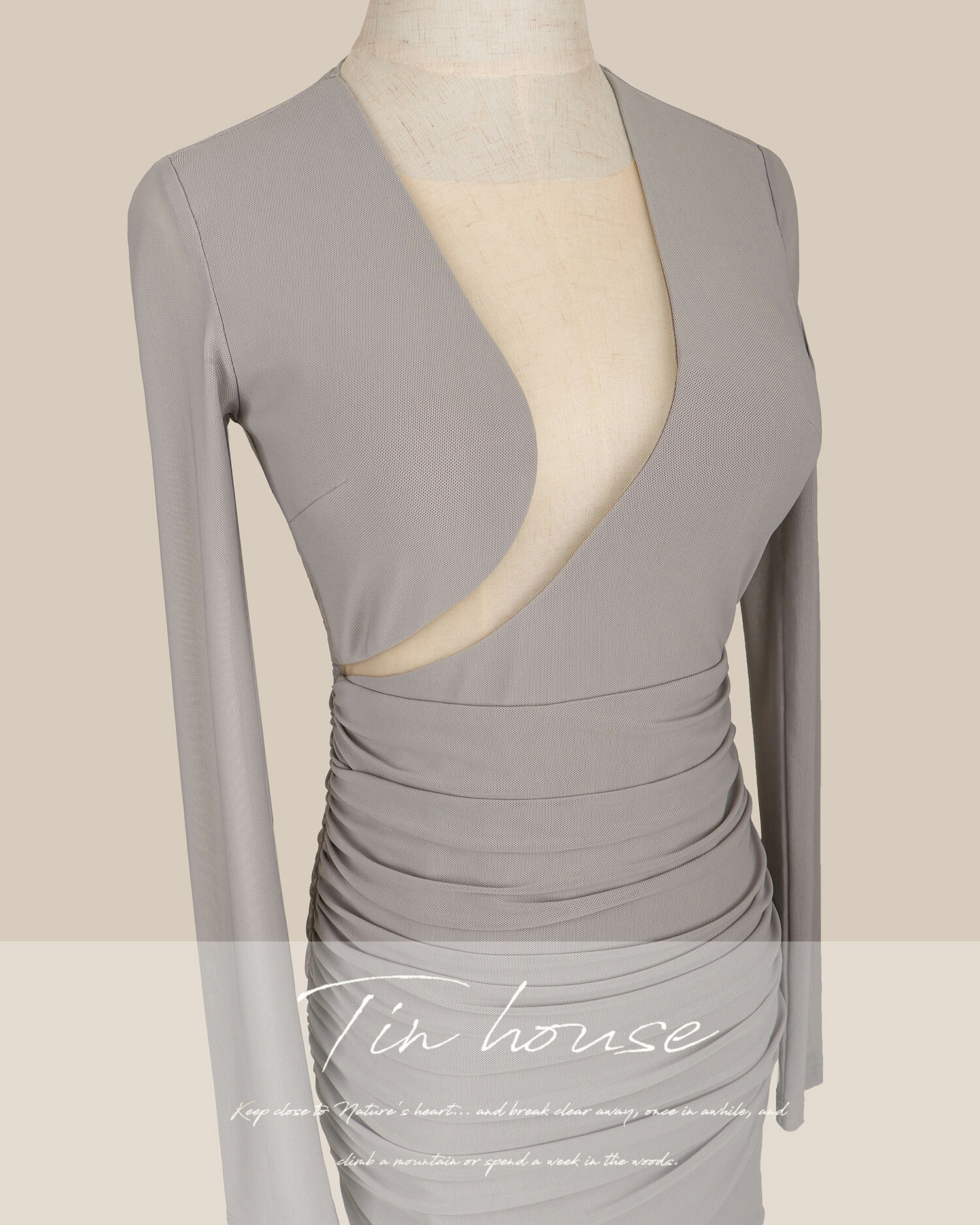 限量-性感挖胸透視網紗合身洋
