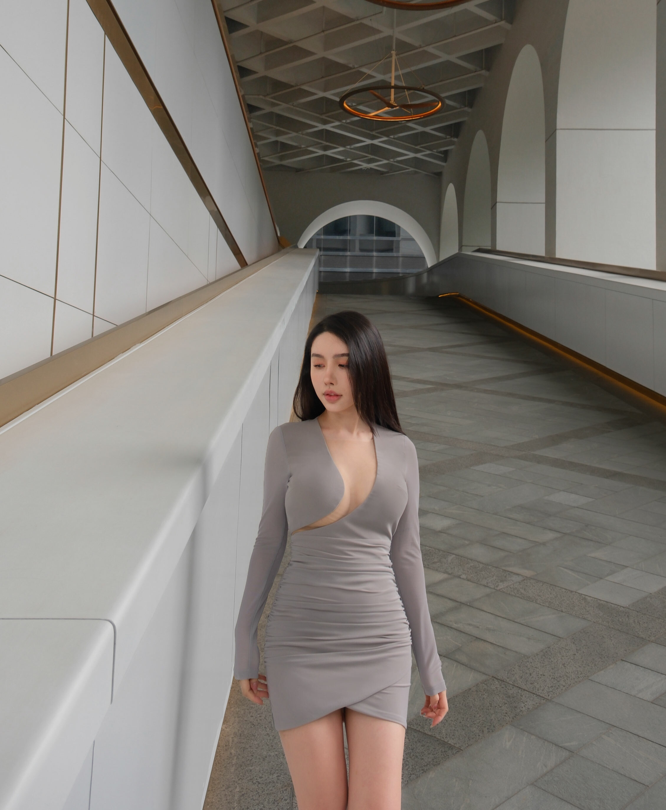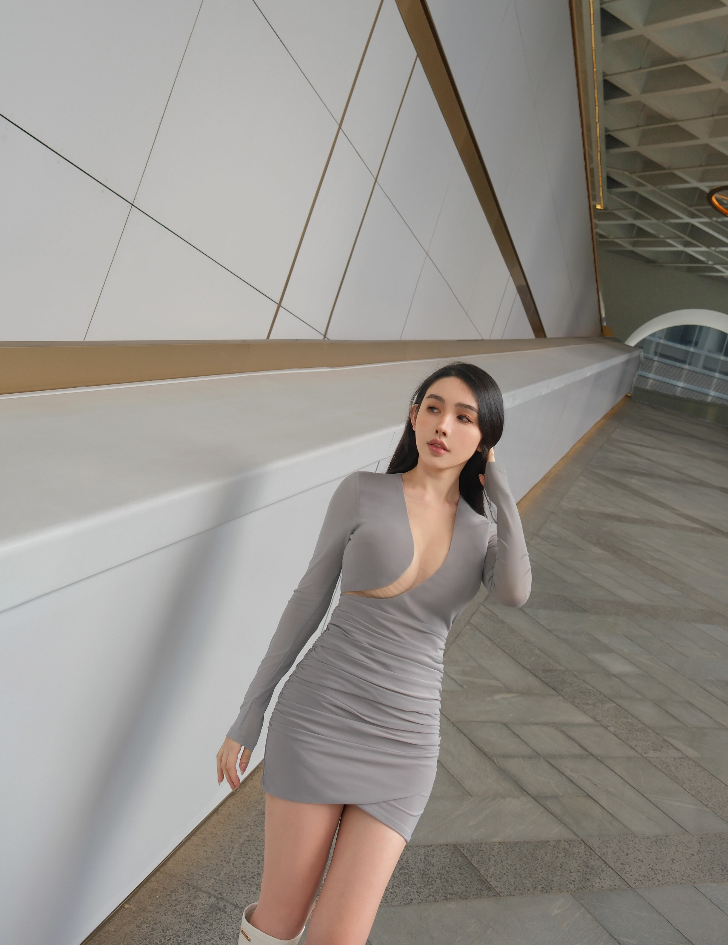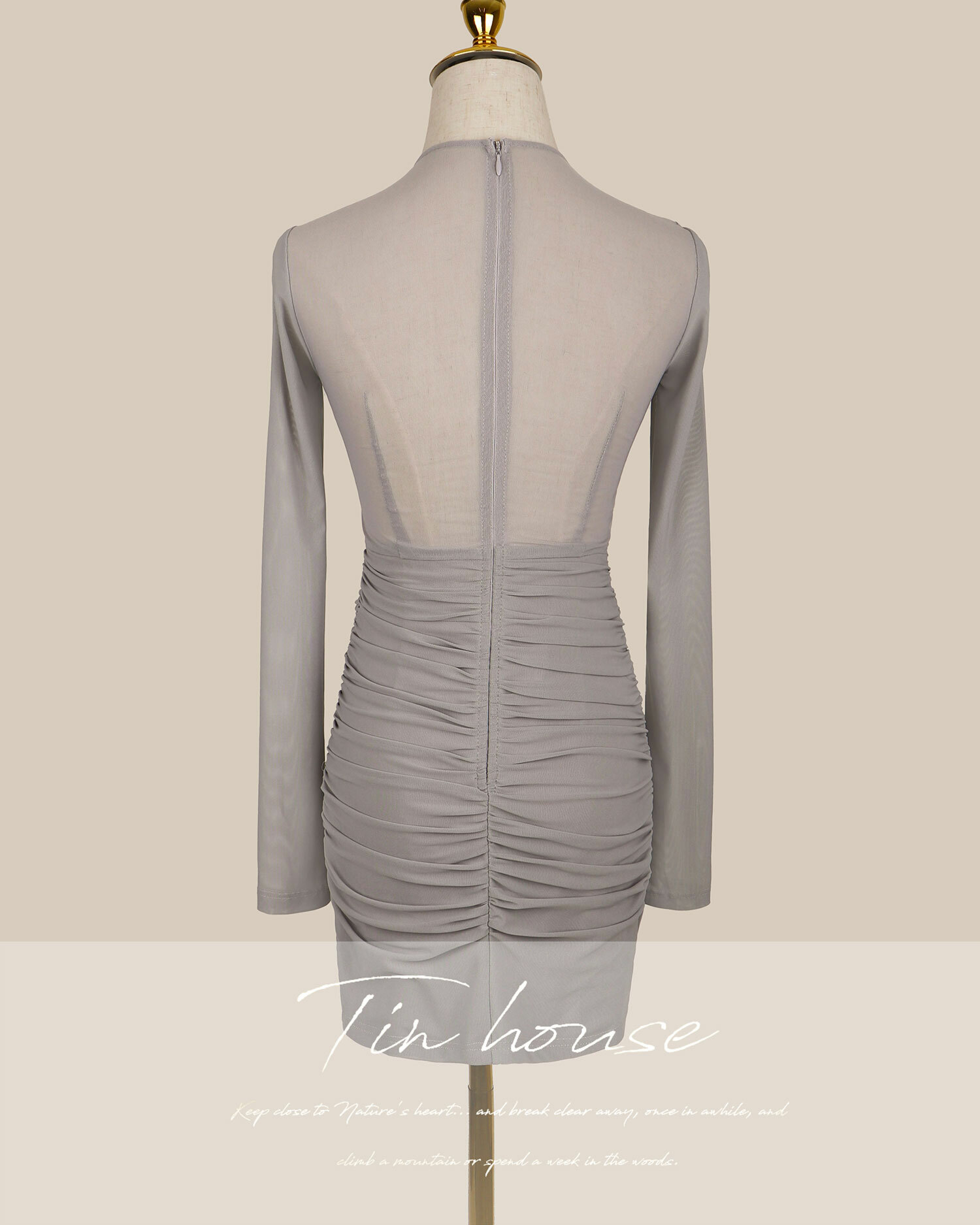 限量-性感挖胸透視網紗合身洋
