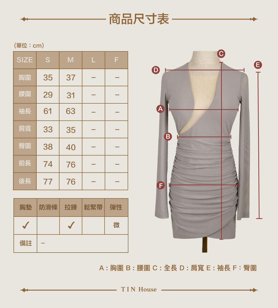 5. 如需整燙,請以低溫隔布熨燙,溫度不可高於110°C 或使用掛燙式蒸氣熨斗。