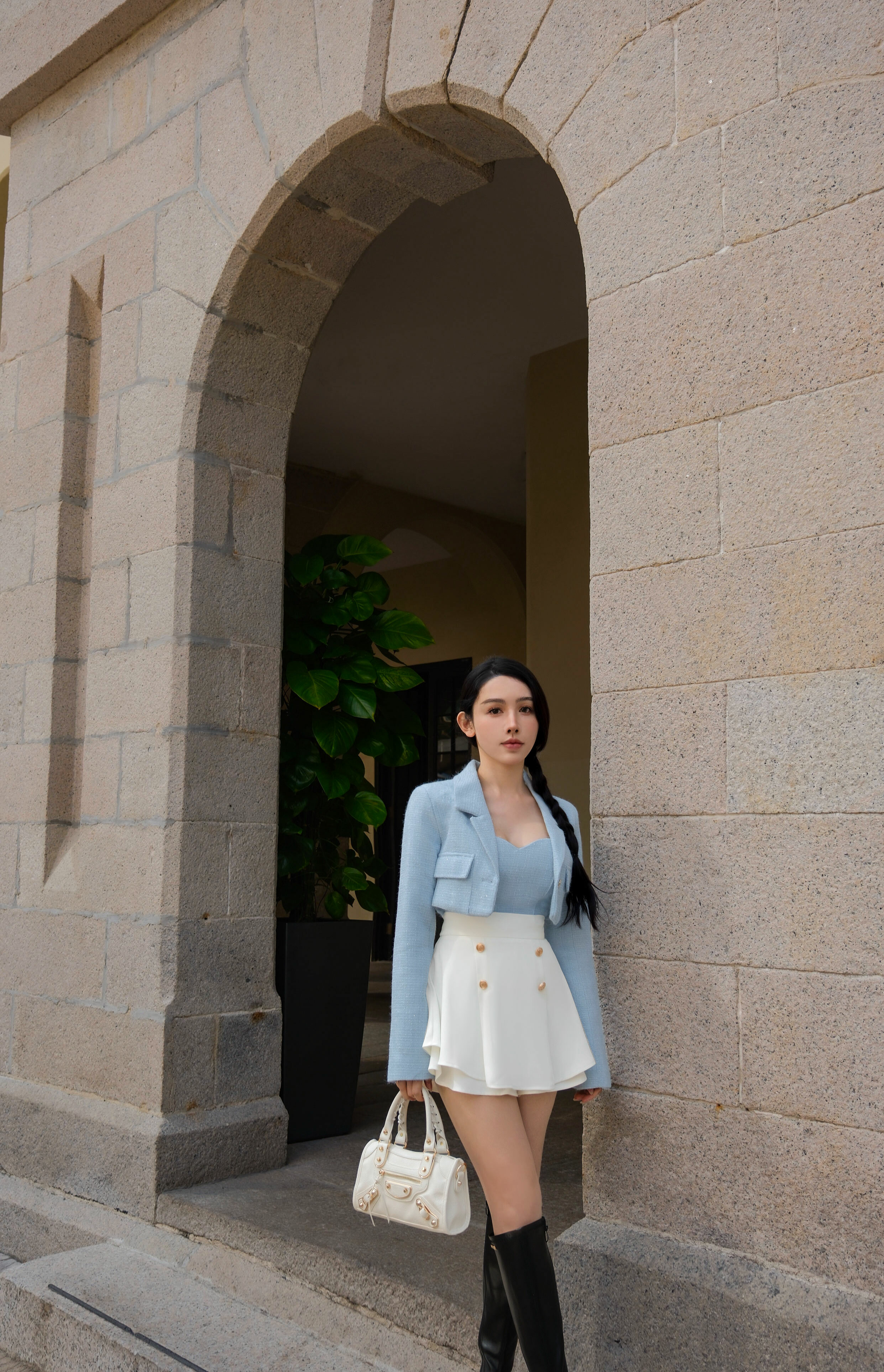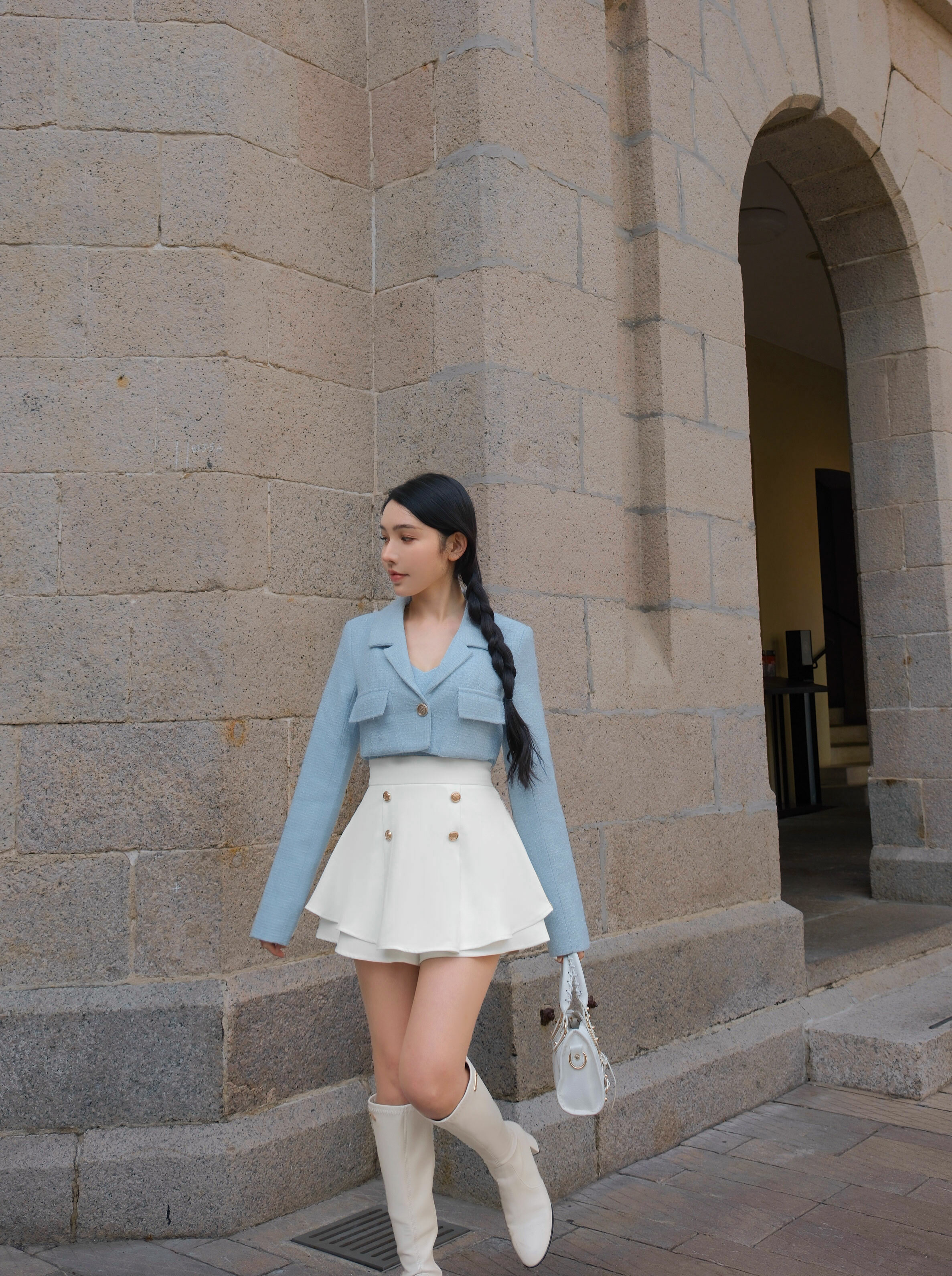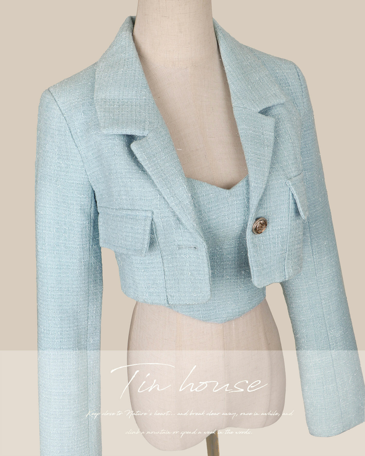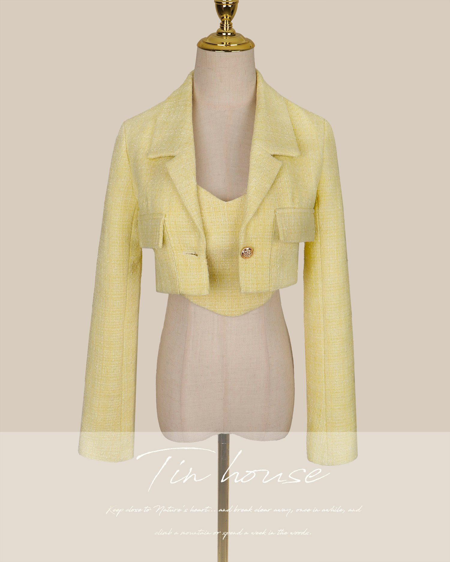⭒訂製-小香西裝領短版亮蔥套裝