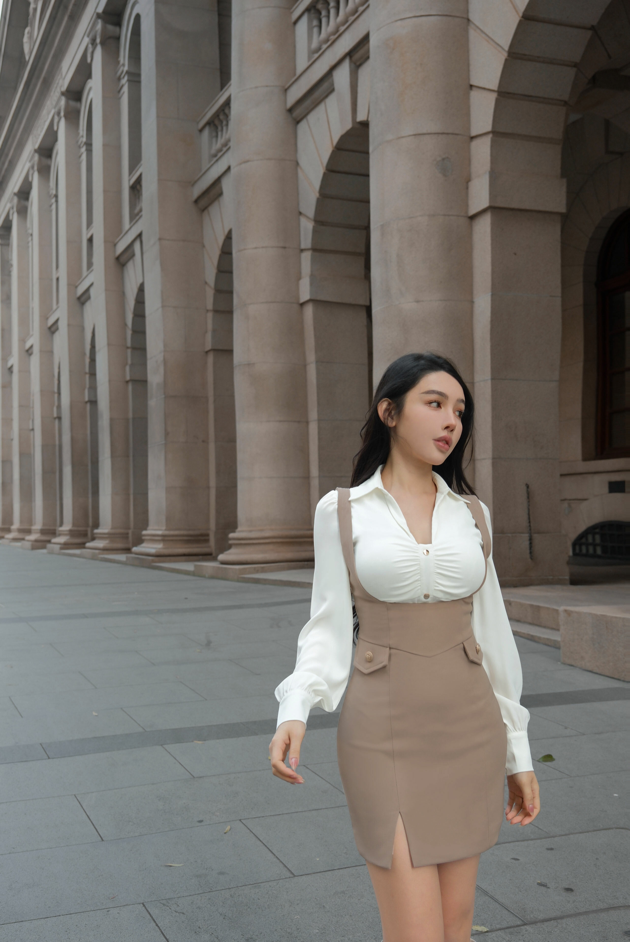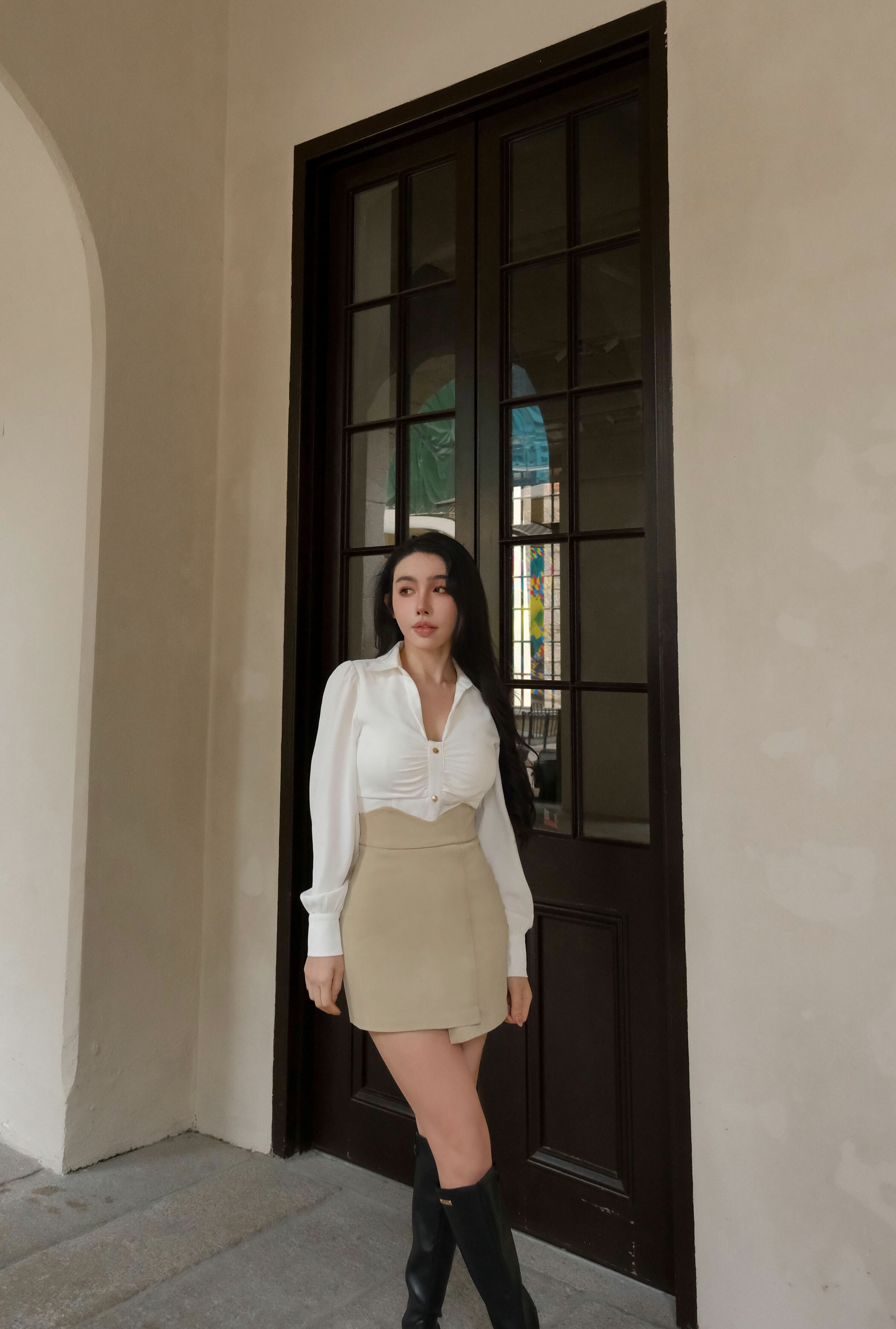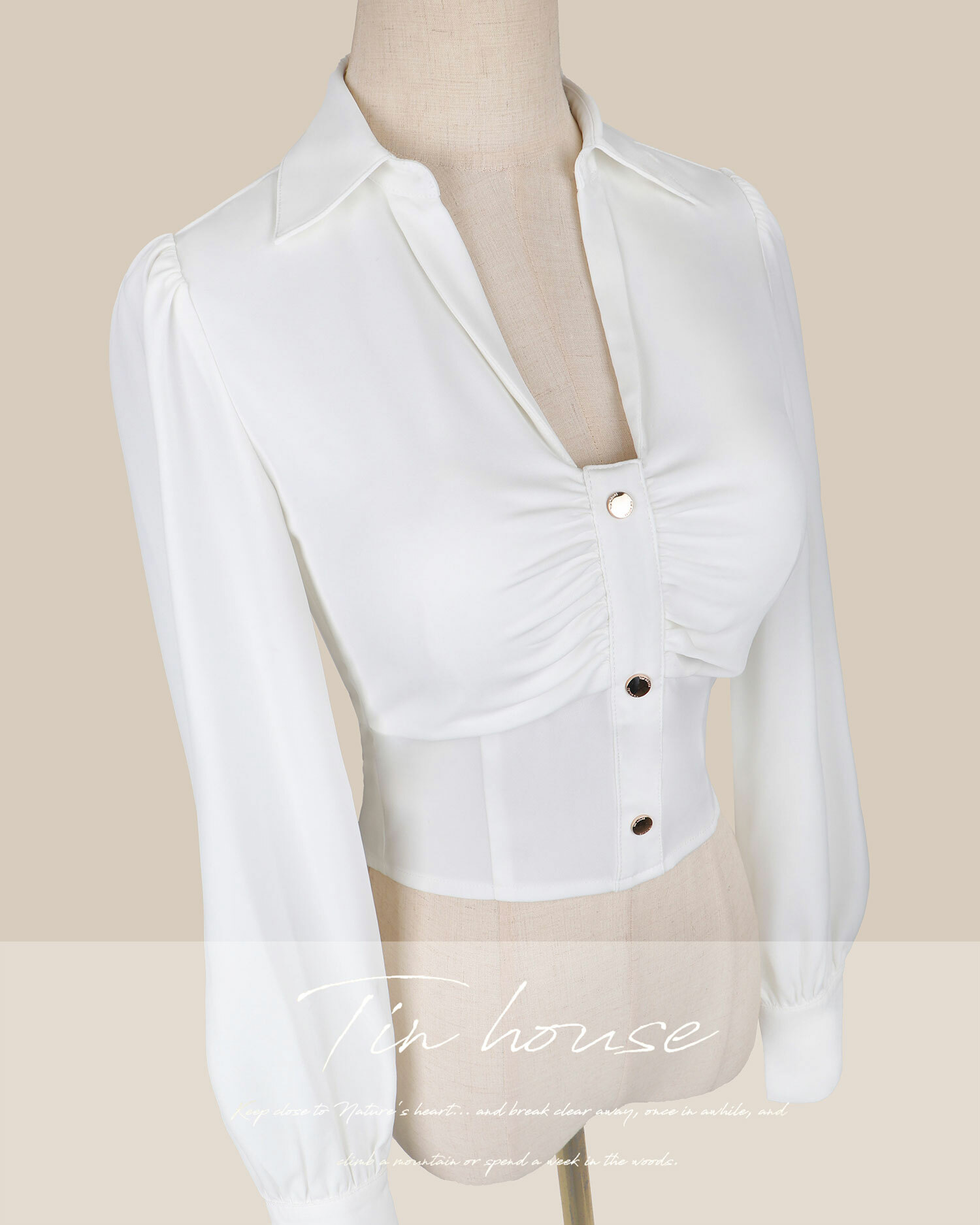 訂製-氣質金釦抓皺襯衫