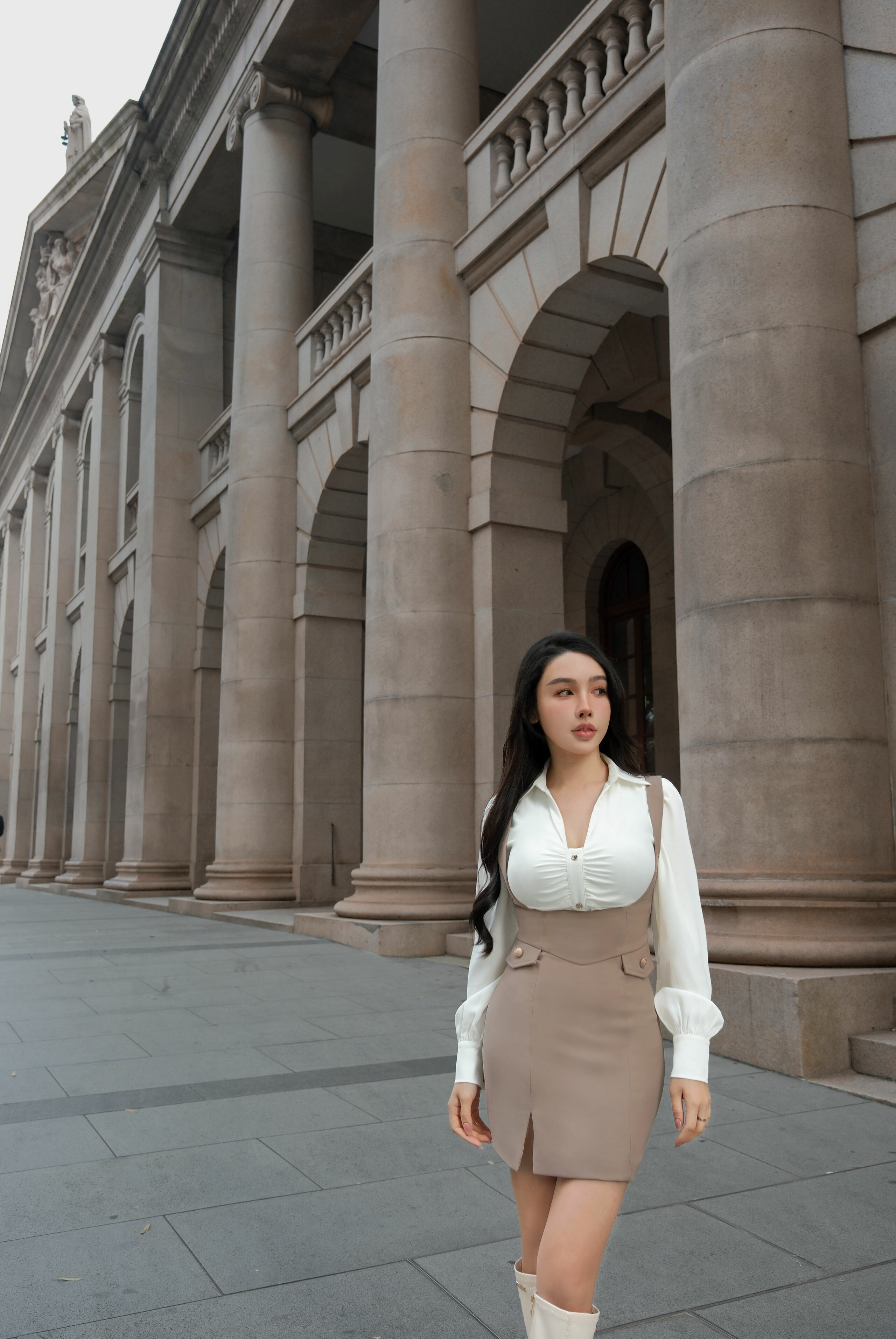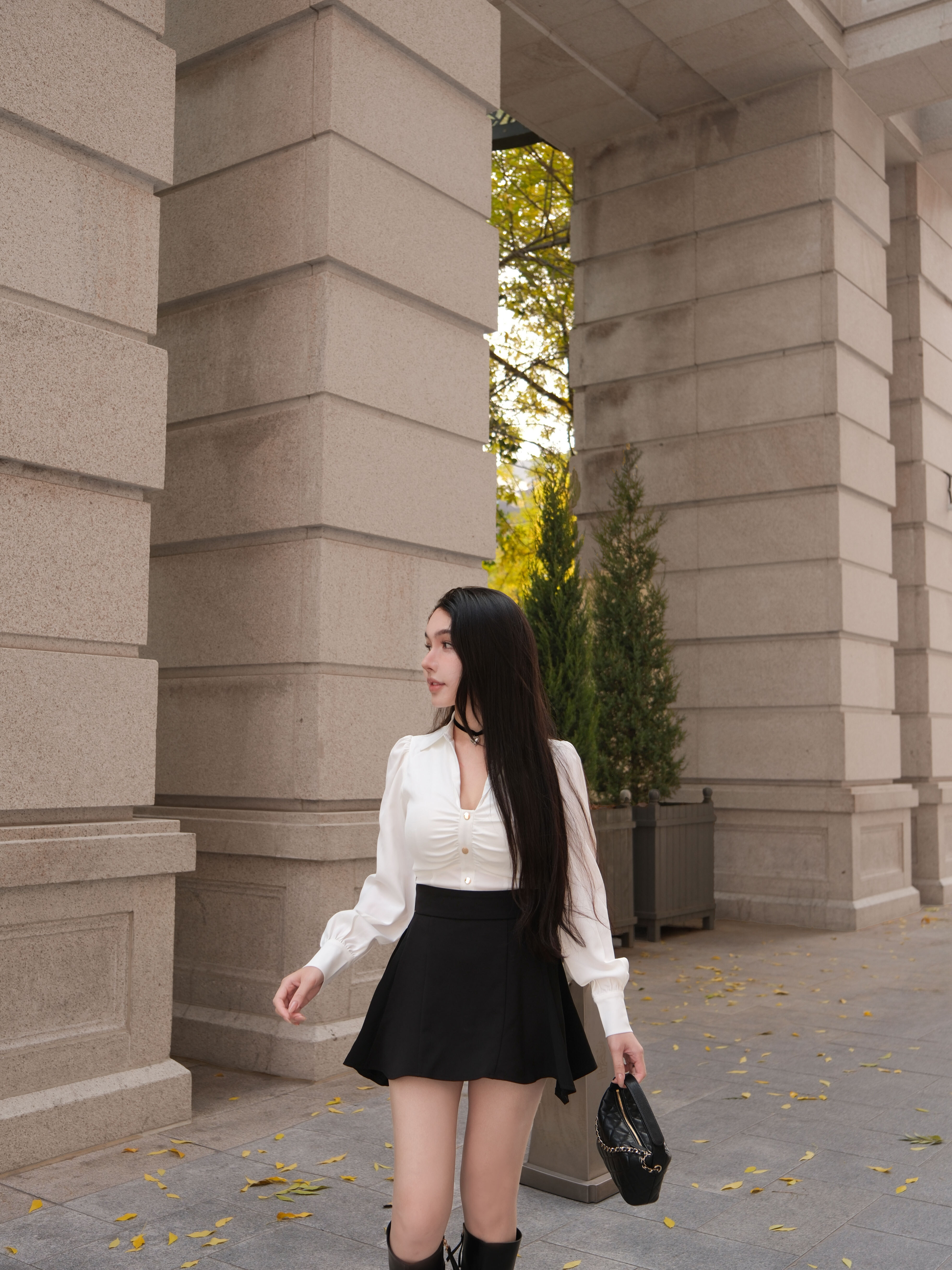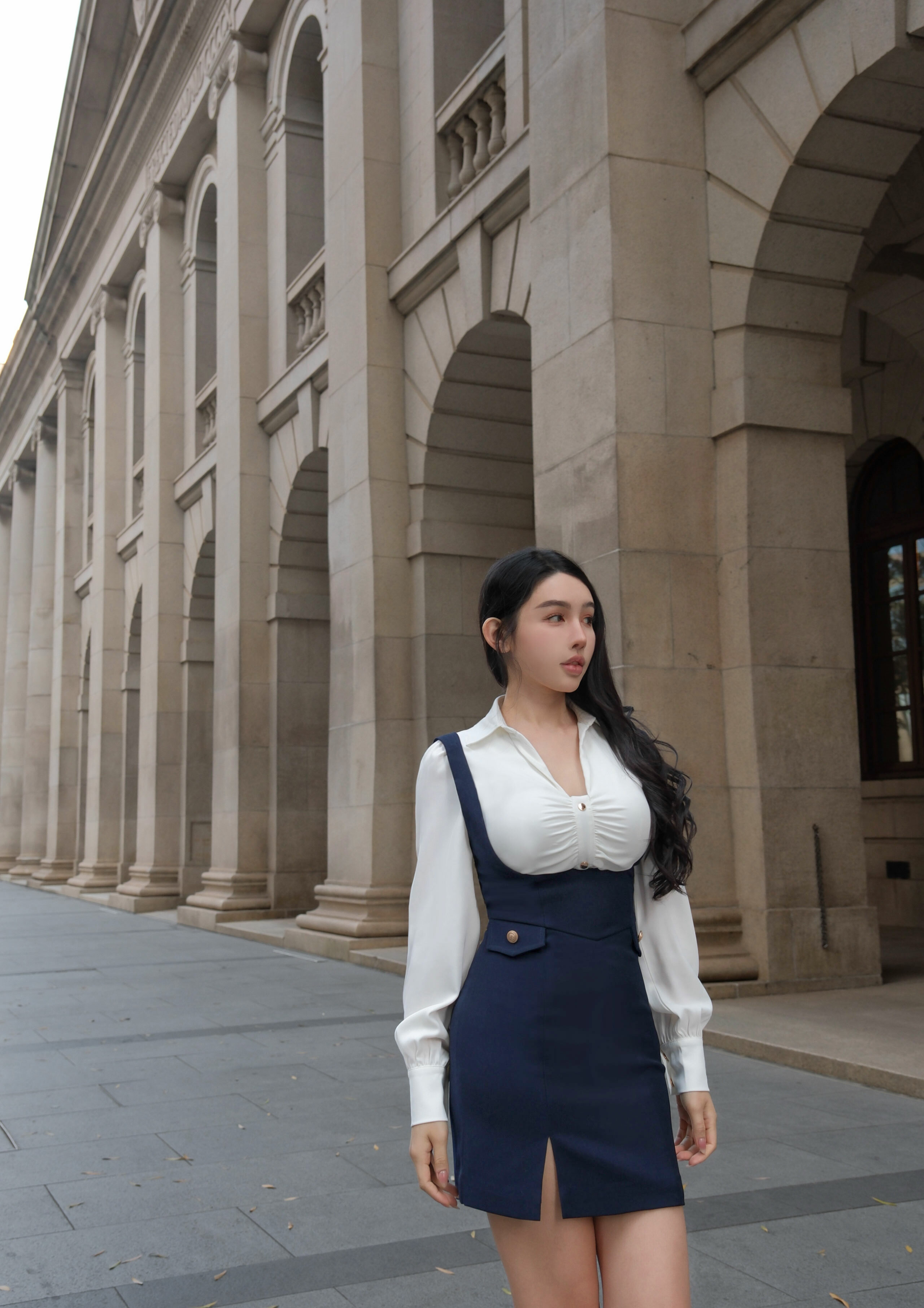 訂製-氣質金釦抓皺襯衫