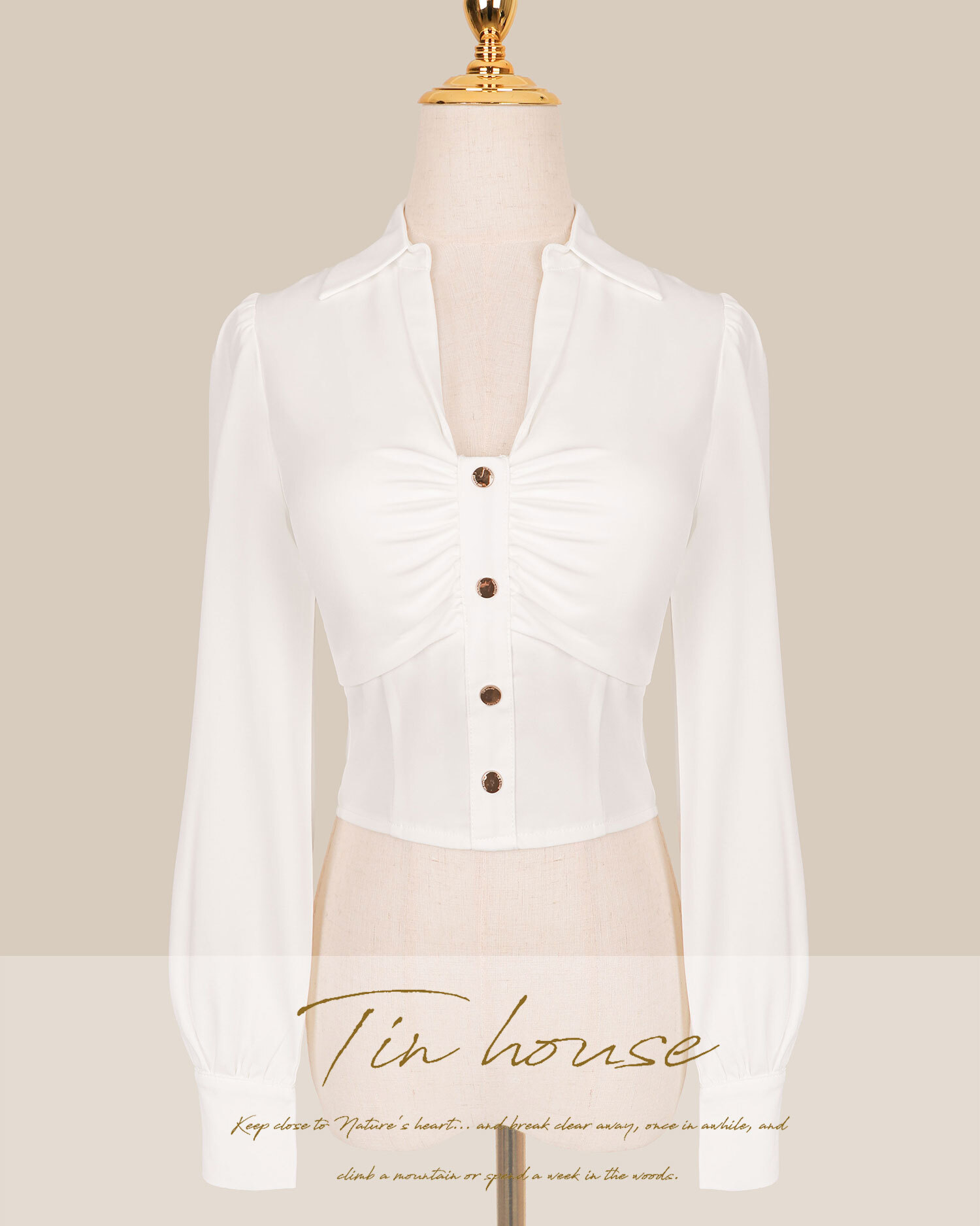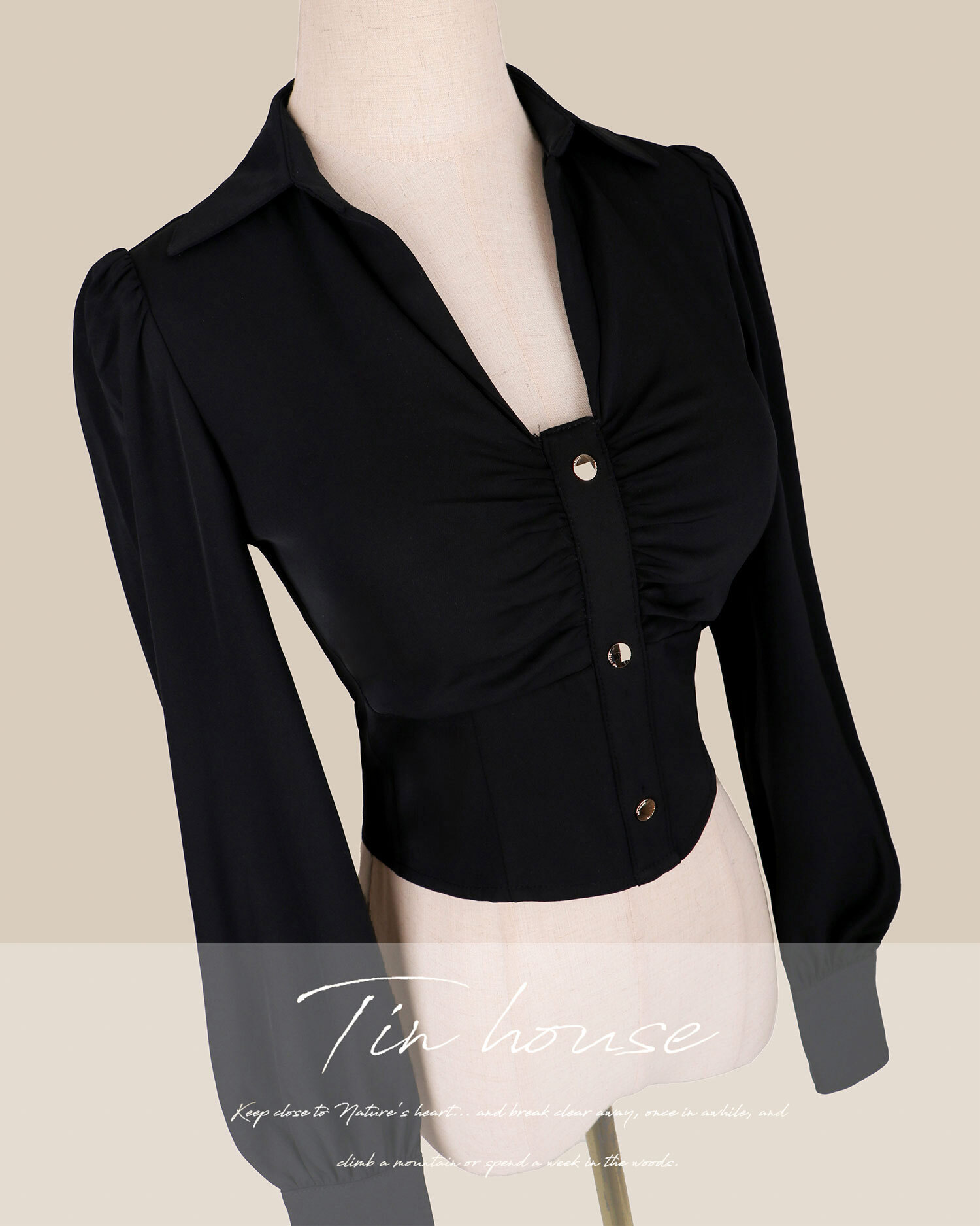 訂製-氣質金釦抓皺襯衫