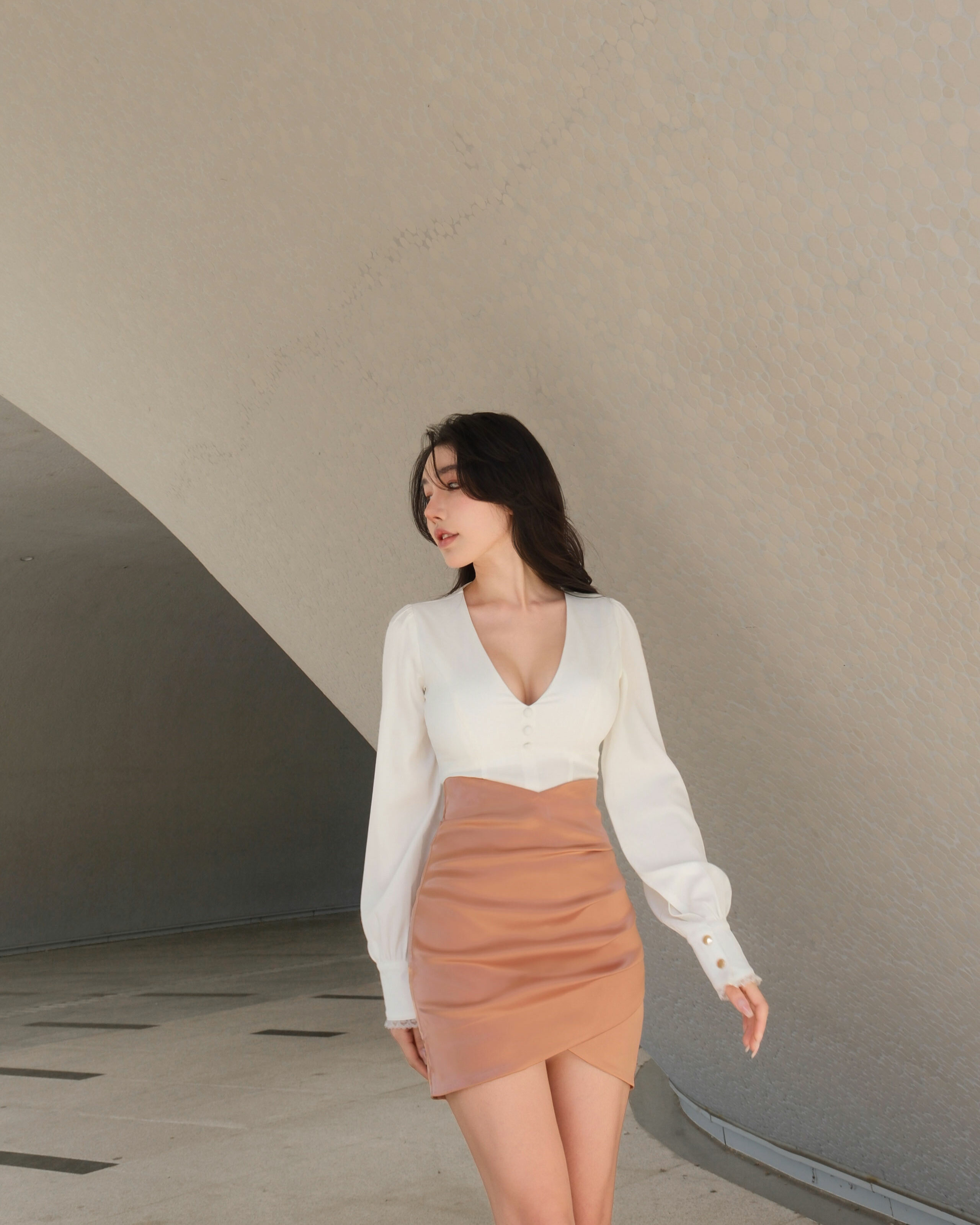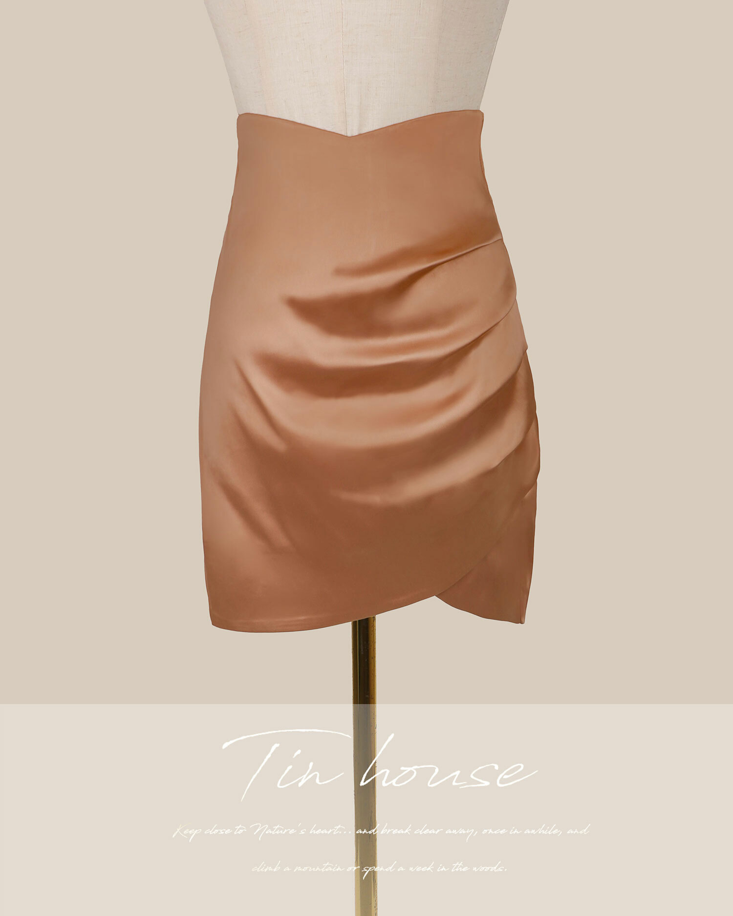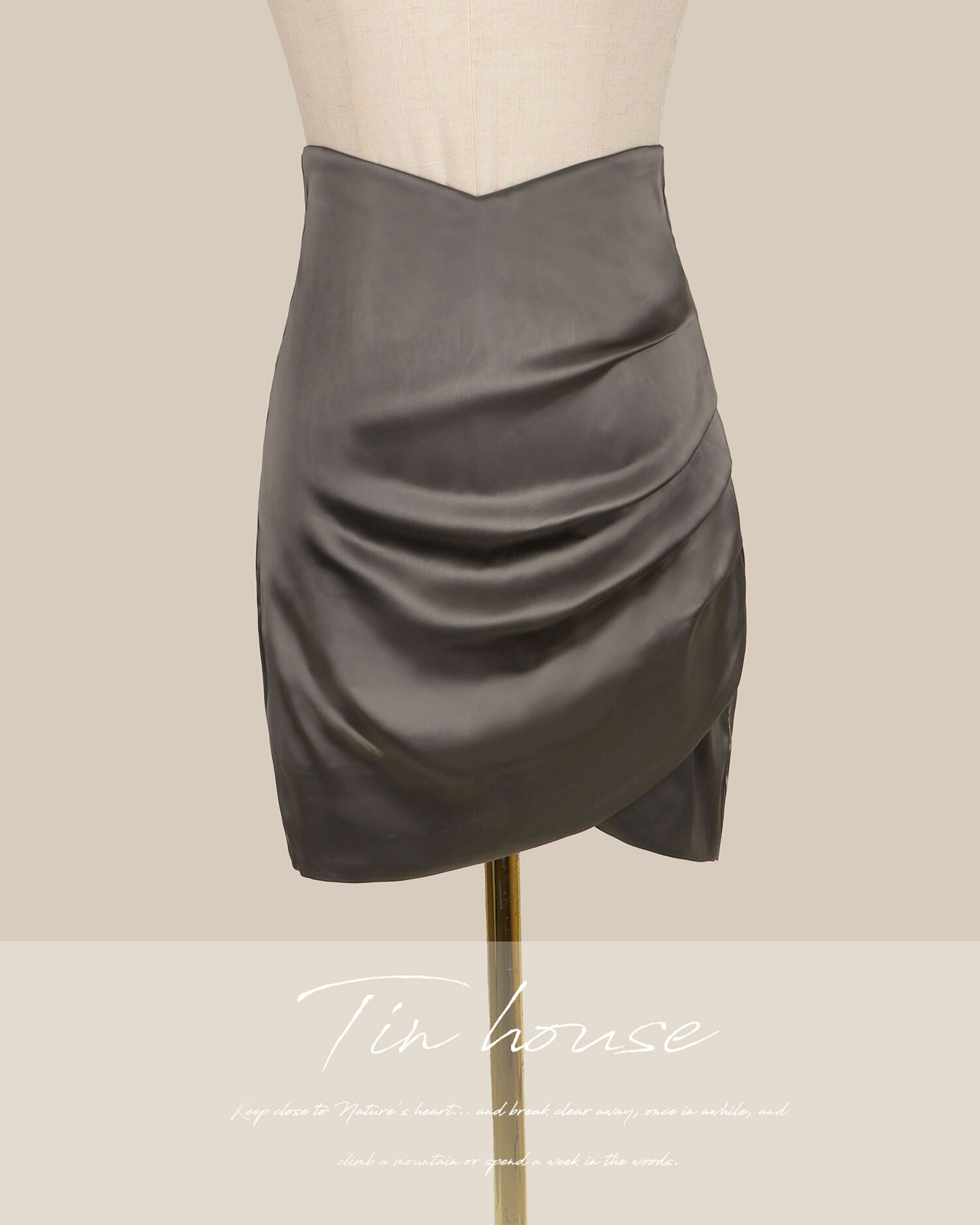 訂製-氣質緞面抓皺合身包裙