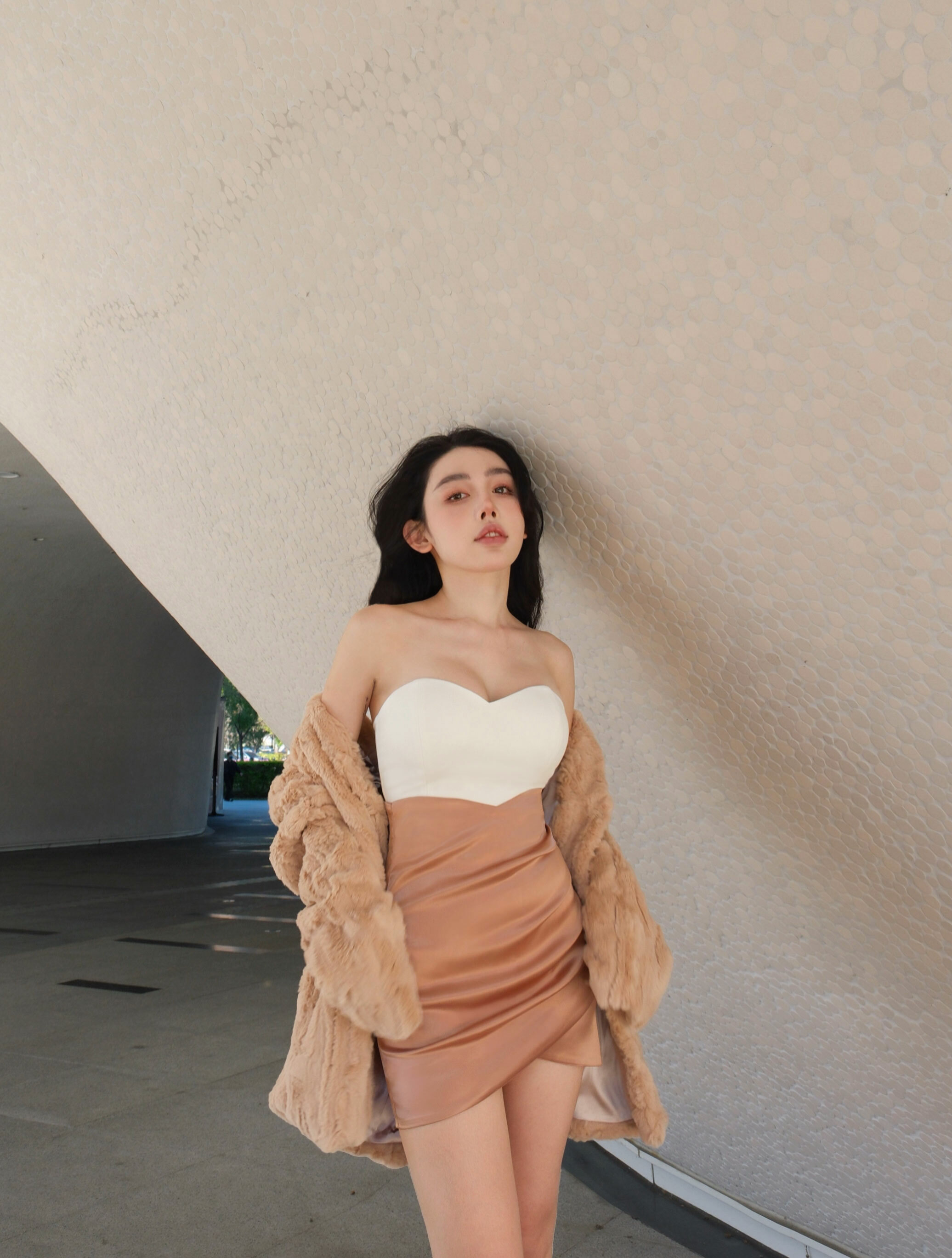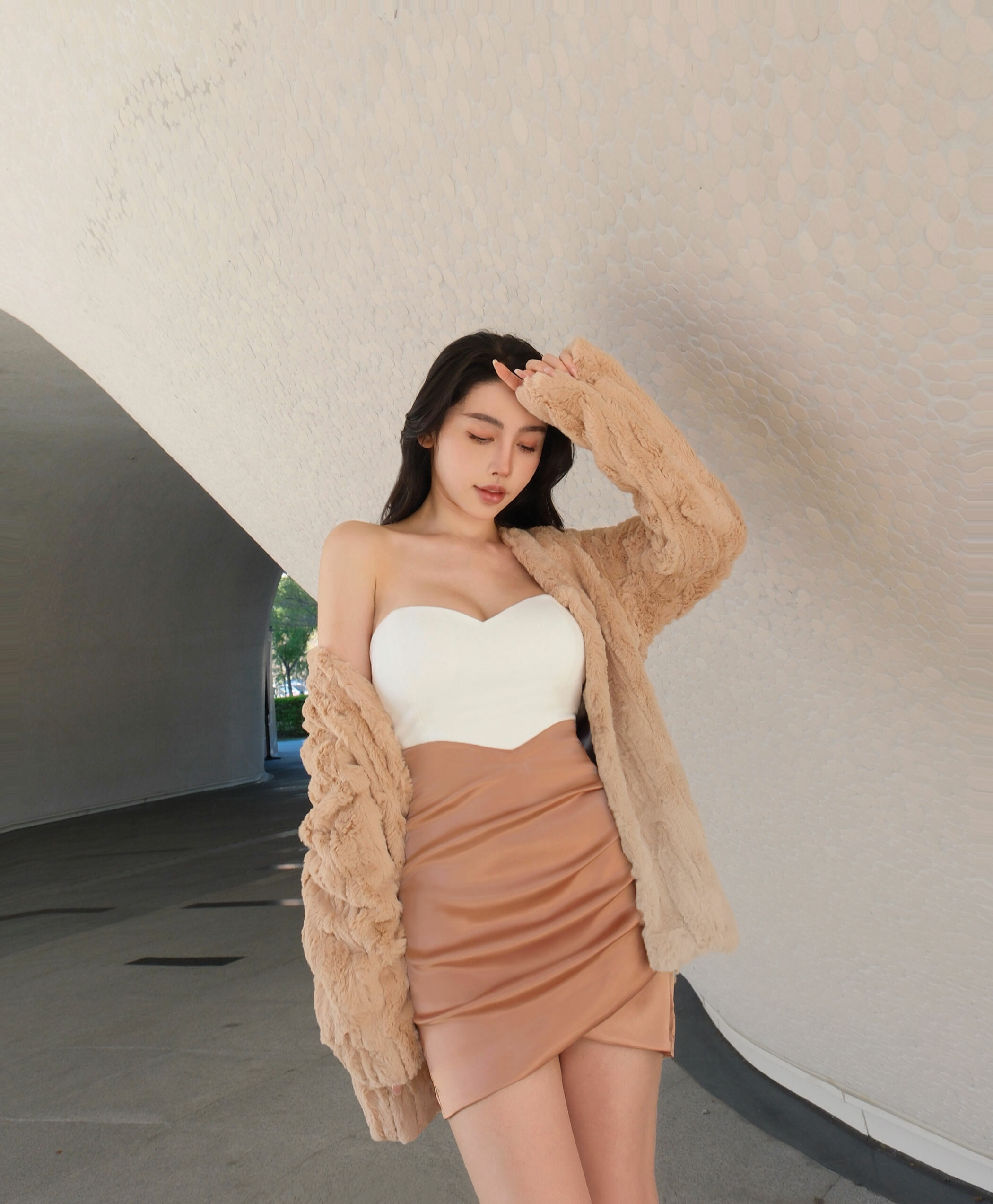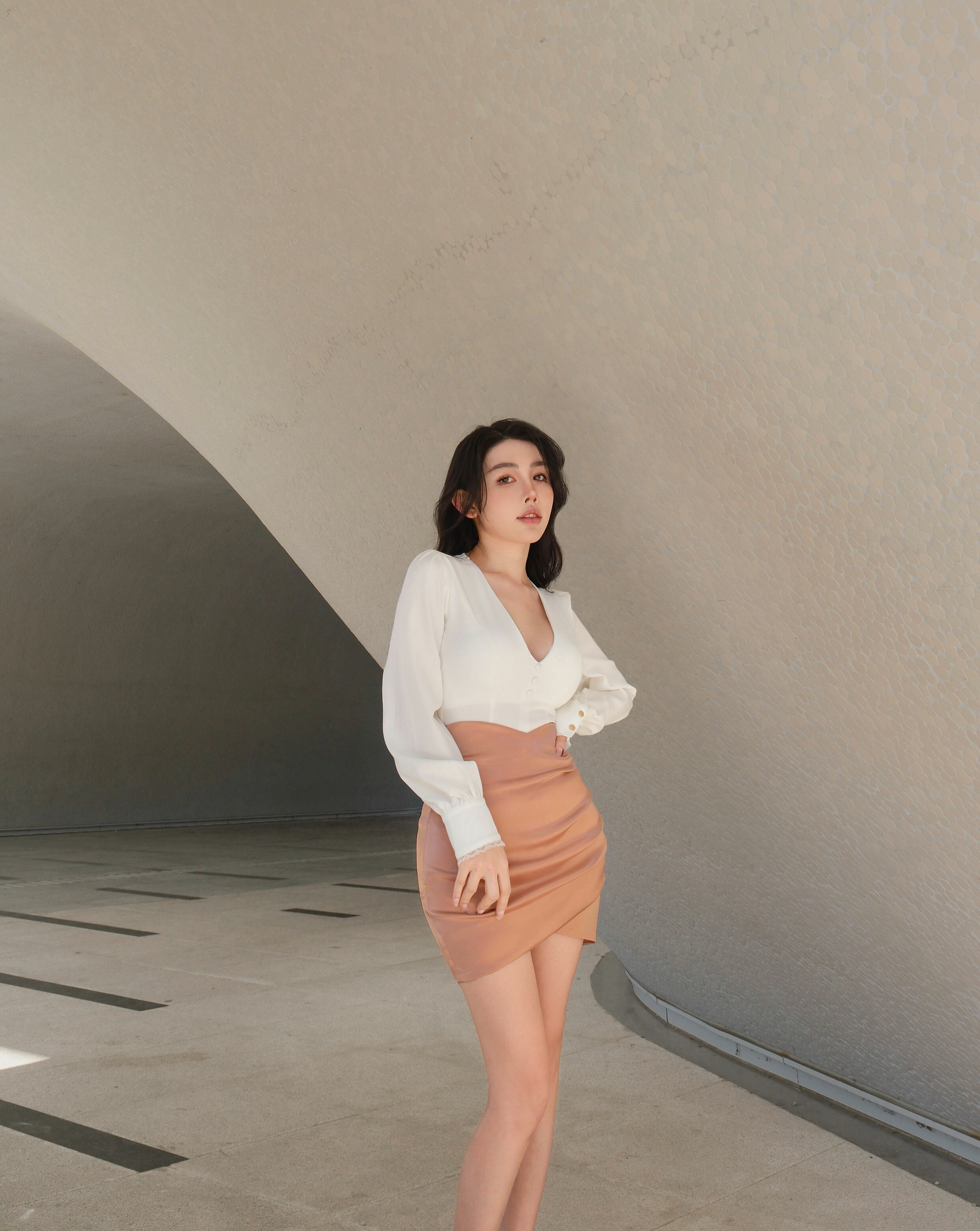 訂製-氣質緞面抓皺合身包裙