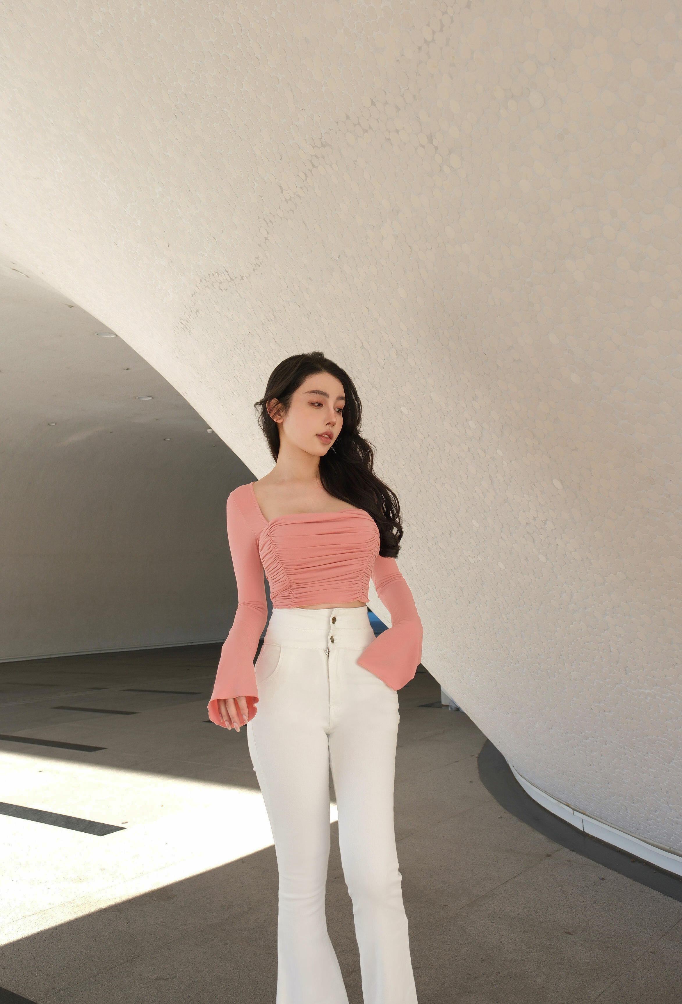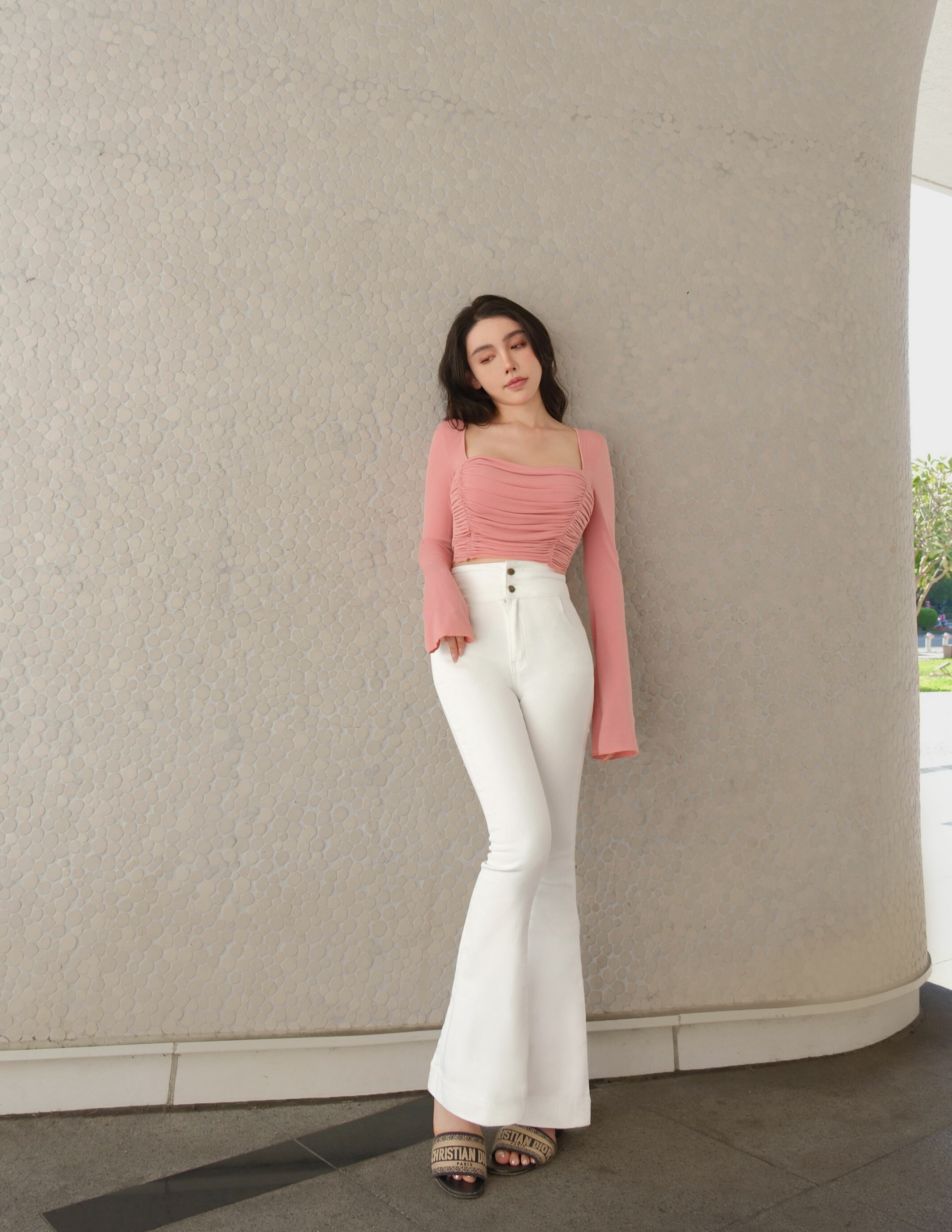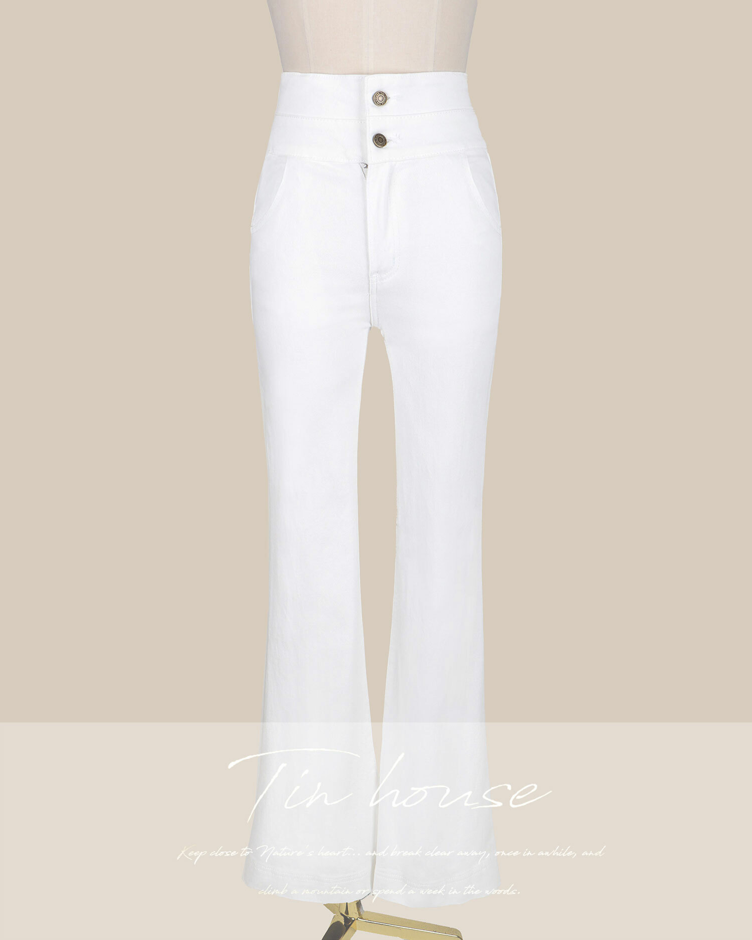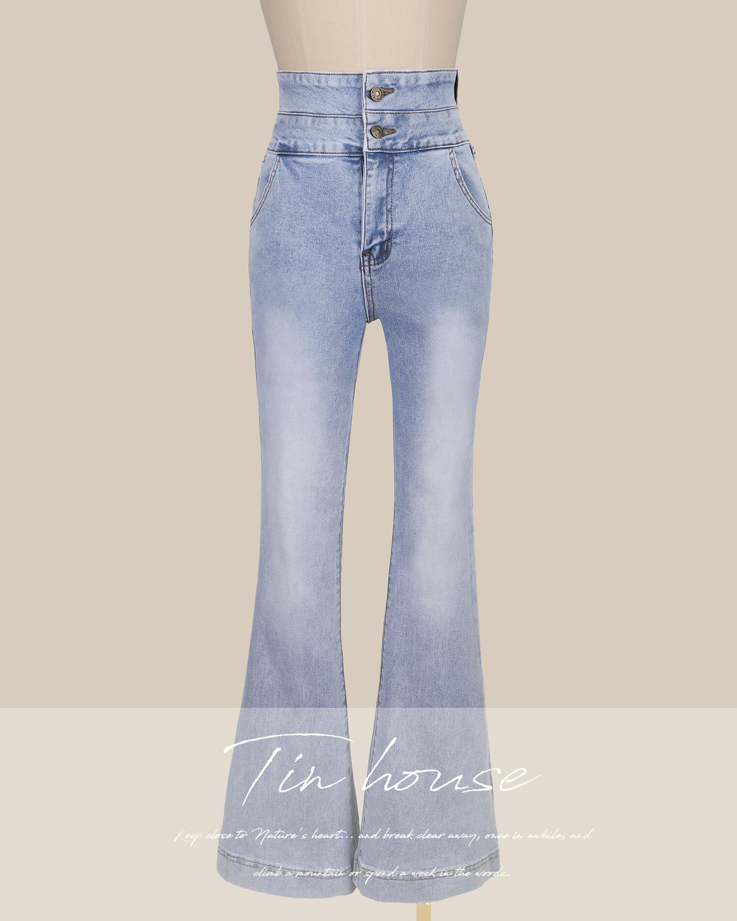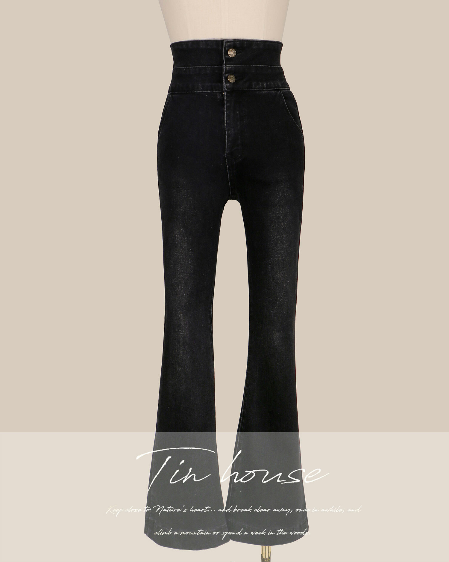 指定商品,高腰雙釦修身牛仔喇叭褲-多件優惠