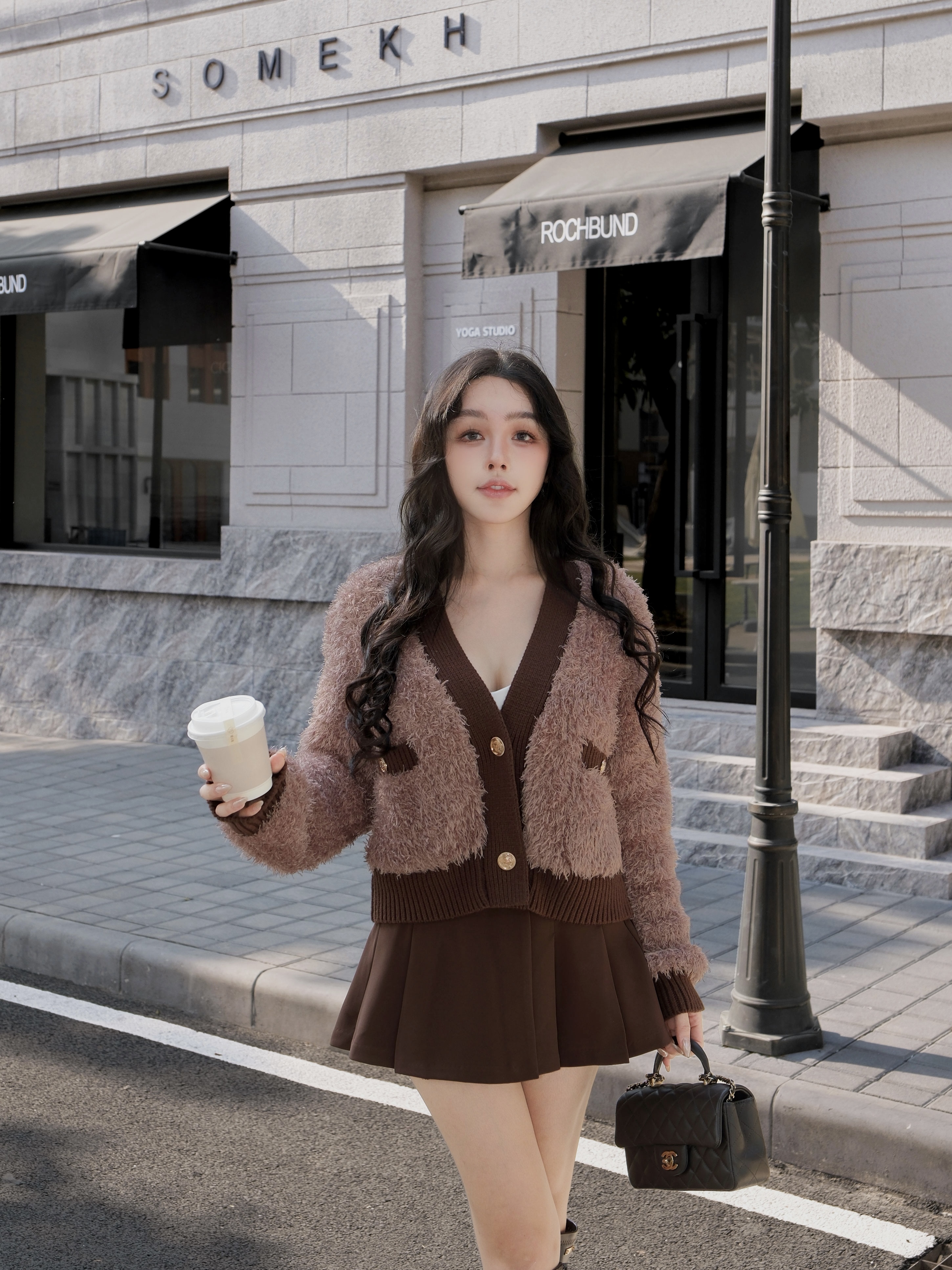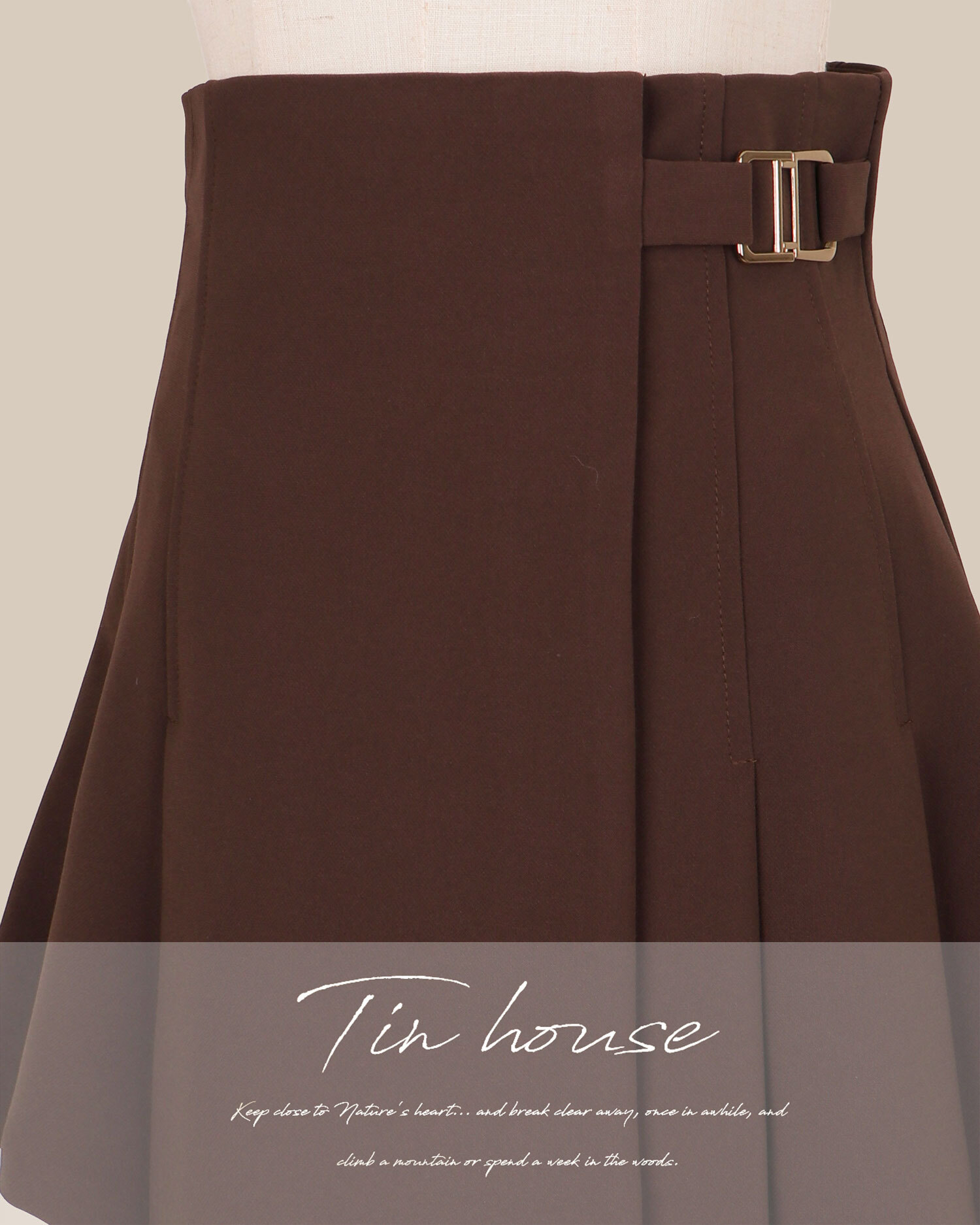 訂製-質感金屬釦高腰百褶傘裙