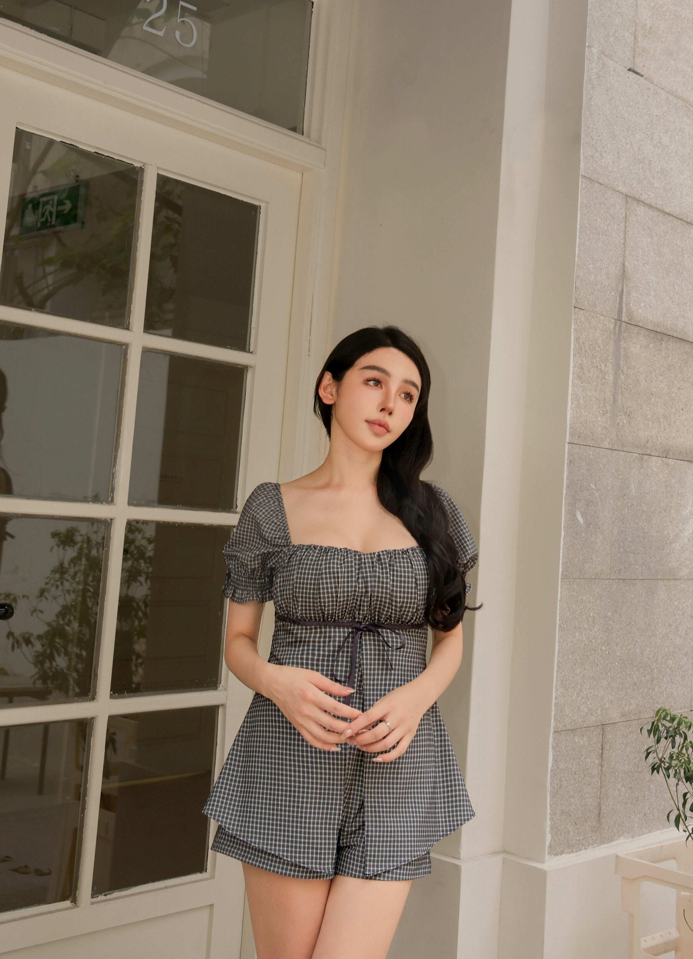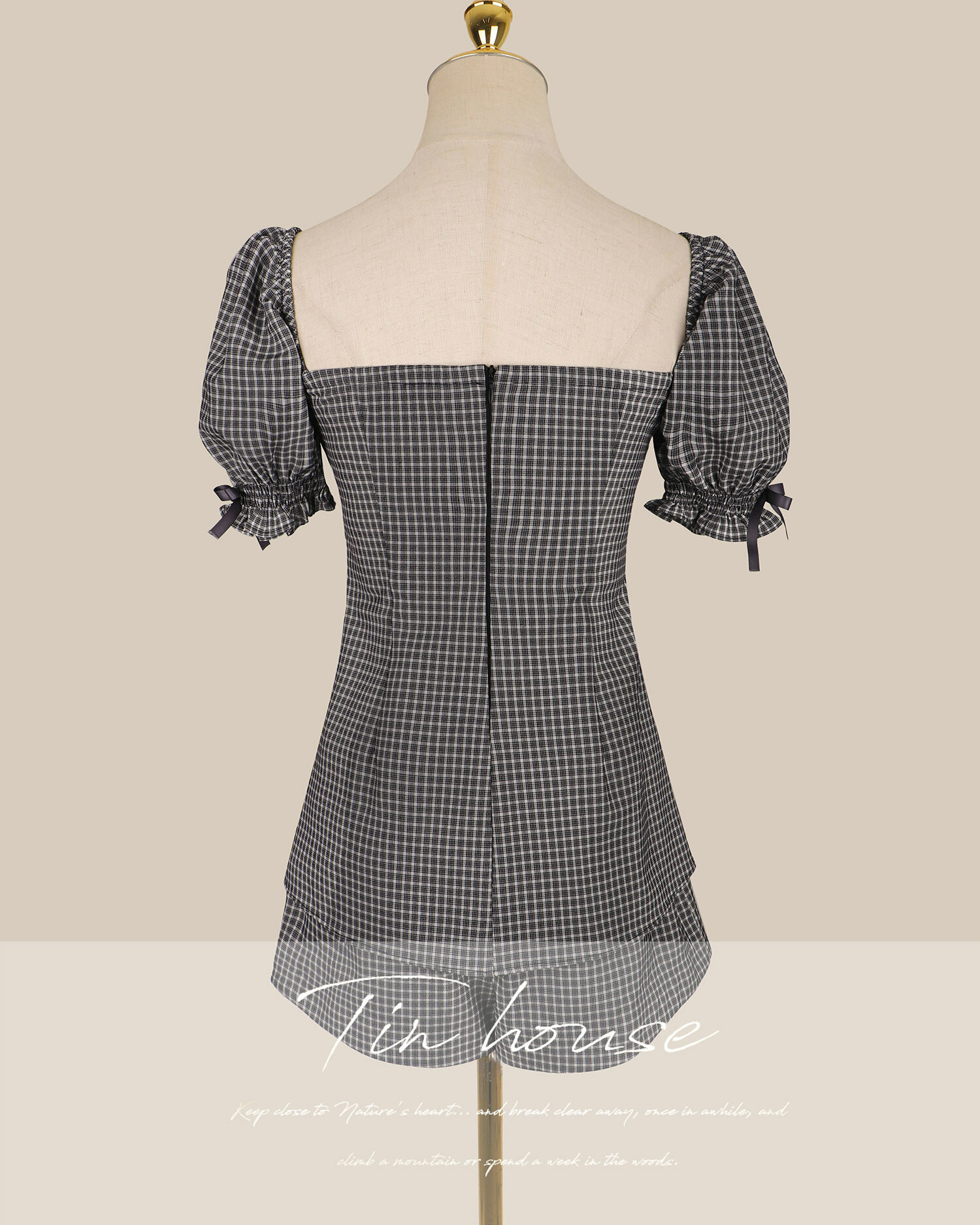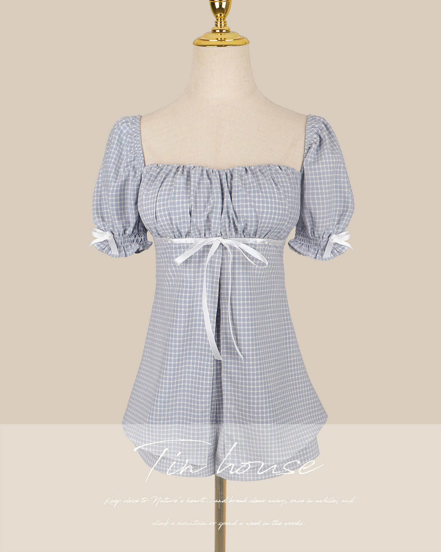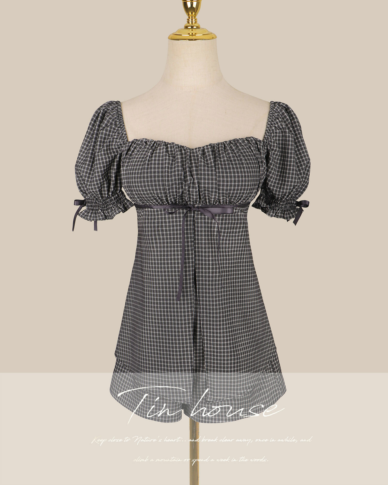 ⭒訂製-甜美格紋緞帶桃心套裝