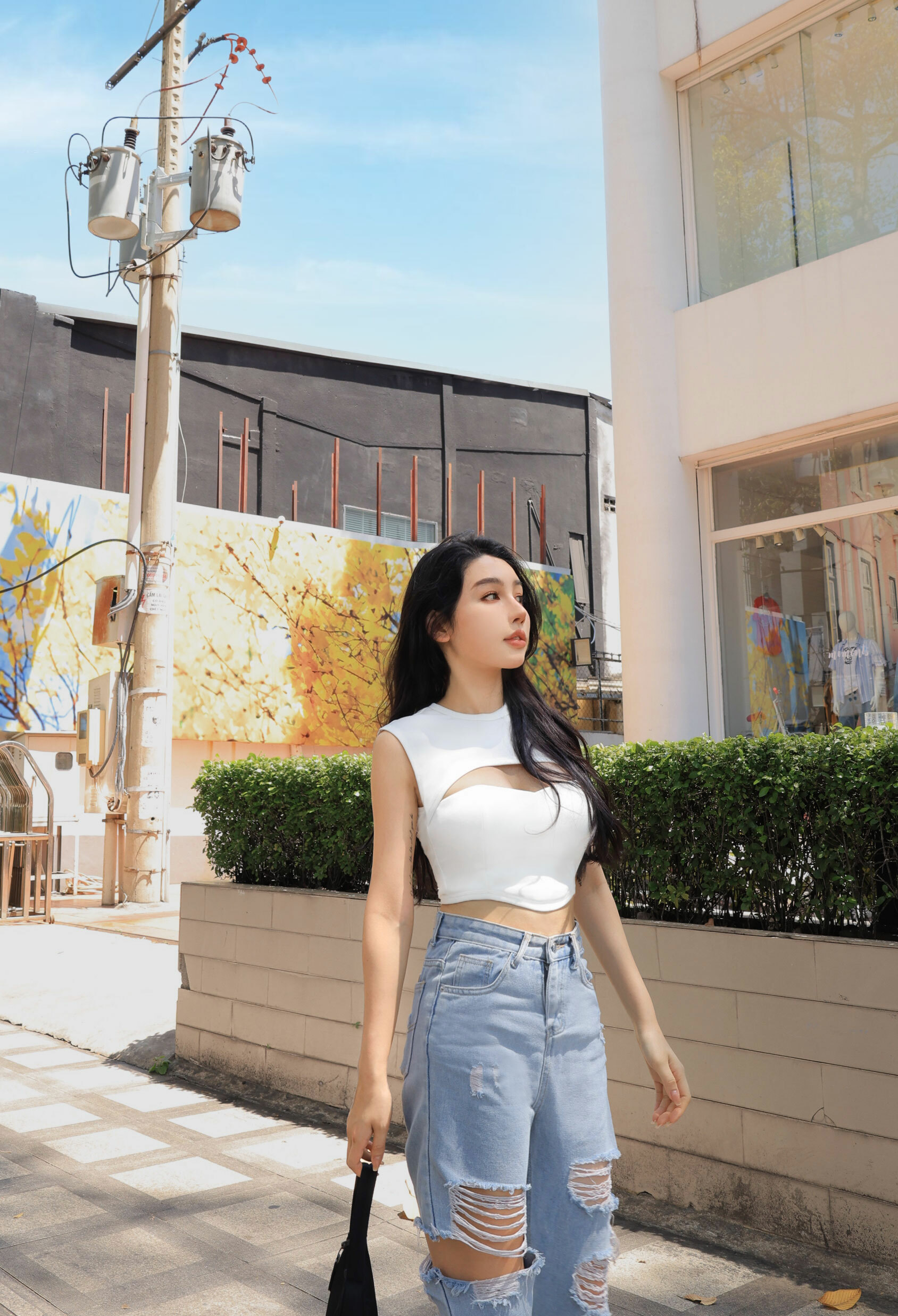 訂製-性感挖胸無袖短上衣