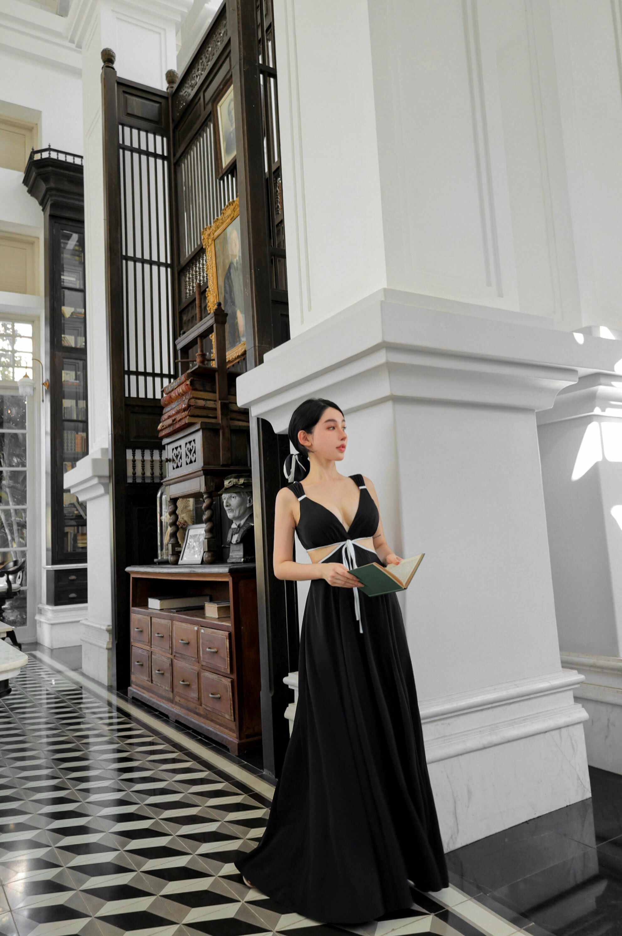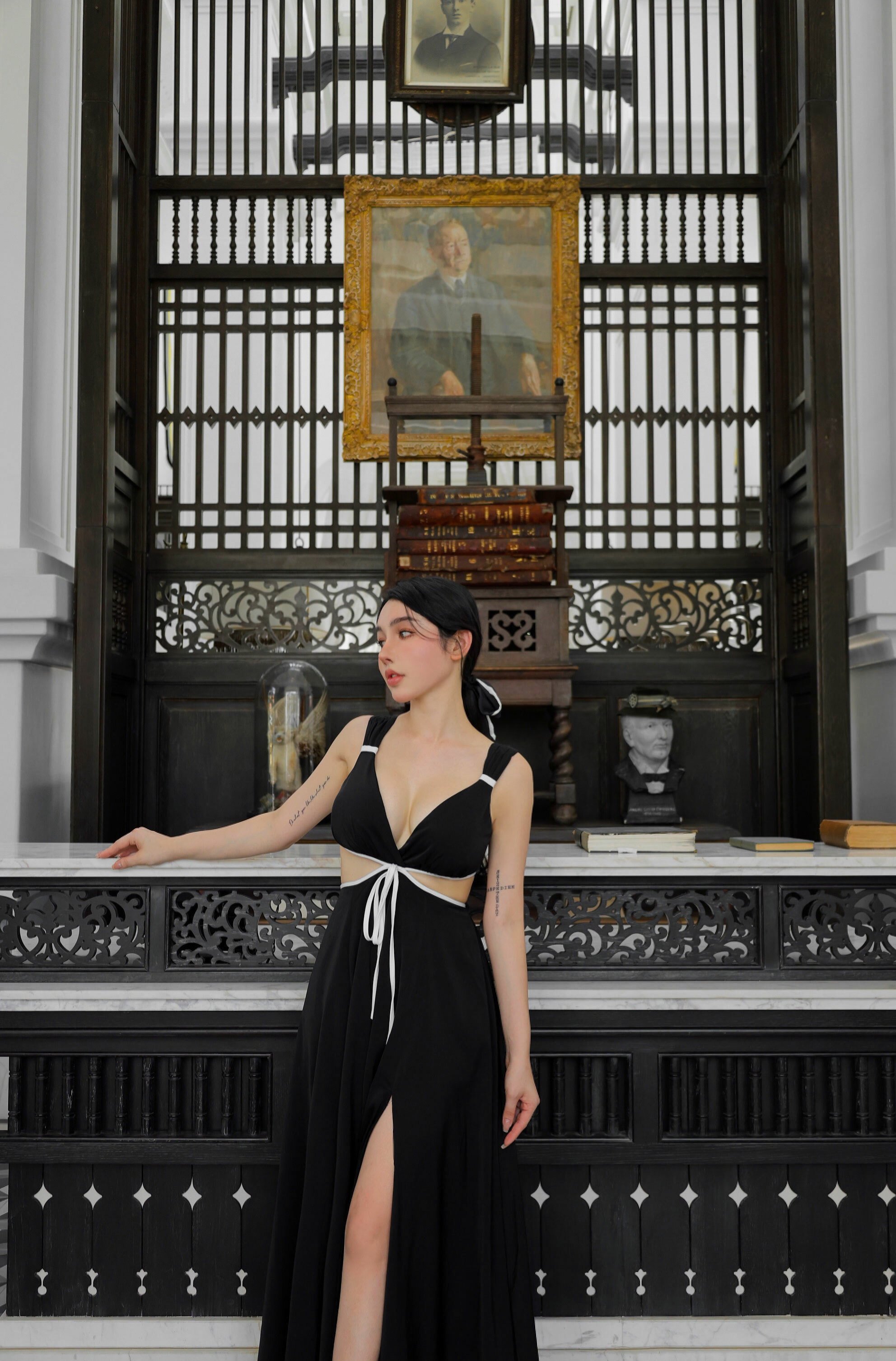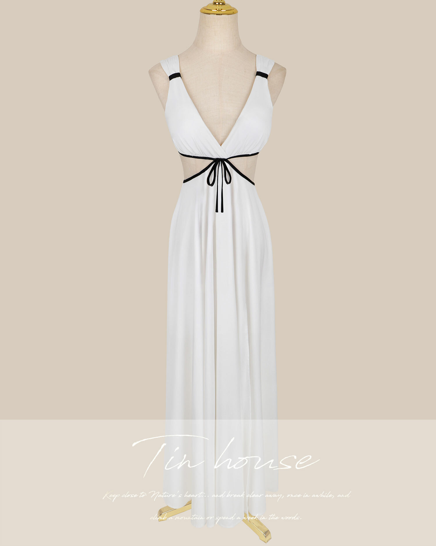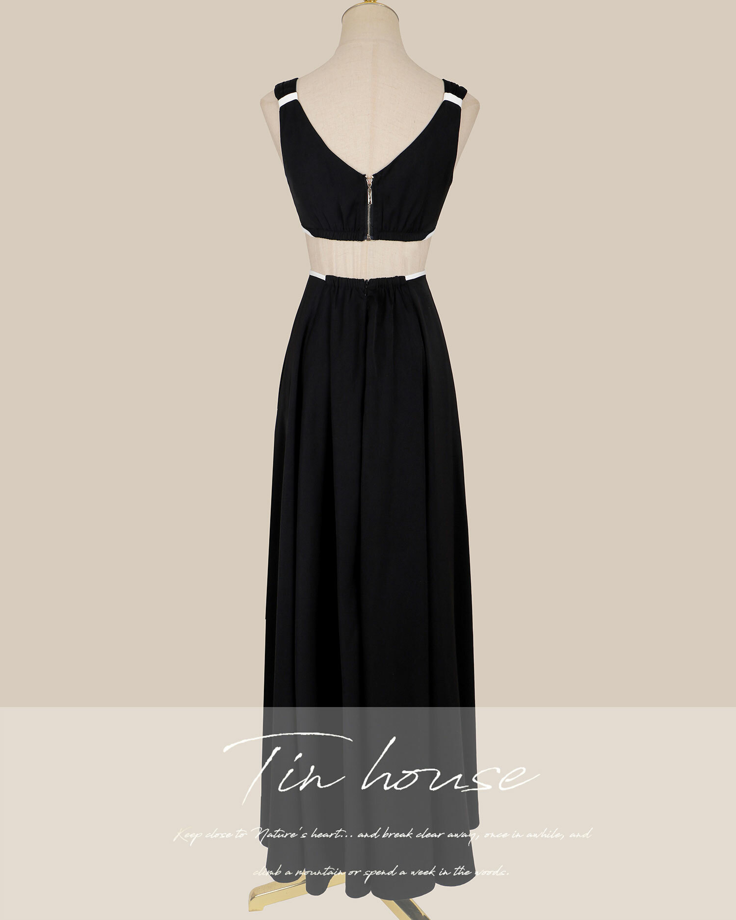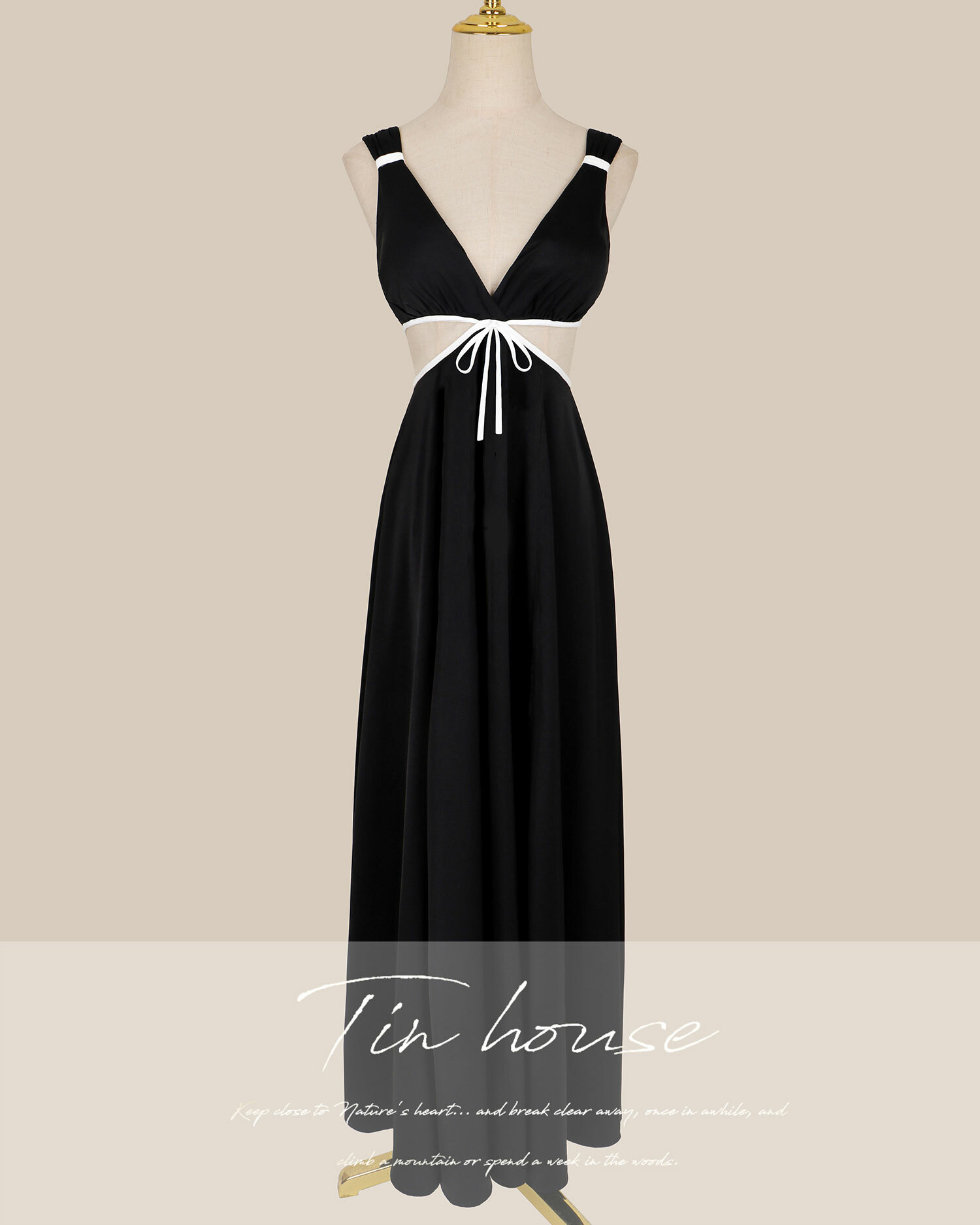 ⭒訂製-小香撞色低胸露腰長洋