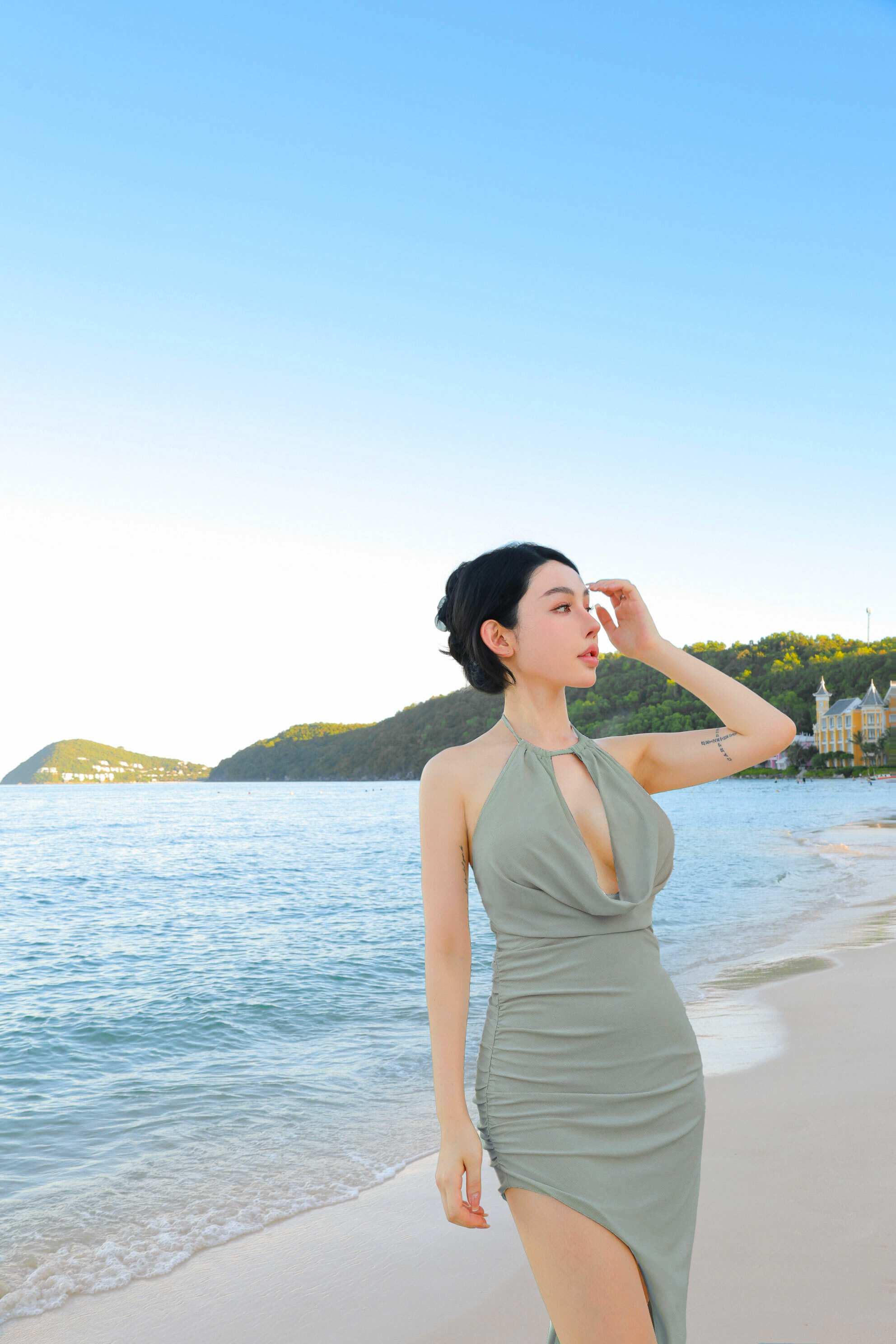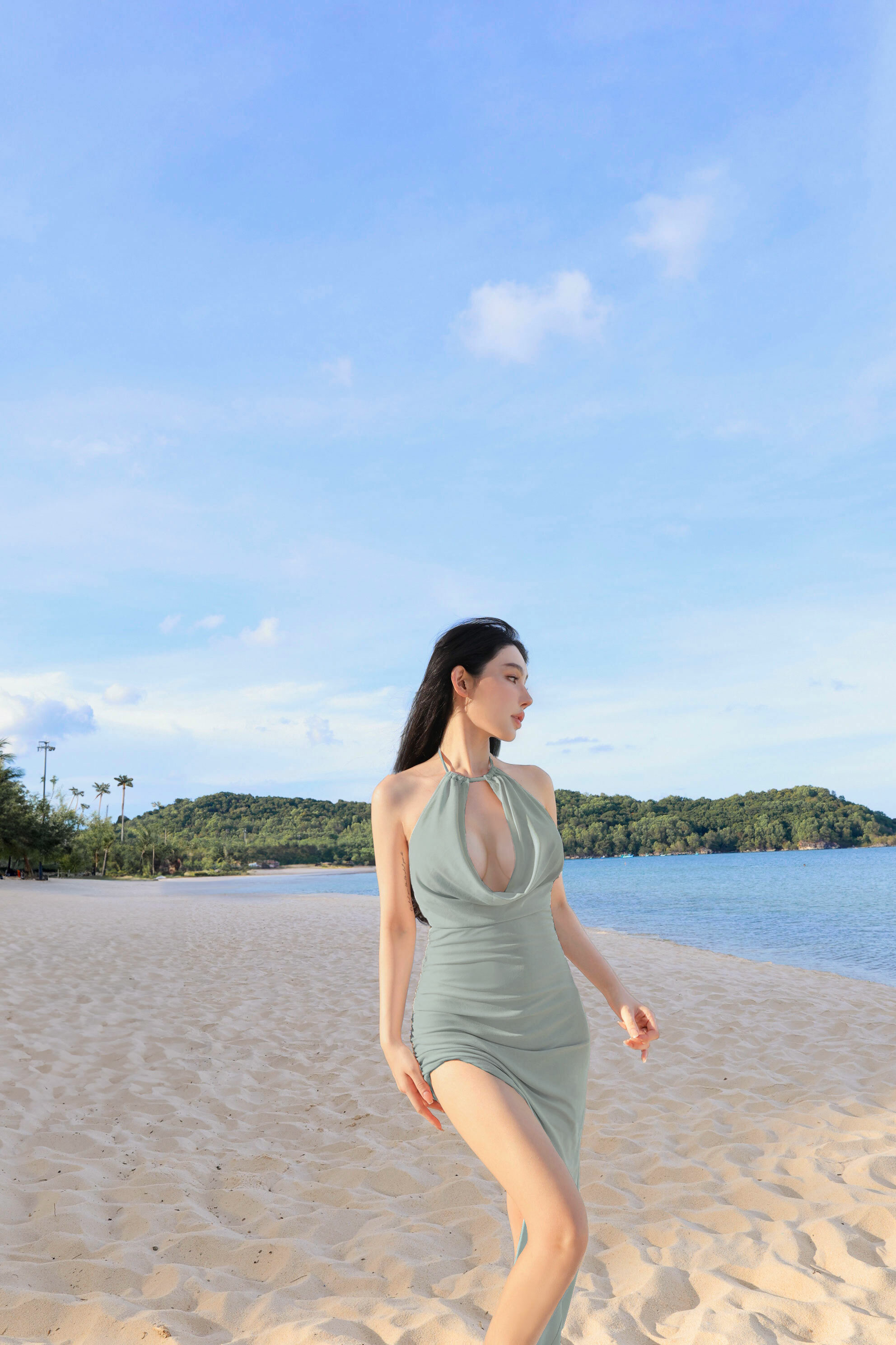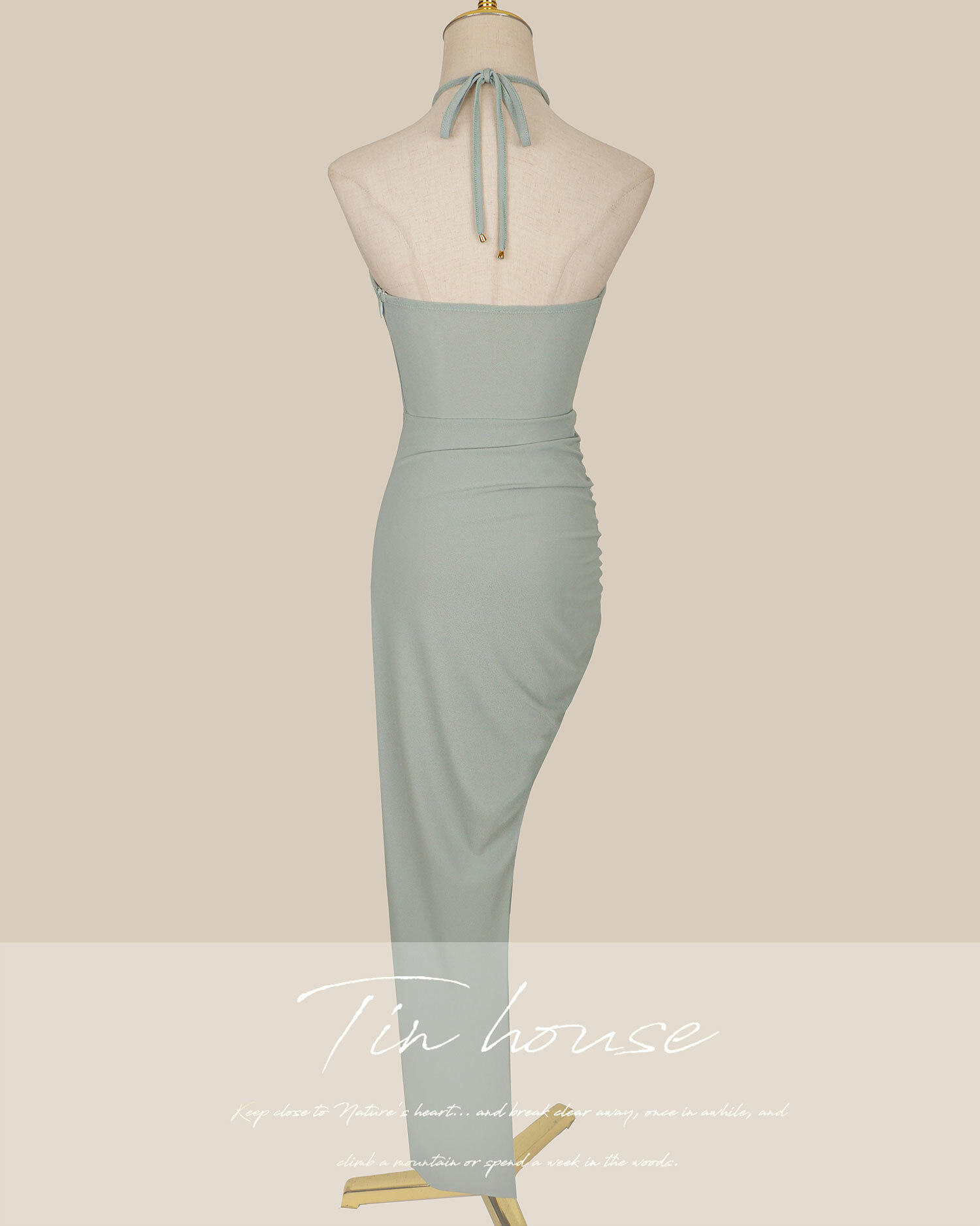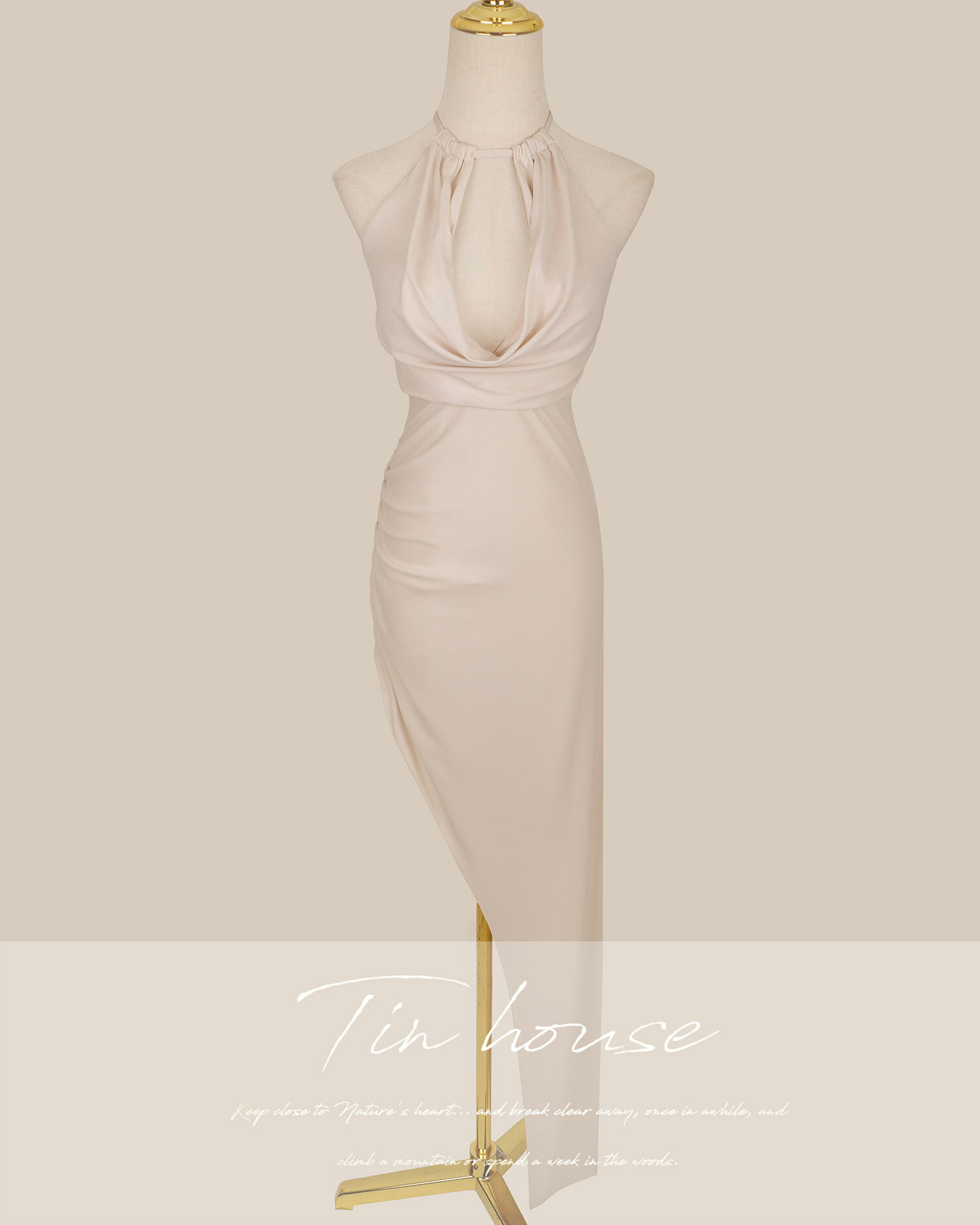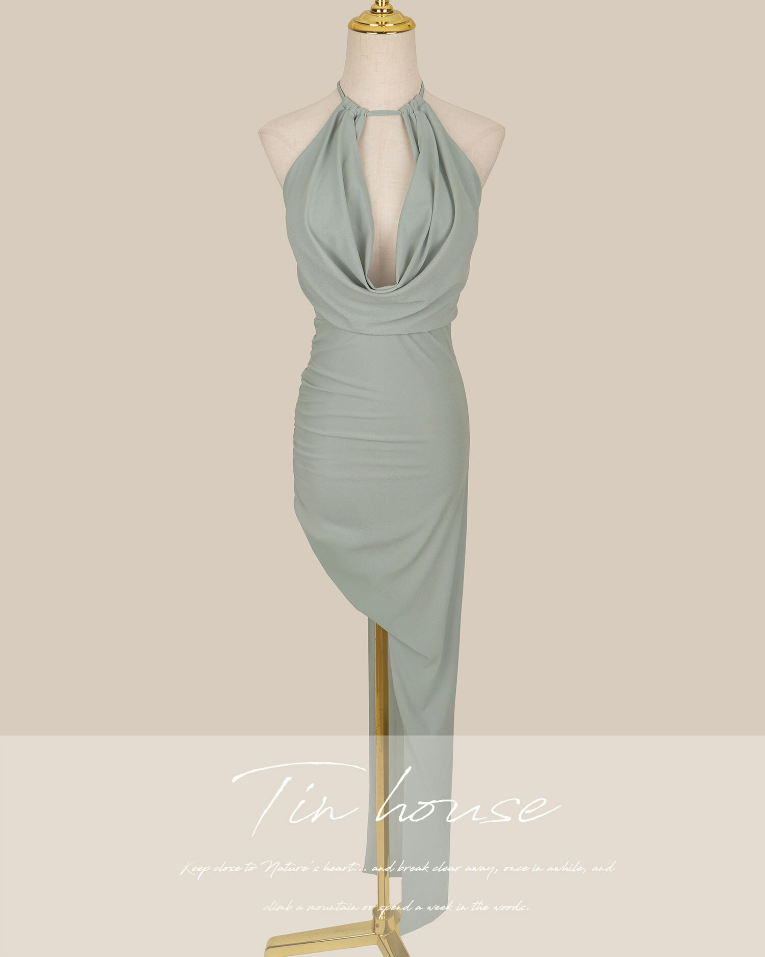 ⭒訂製-性感低胸垂領斜襬長洋