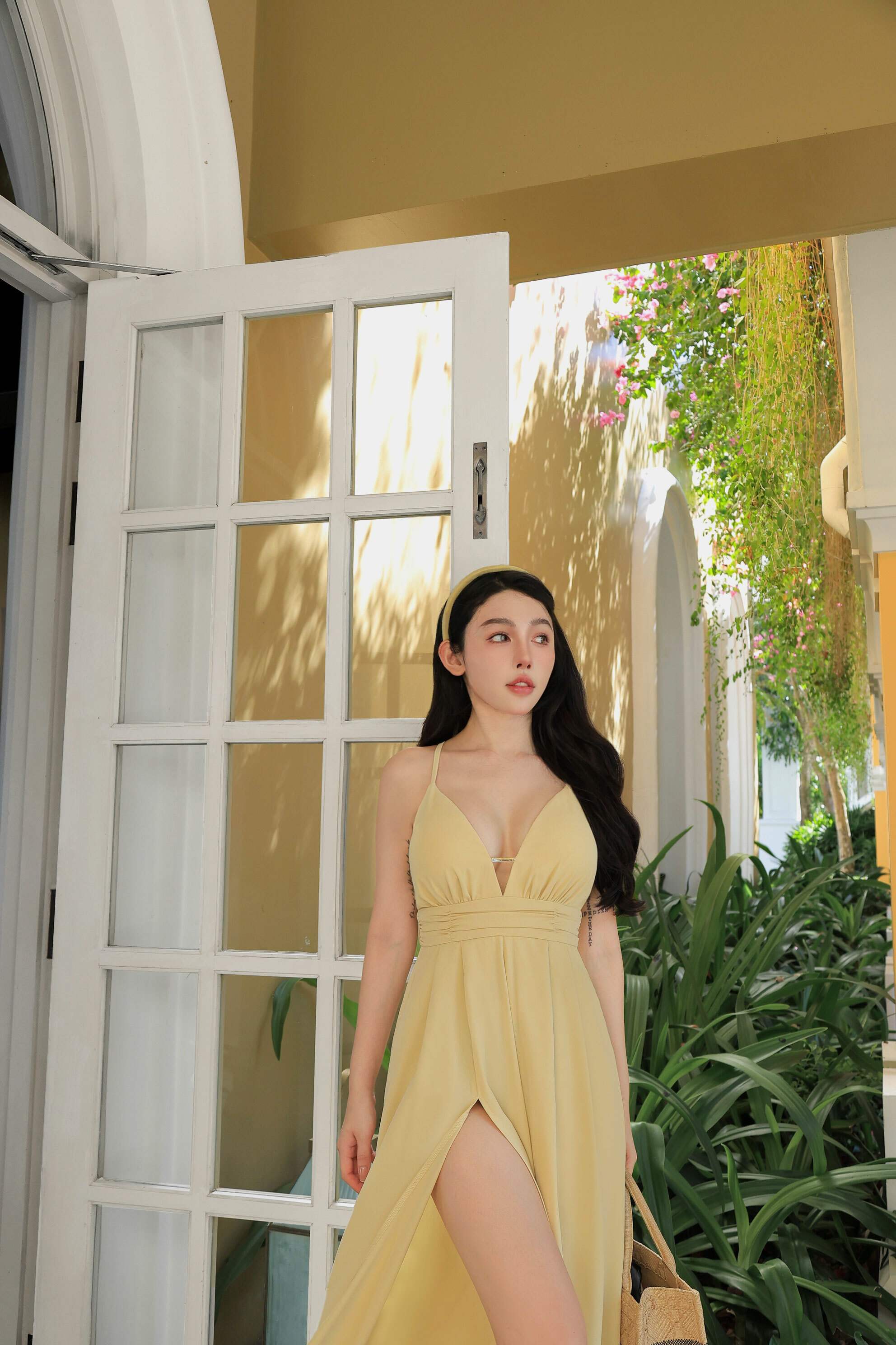 訂製-細肩美背低胸雪紡連身褲裝