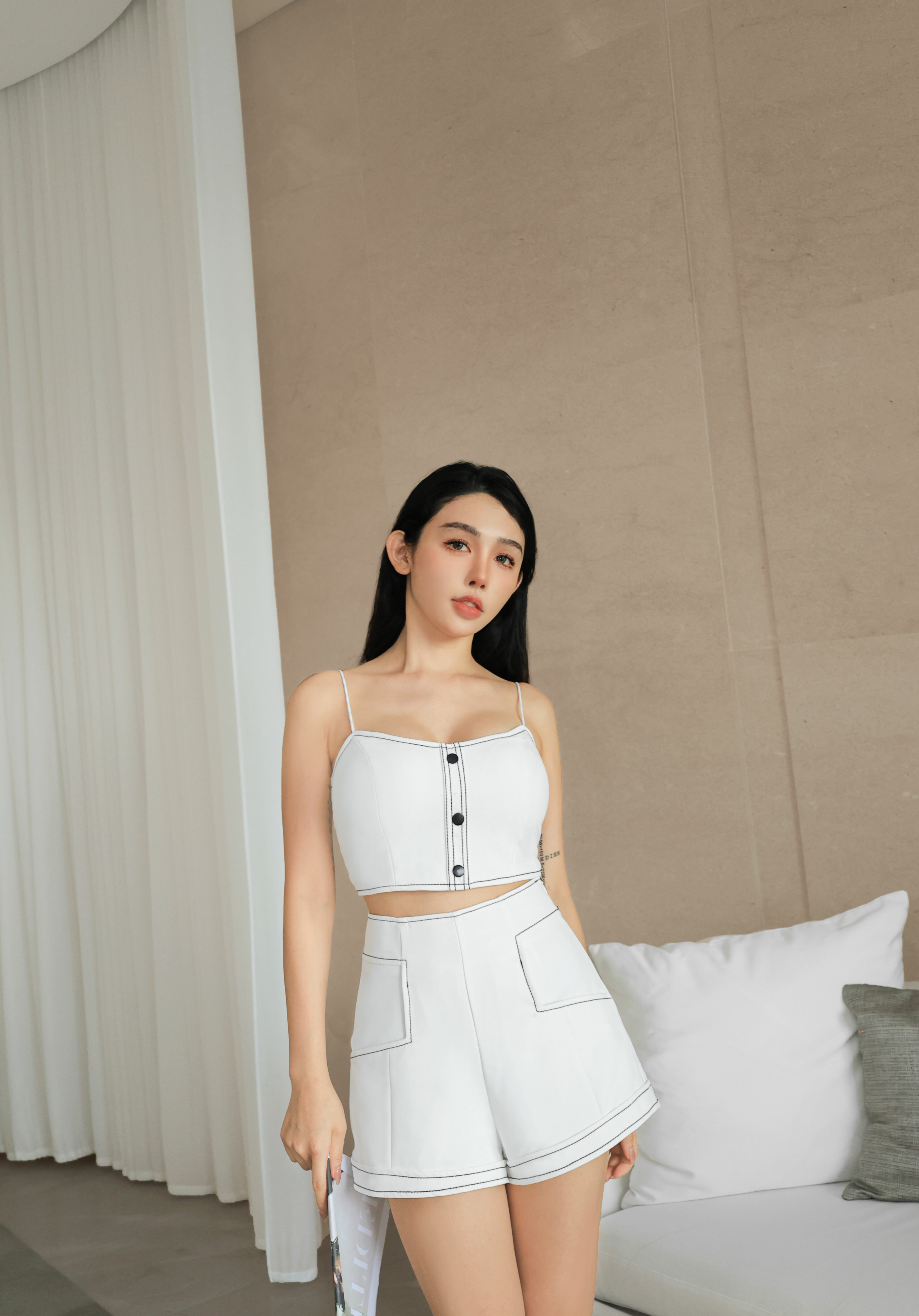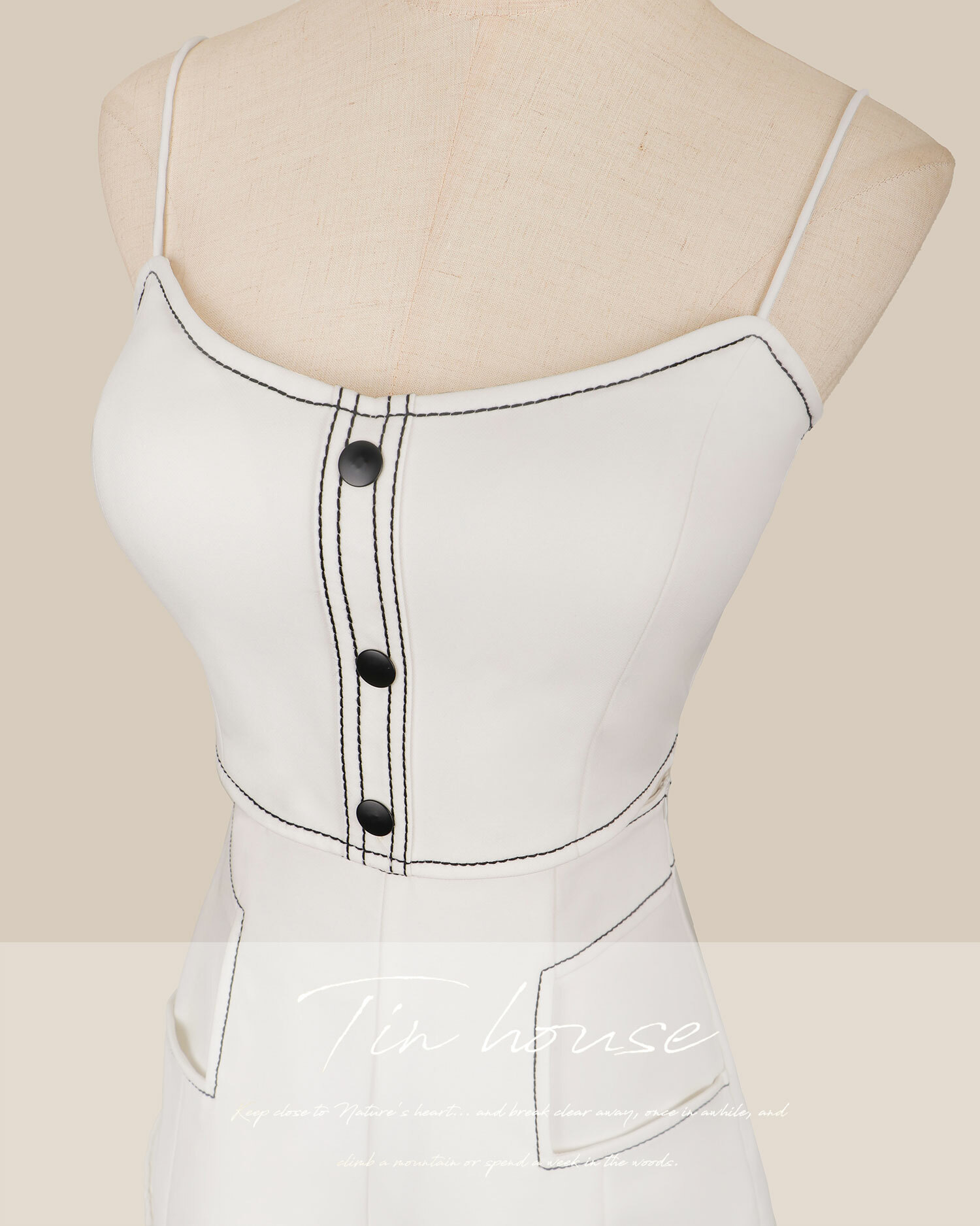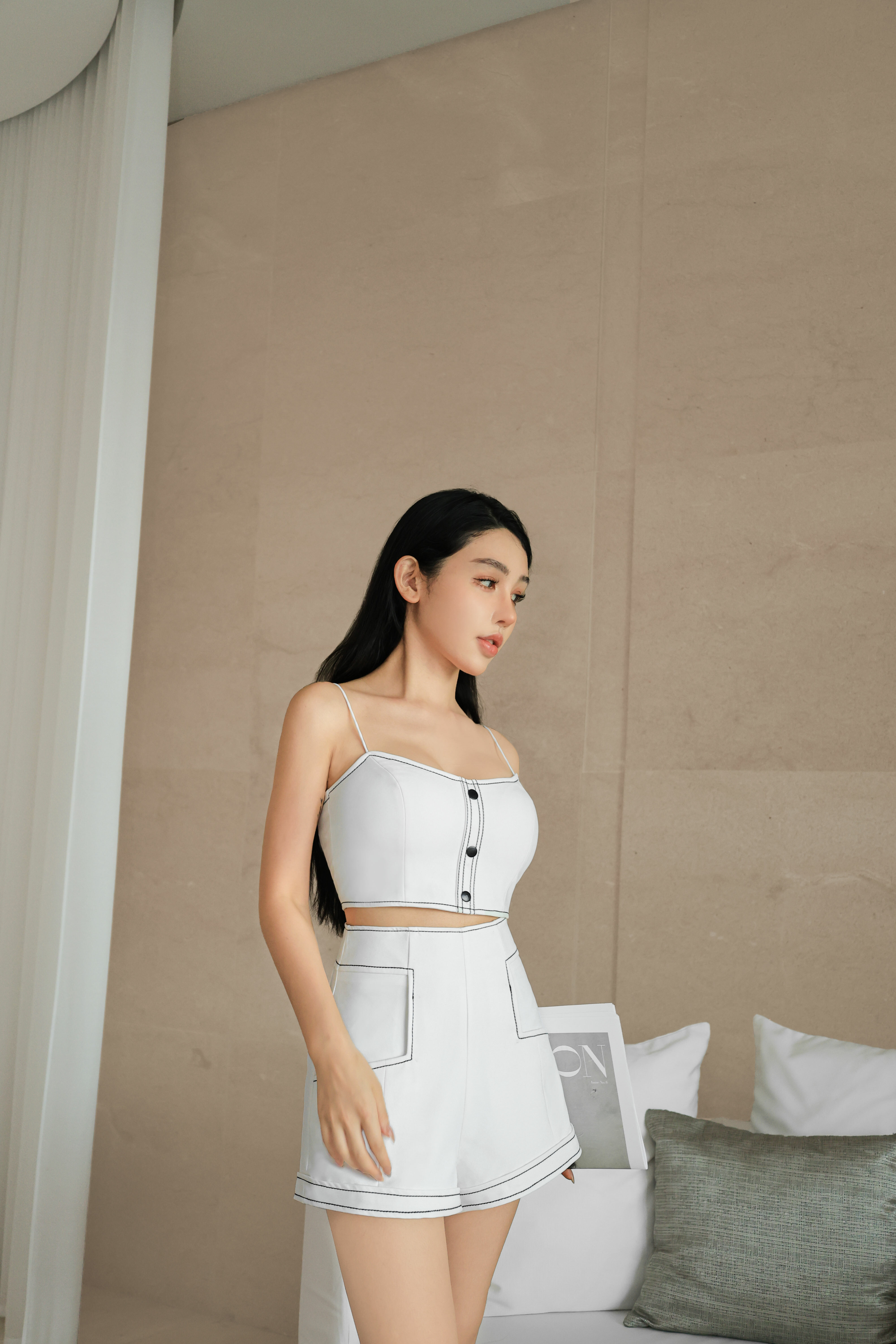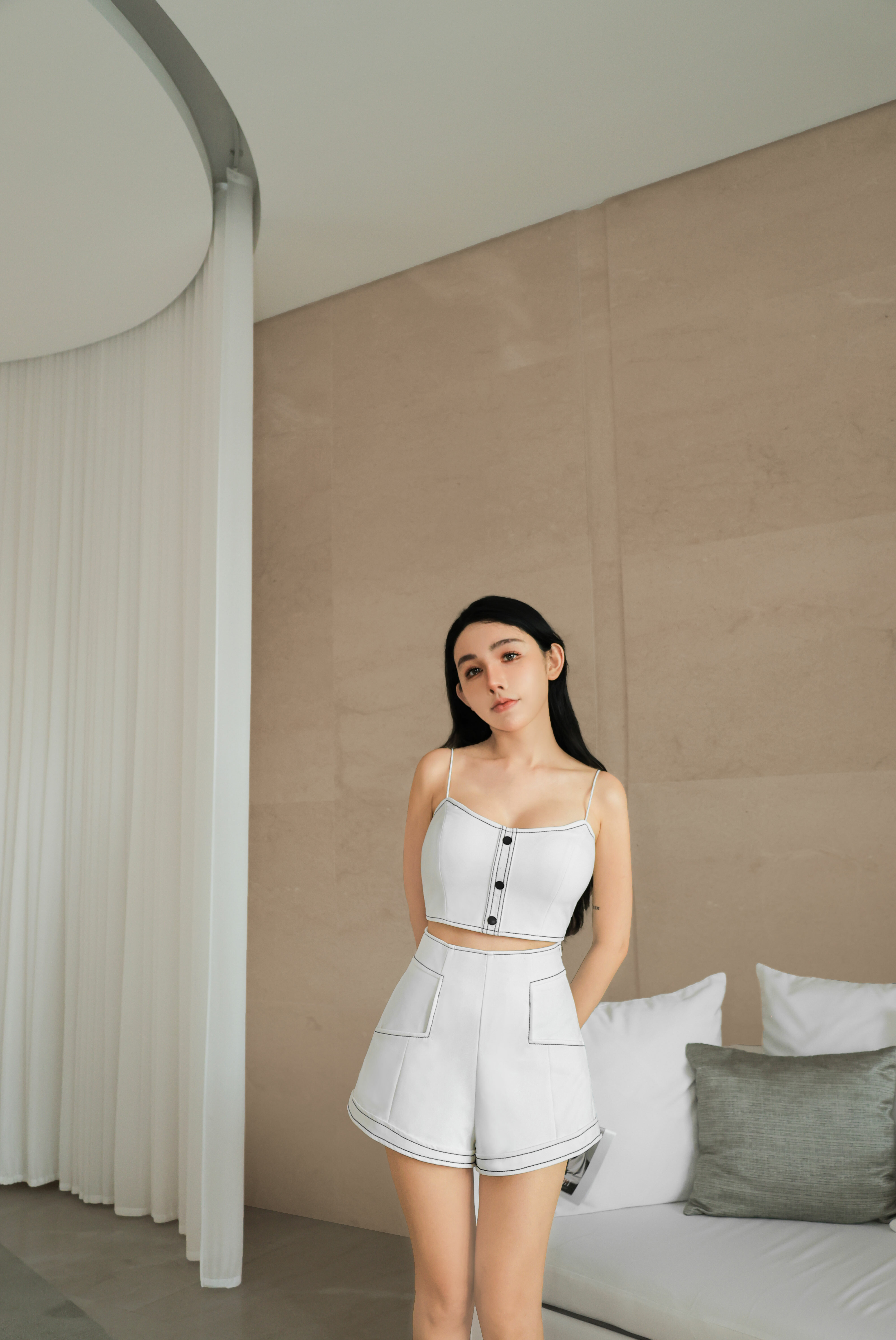 白色因有些微透光性,褲子後口袋造型為裝飾