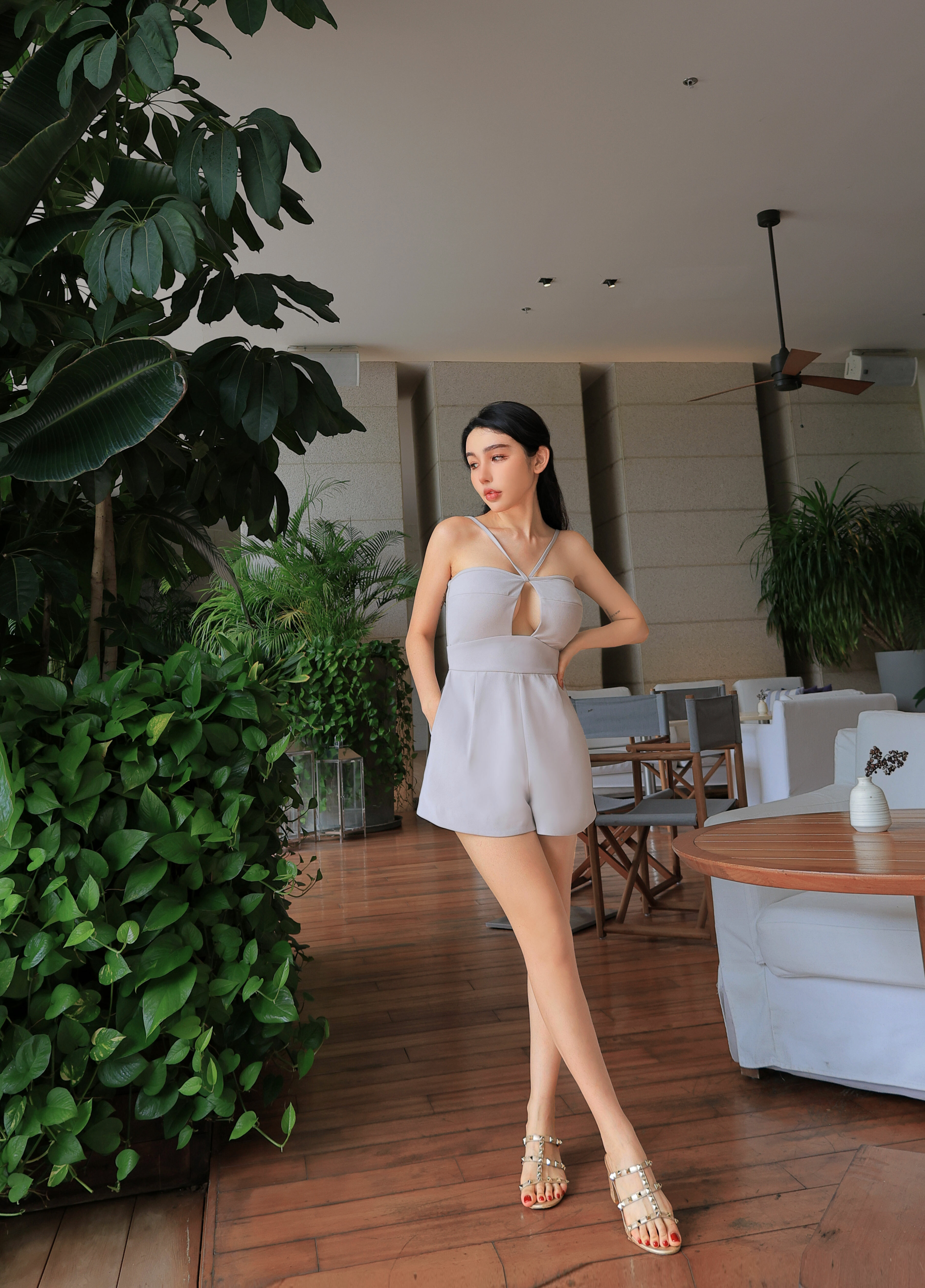 ⭒訂製-性感鏤空素面連身褲裝