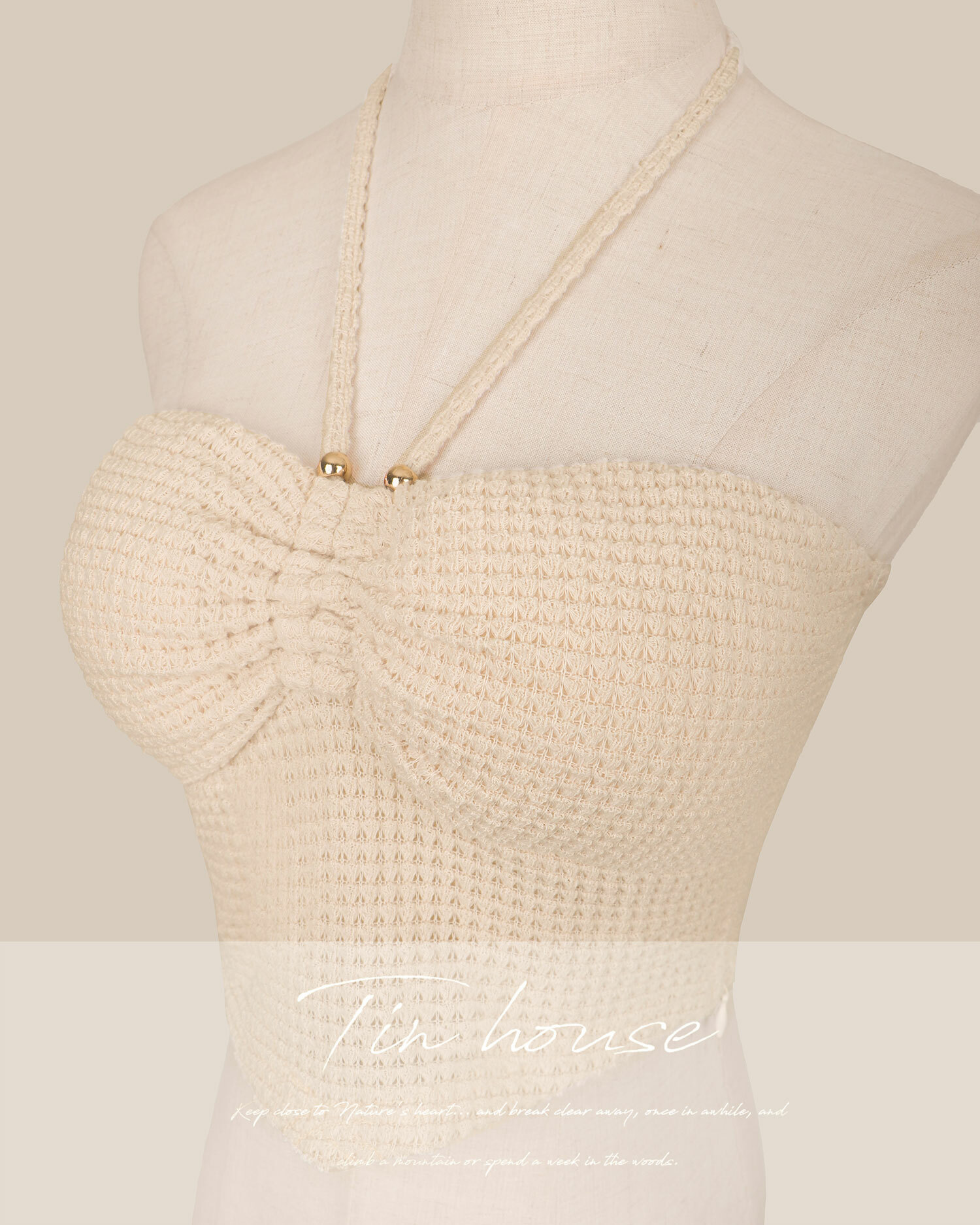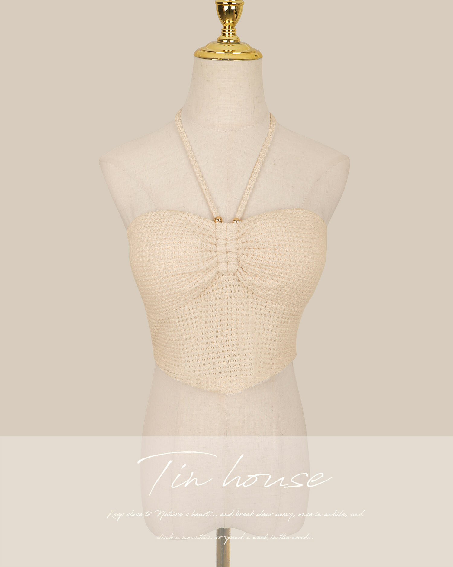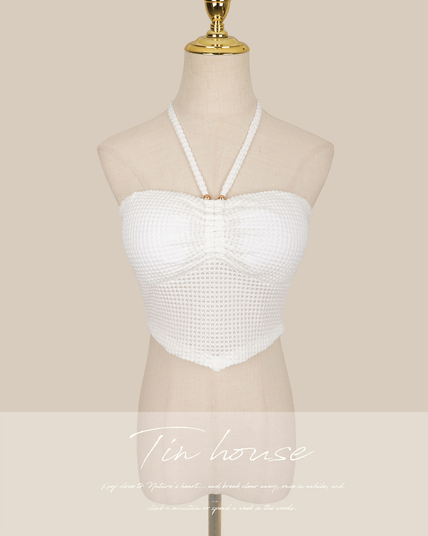 訂製-渡假抽皺鏤空針織短上衣