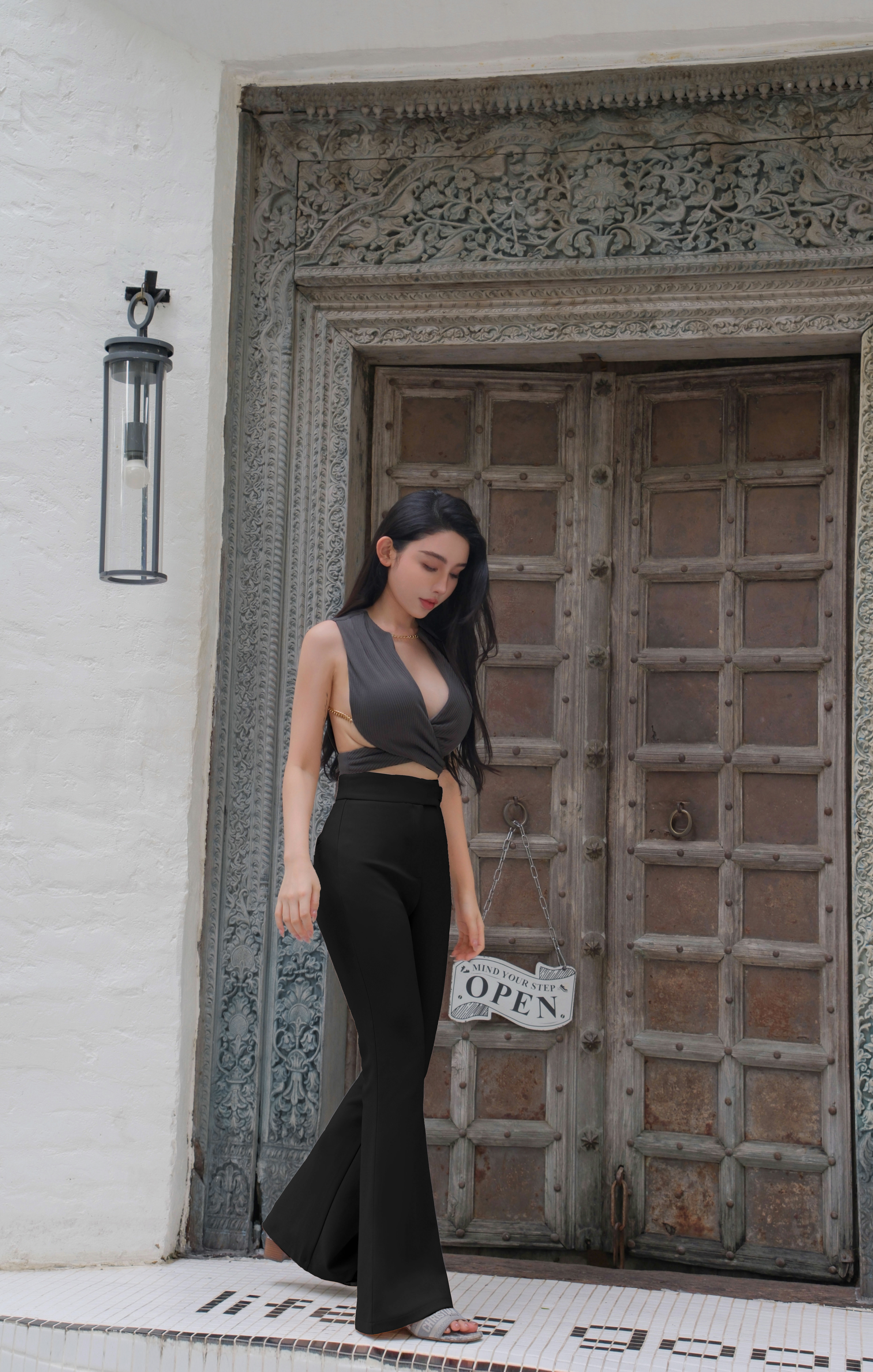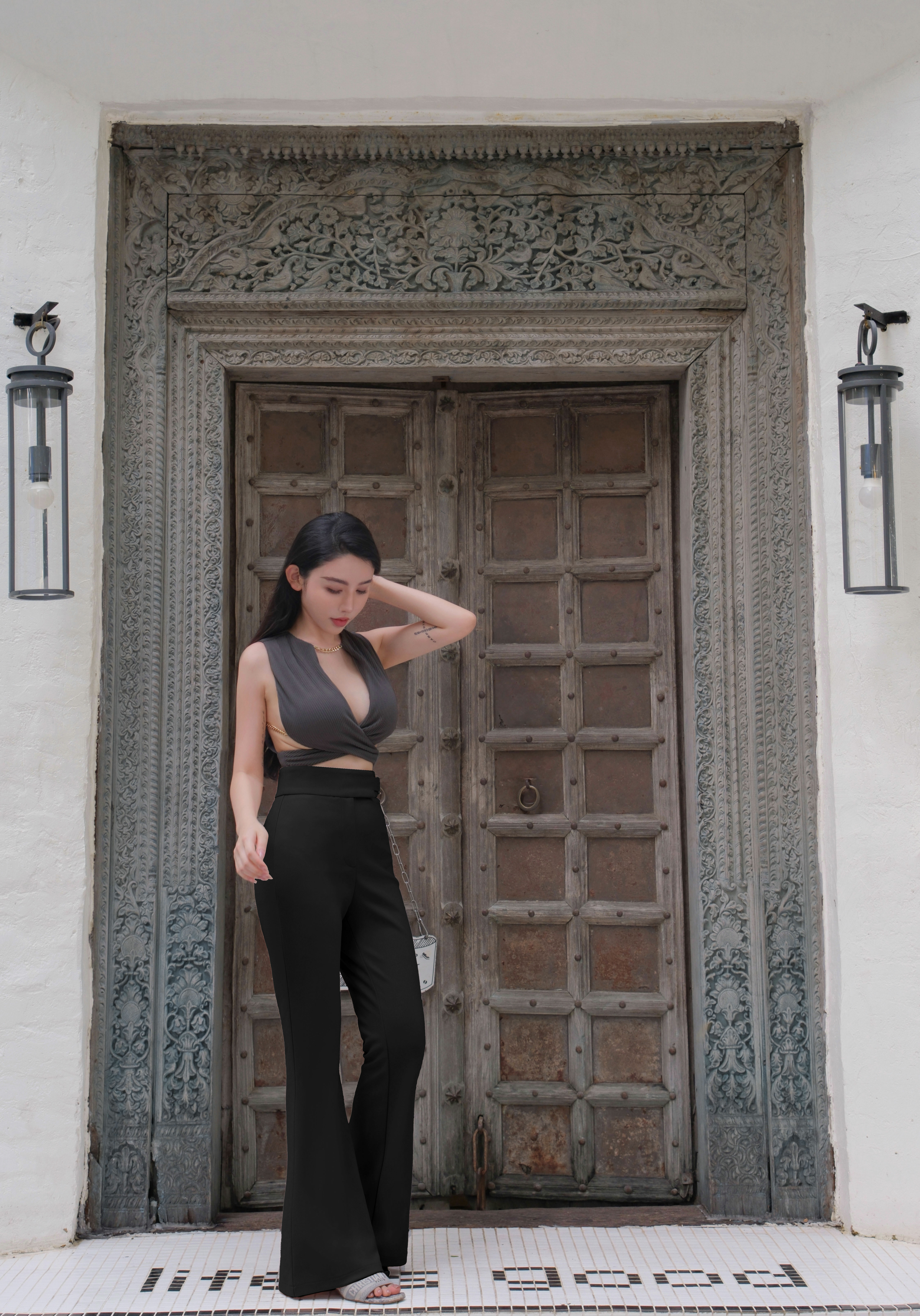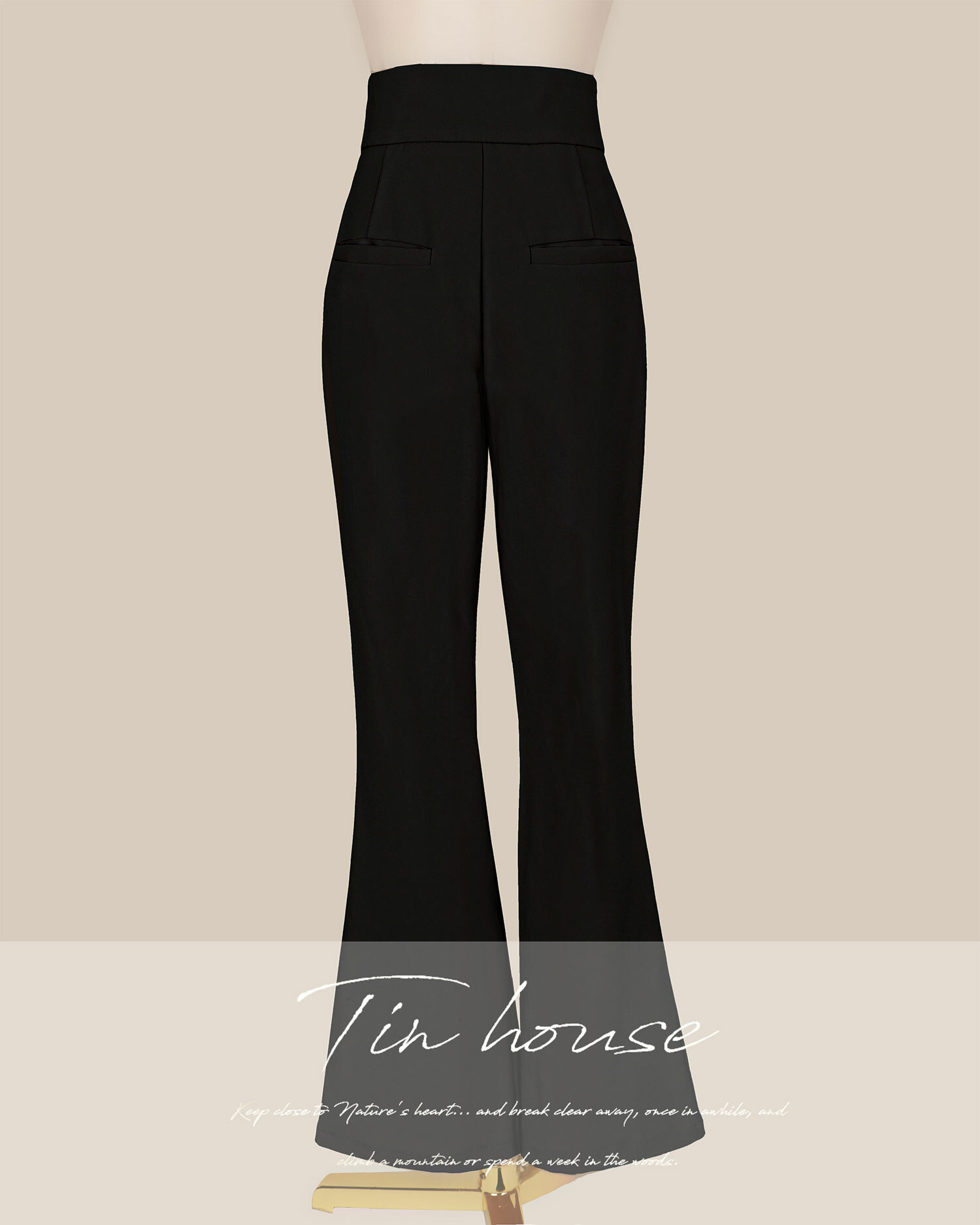 ⭒訂製-金屬釦帶高腰喇叭長褲