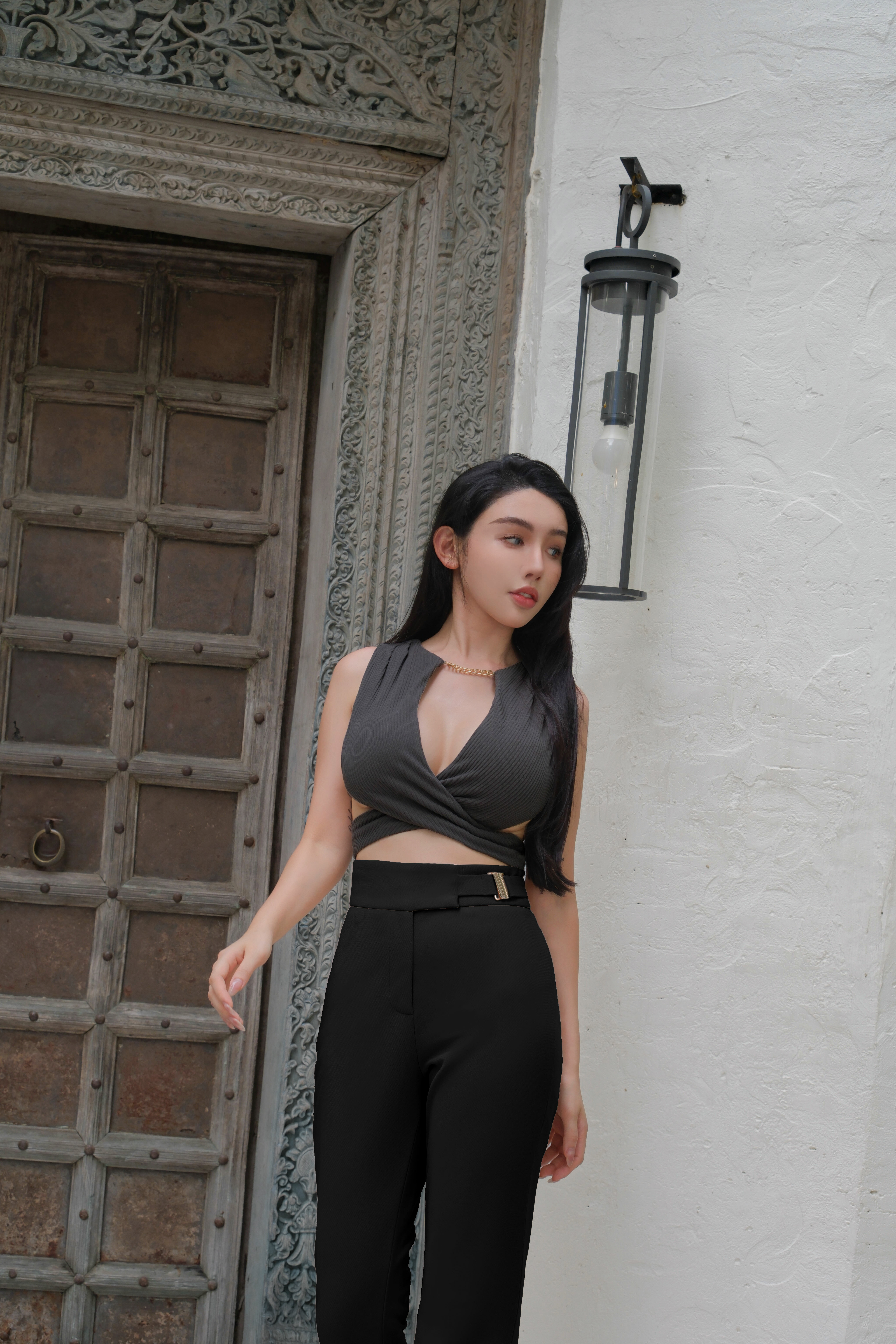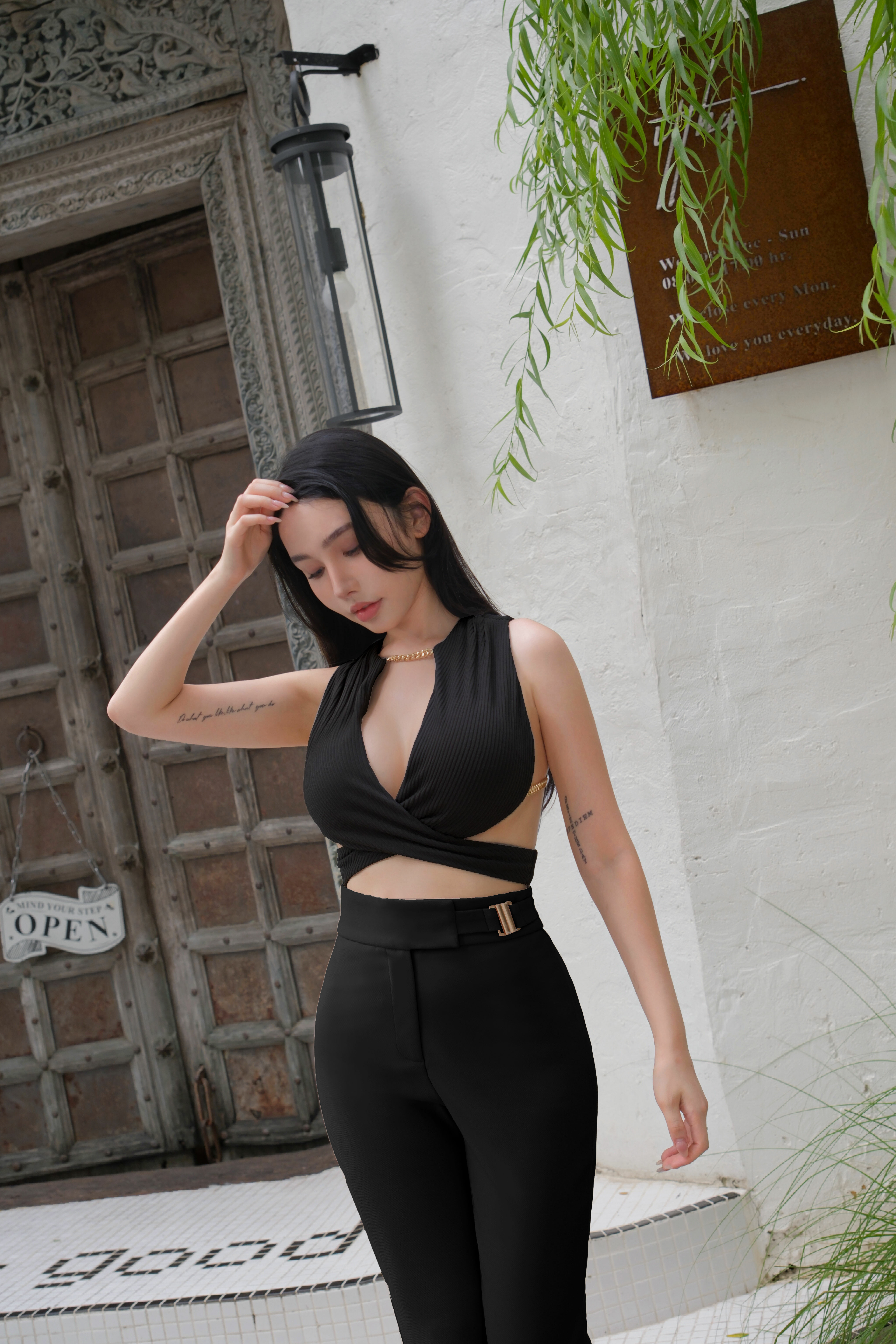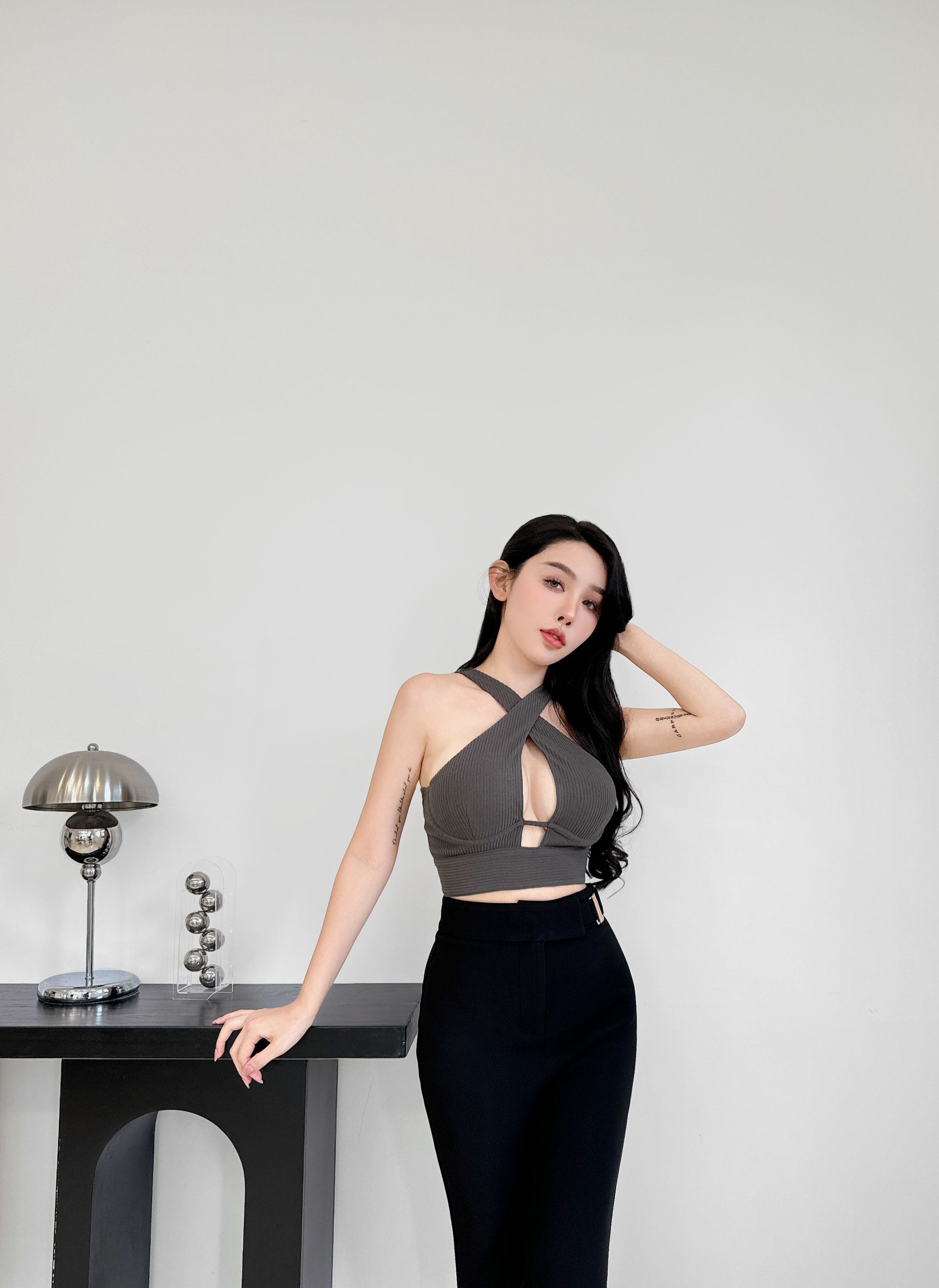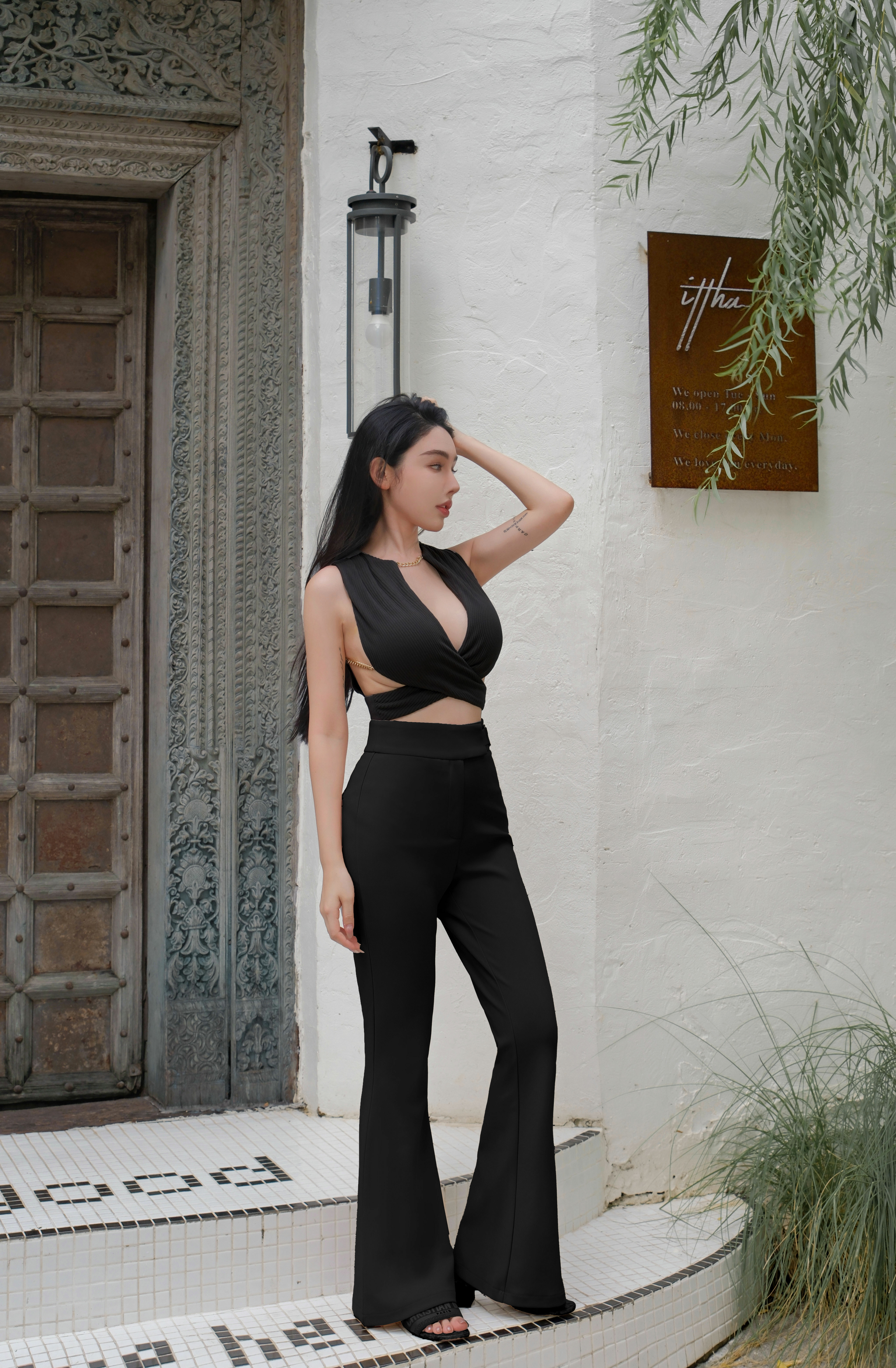 ⭒訂製-金屬釦帶高腰喇叭長褲