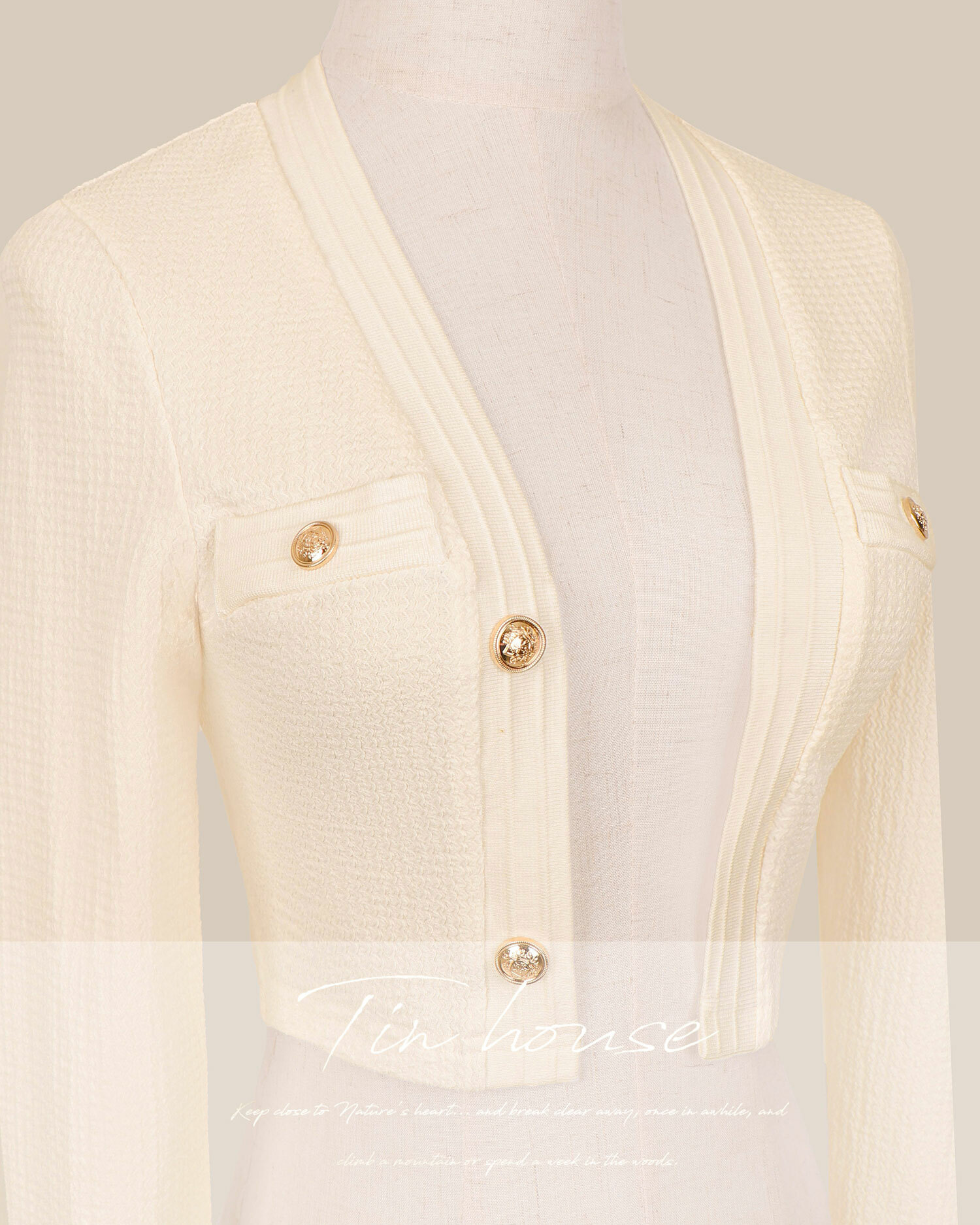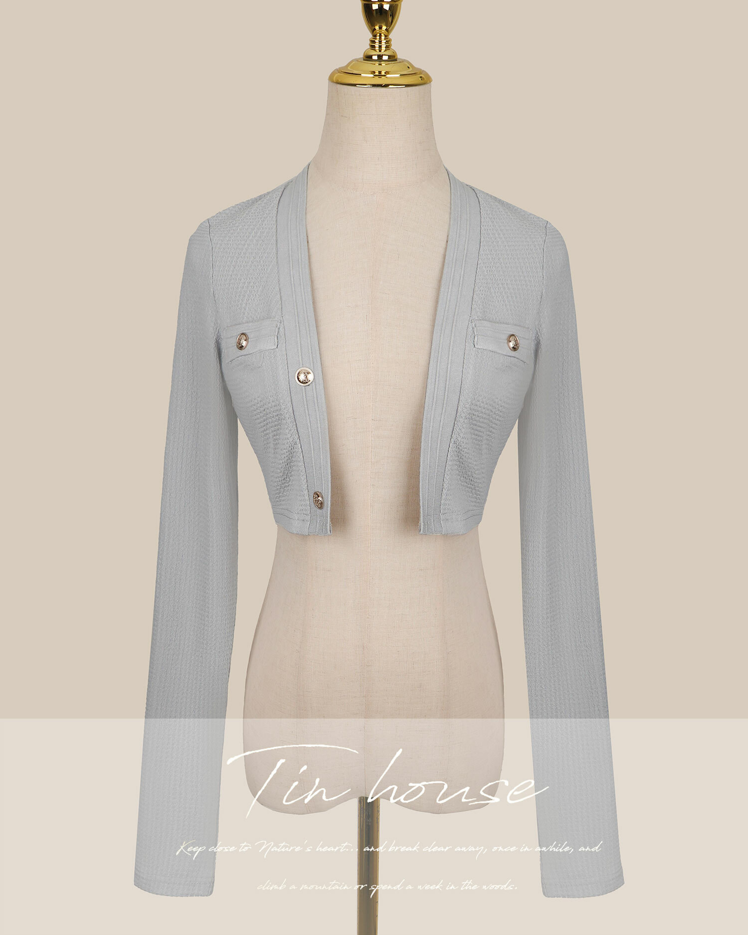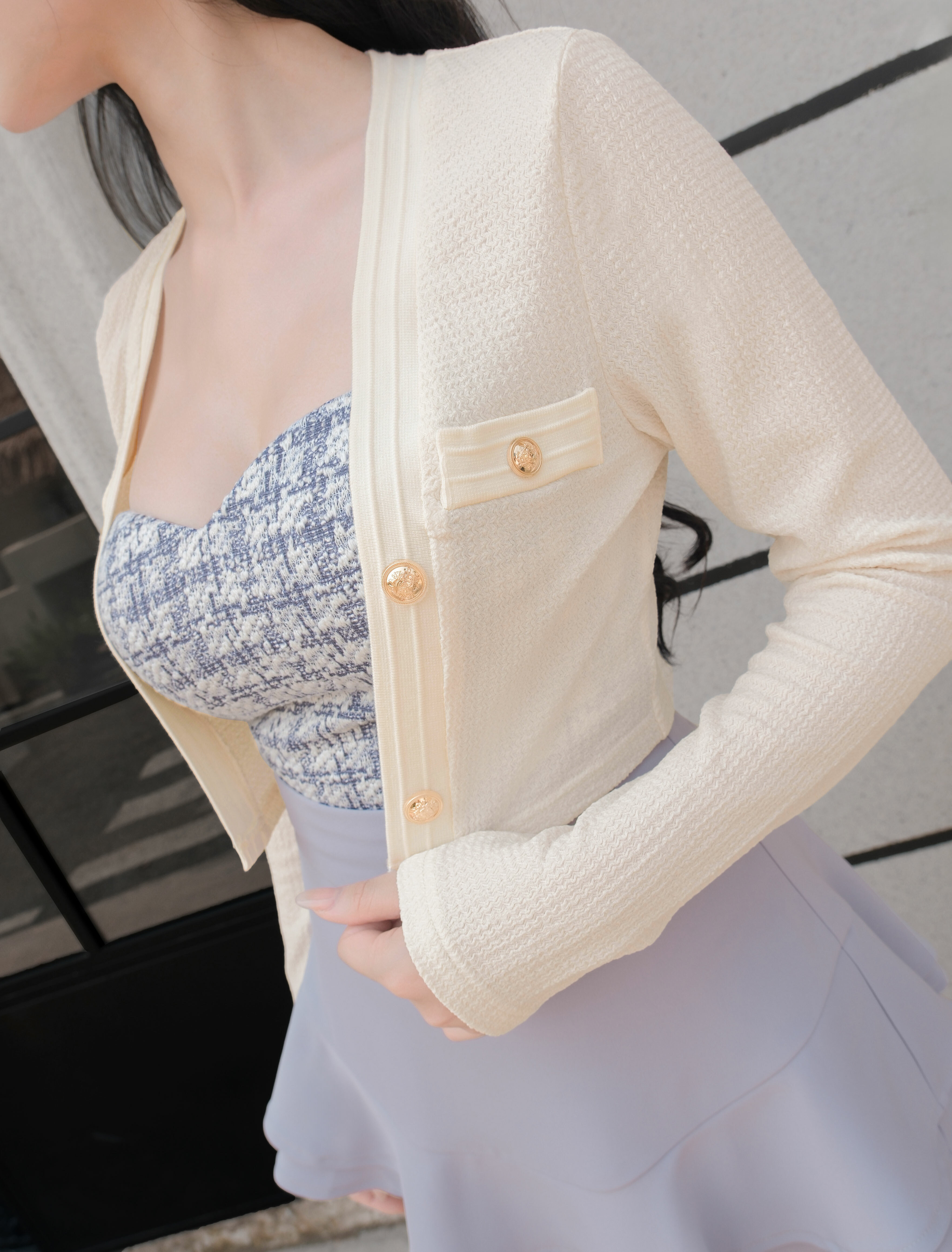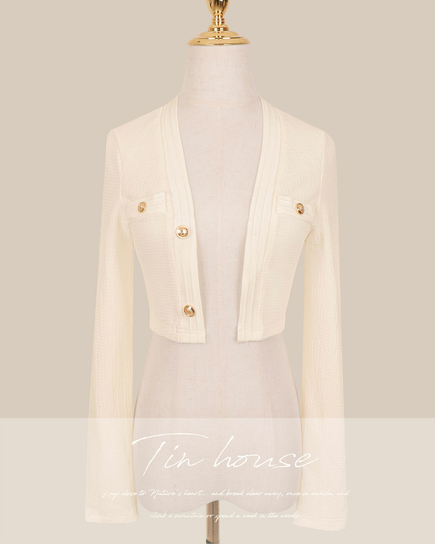 訂製-小香風金釦短版薄罩衫